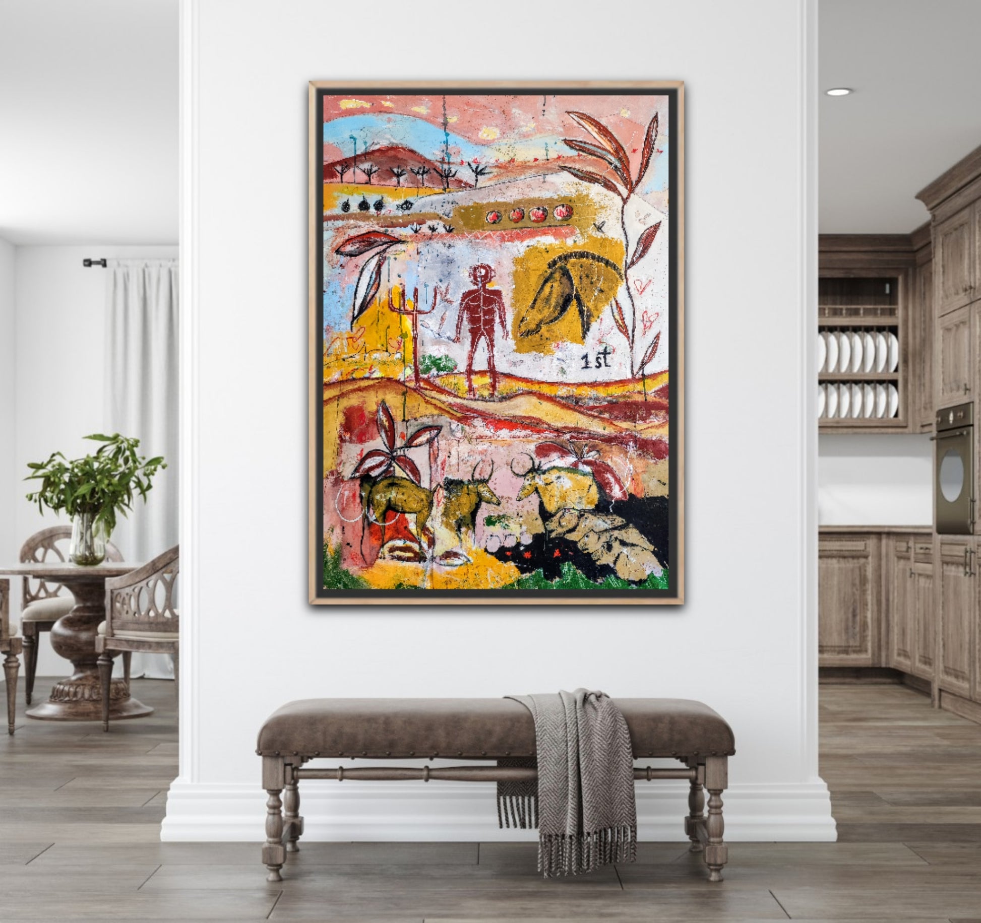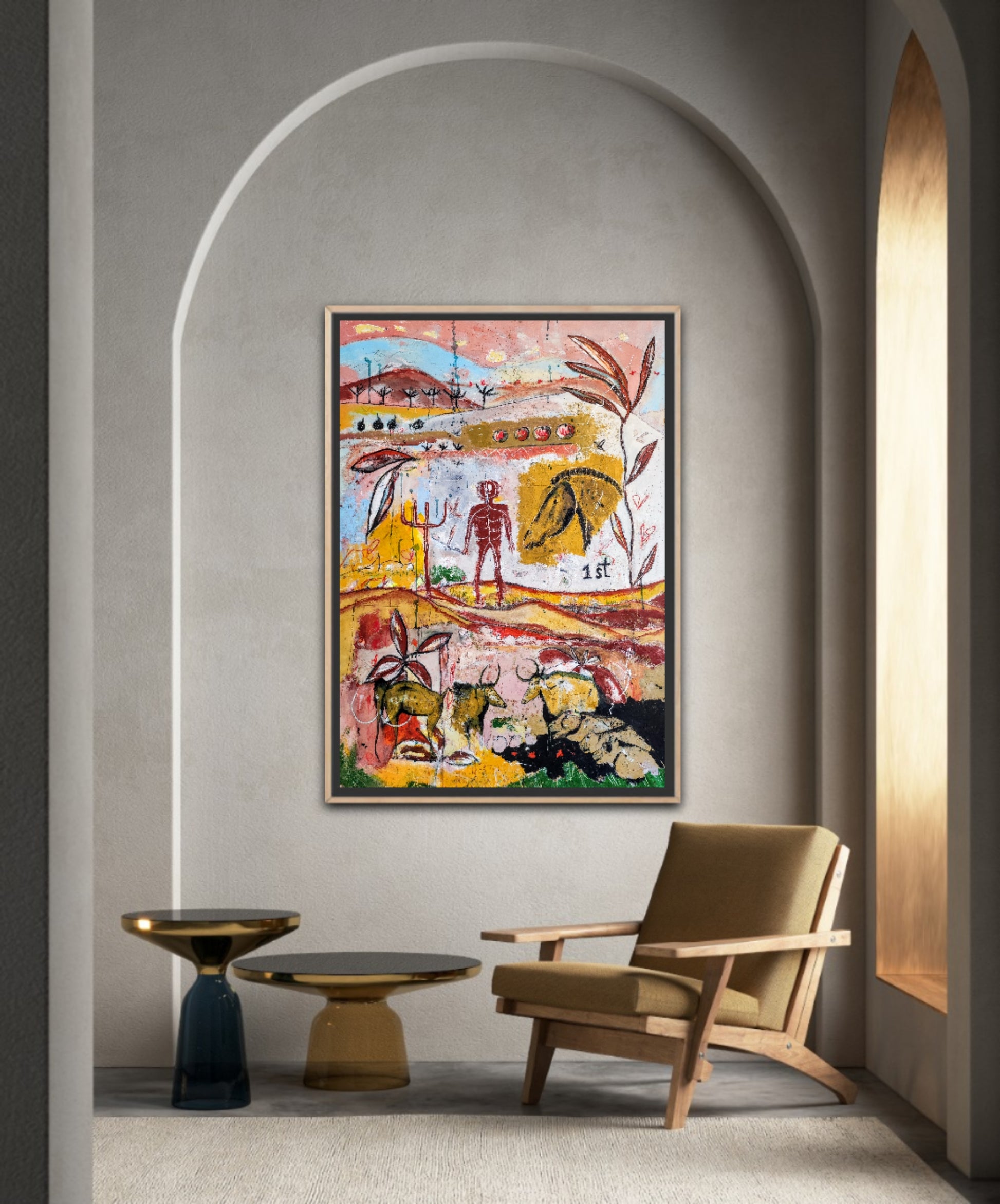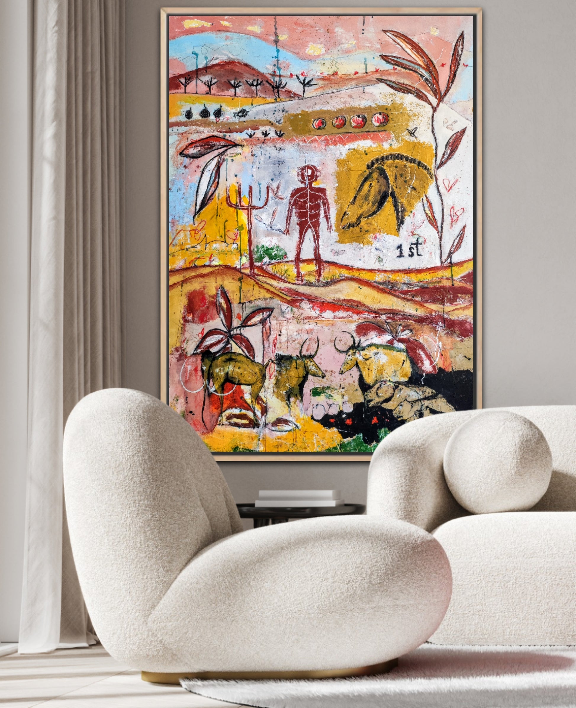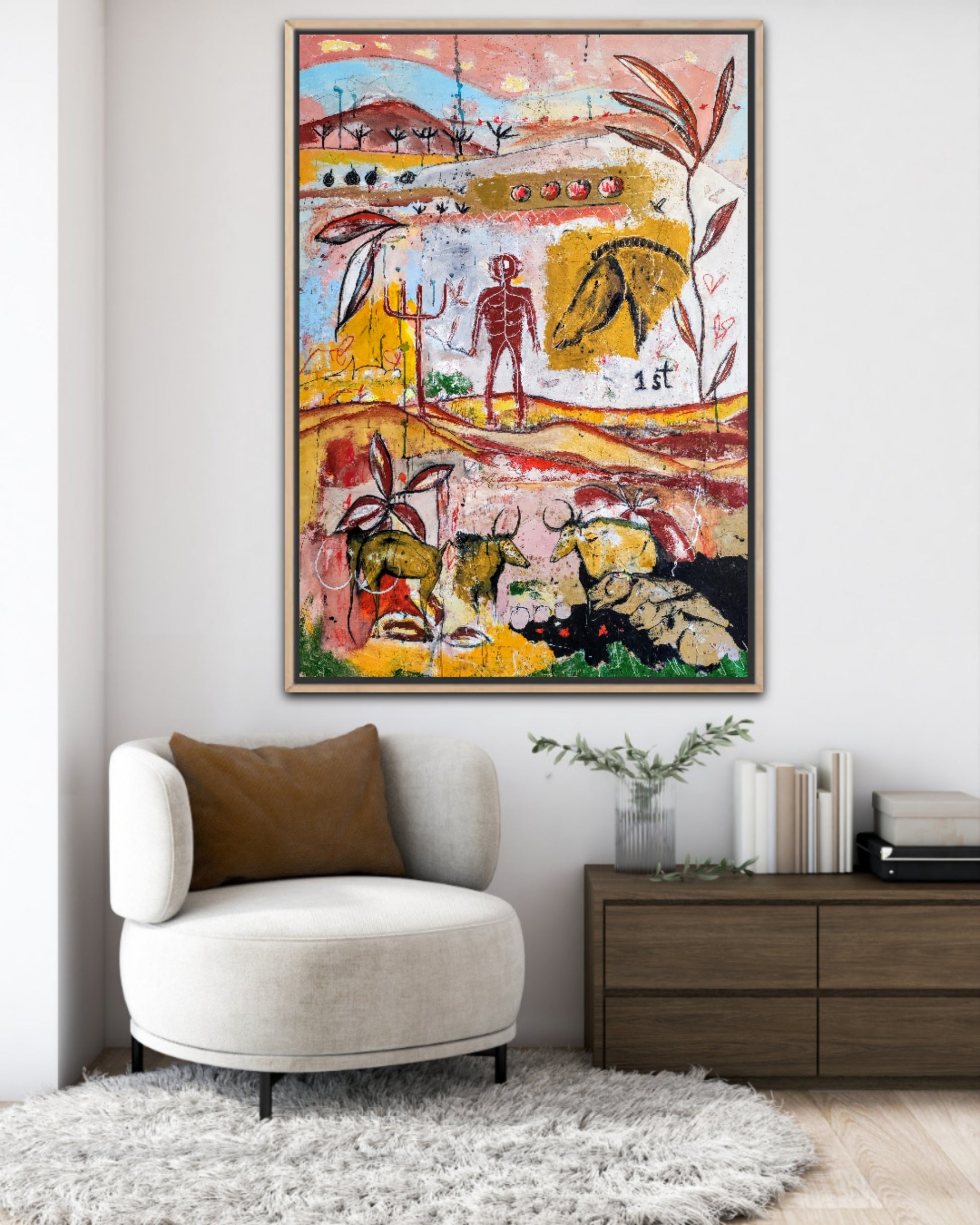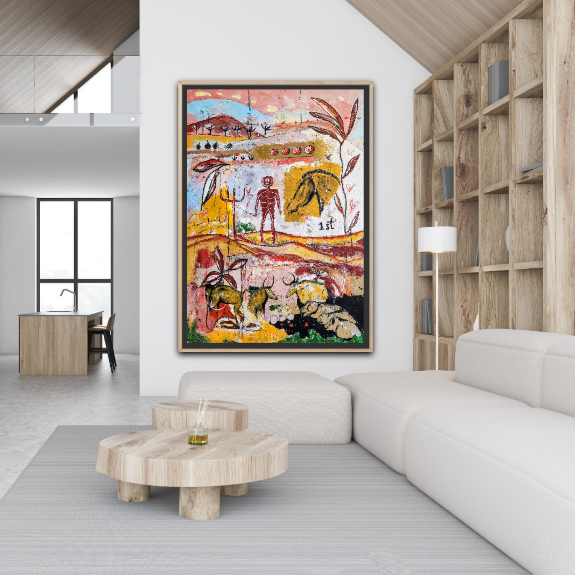 Técnica: acrílico, pigmentos, gesso, ceras y lápiz.
