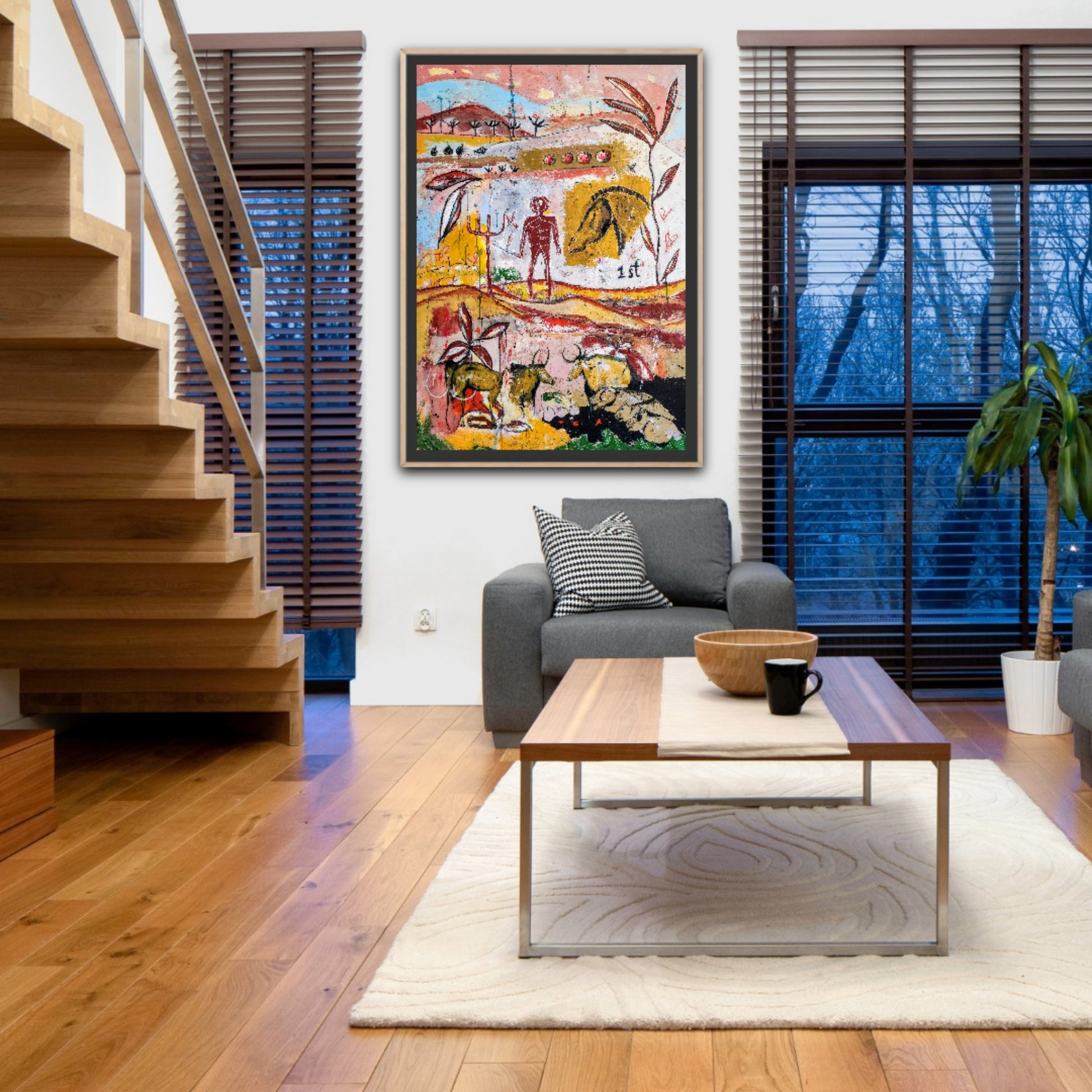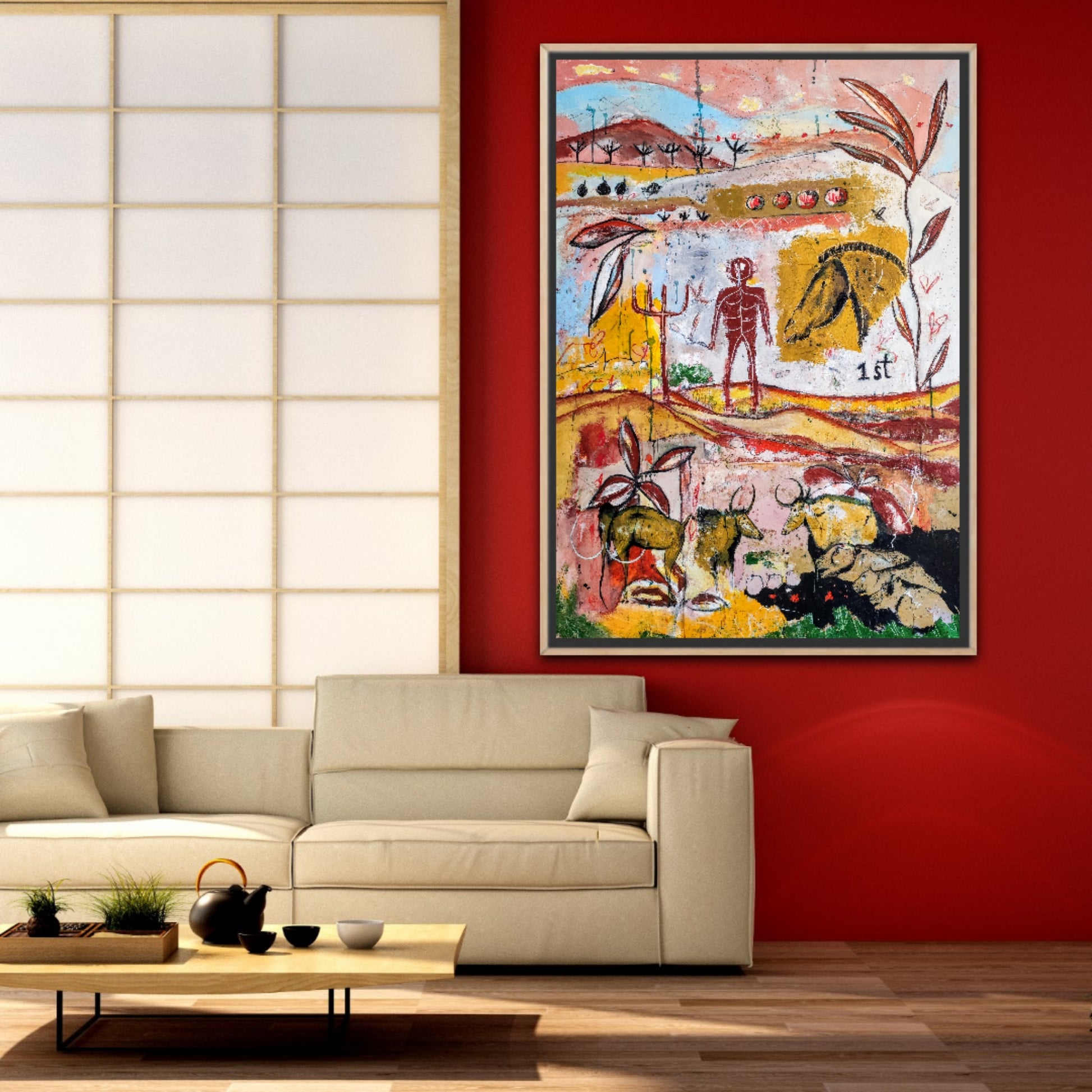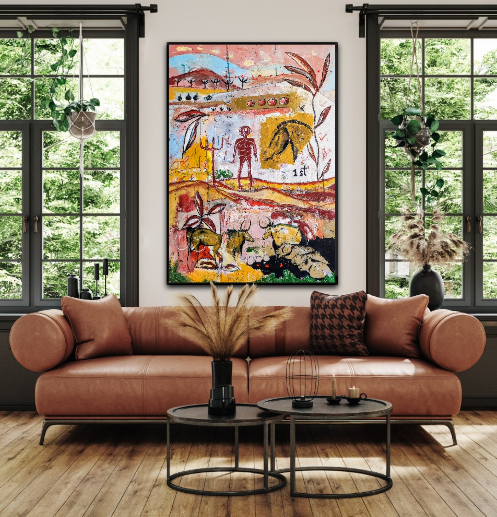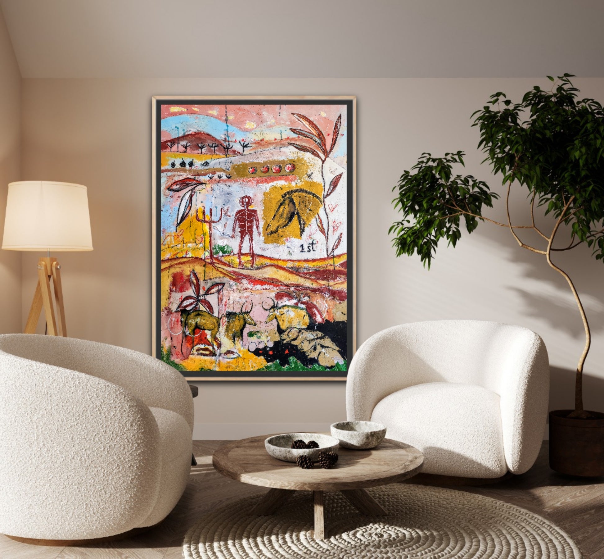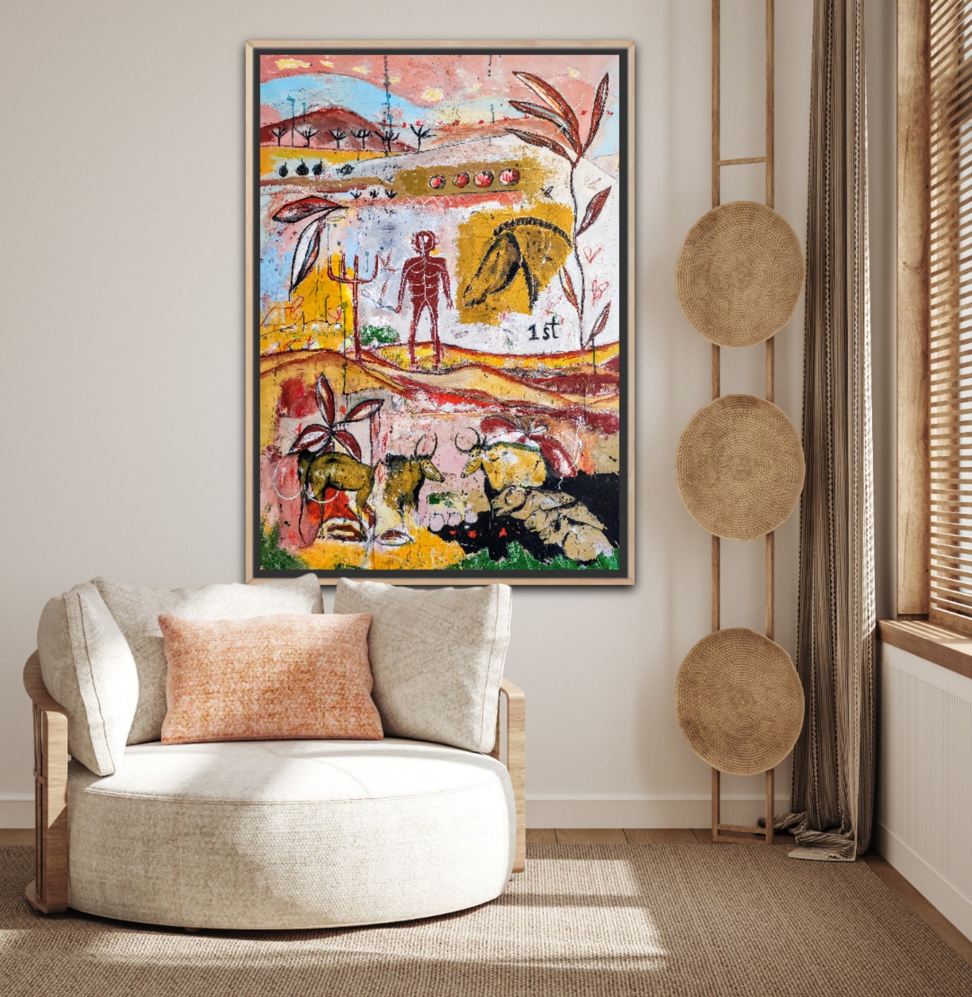 Técnica: acrílico, pigmentos, gesso, ceras y lápiz.