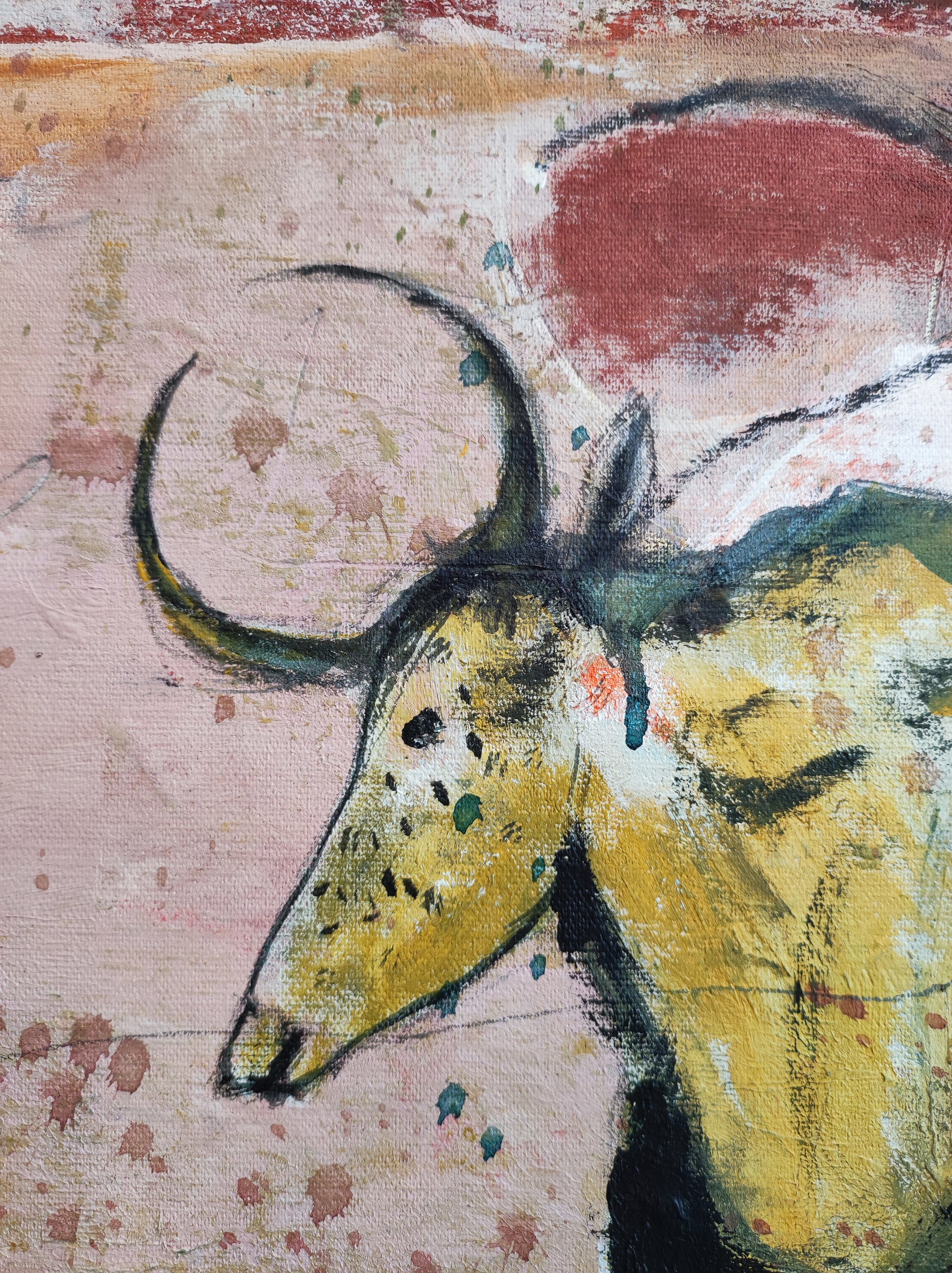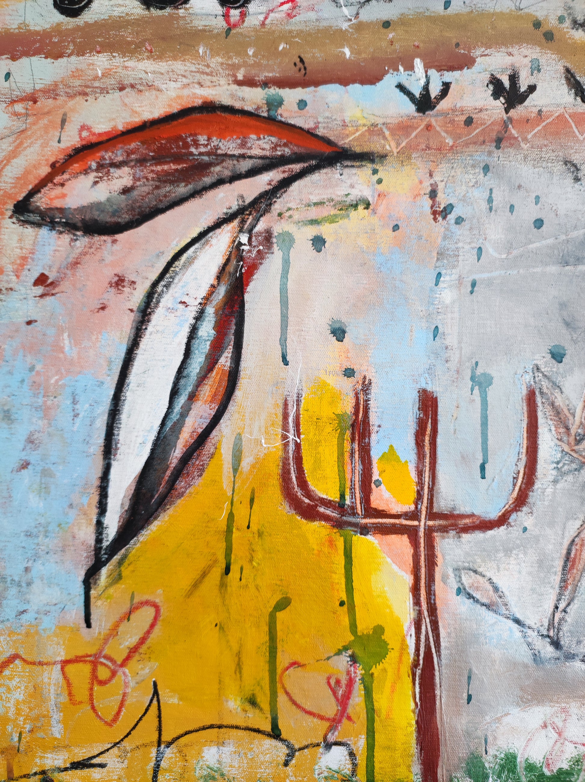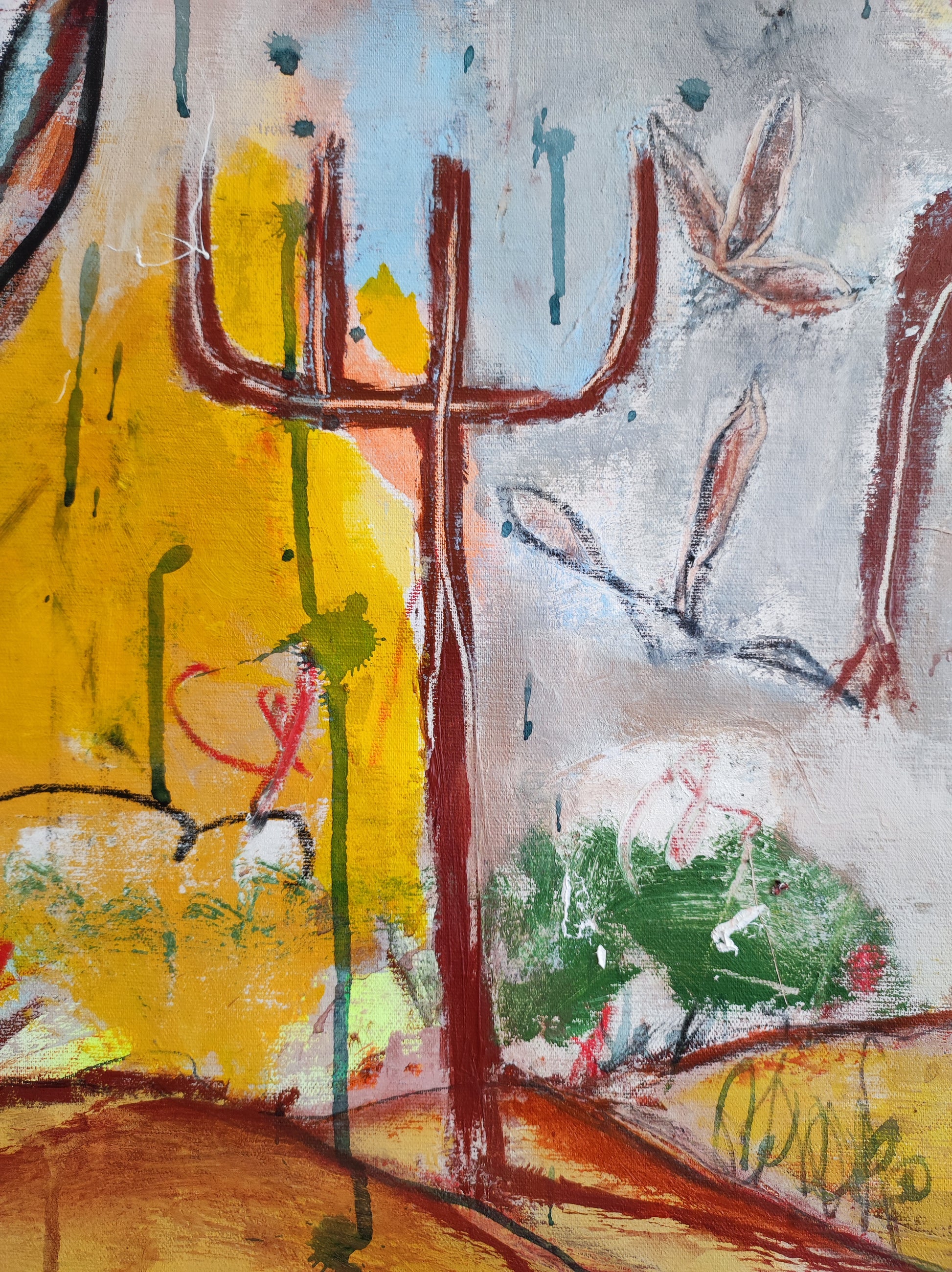 Cuadro trabajado desde la improvisación libre. Action painting con la música de Dire Straits.