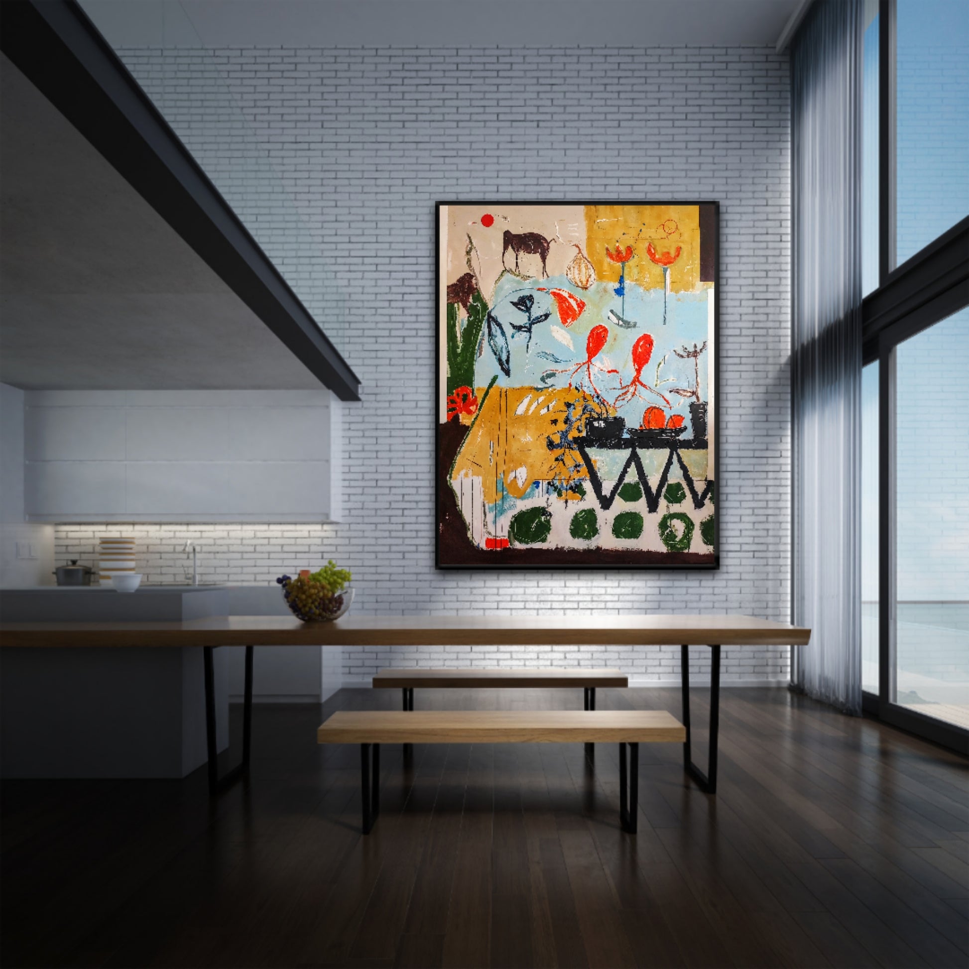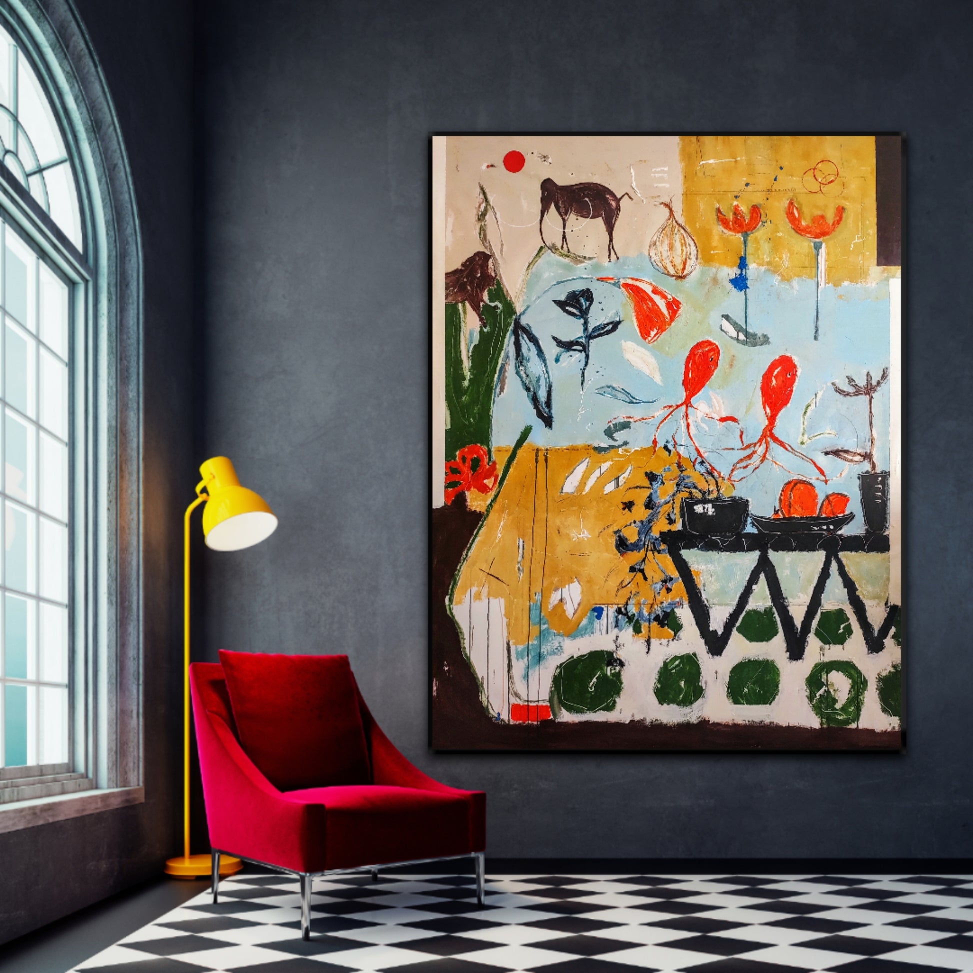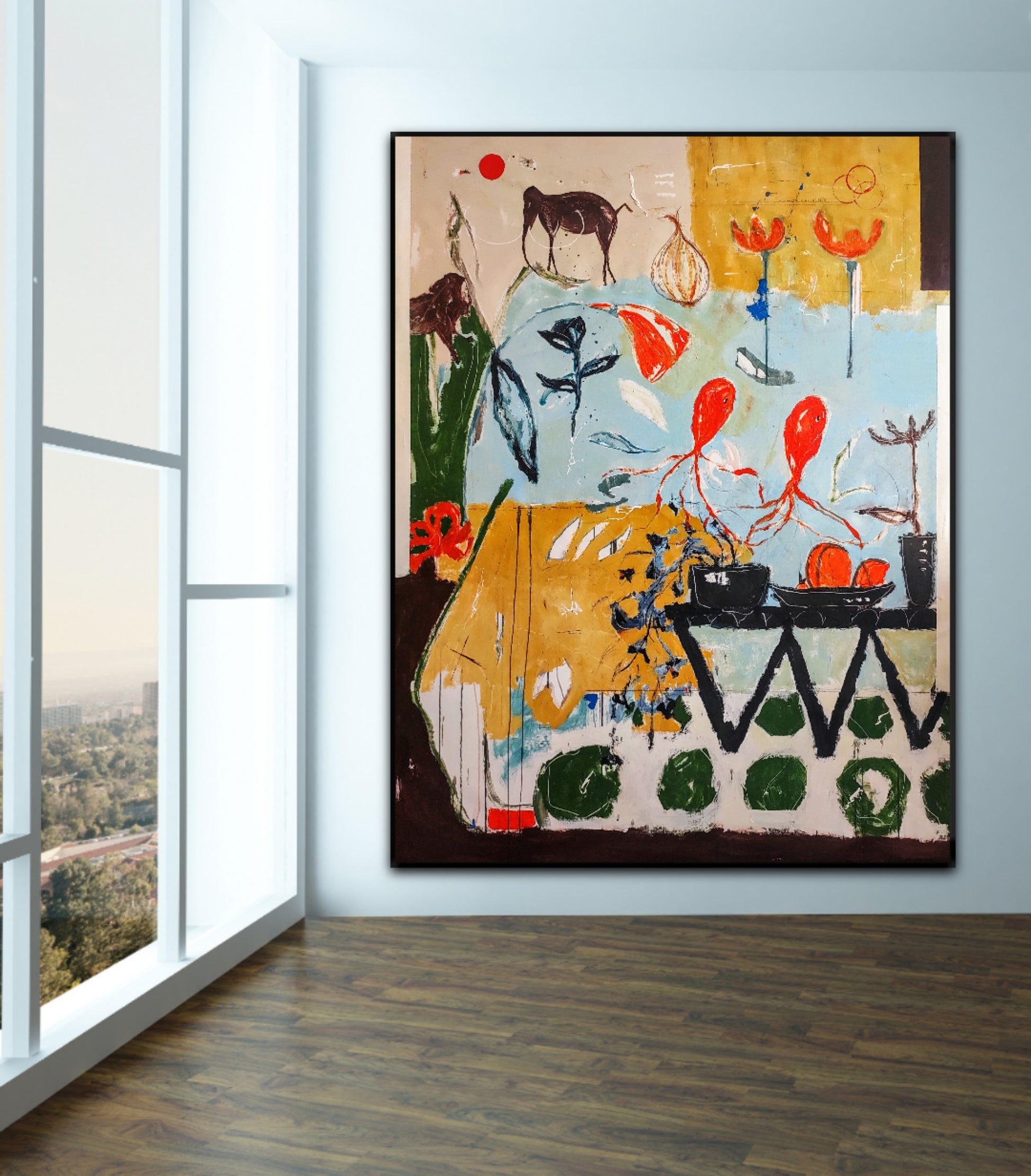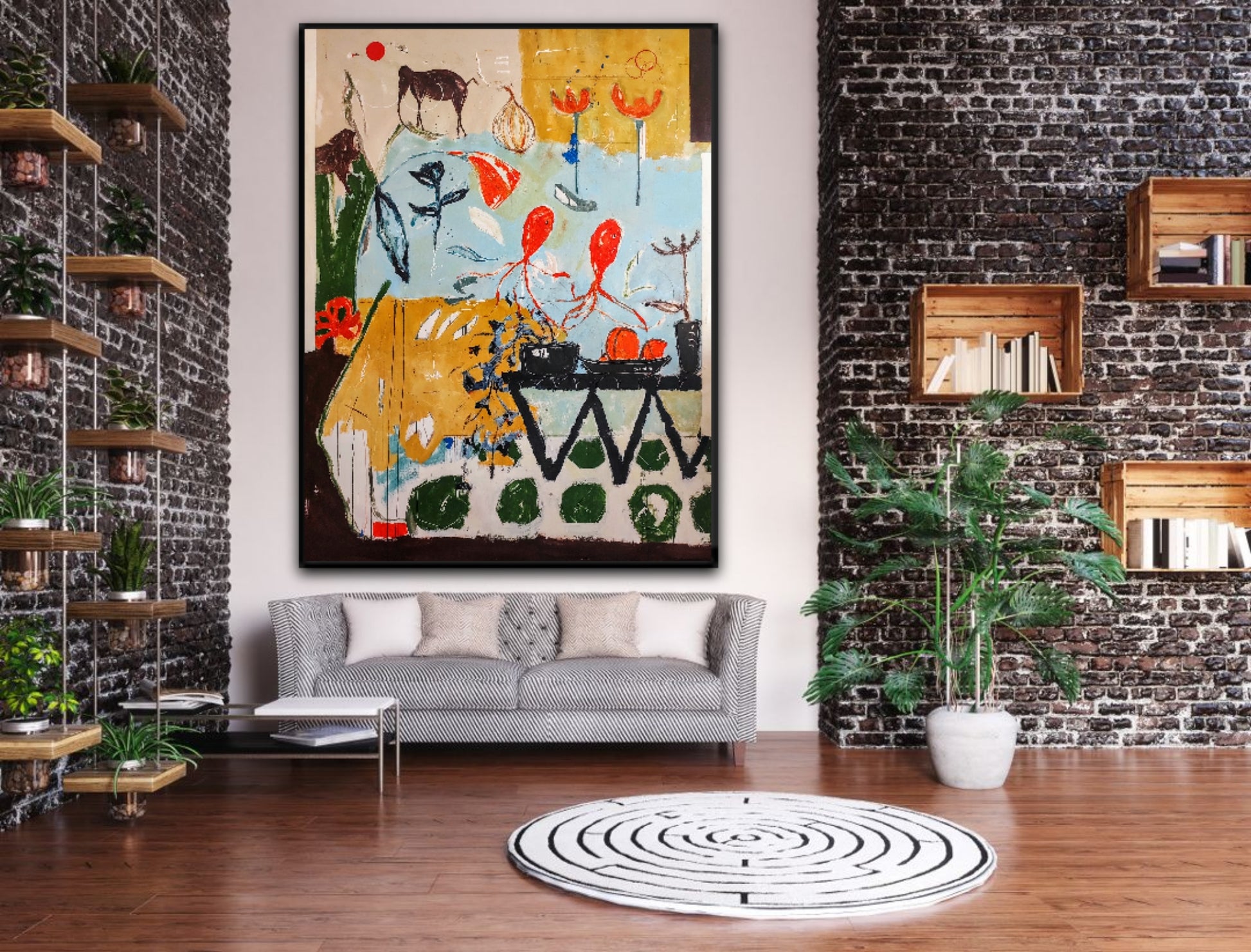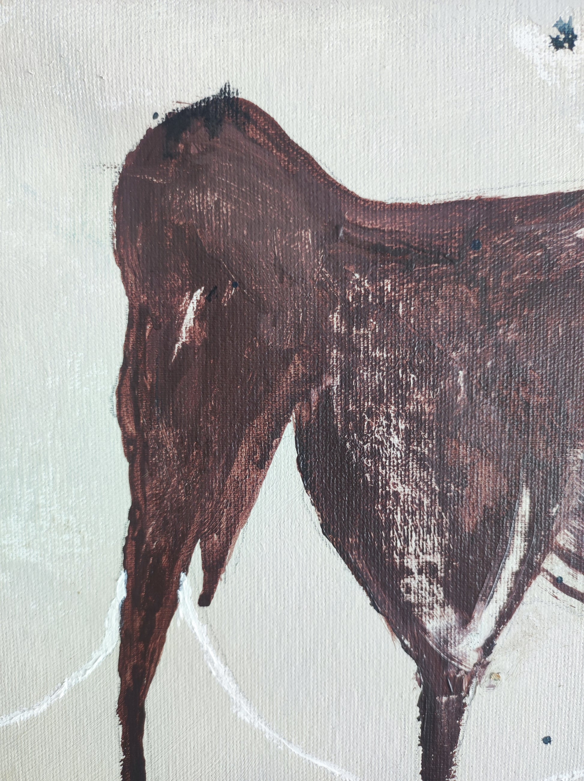 Pintura gestual, intuitiva, que deja que las cosas pasen y se apoya sobre lo que aparece. Aprovechando el accidente y aceptando las consecuencias.