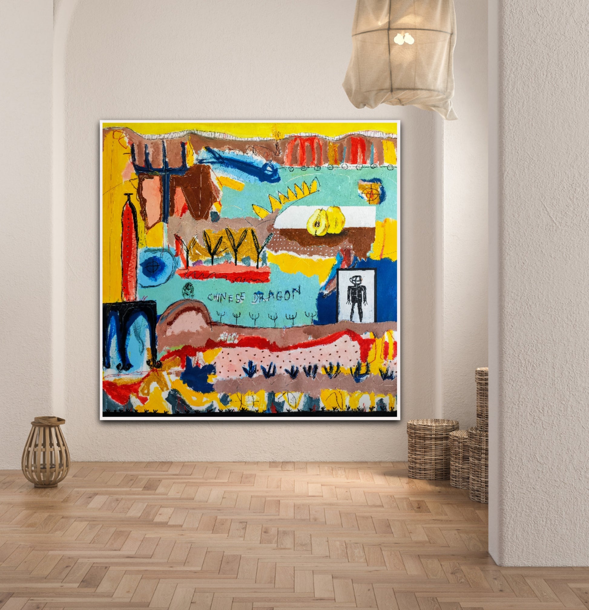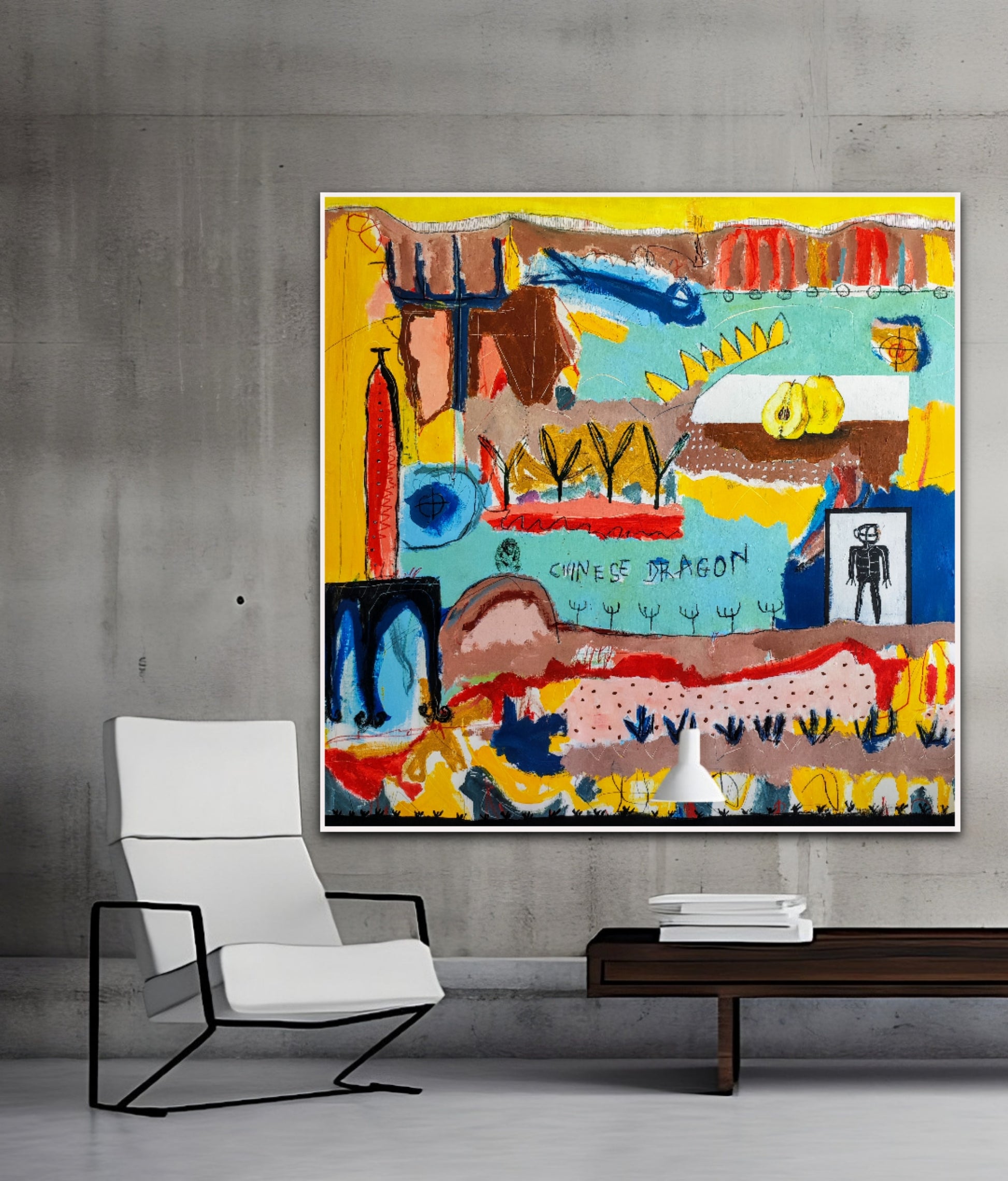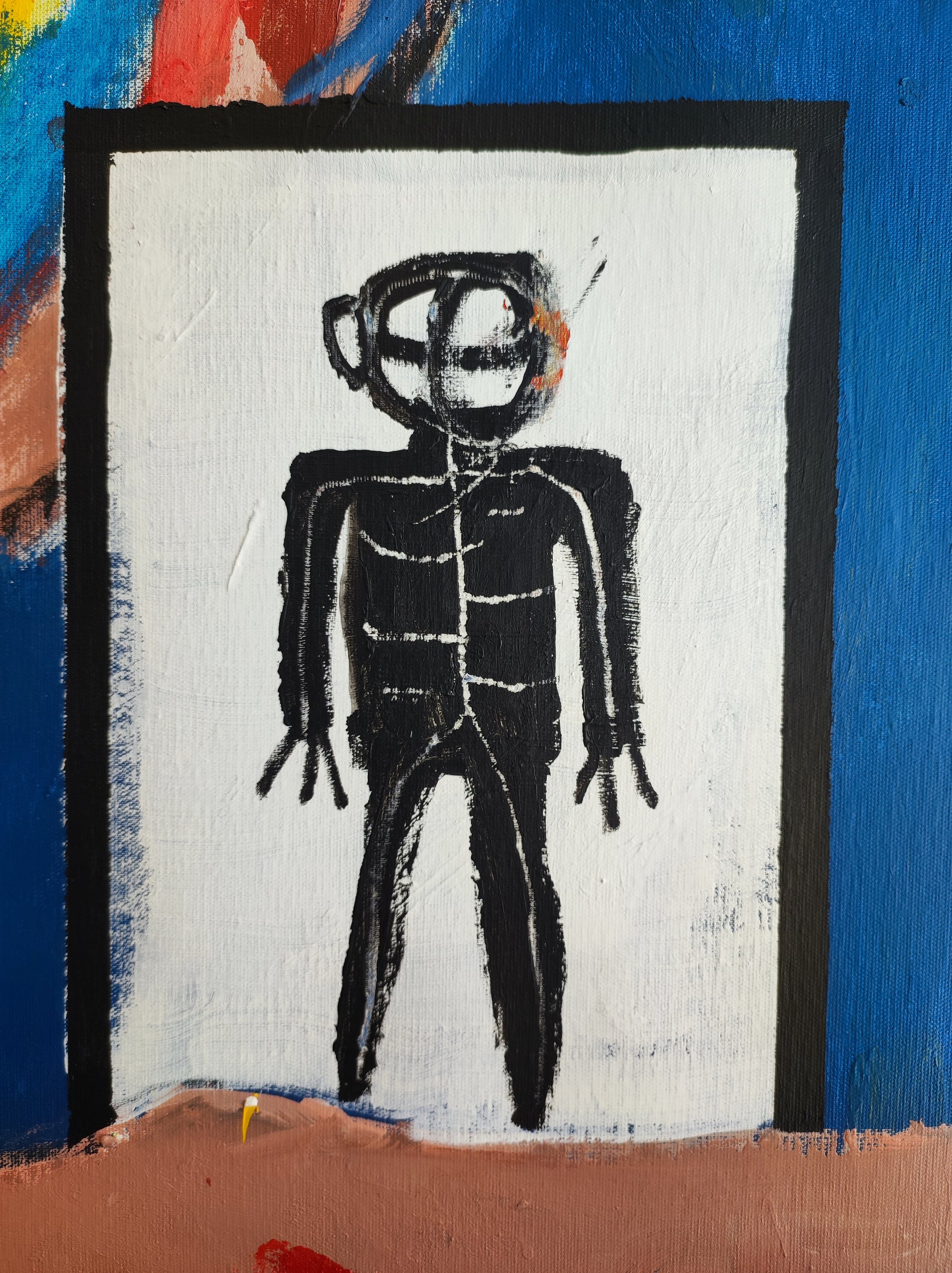 Cuadro trabajado desde la improvisación libre. Action painting con música de Chilly Gonzales.