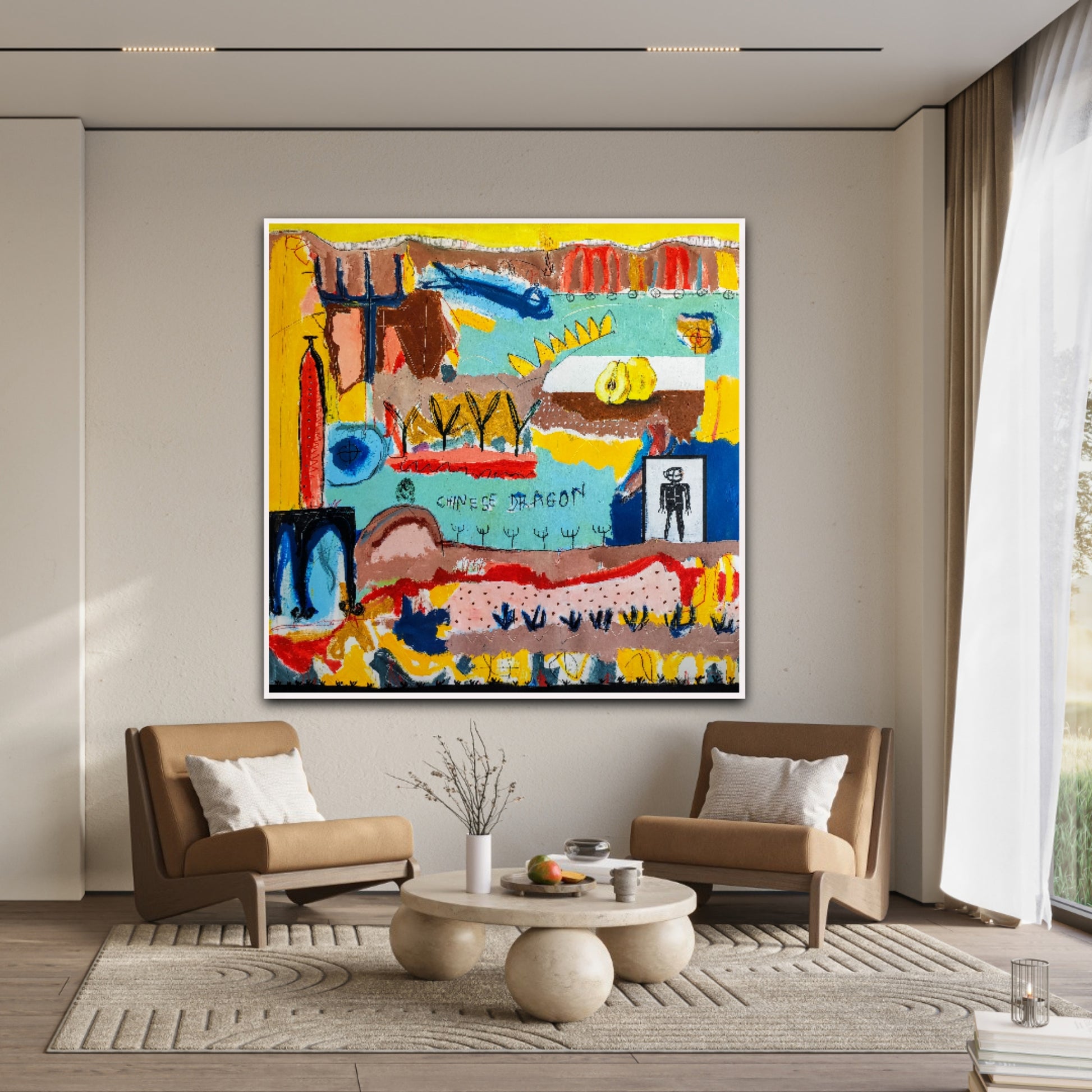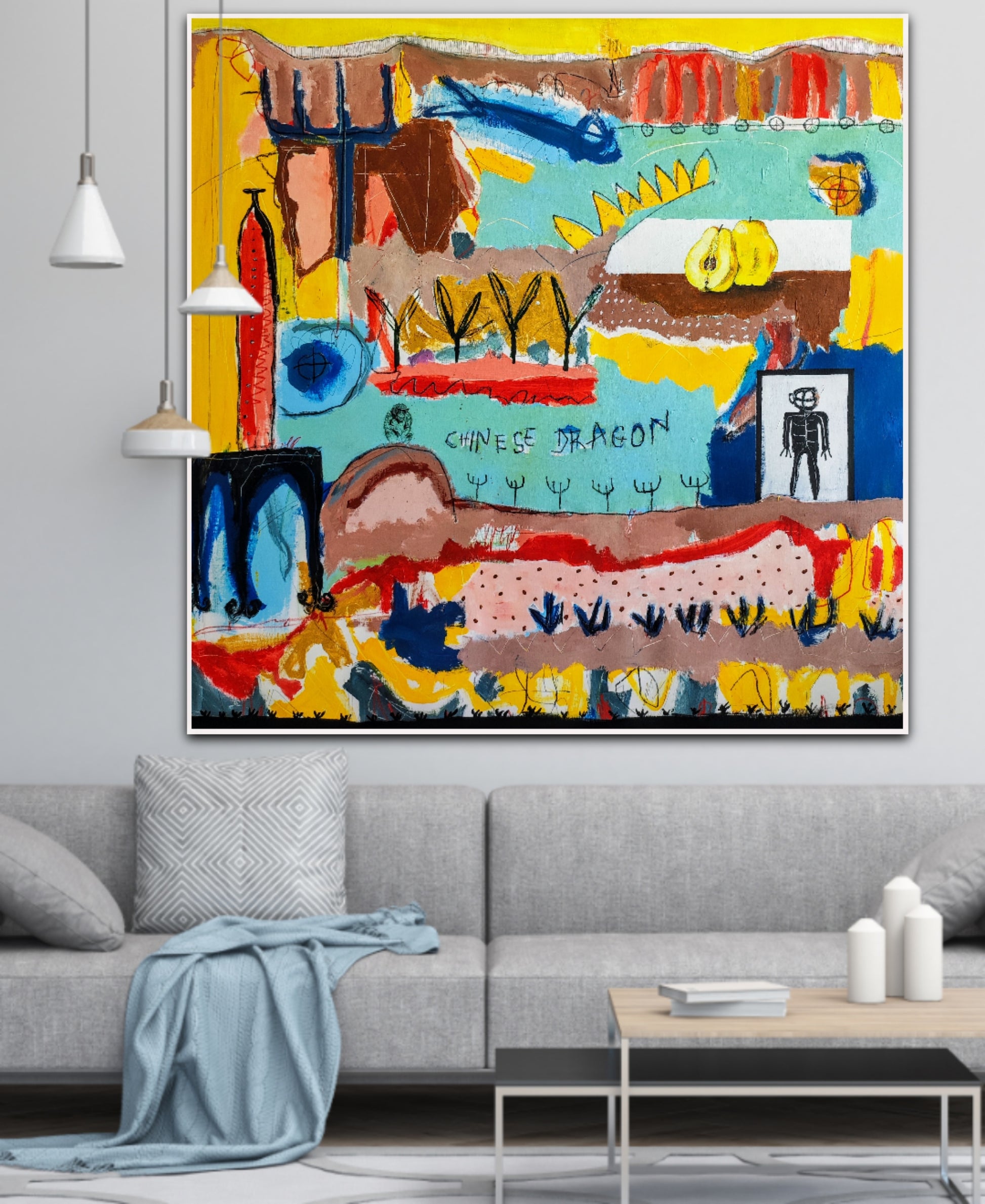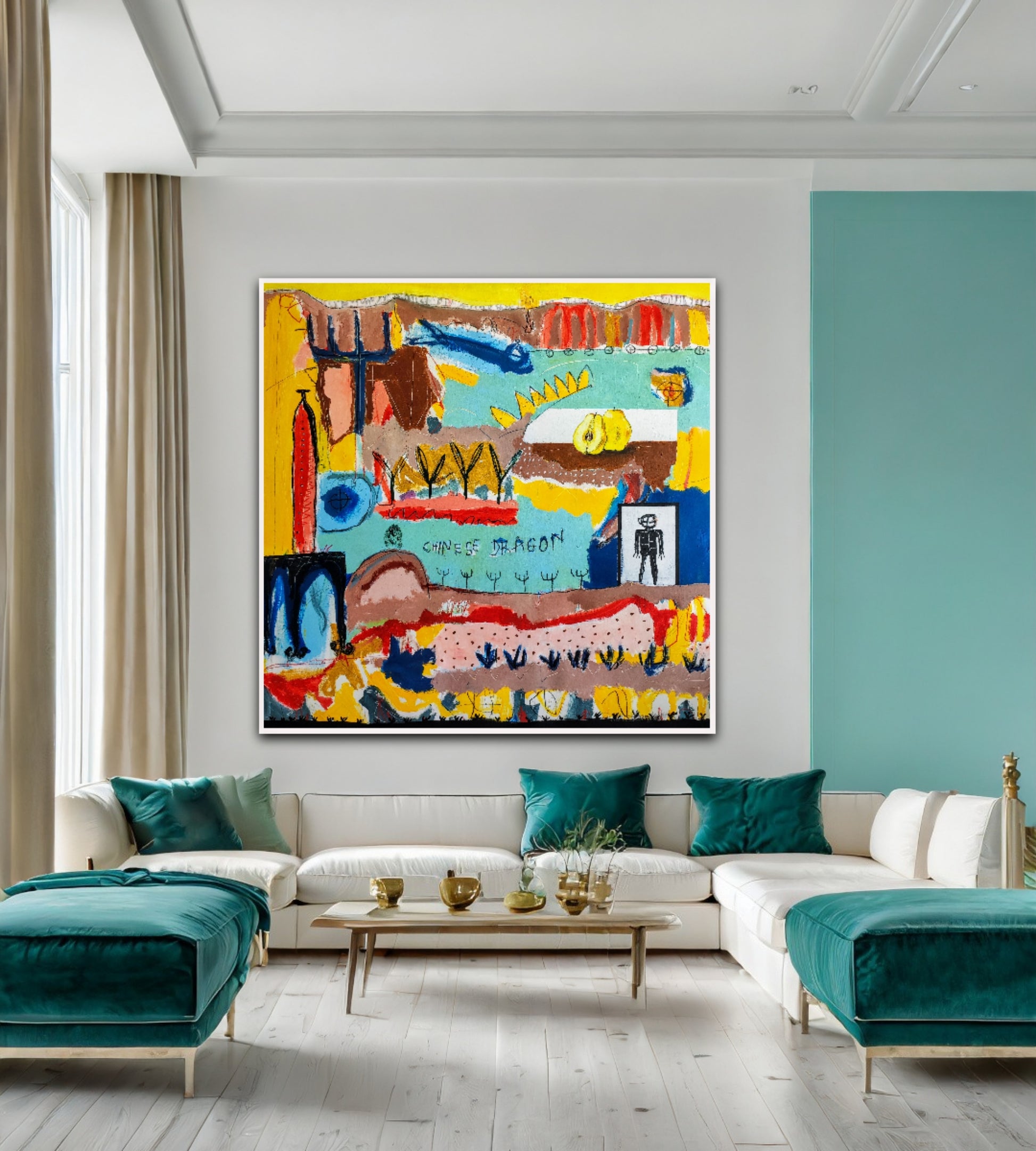 Cuadro trabajado desde la improvisación libre. Action painting con música de Chilly Gonzales.
