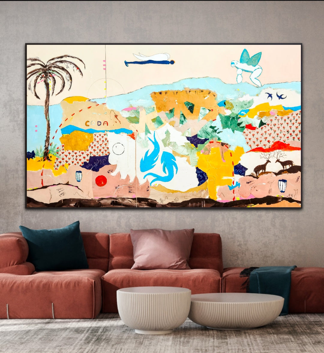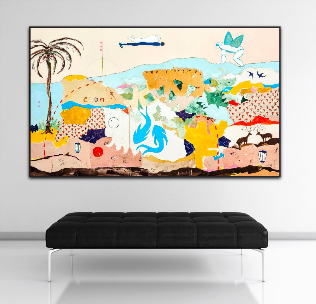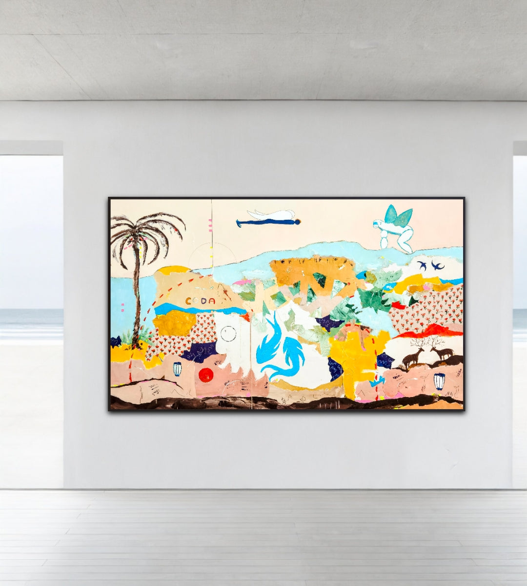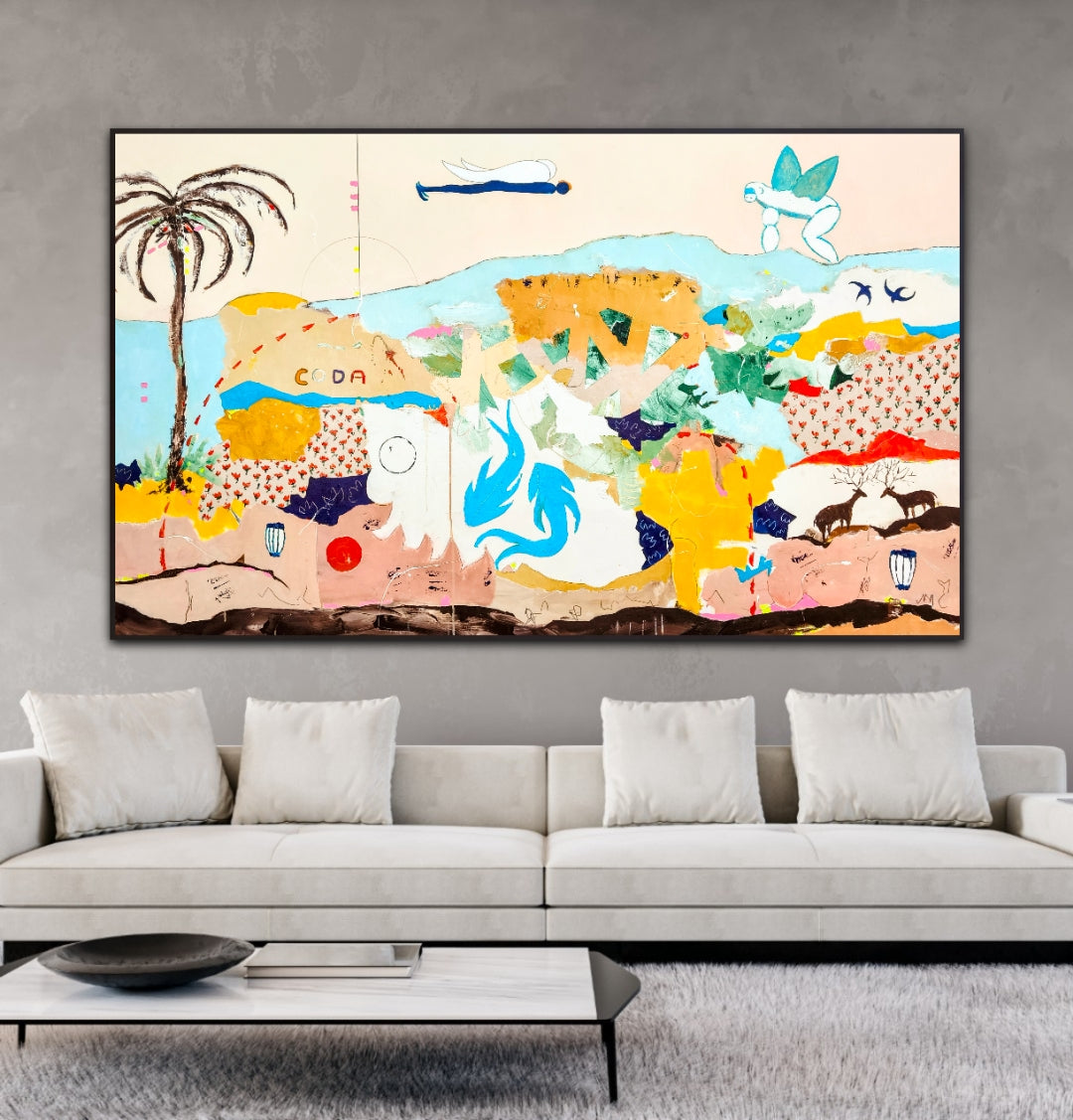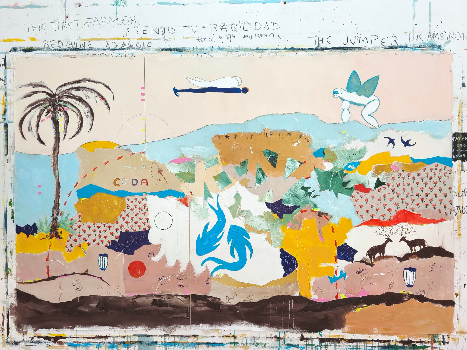 Técnica: acrílico, pigmentos, lápiz, carboncillo, gesso, stick oil.