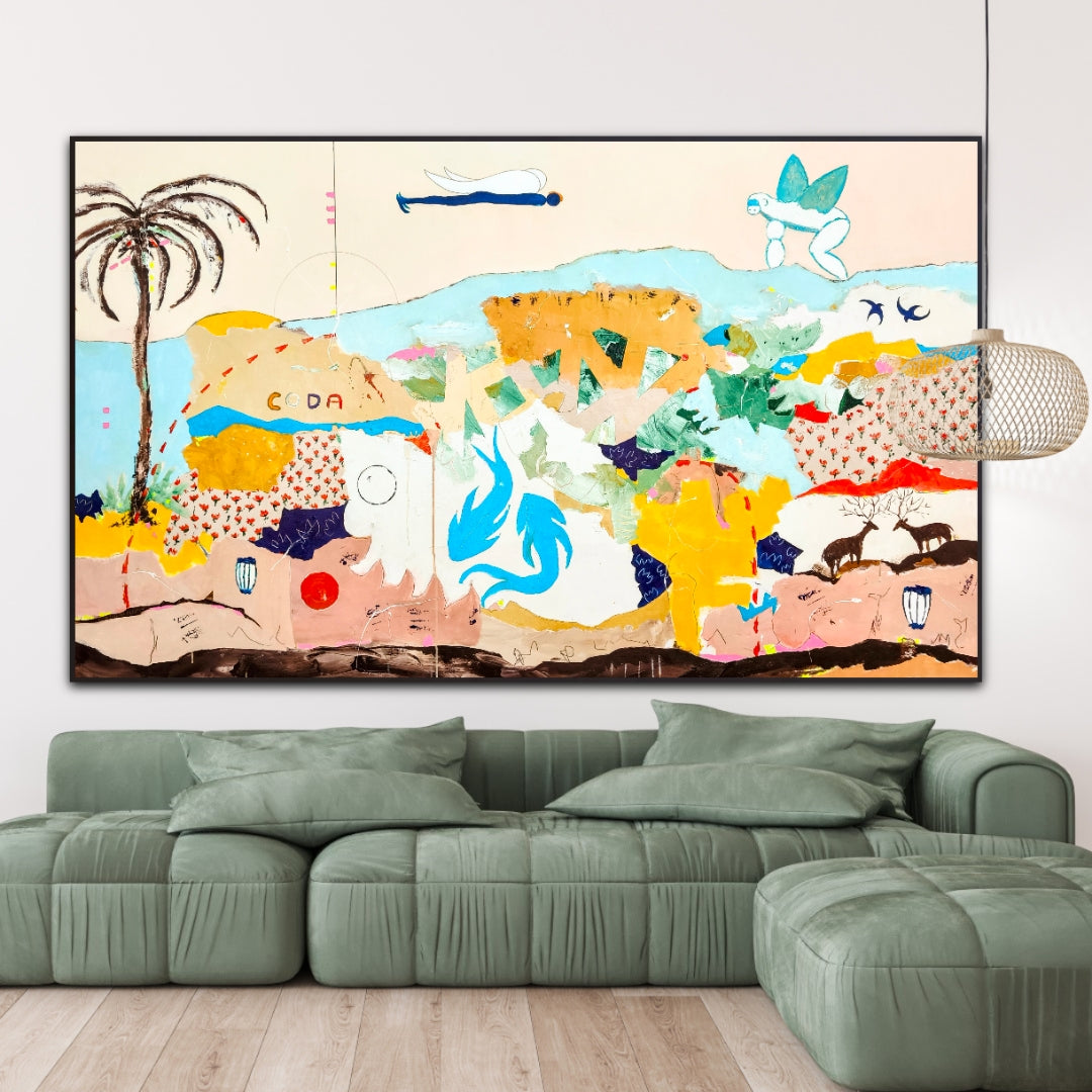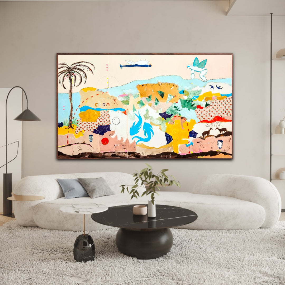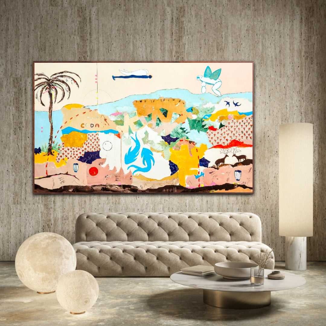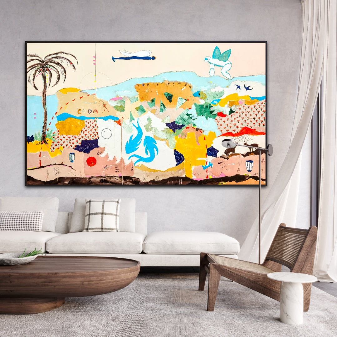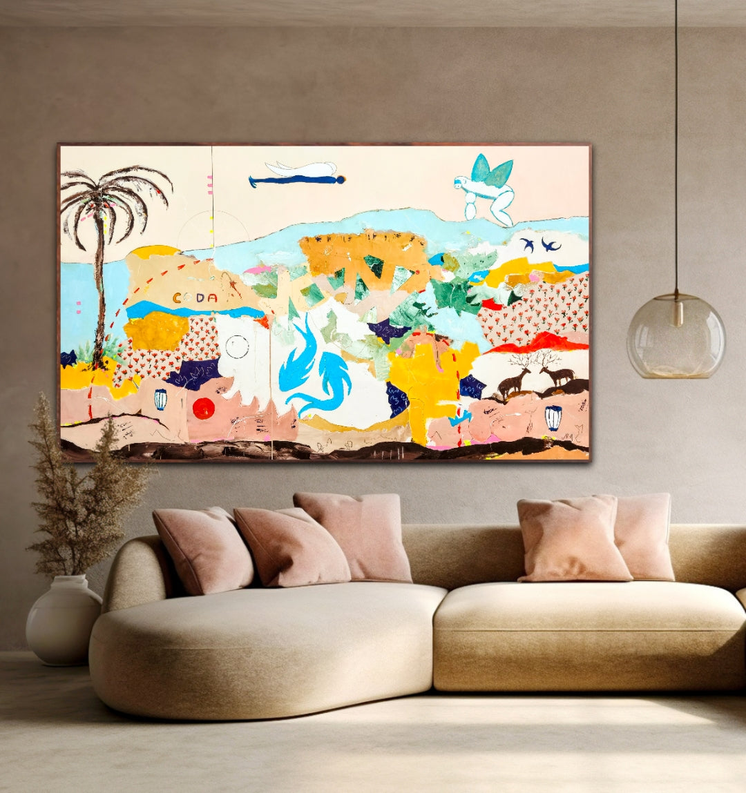 Técnica: acrílico, pigmentos, lápiz, carboncillo, gesso, stick oil.
