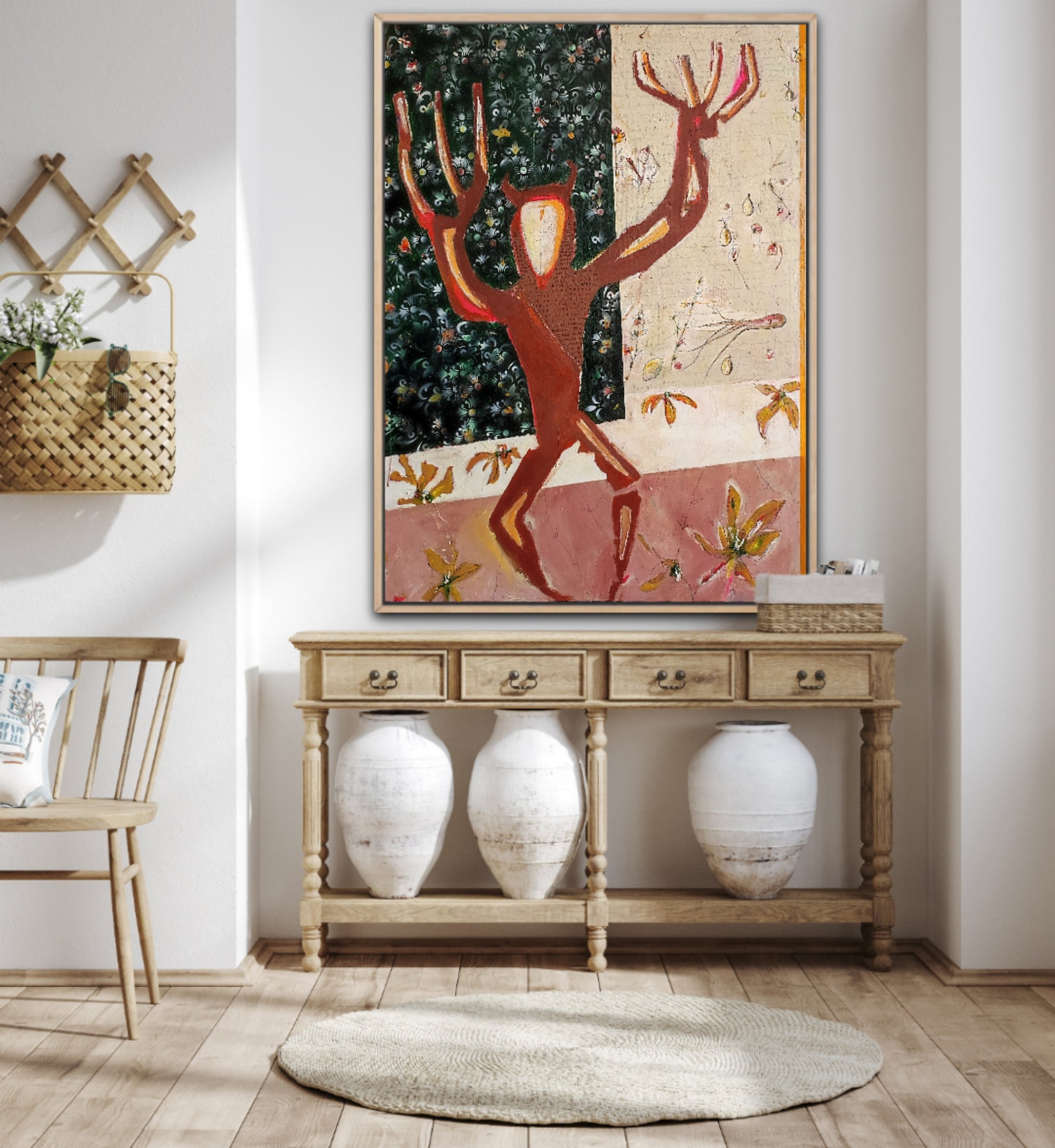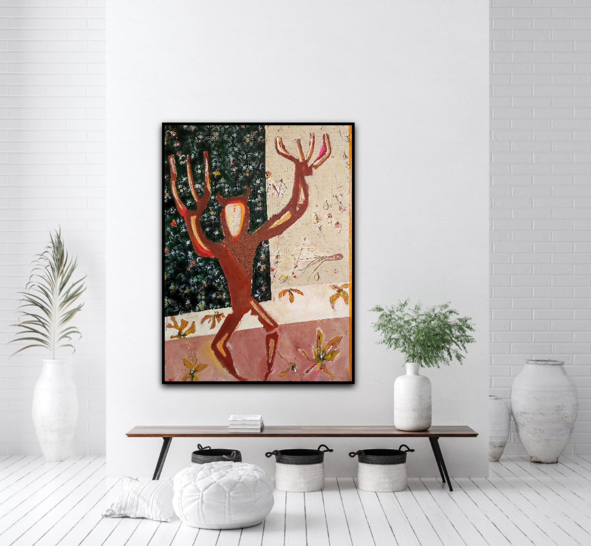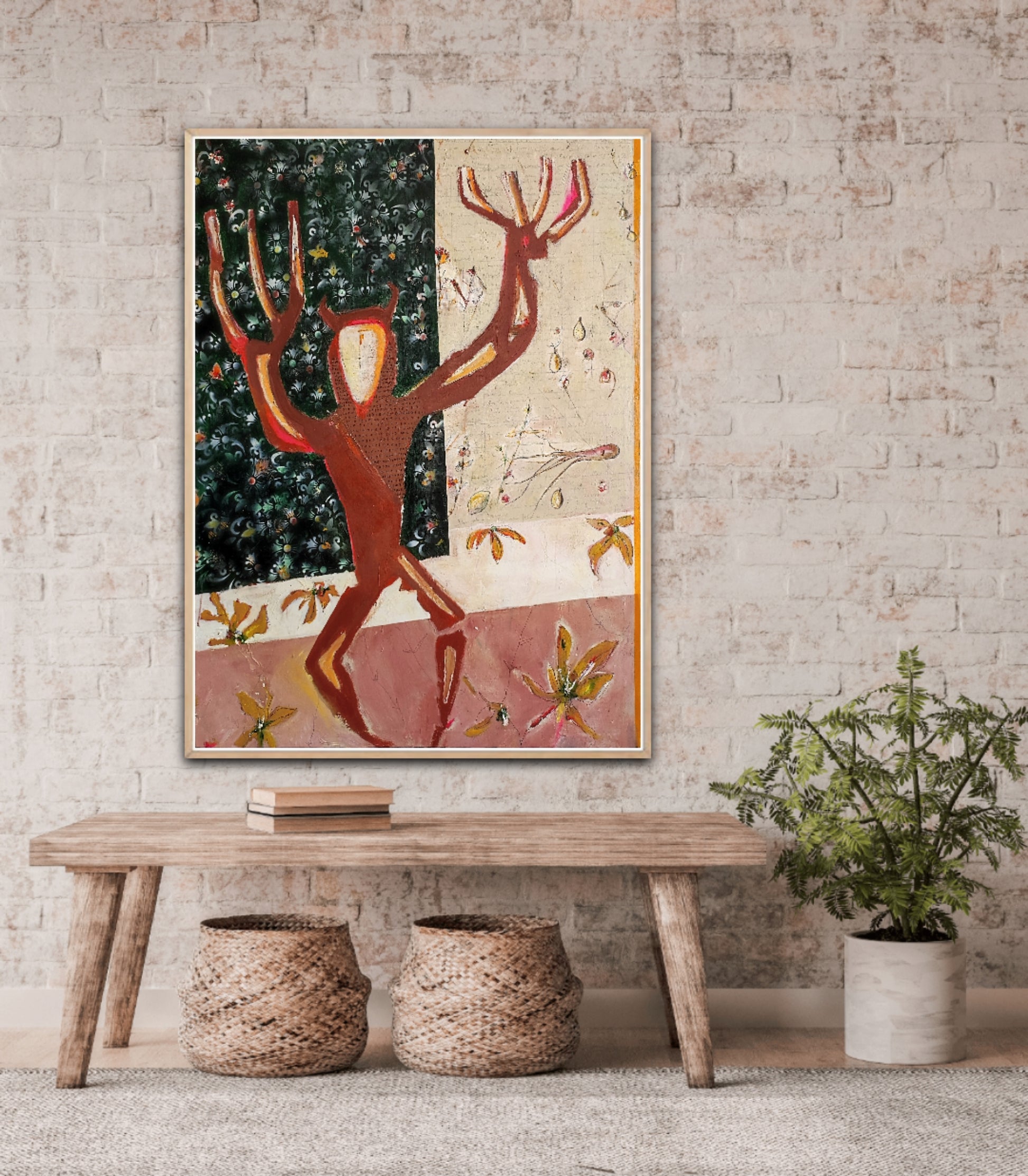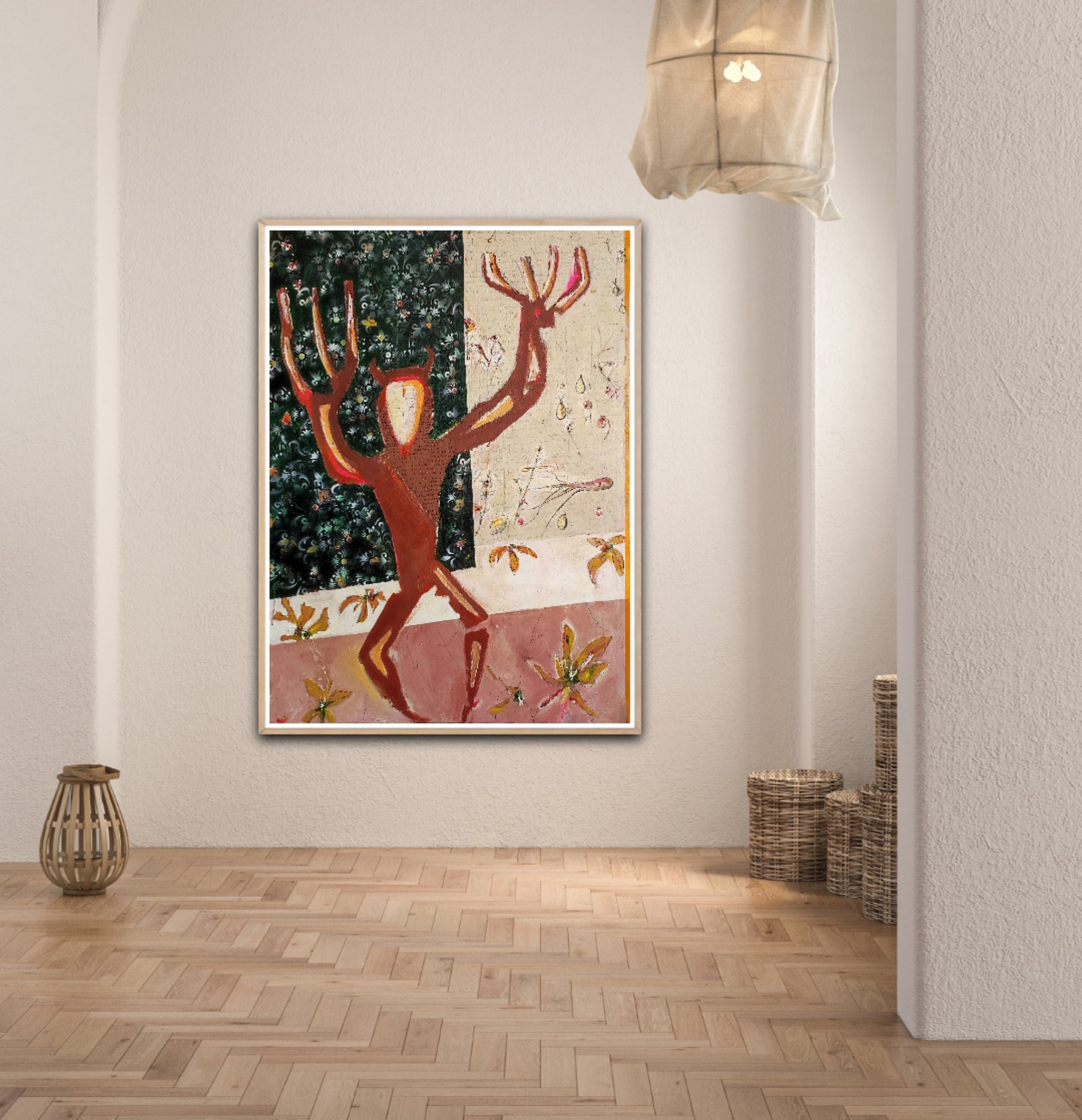 La obra recrea a un "orante" inspirado en el arte macroesquemático alicantino que podemos encontrar en las paredes del santuario de Petracos (Alicante).