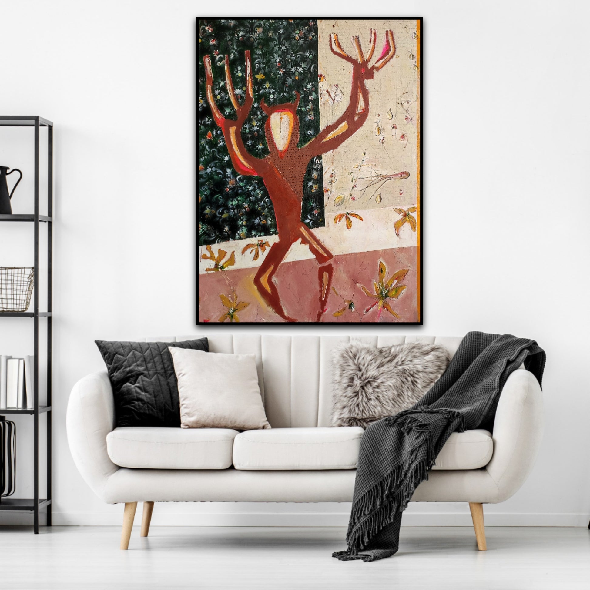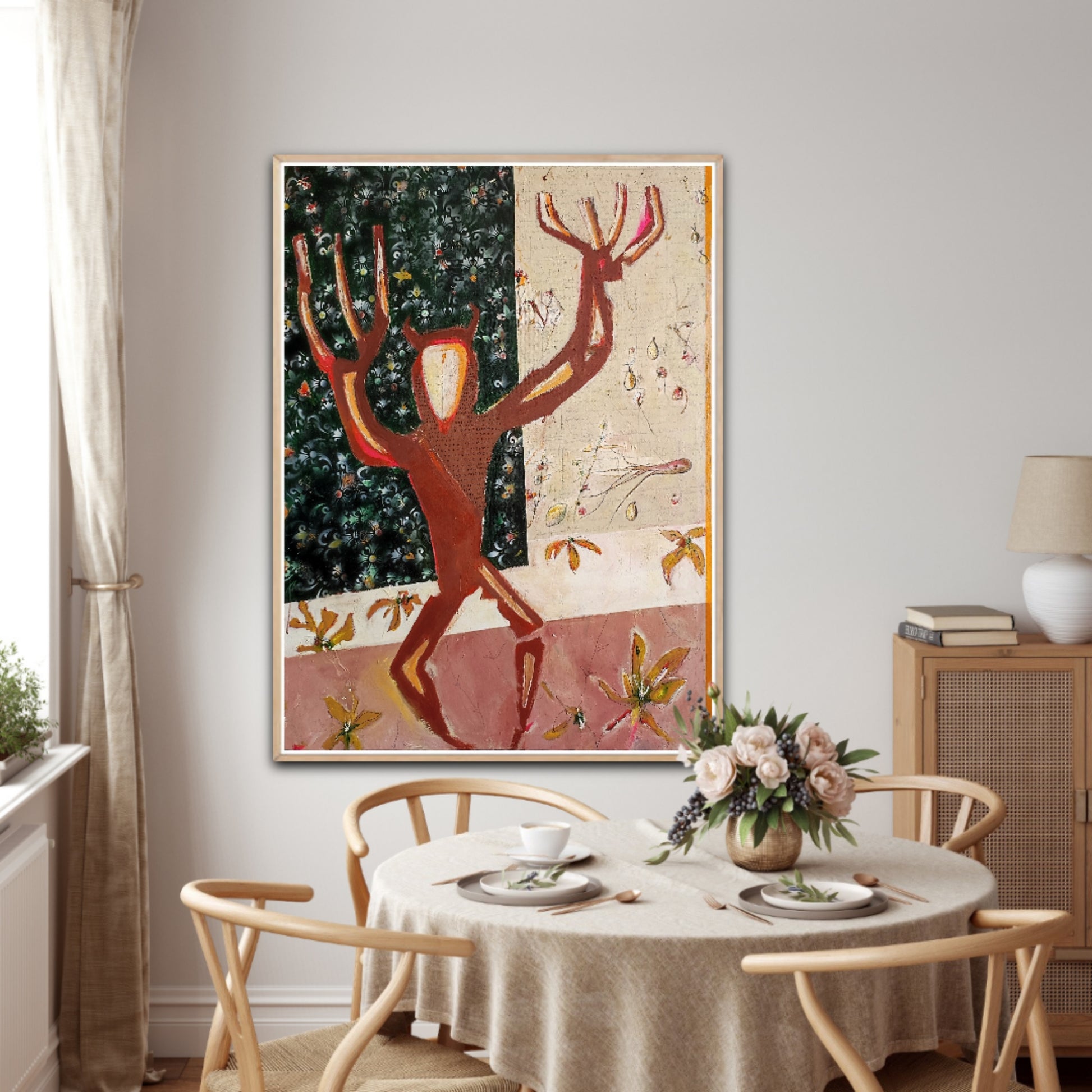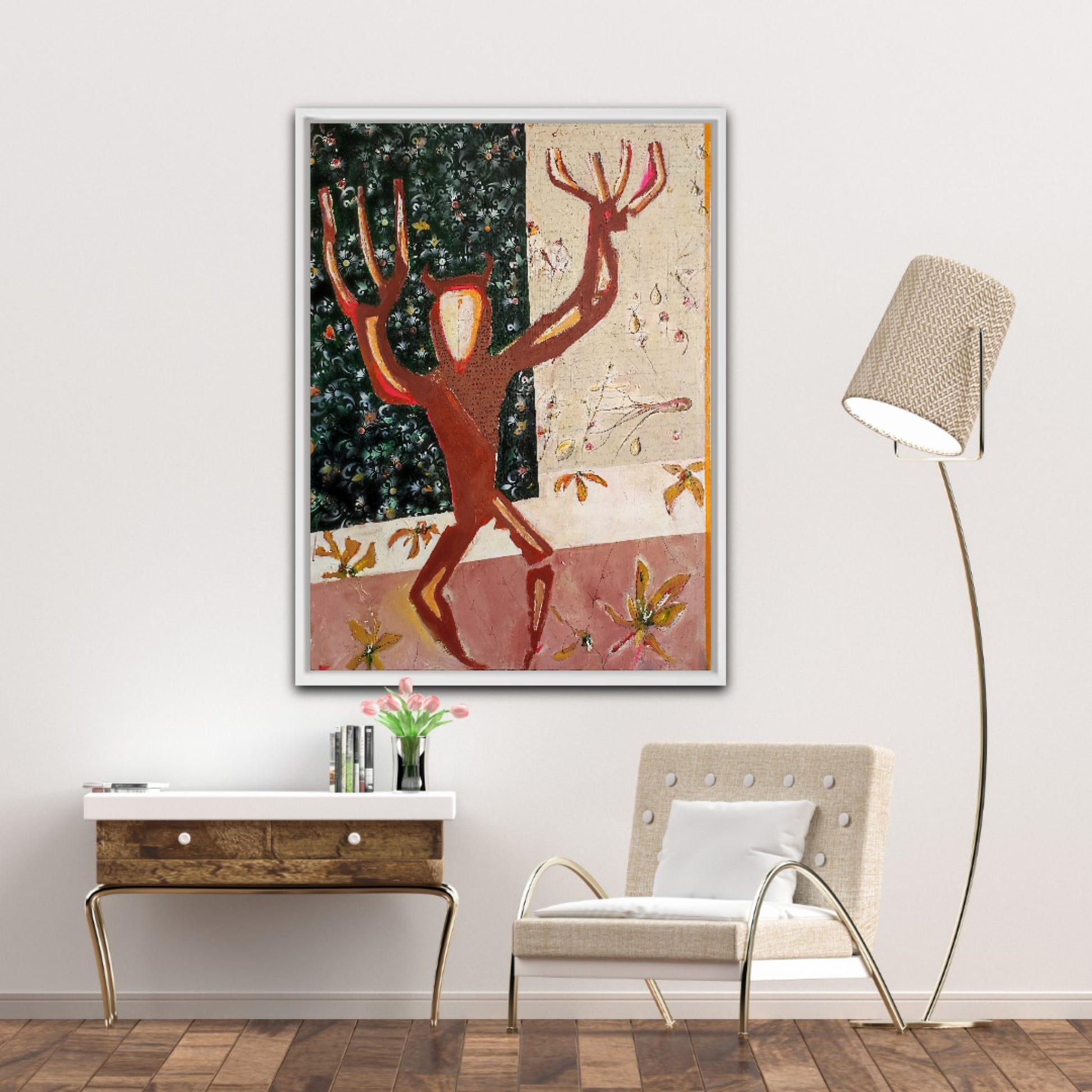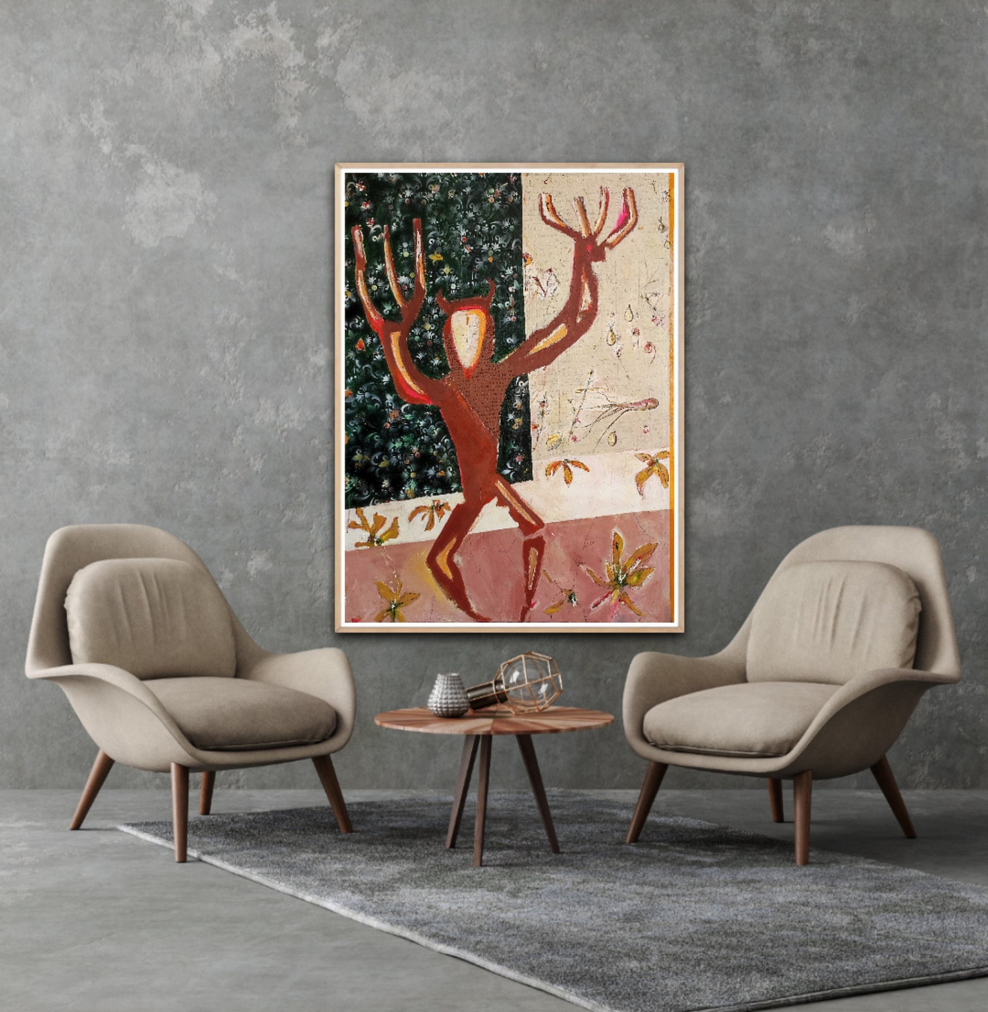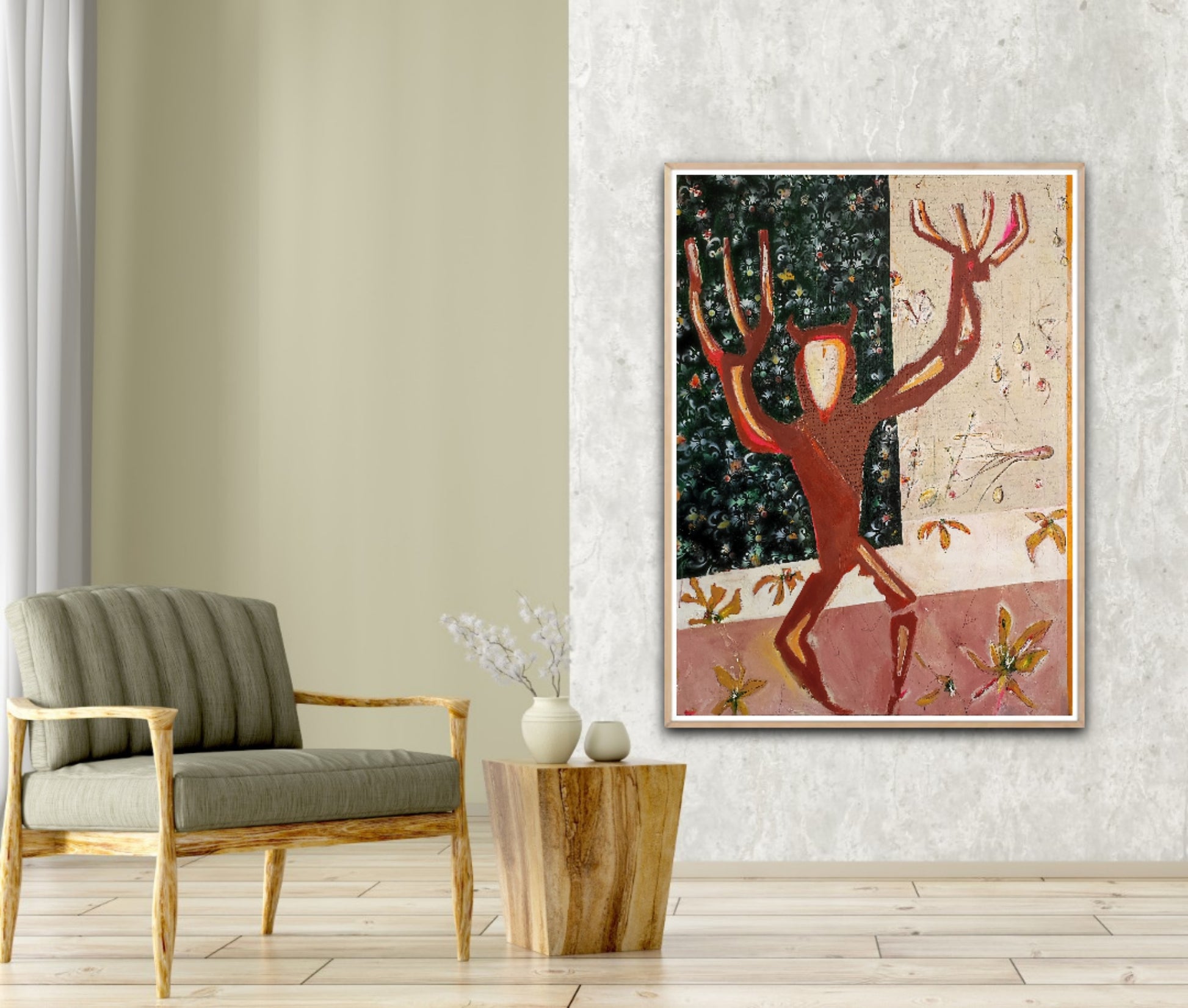 La obra recrea a un "orante" inspirado en el arte macroesquemático alicantino que podemos encontrar en las paredes del santuario de Petracos (Alicante).