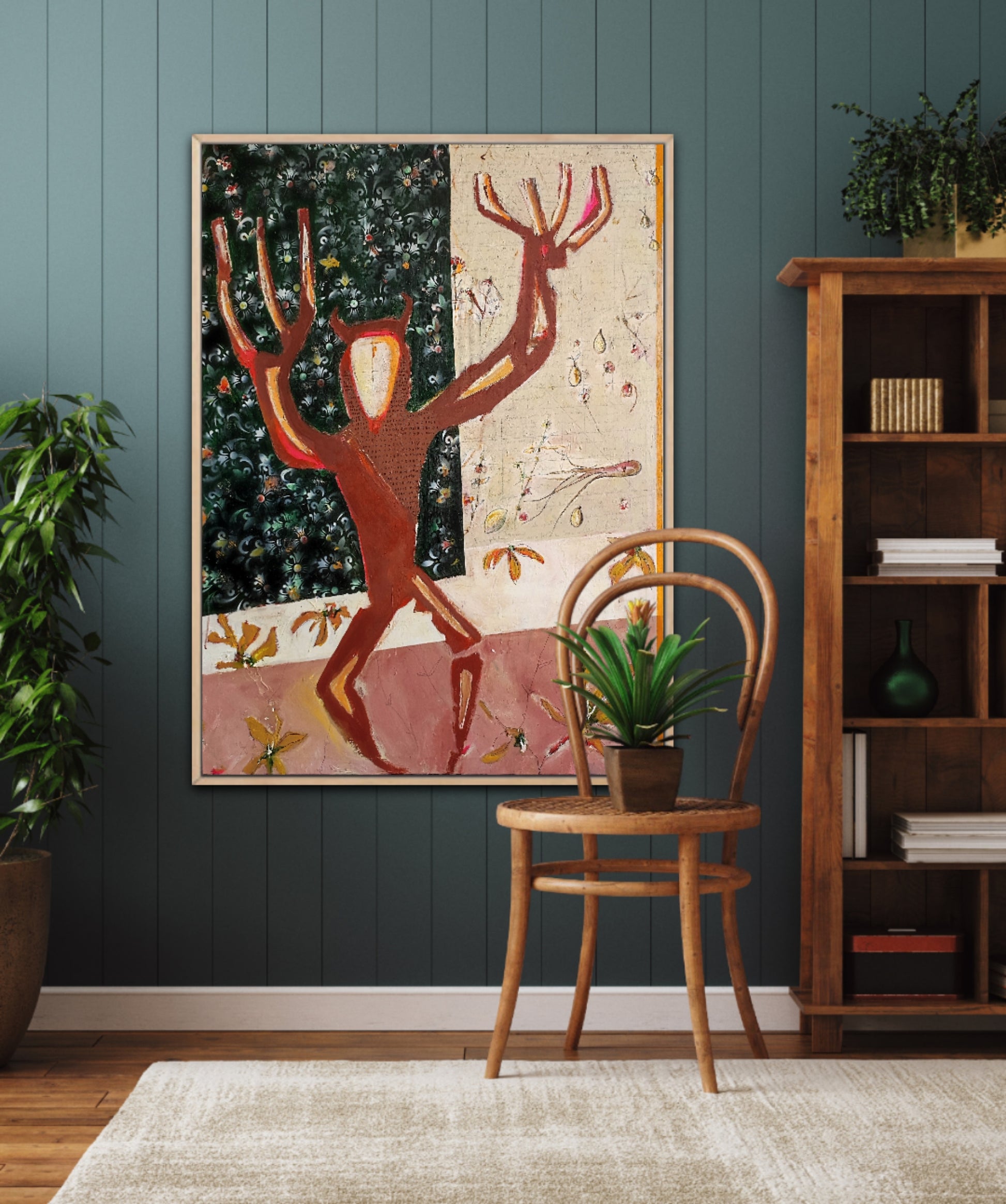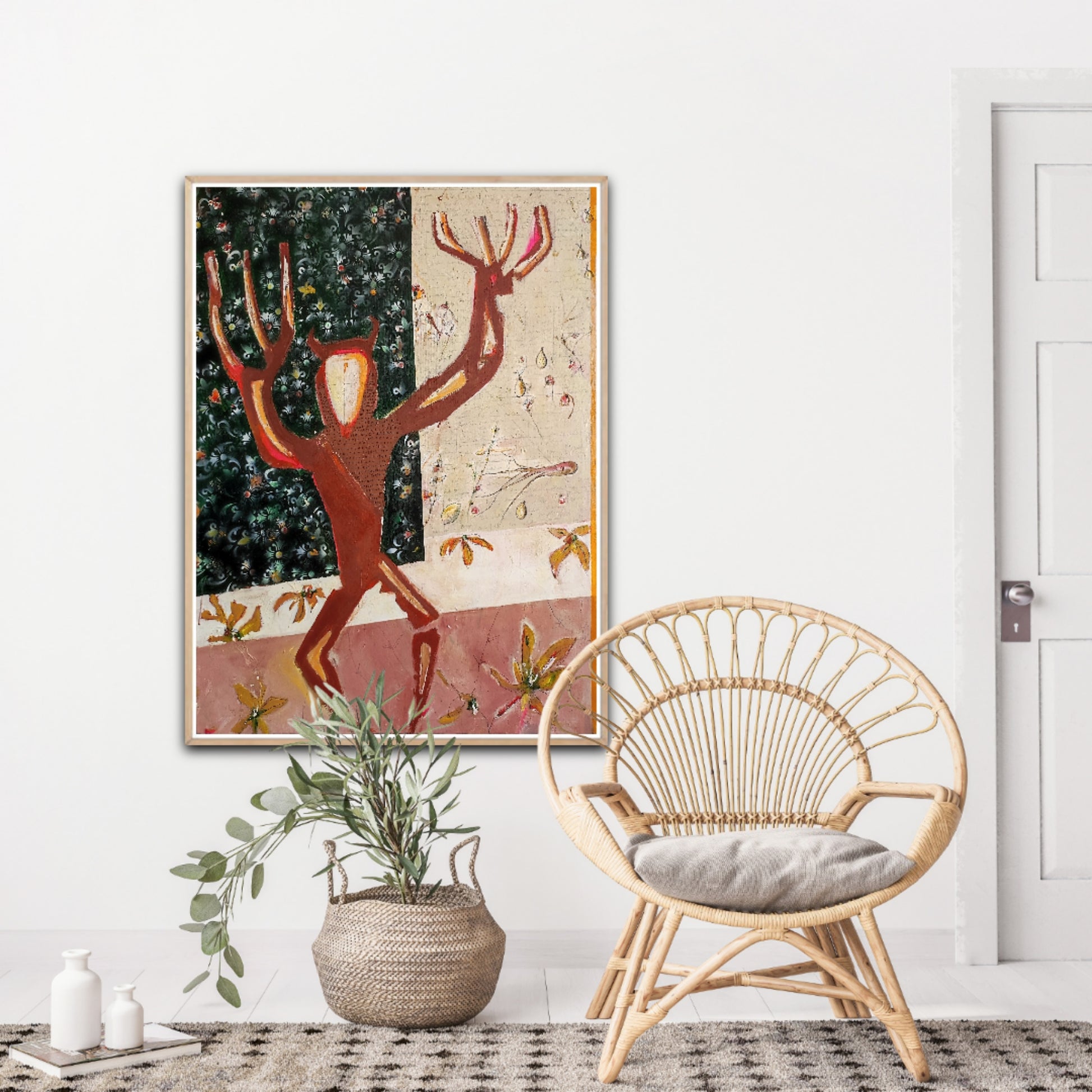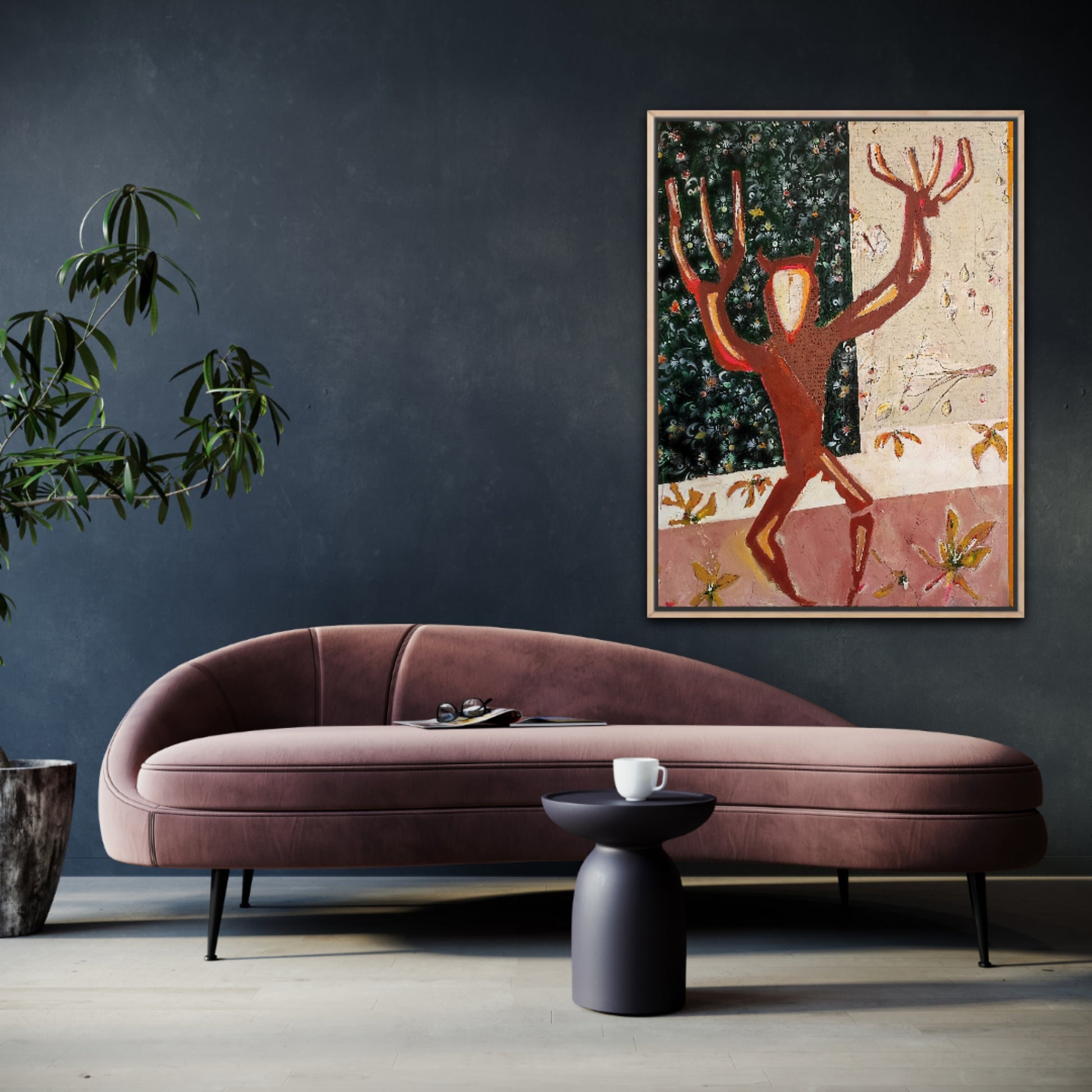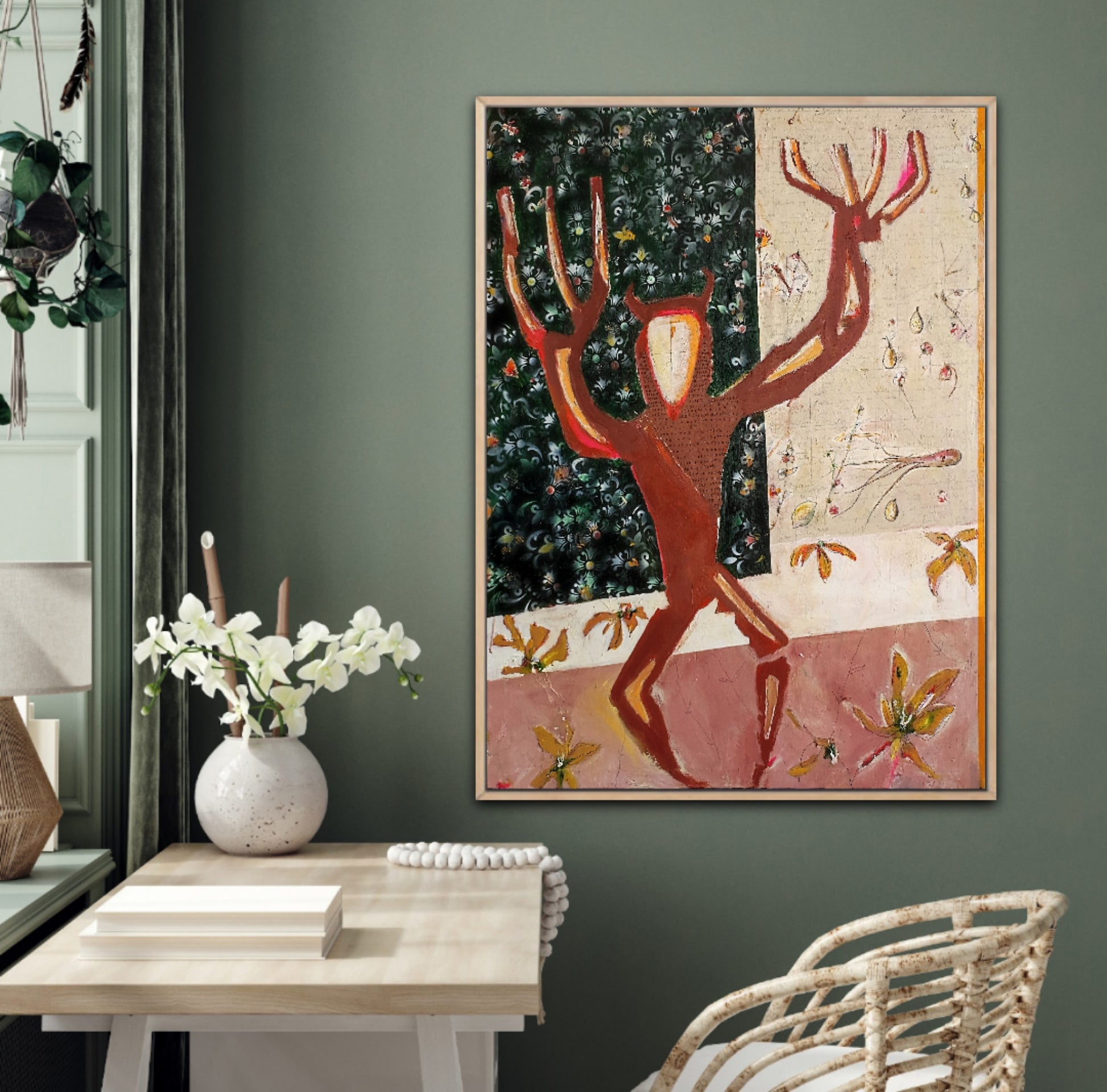 La obra recrea a un "orante" inspirado en el arte macroesquemático alicantino que podemos encontrar en las paredes del santuario de Petracos (Alicante).