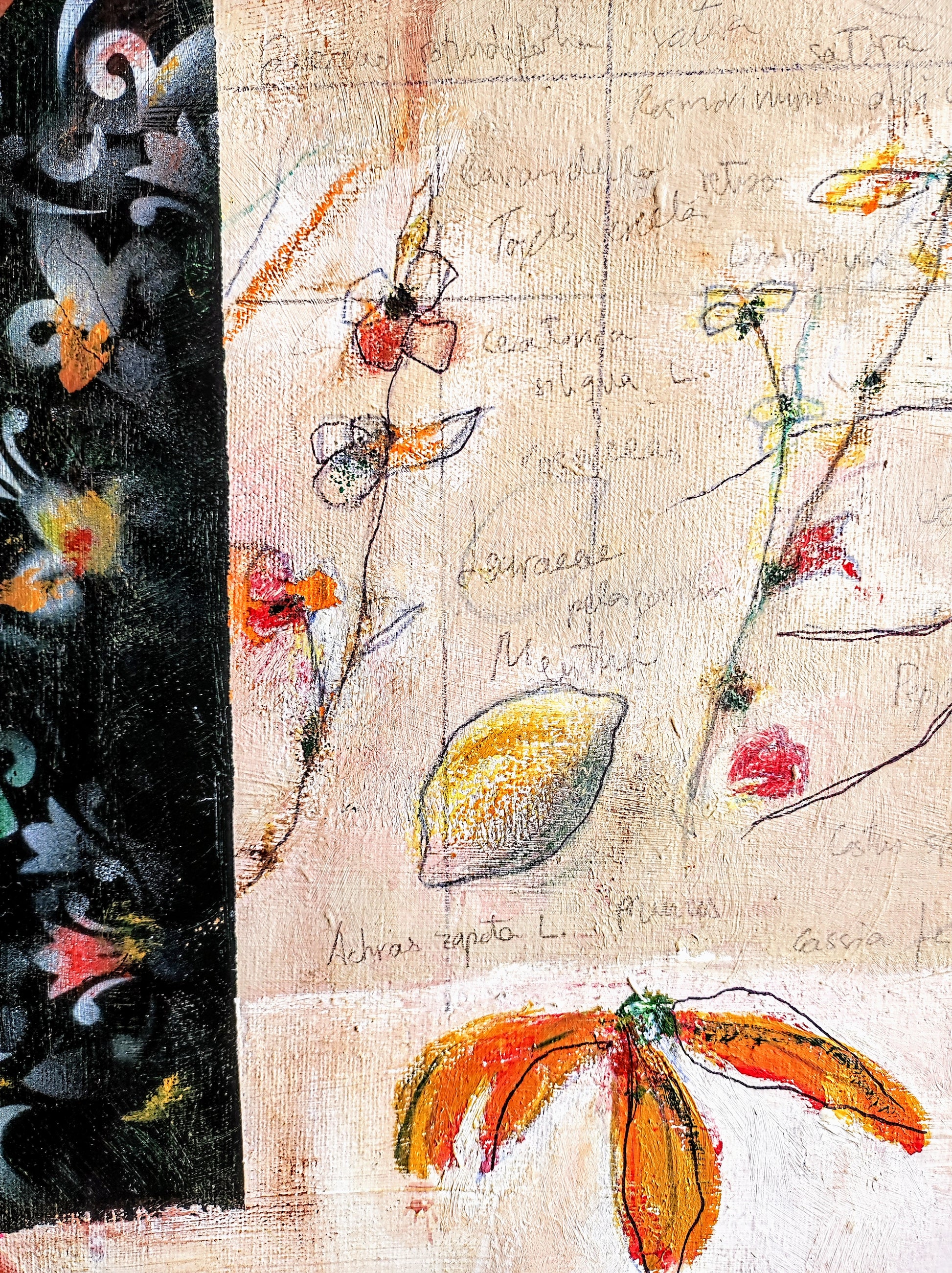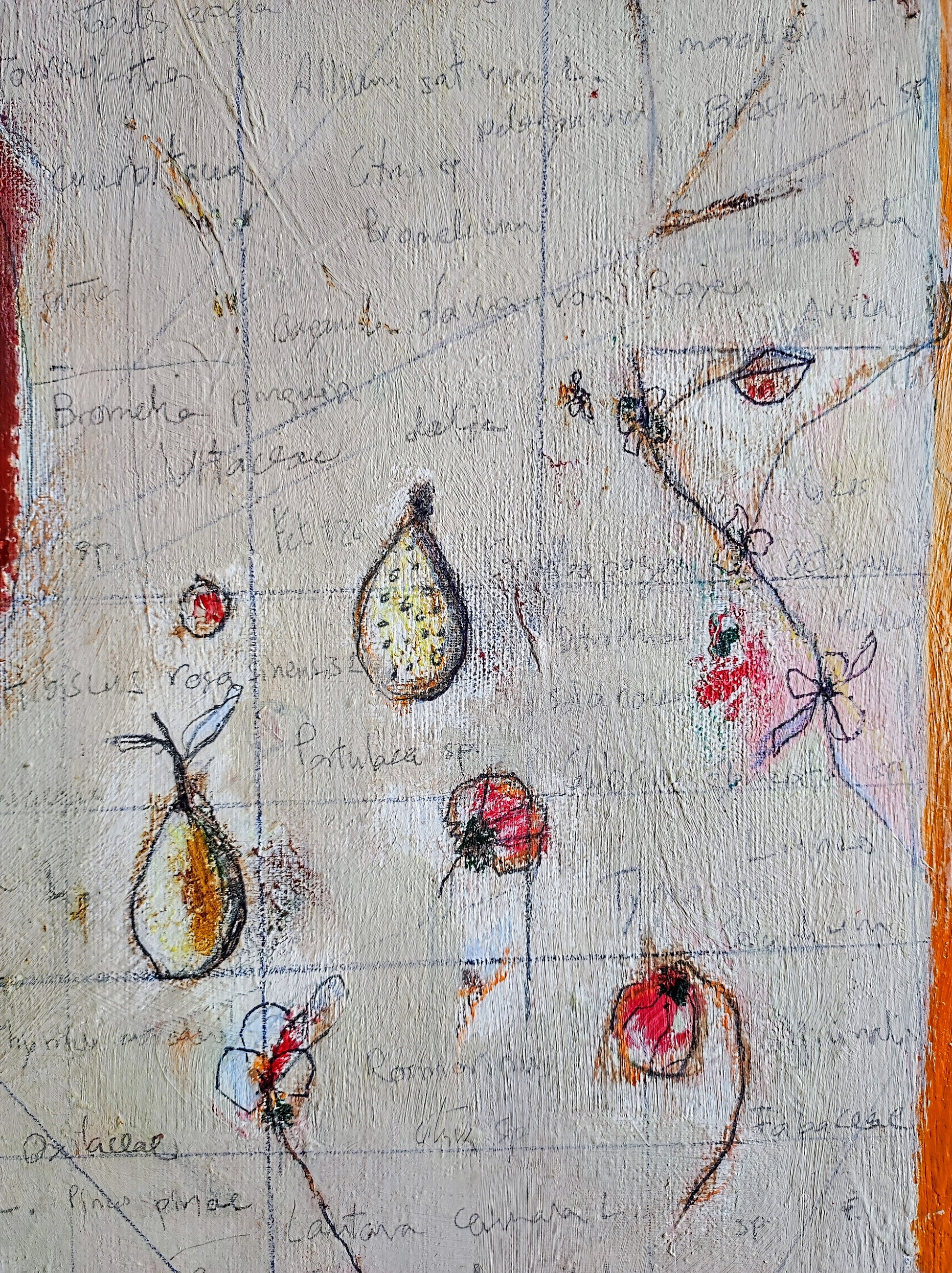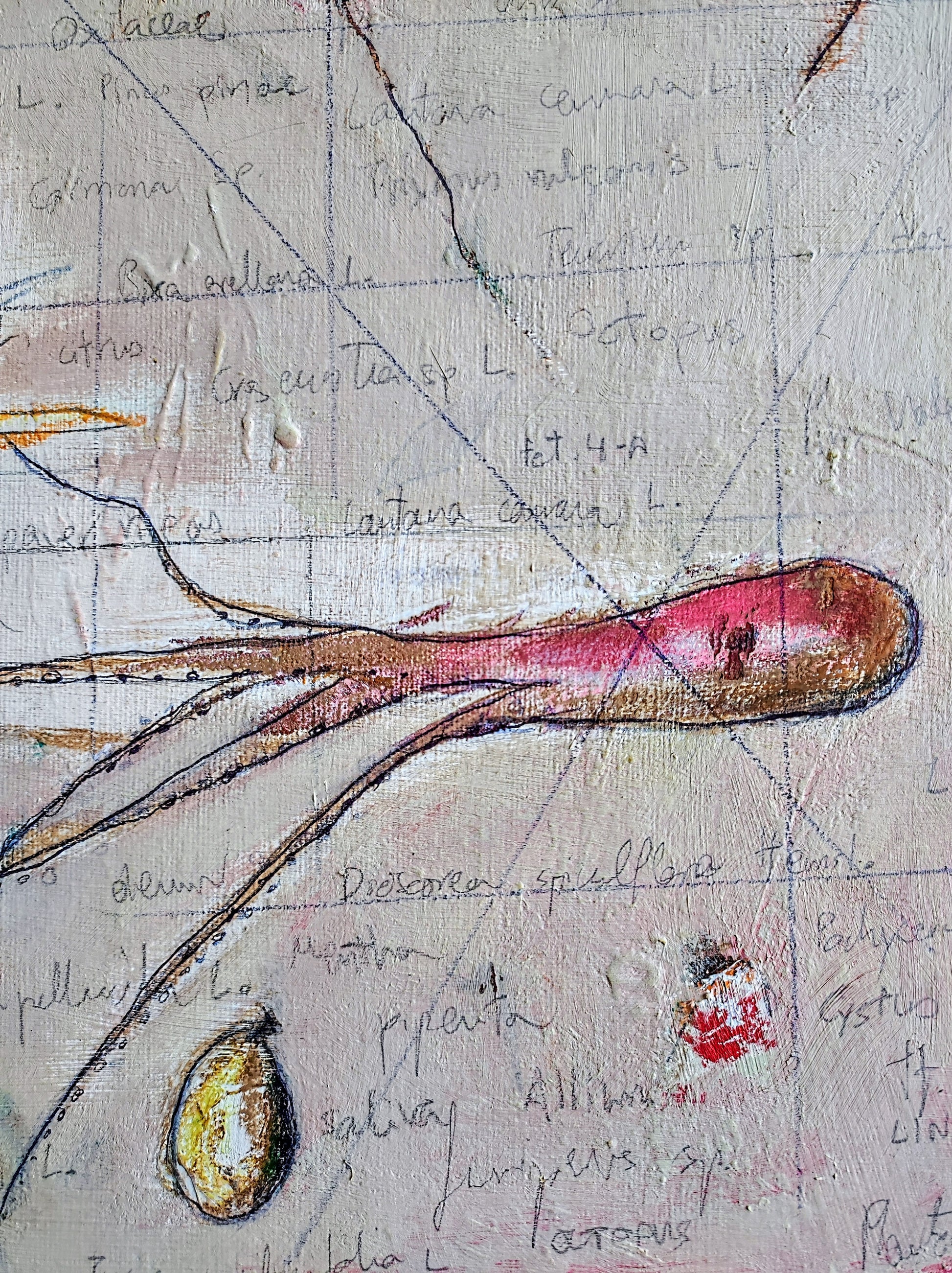 Técnica: pigmentos, acrílico, gesso, carboncillo, ceras, pastel, lápiz, bolígrafo y pintura en spray.