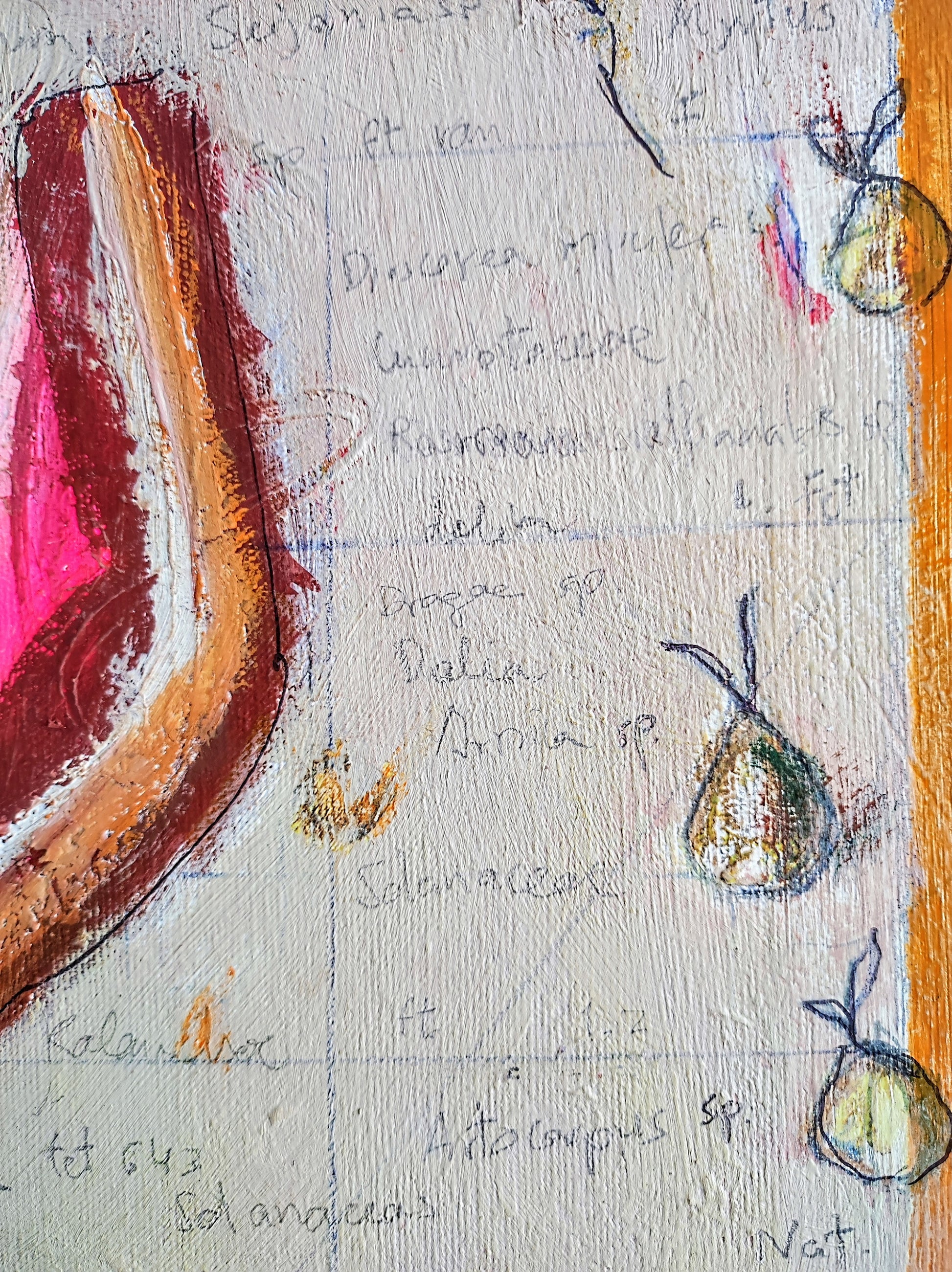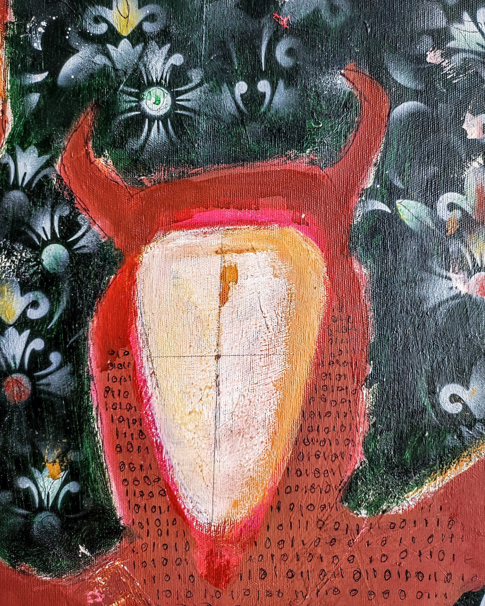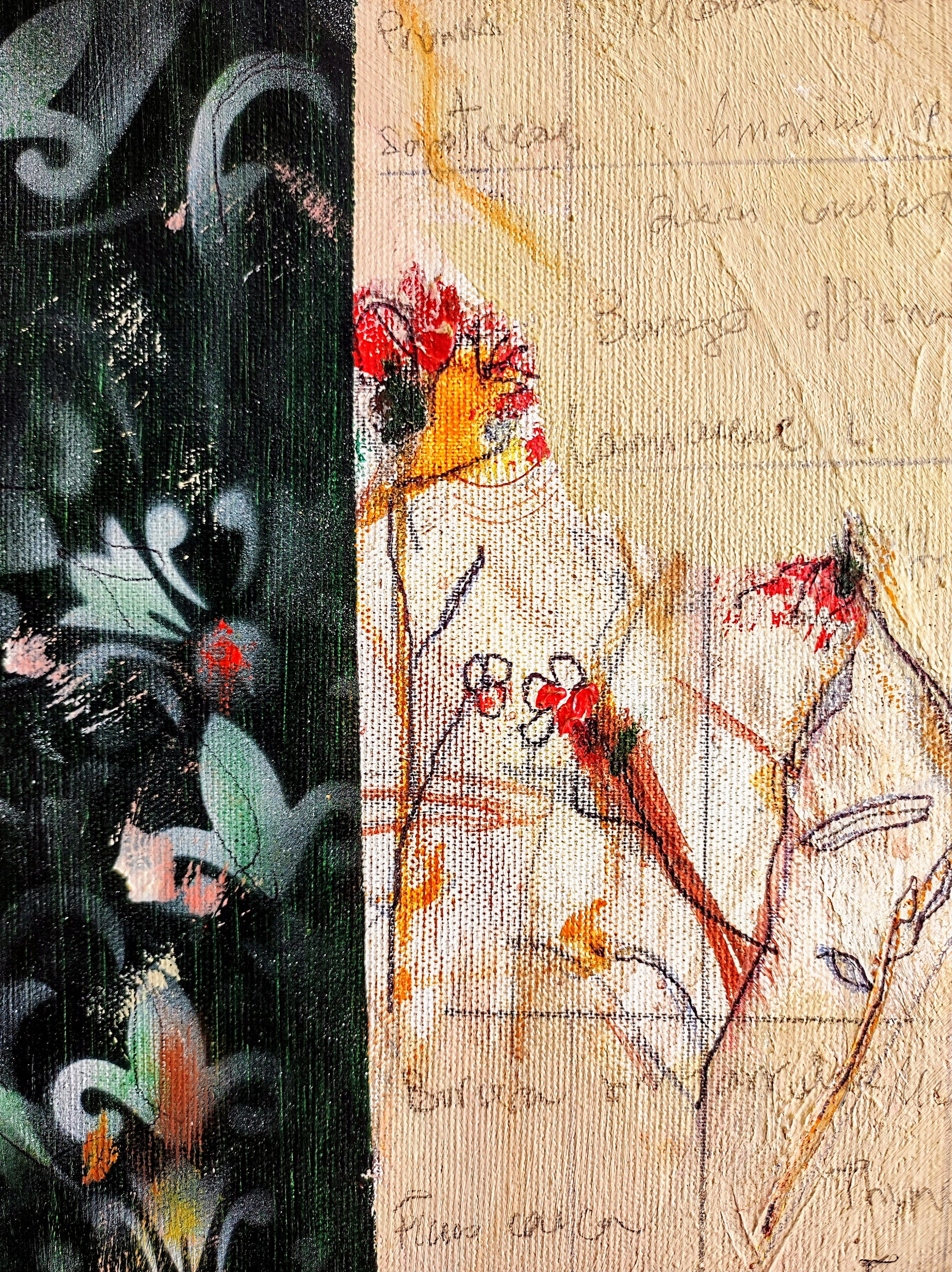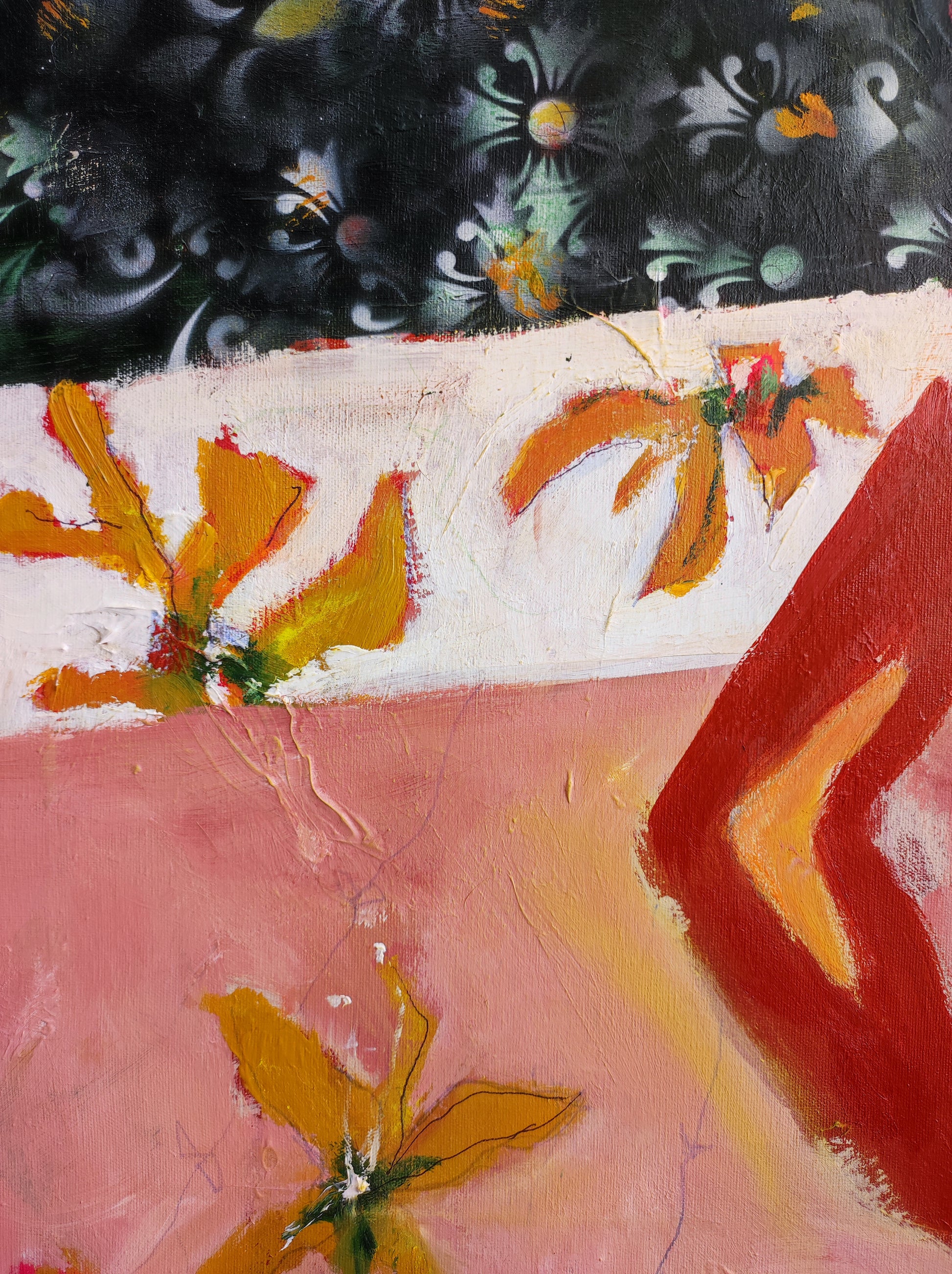 Técnica: pigmentos, acrílico, gesso, carboncillo, ceras, pastel, lápiz, bolígrafo y pintura en spray.