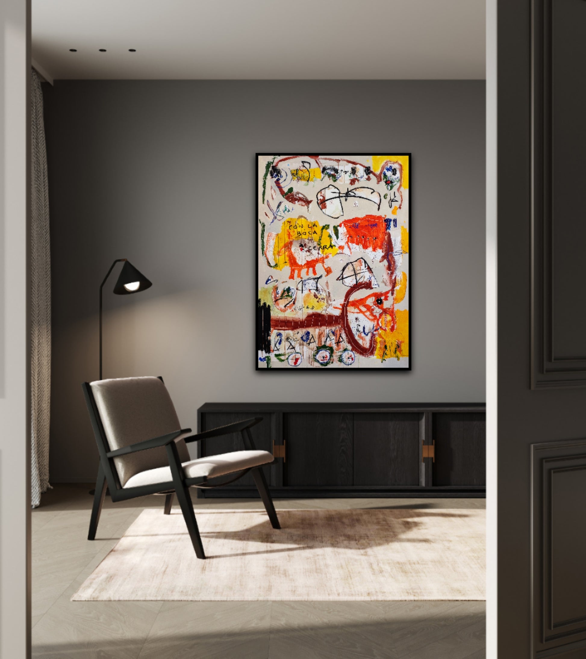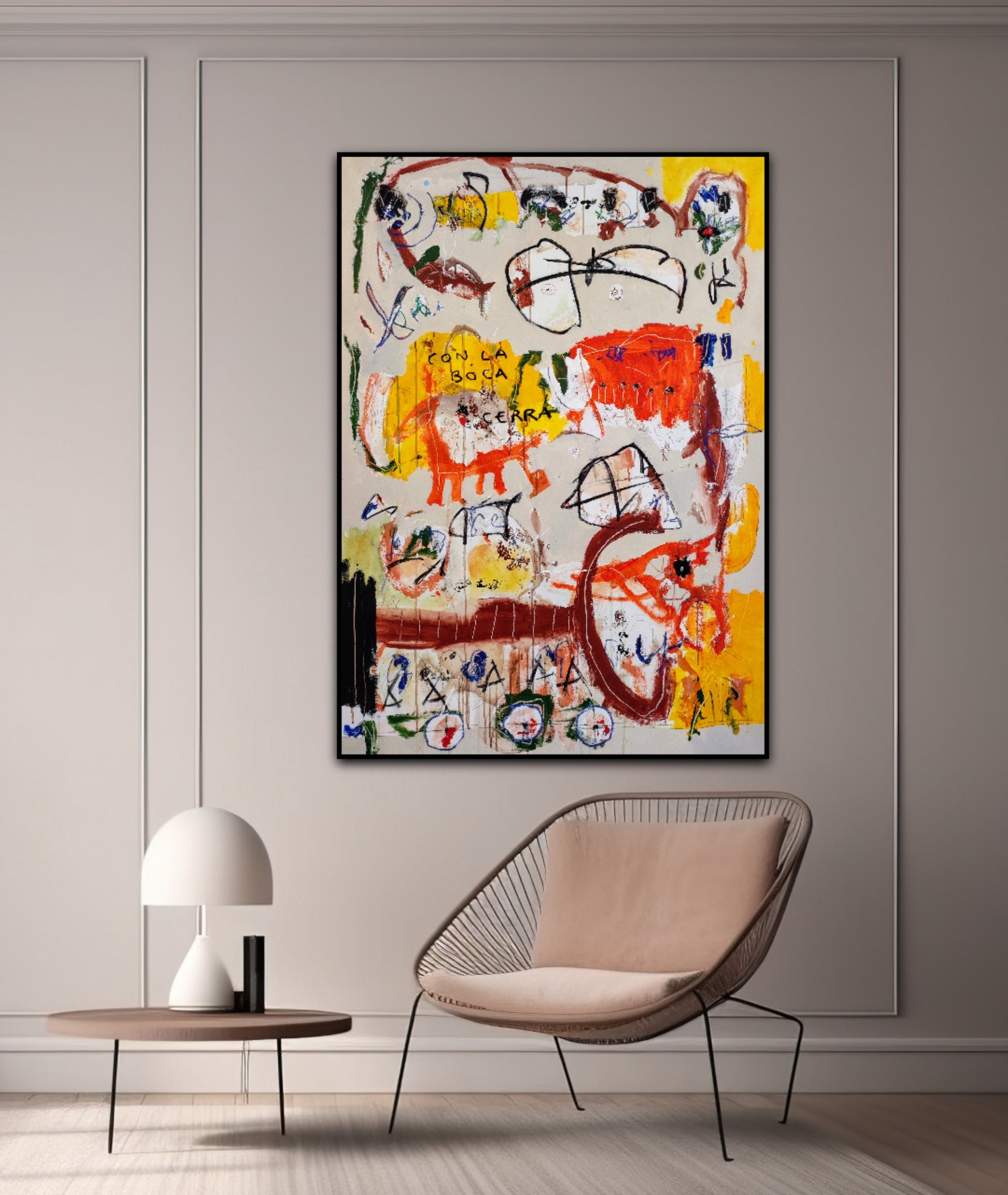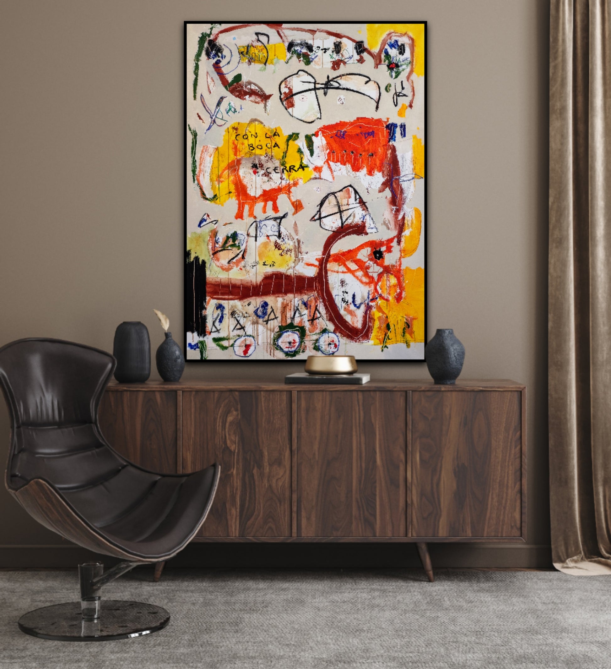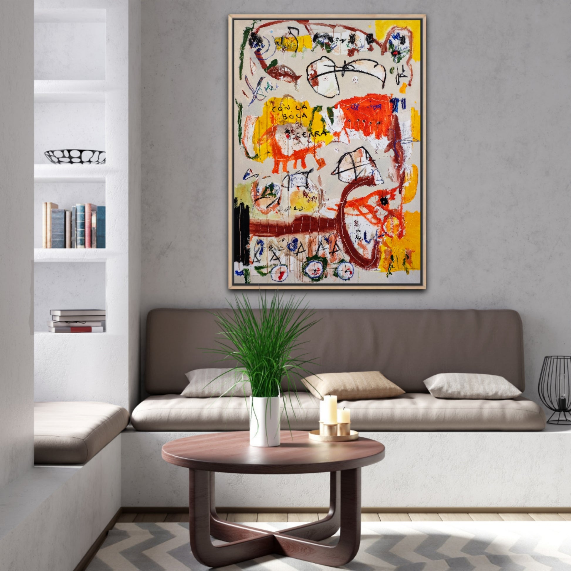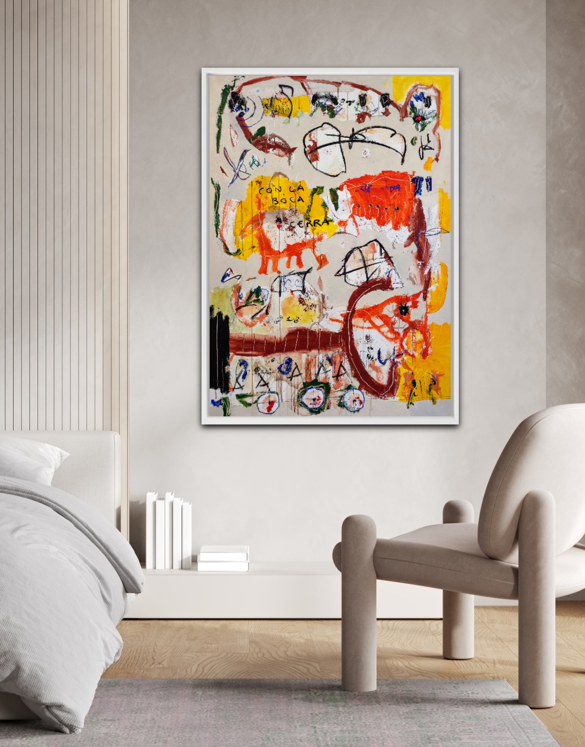 Técnica: acrílico, pigmentos, ceras, carboncillo y lápiz.