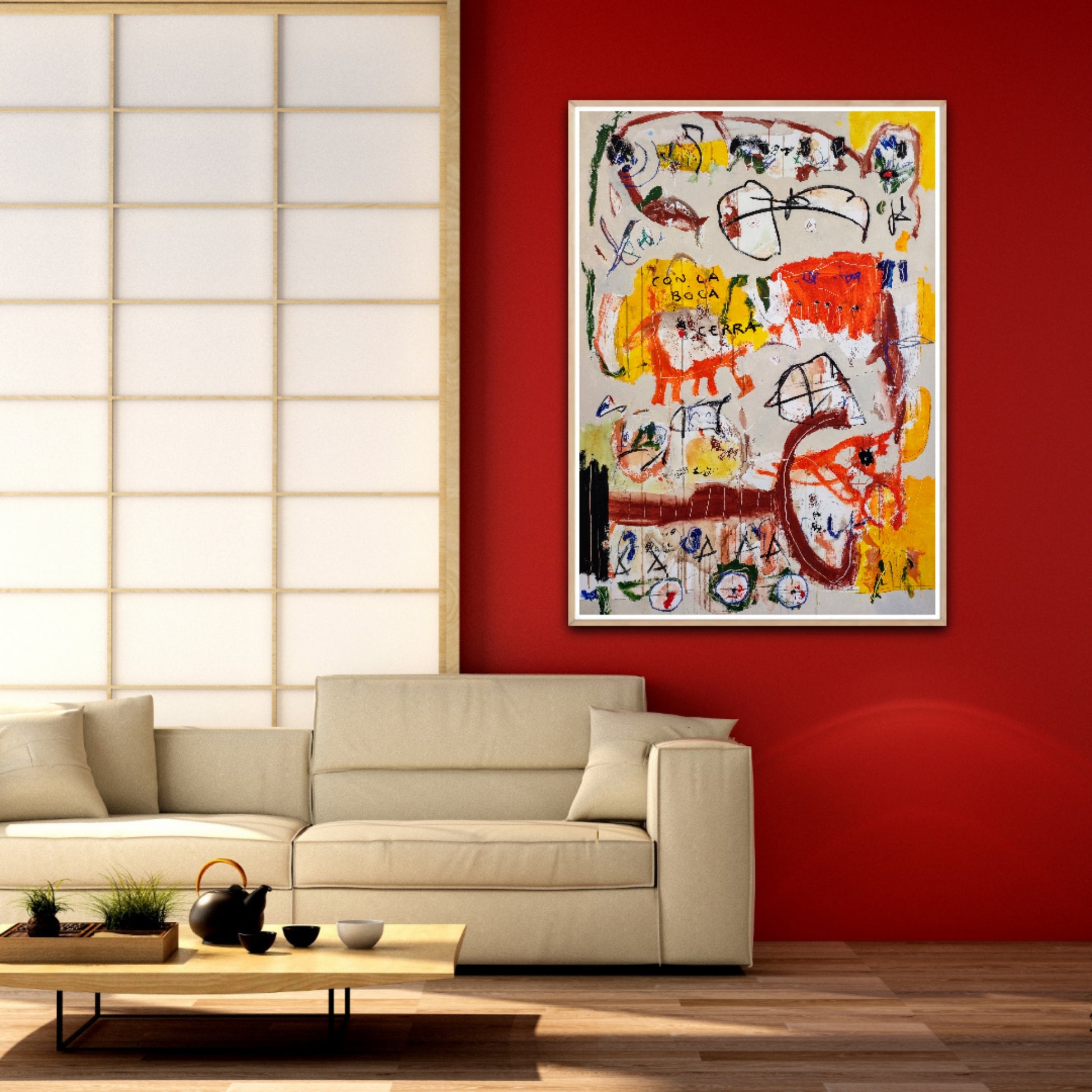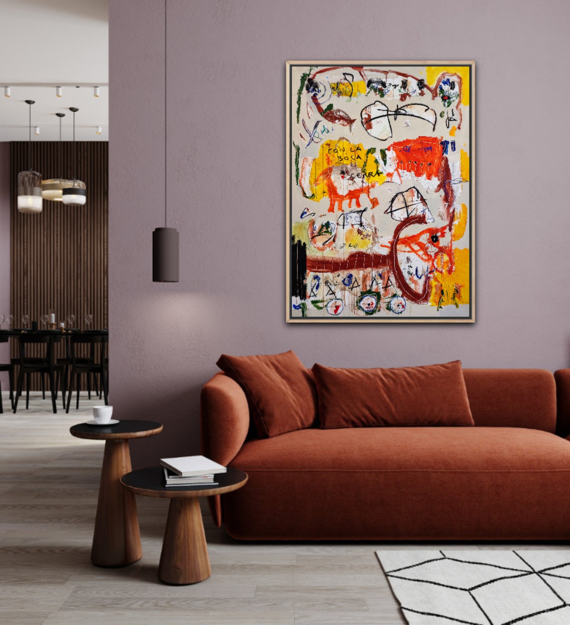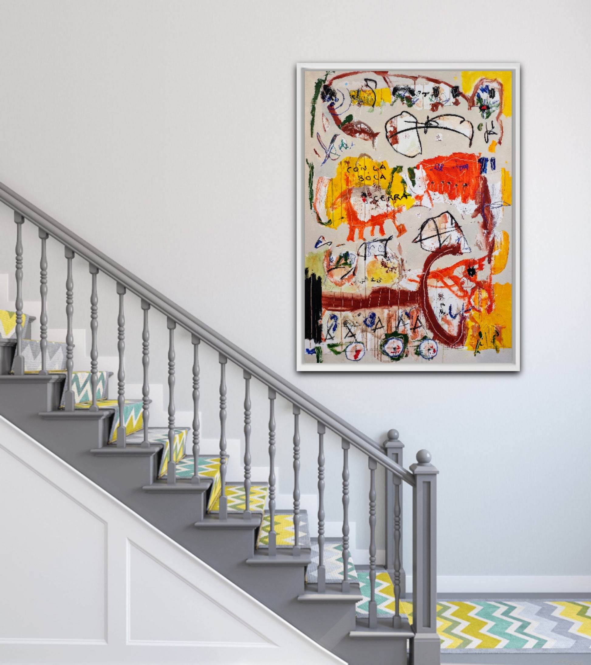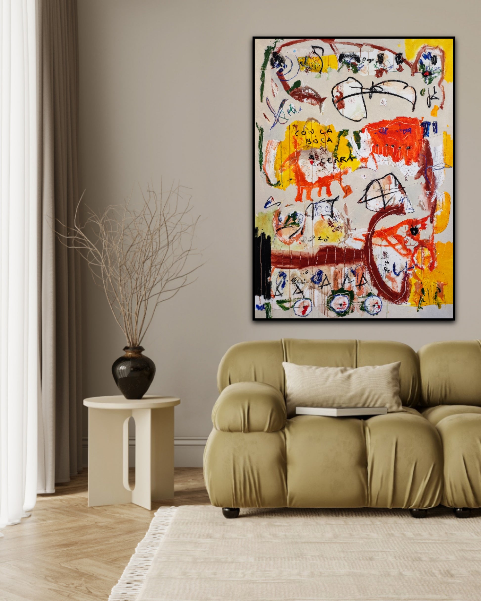 Técnica: acrílico, pigmentos, ceras, carboncillo y lápiz.