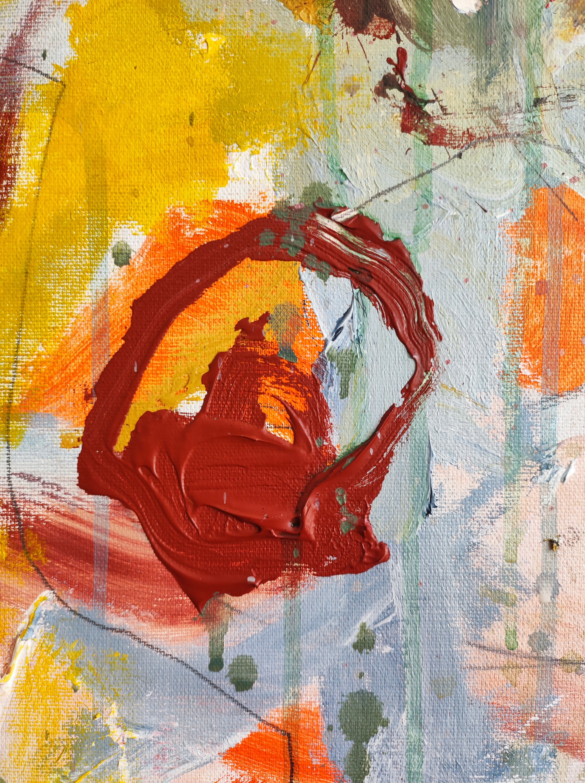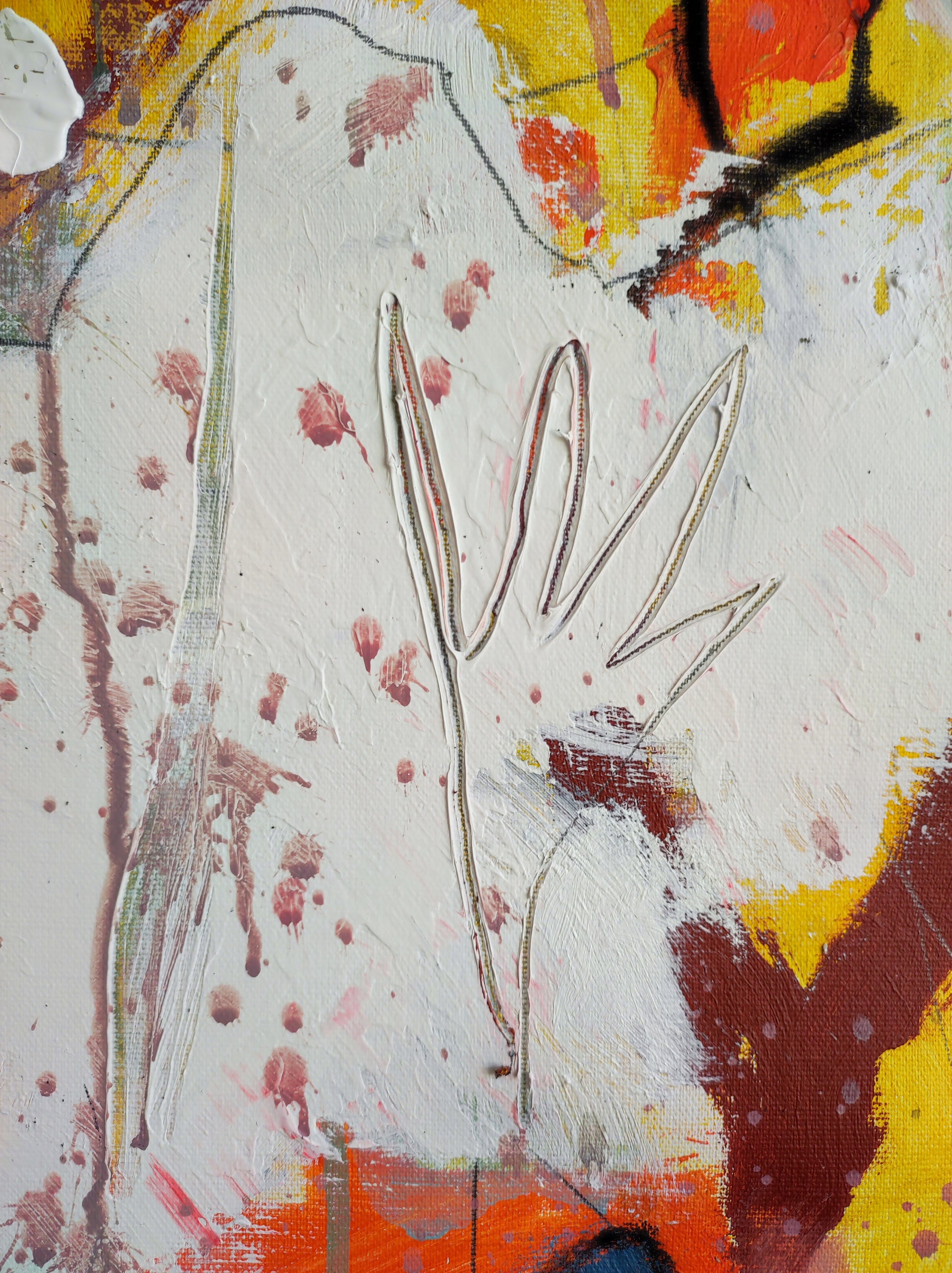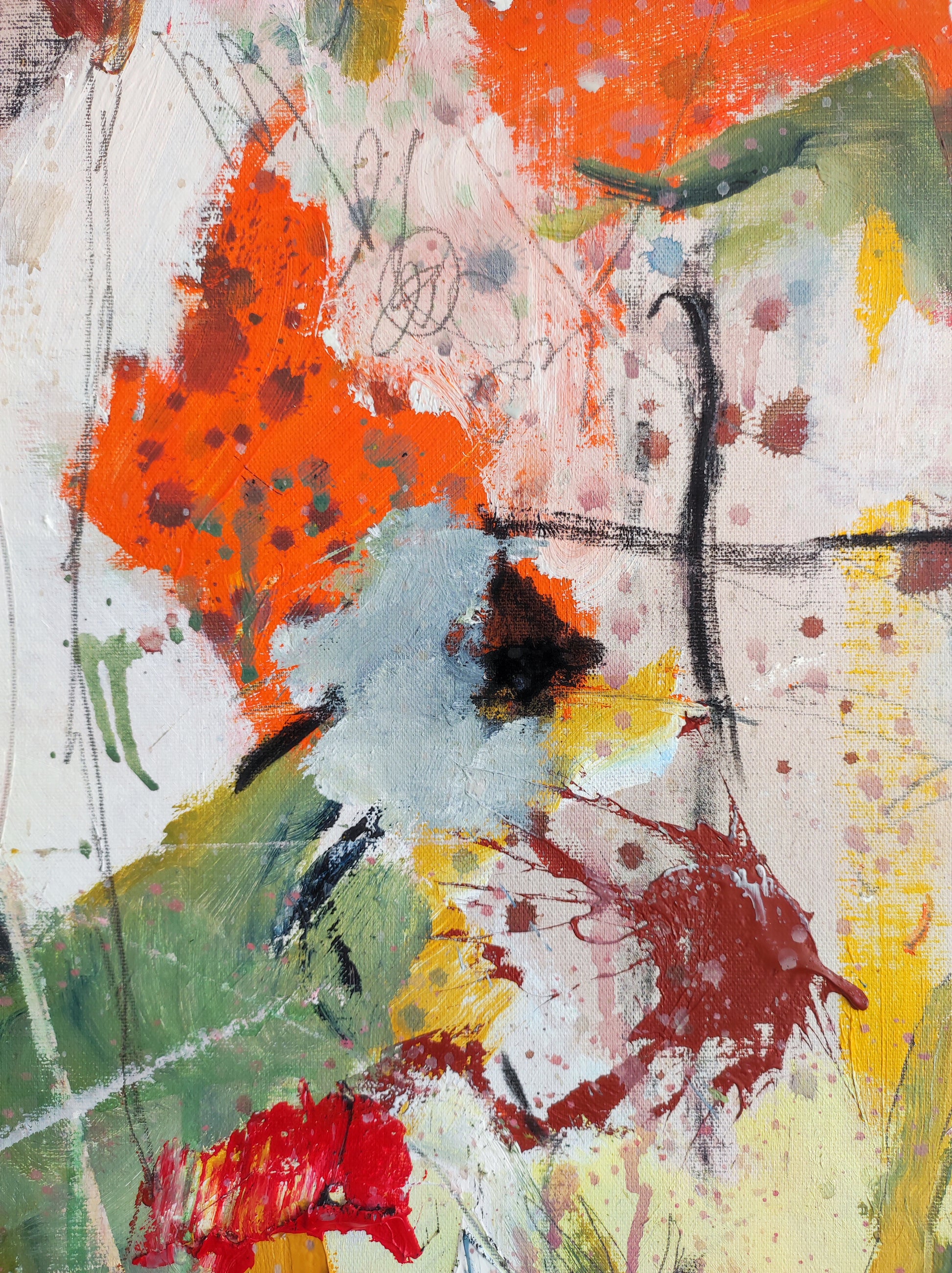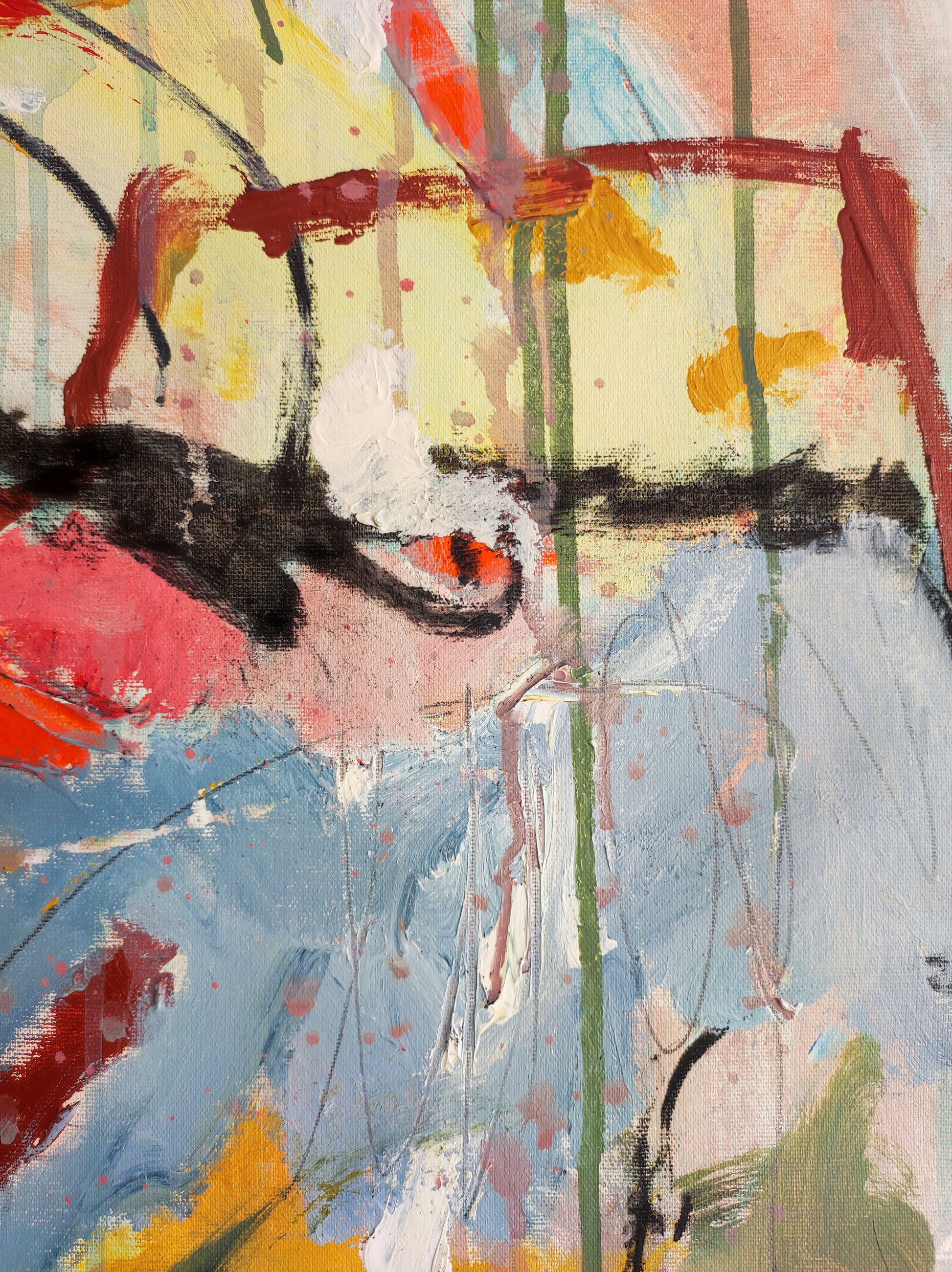 Cuadro trabajado desde la improvisación libre. Action painting en silencio, con los sonidos del estudio.