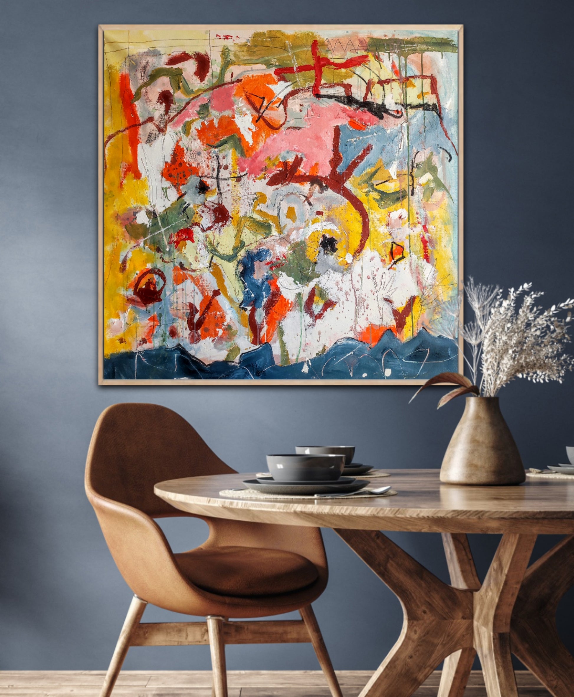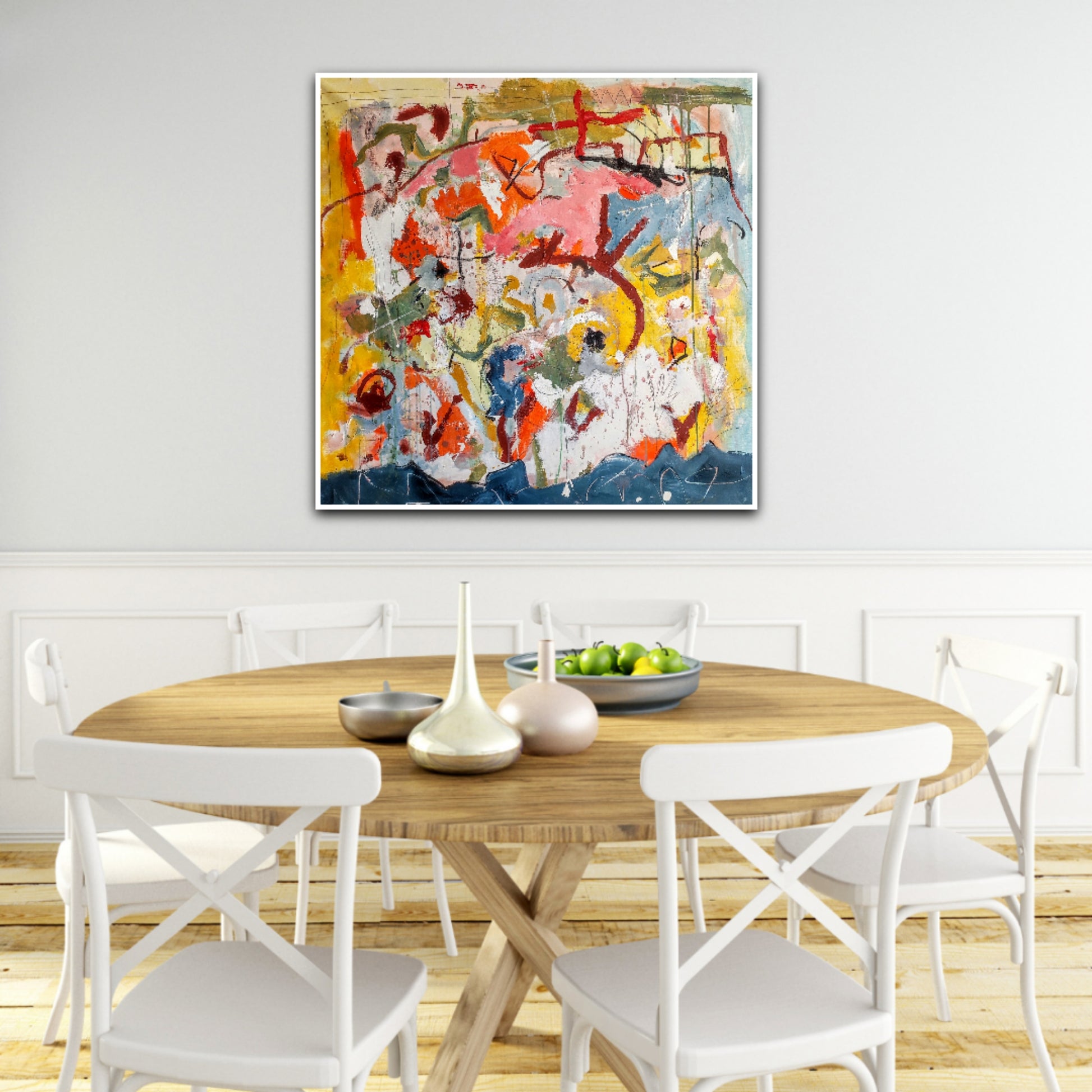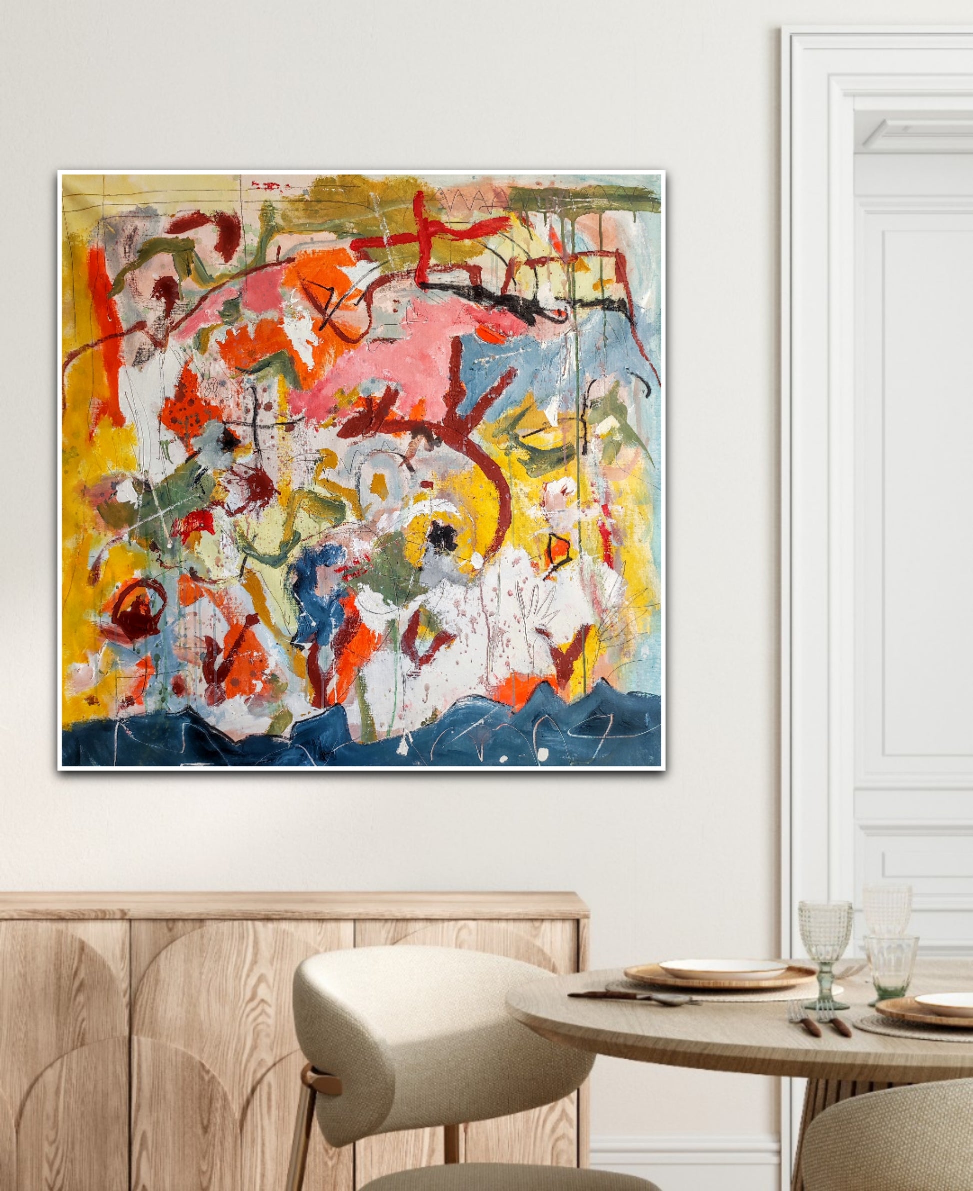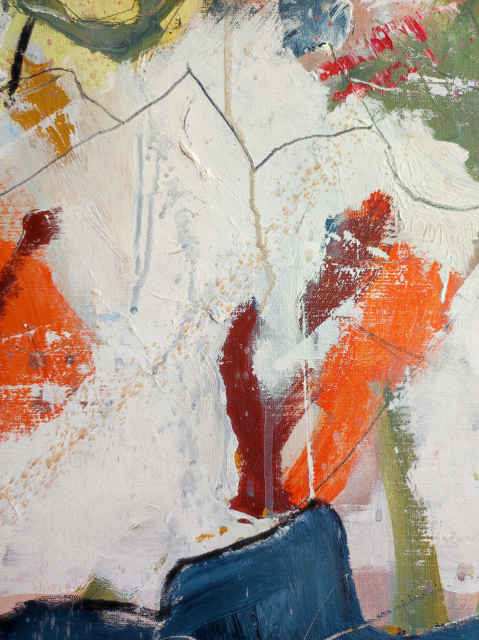 Cuadro trabajado desde la improvisación libre. Action painting en silencio, con los sonidos del estudio.