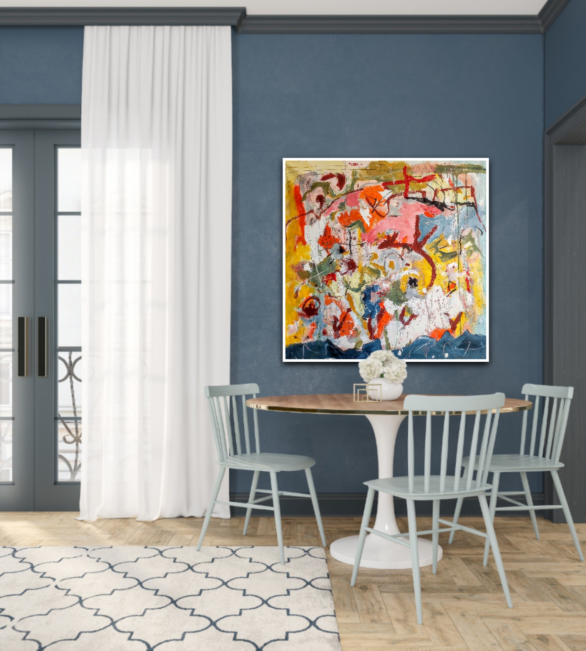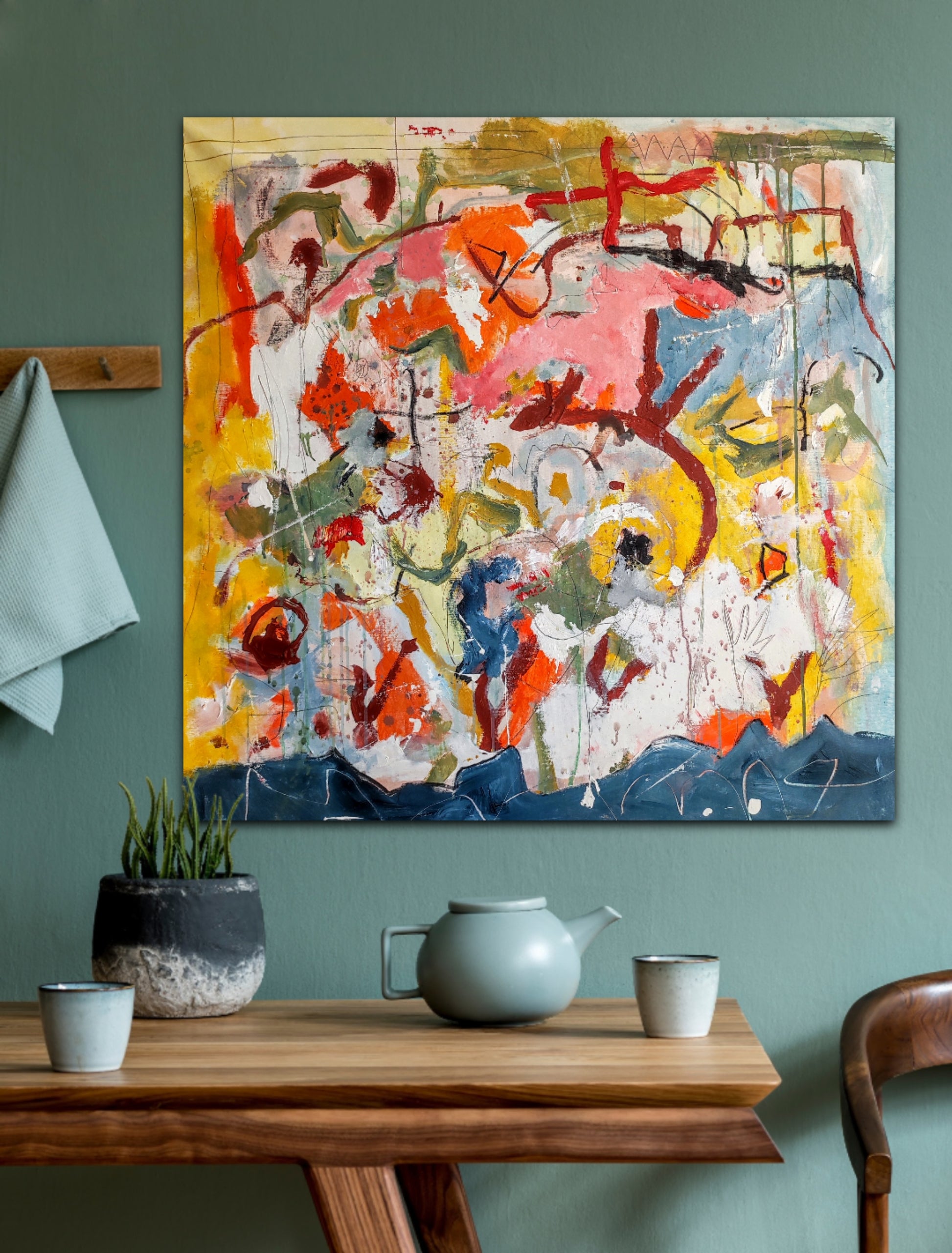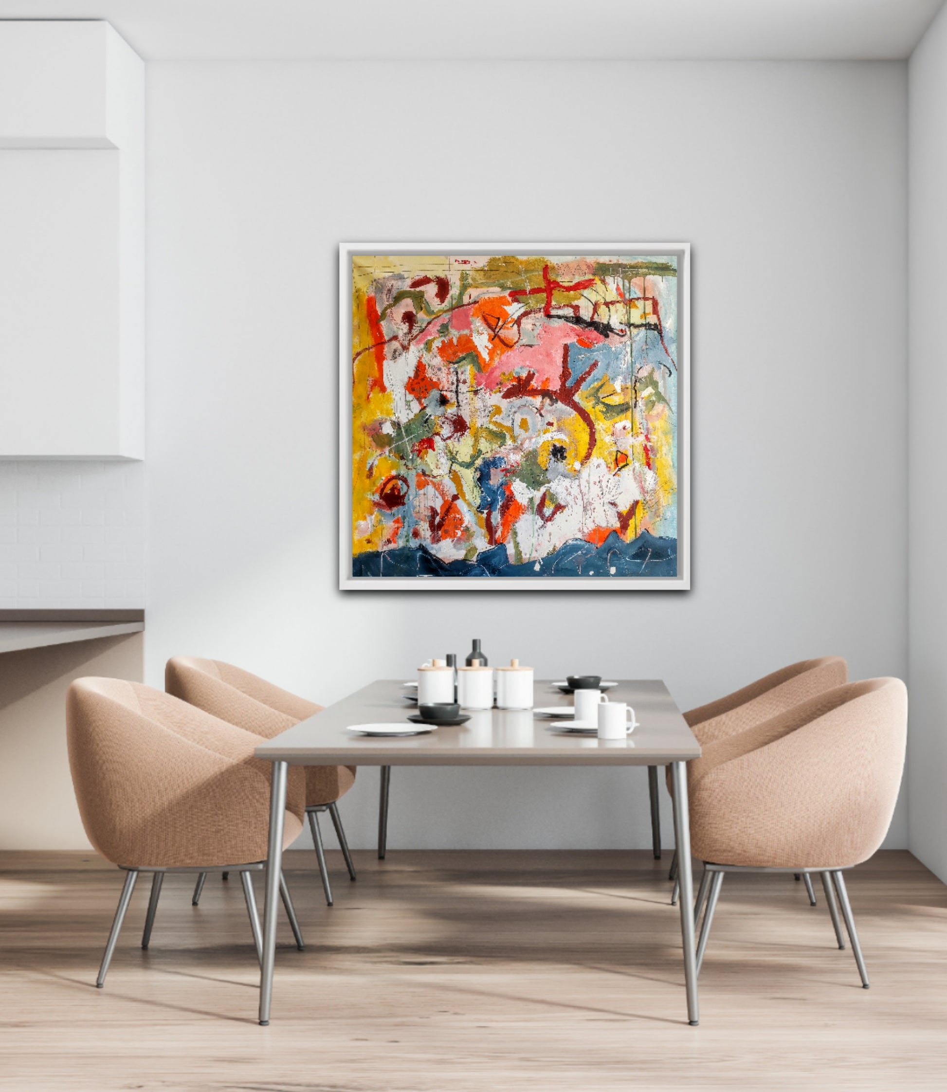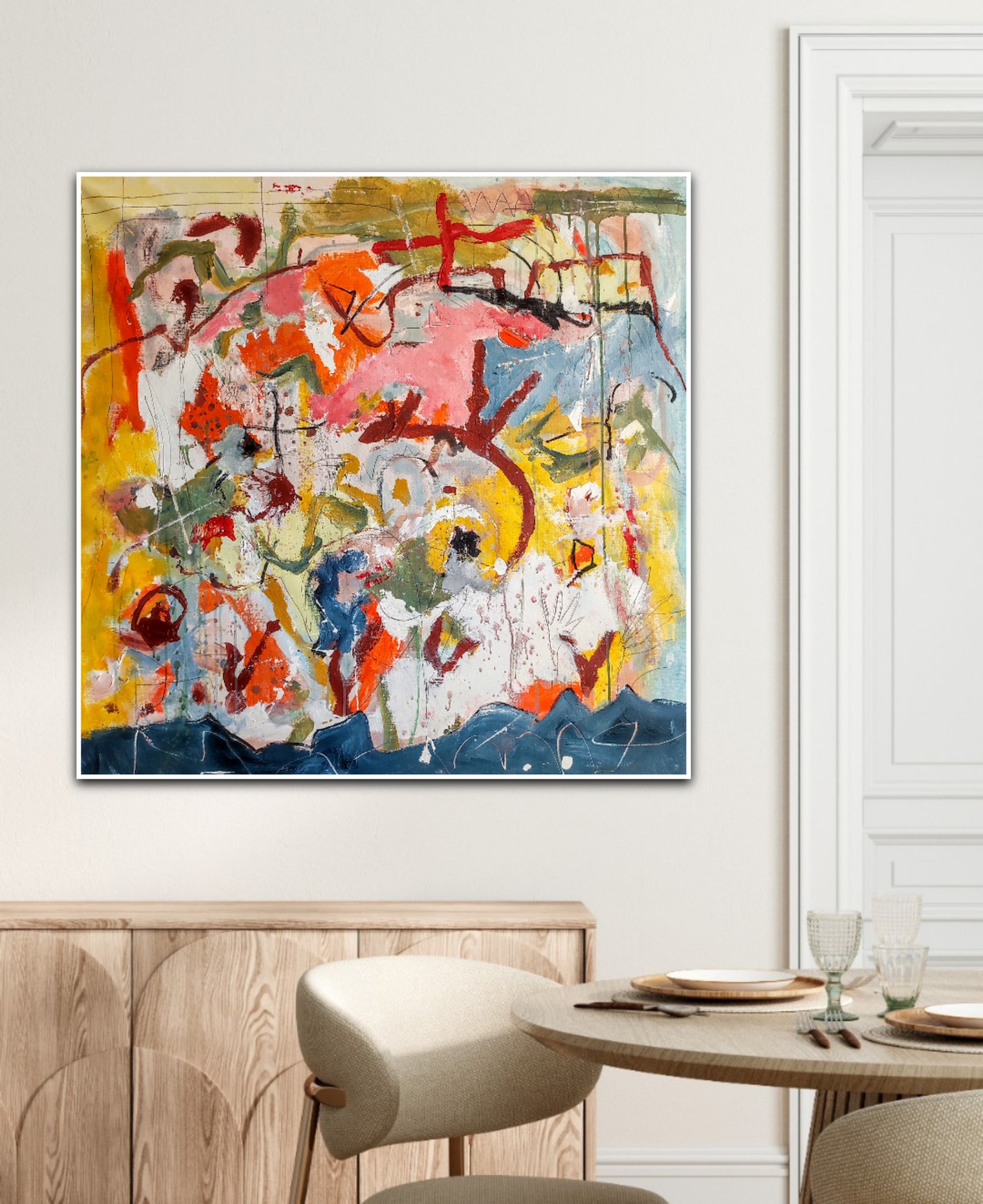 Cuadro trabajado desde la improvisación libre. Action painting en silencio, con los sonidos del estudio.