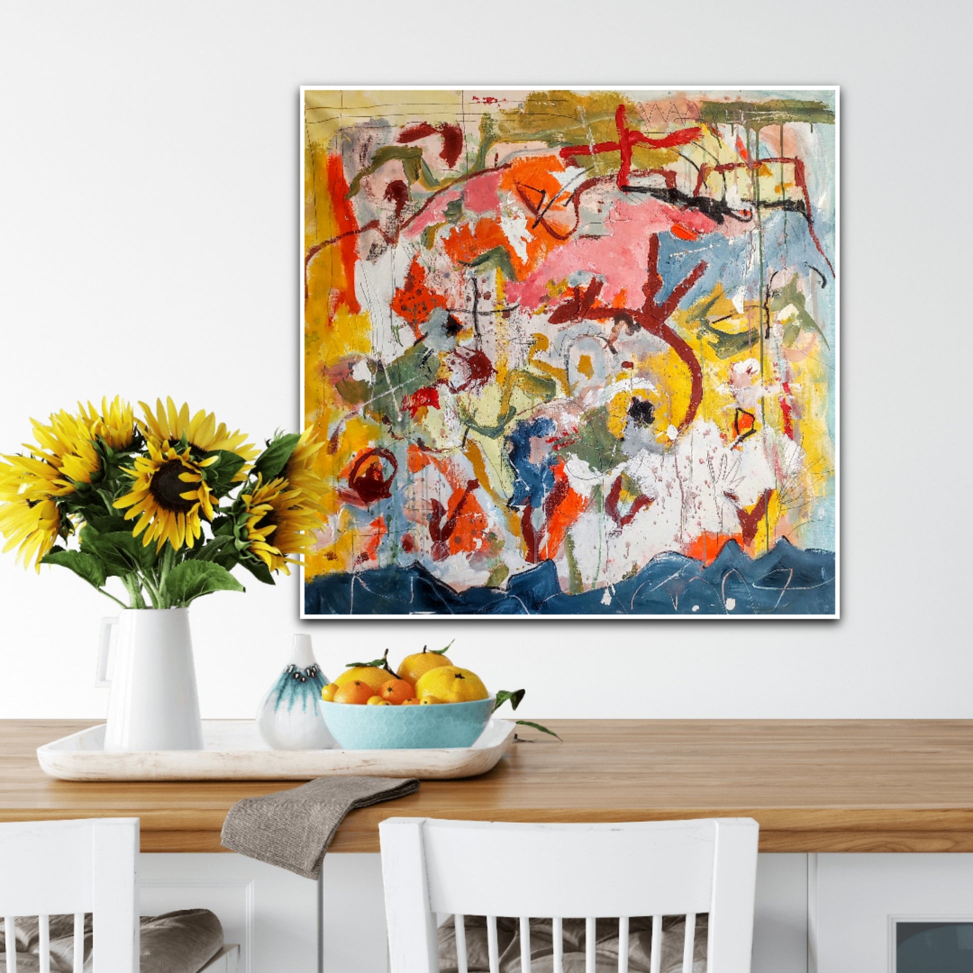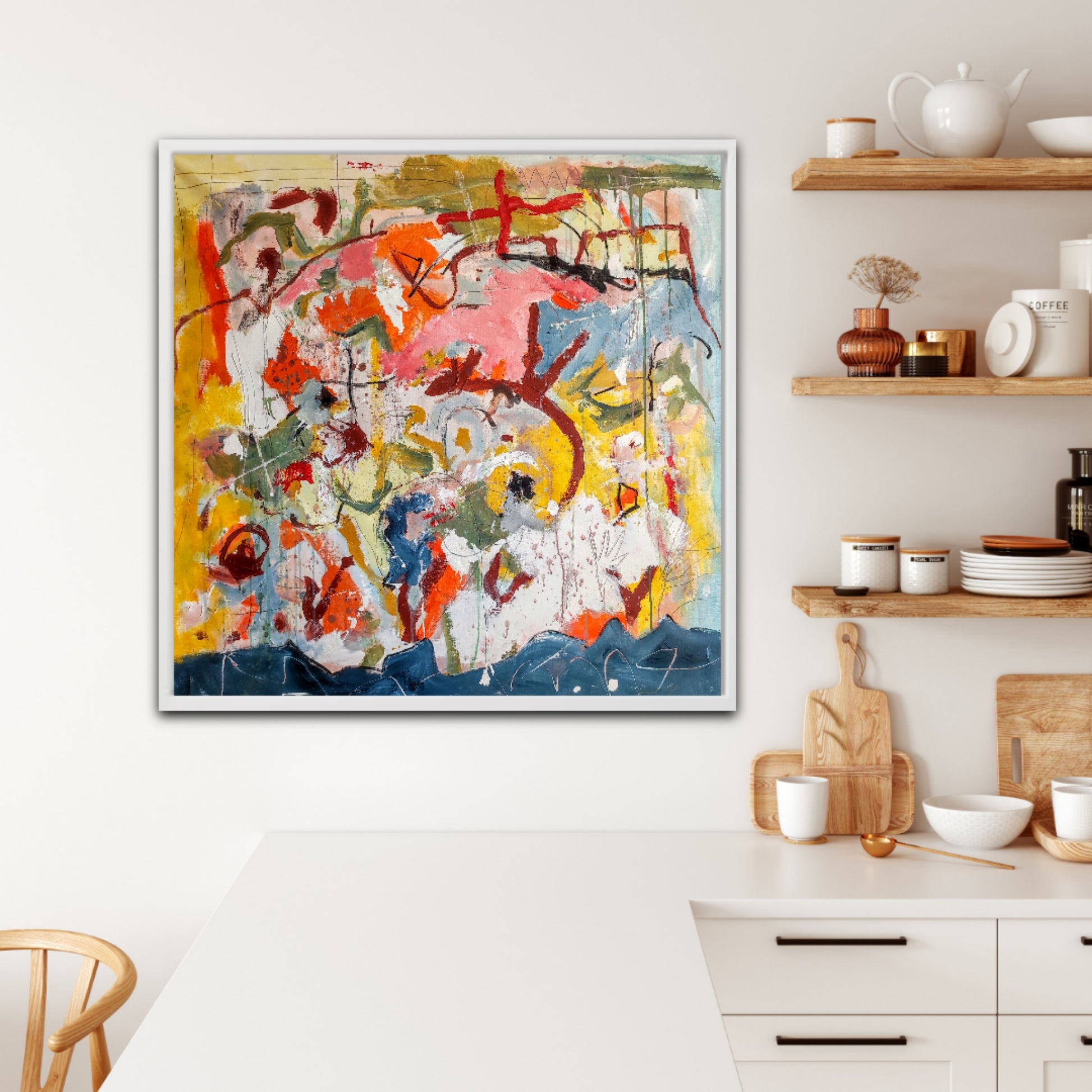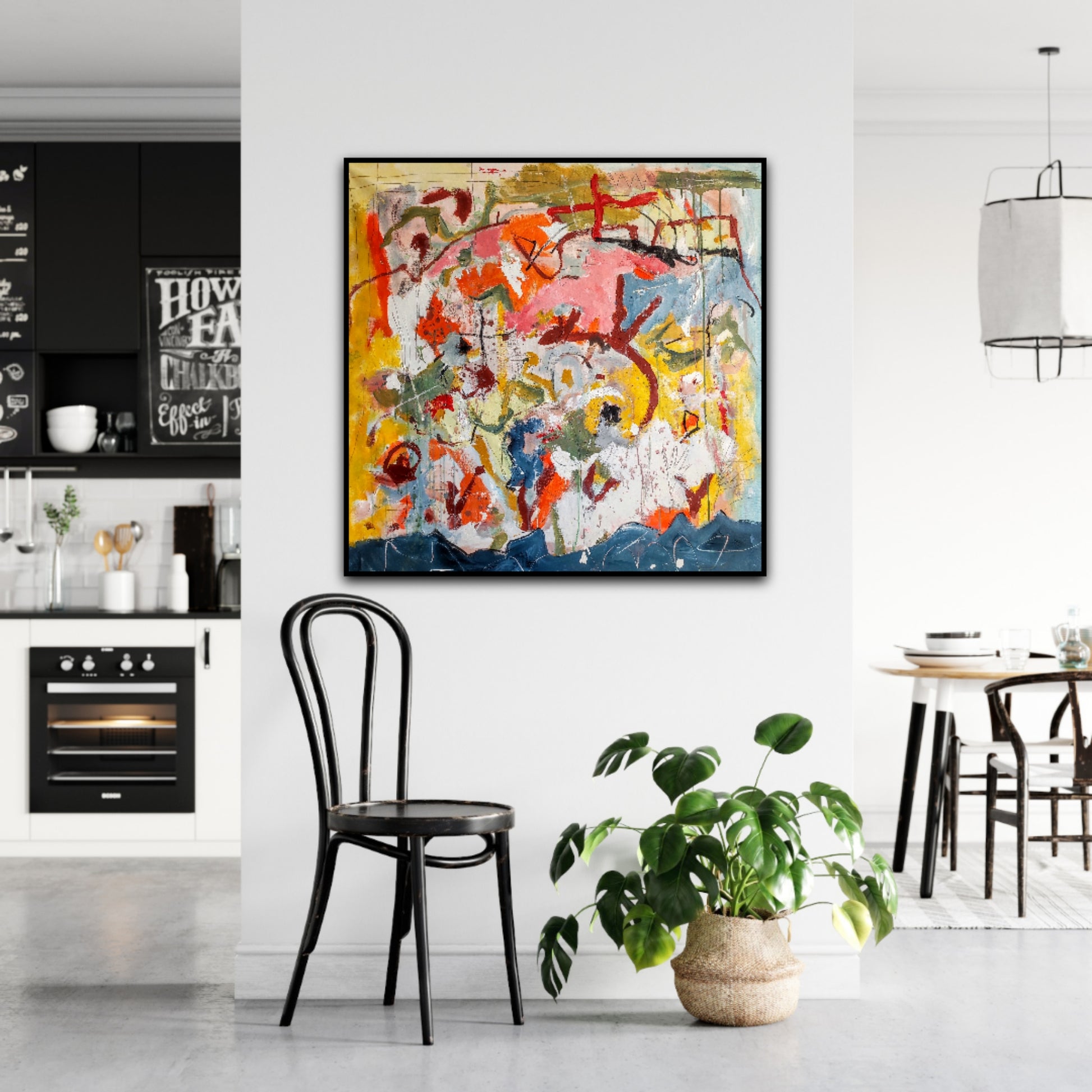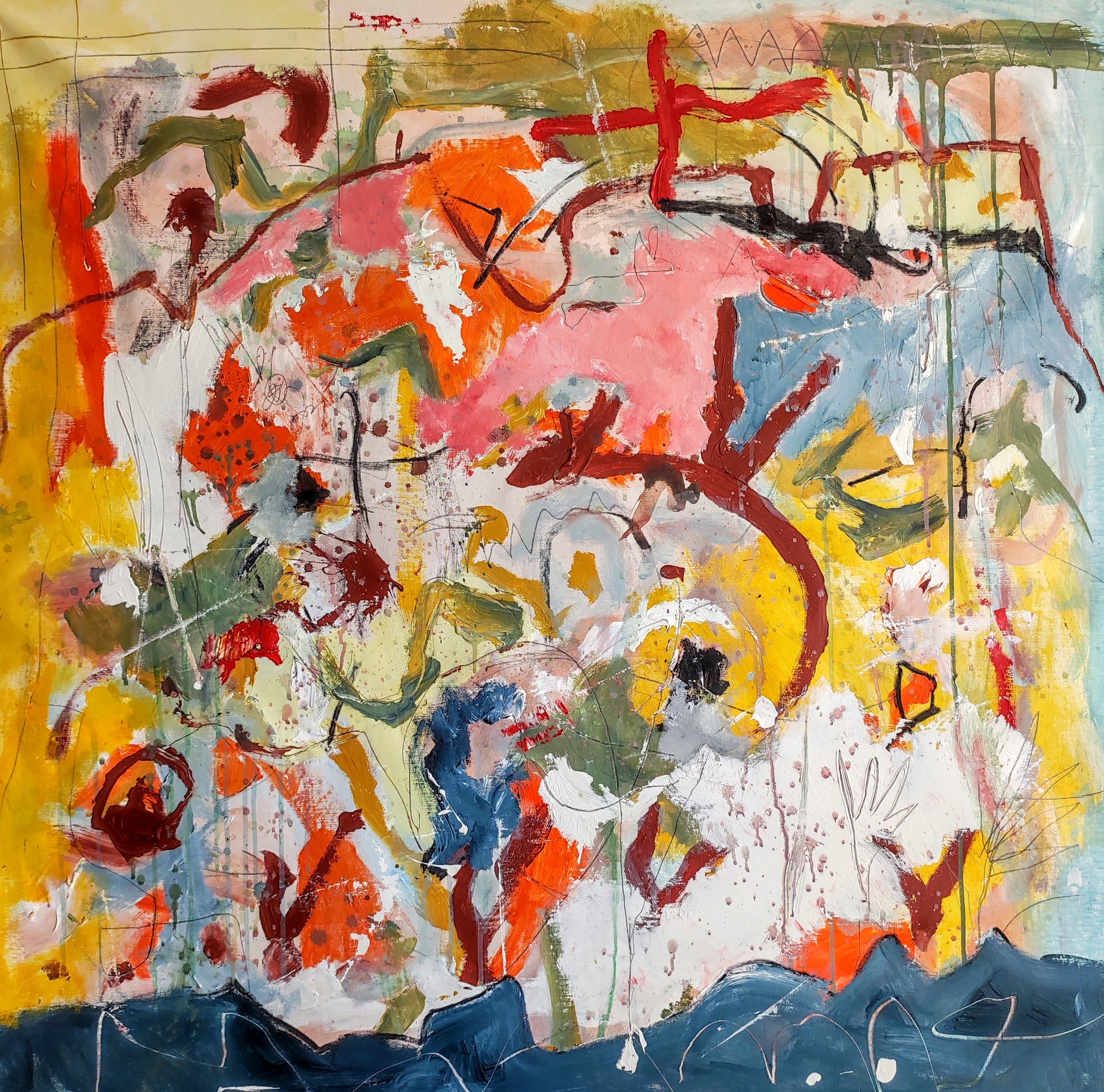 Cuadro trabajado desde la improvisación libre. Action painting en silencio, con los sonidos del estudio.