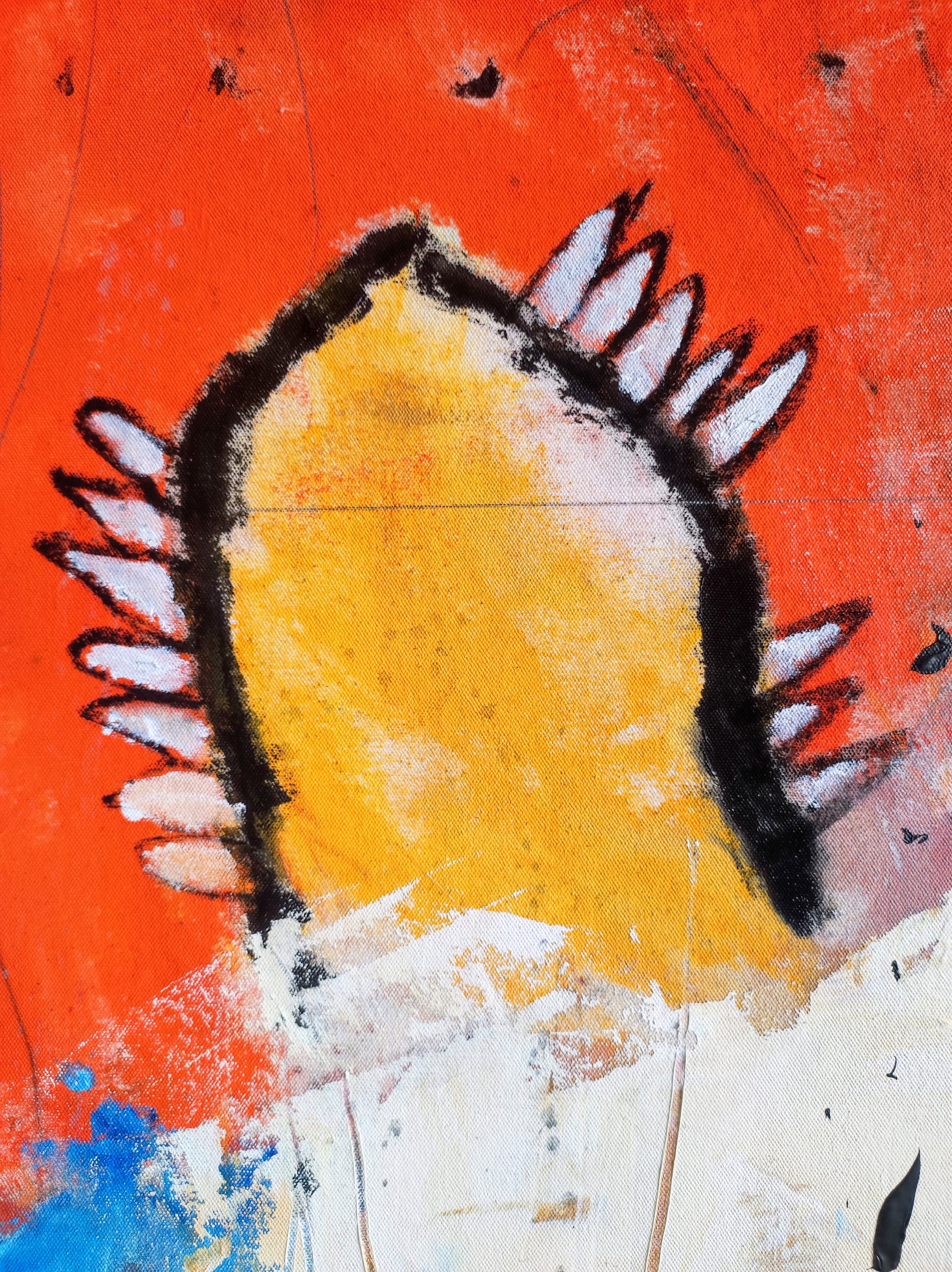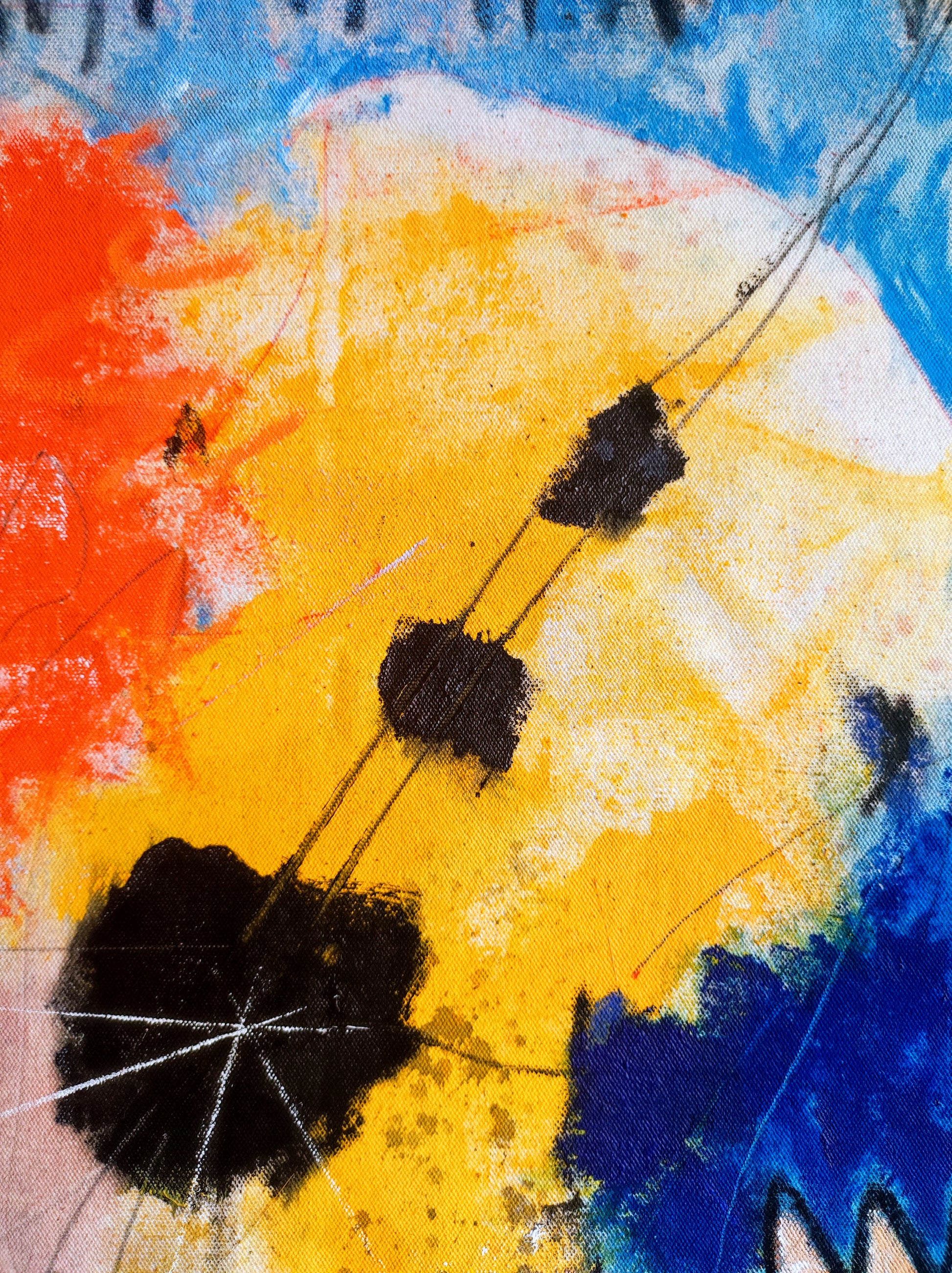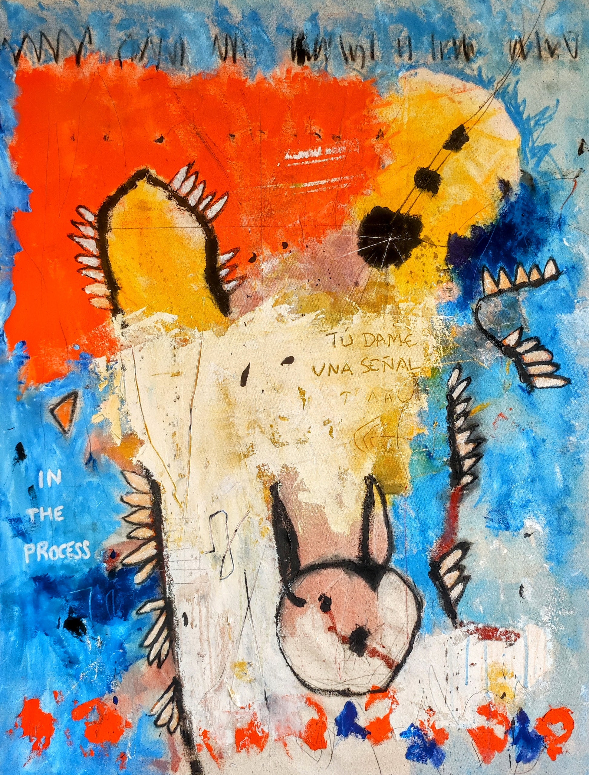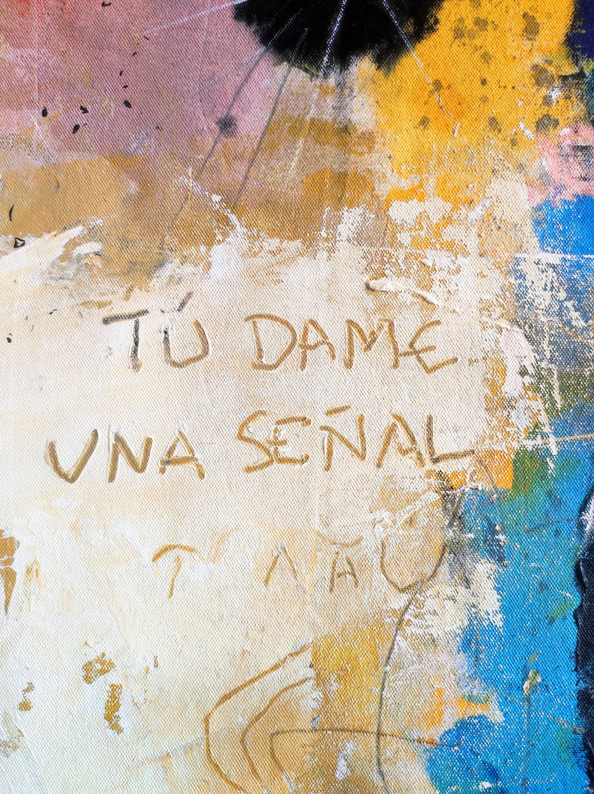Técnica: acrílico, pigmentos, ceras, carboncillo, bolígrafo y lápiz.