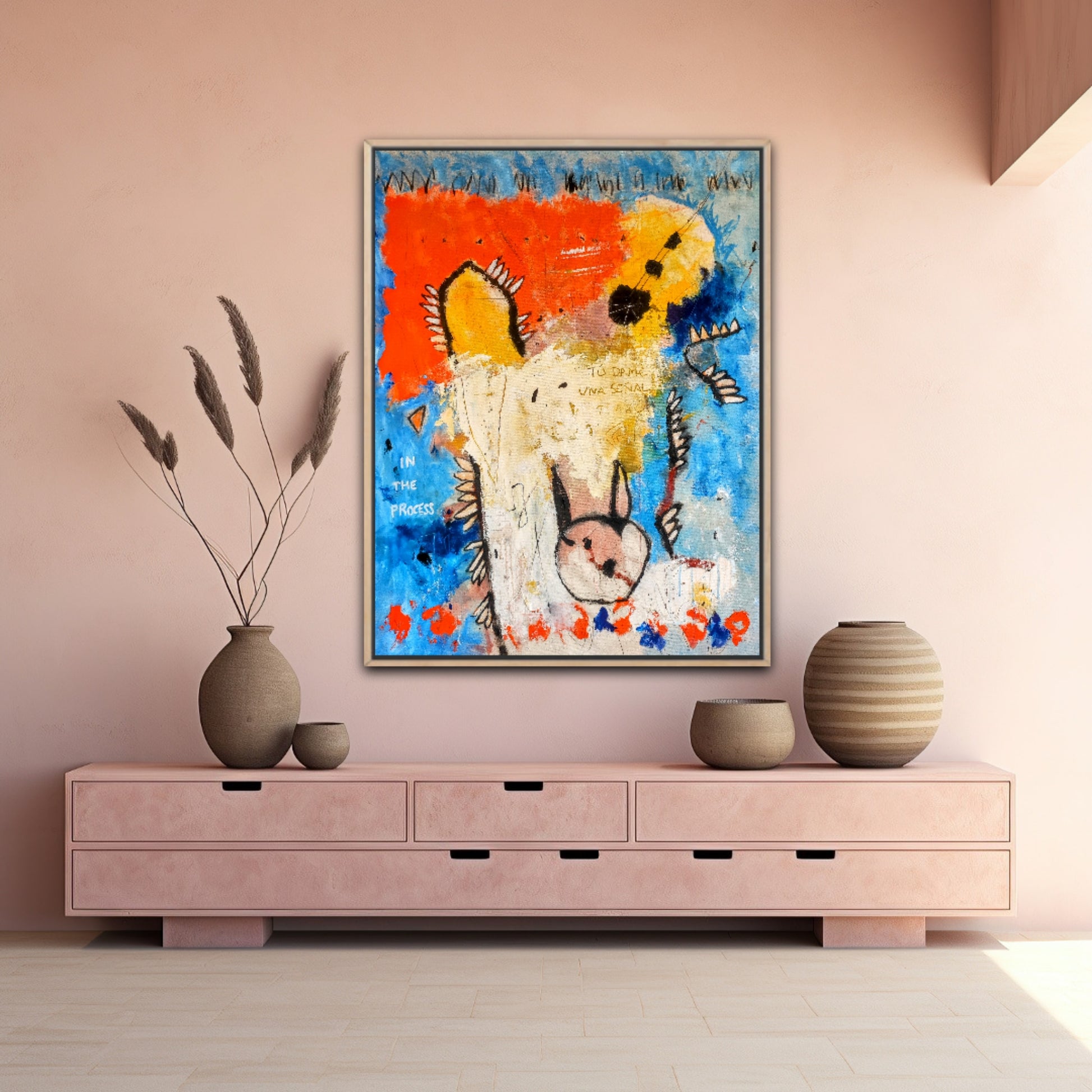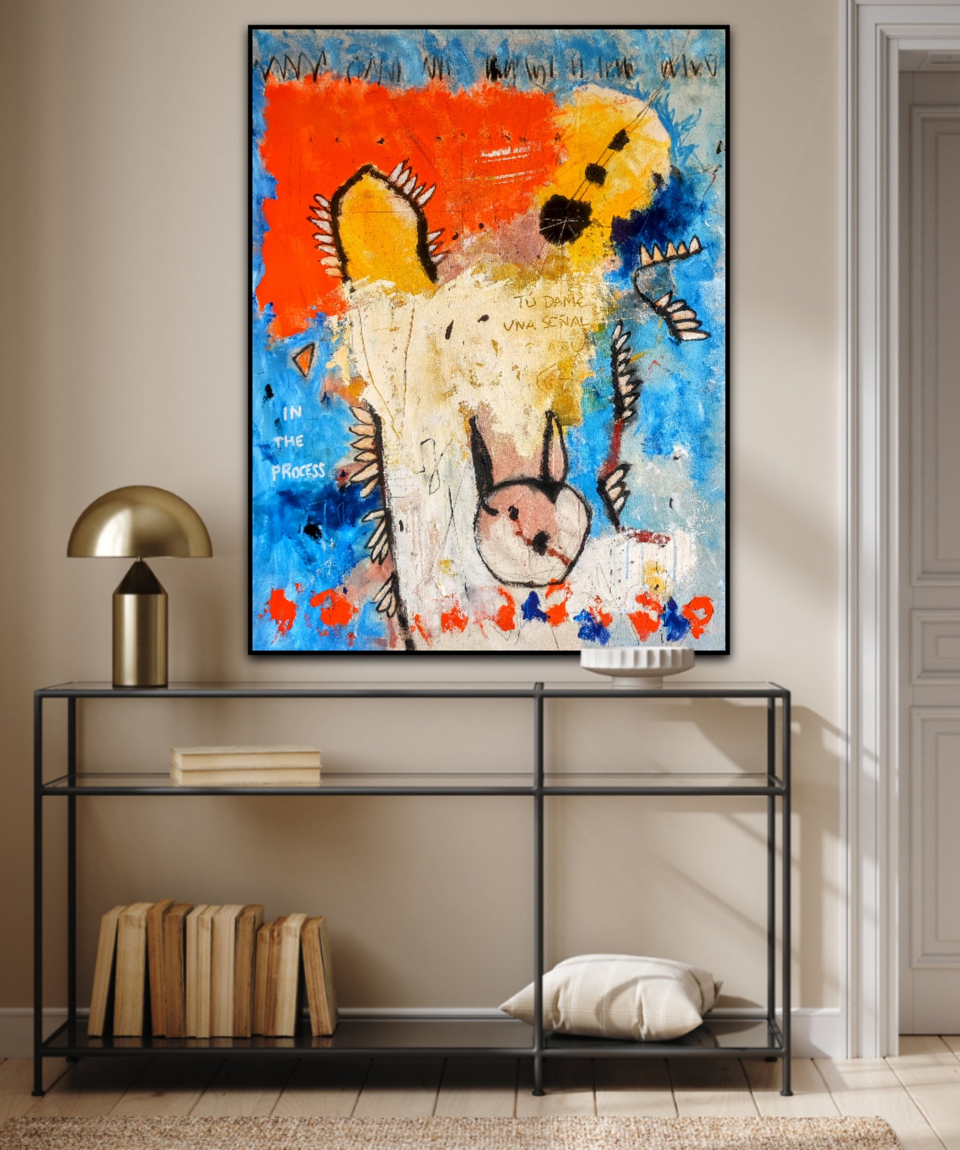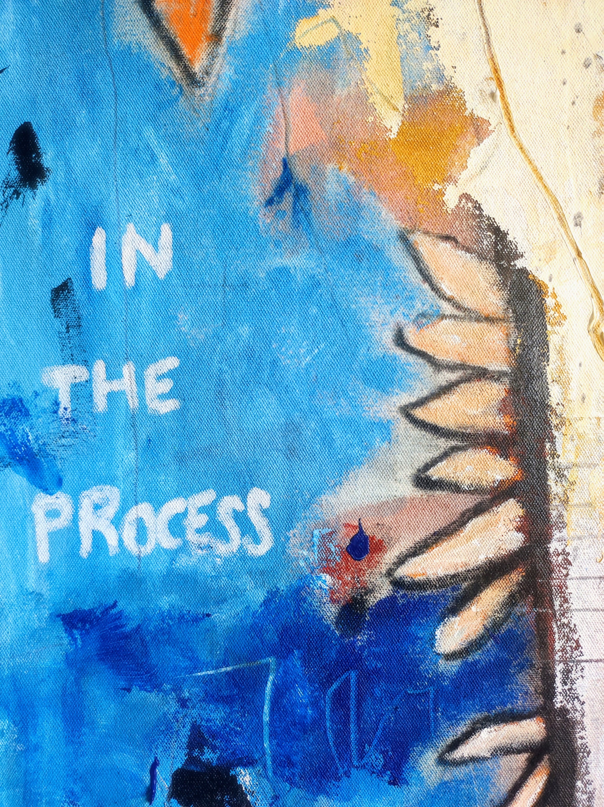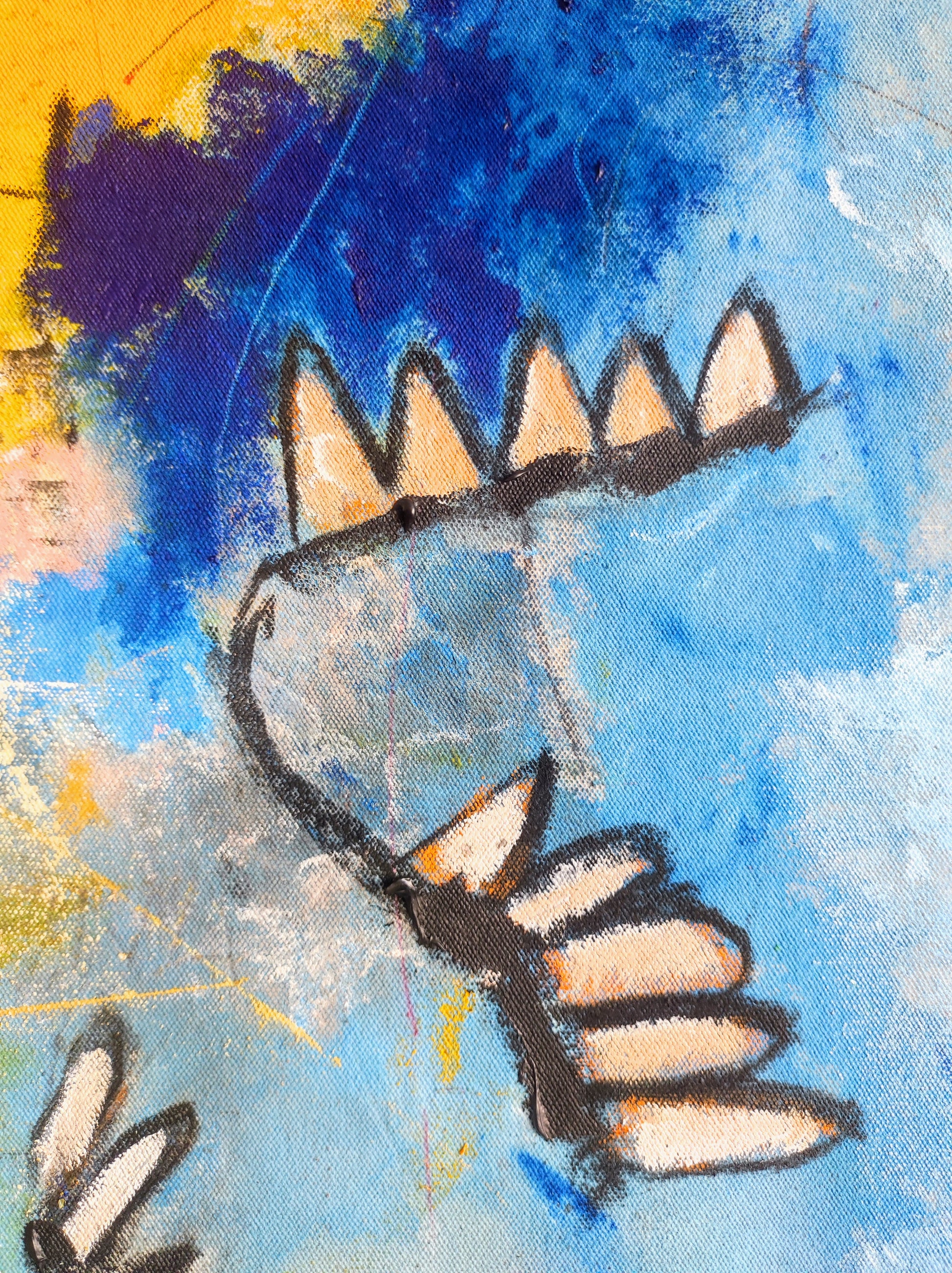 Técnica: acrílico, pigmentos, ceras, carboncillo, bolígrafo y lápiz.