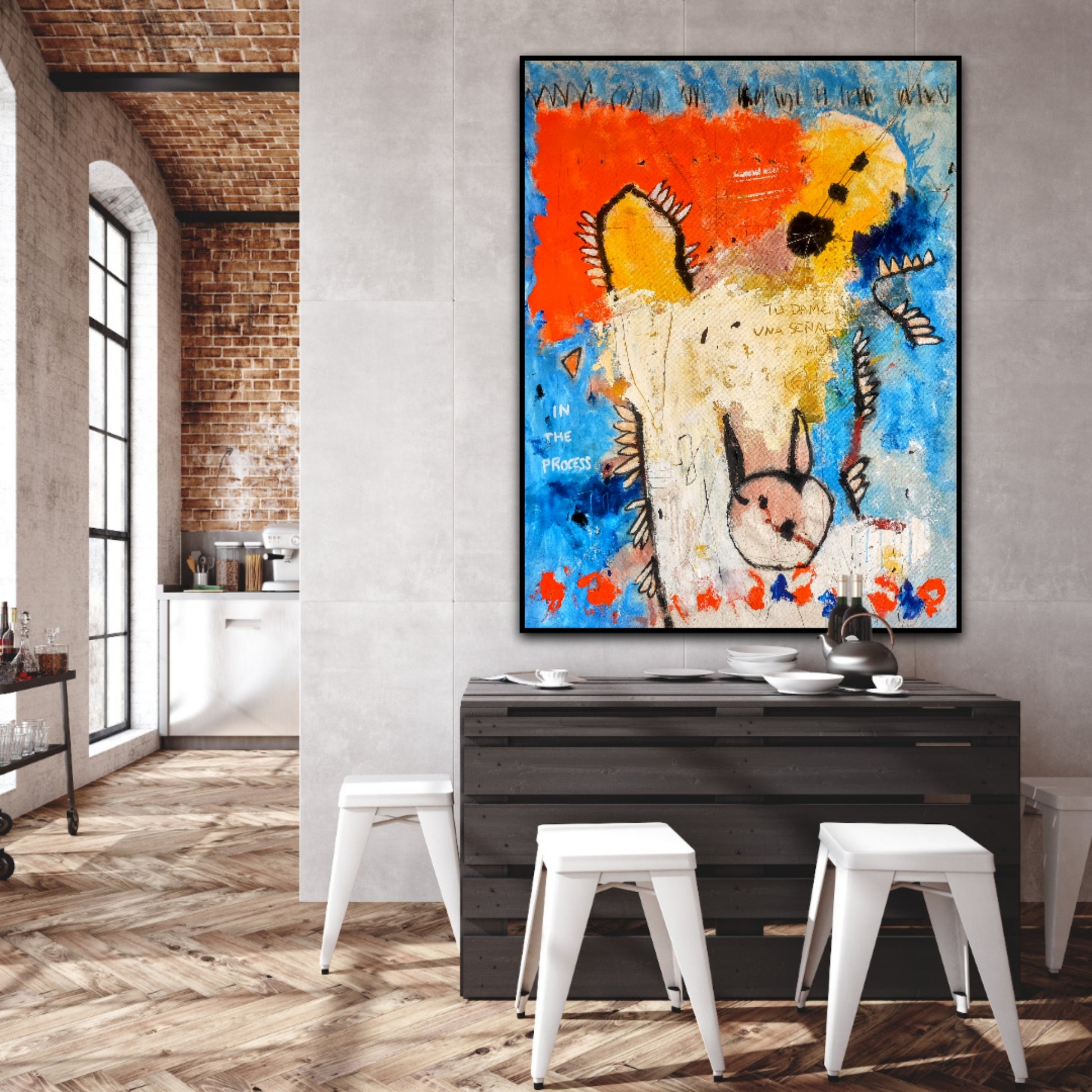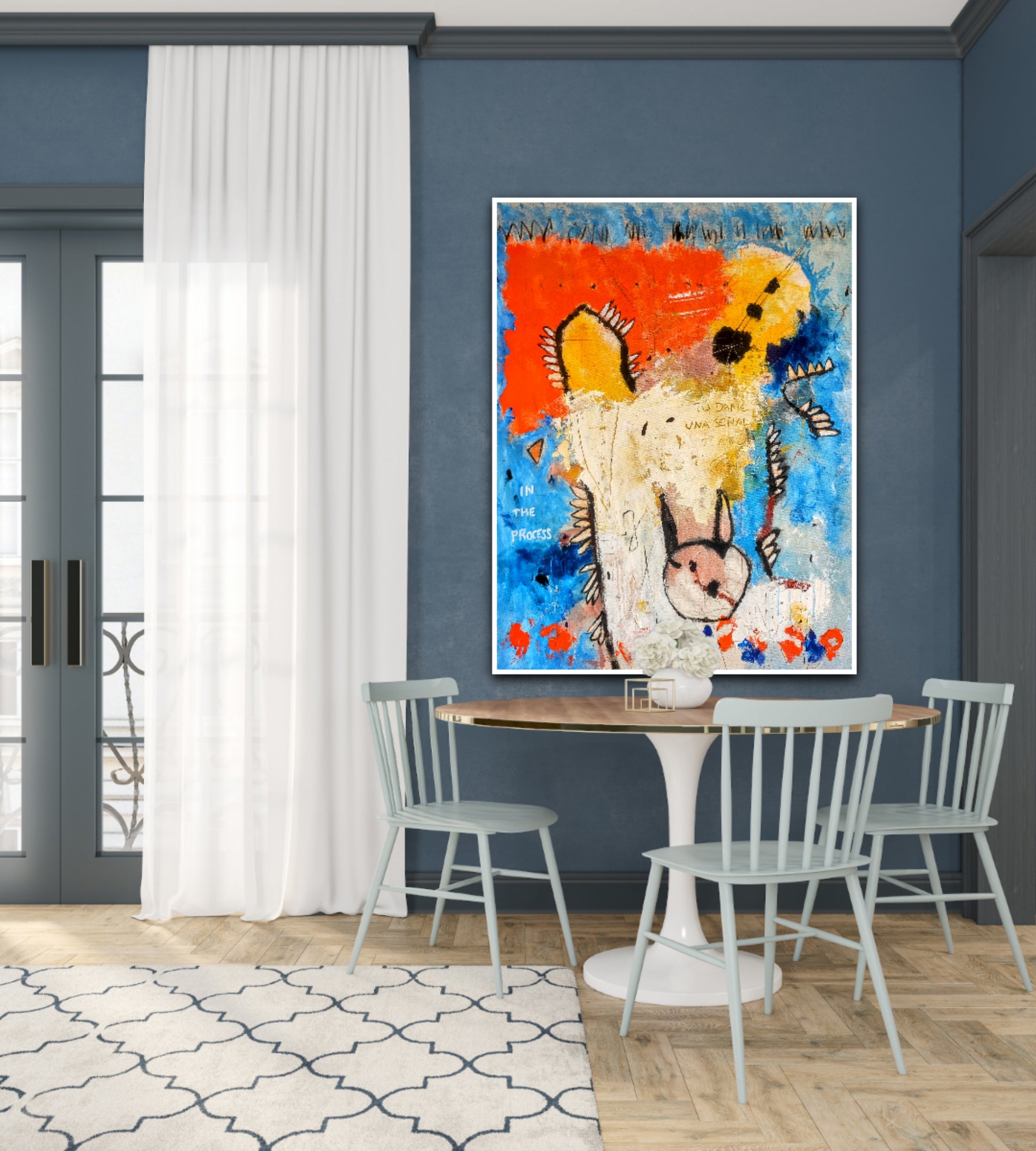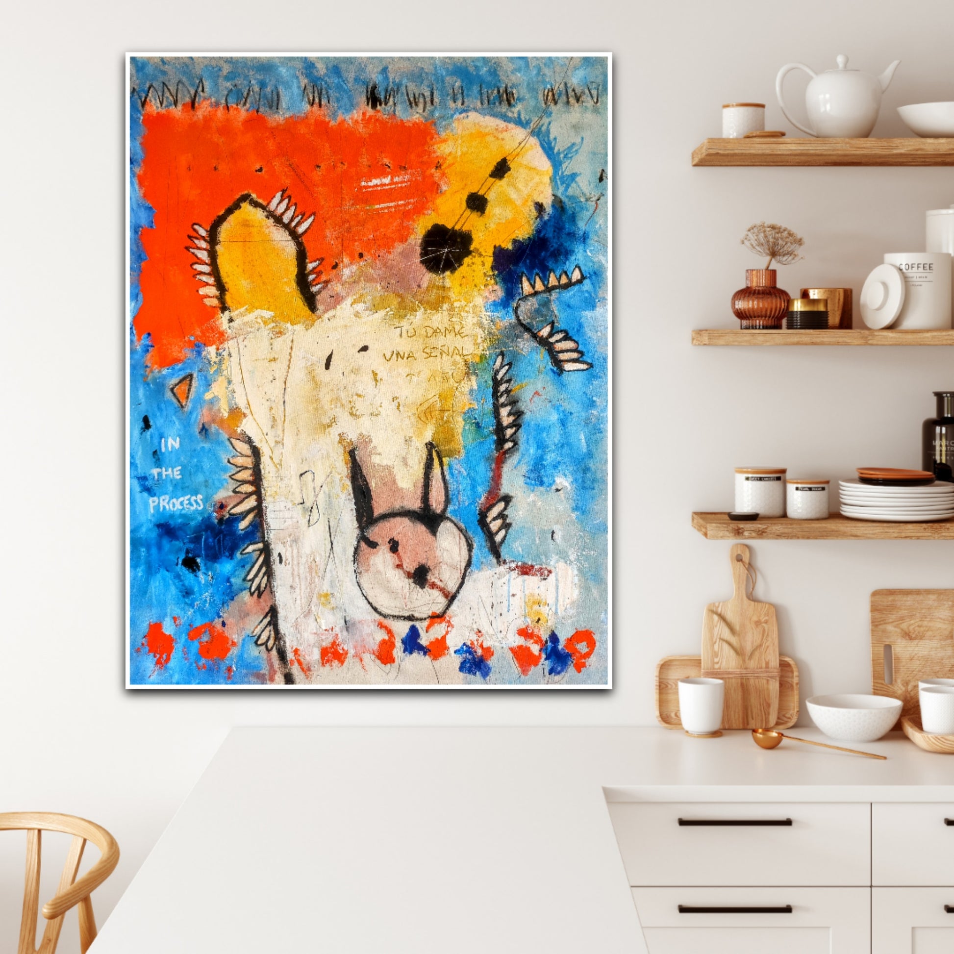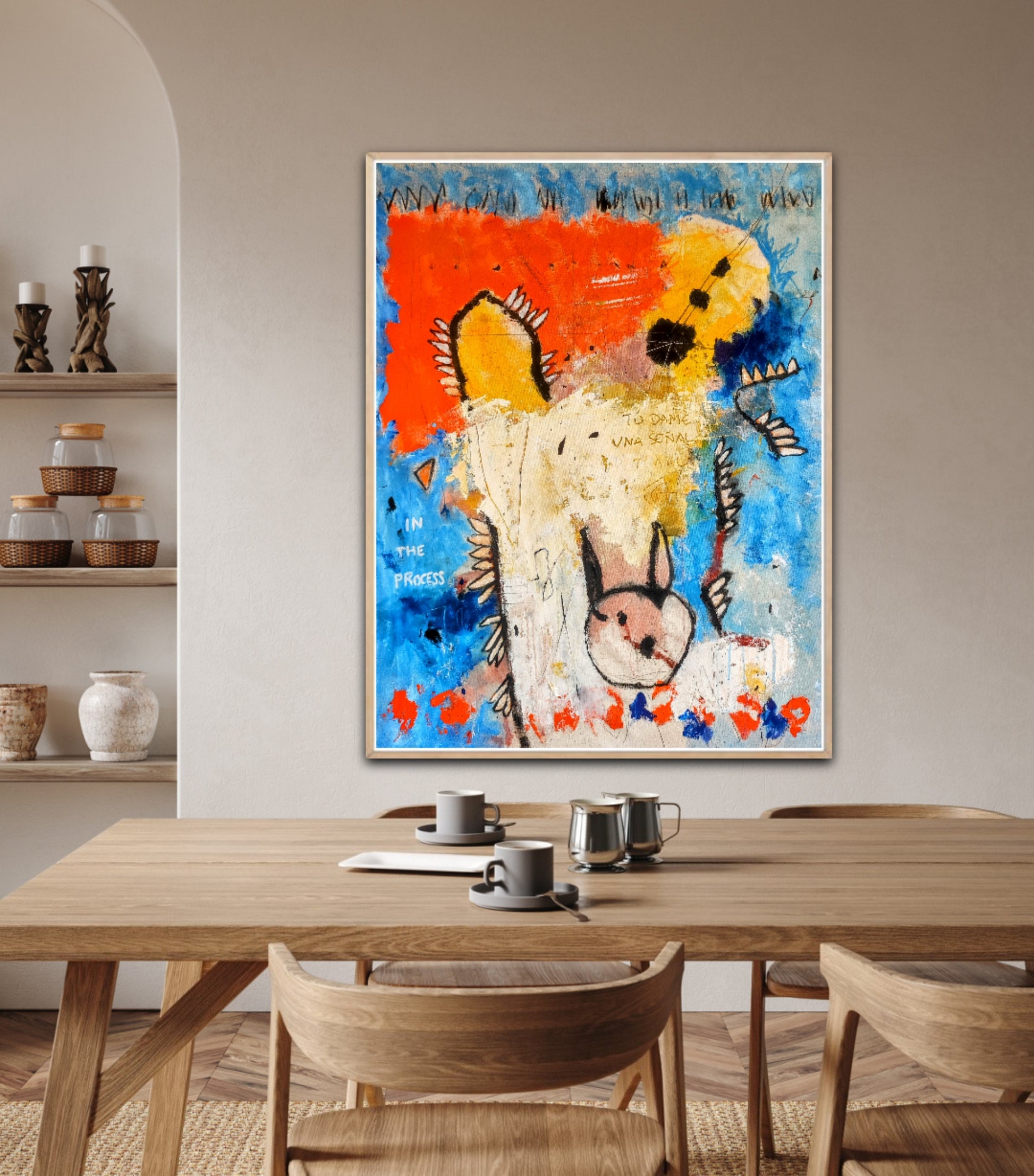 Técnica: acrílico, pigmentos, ceras, carboncillo, bolígrafo y lápiz.