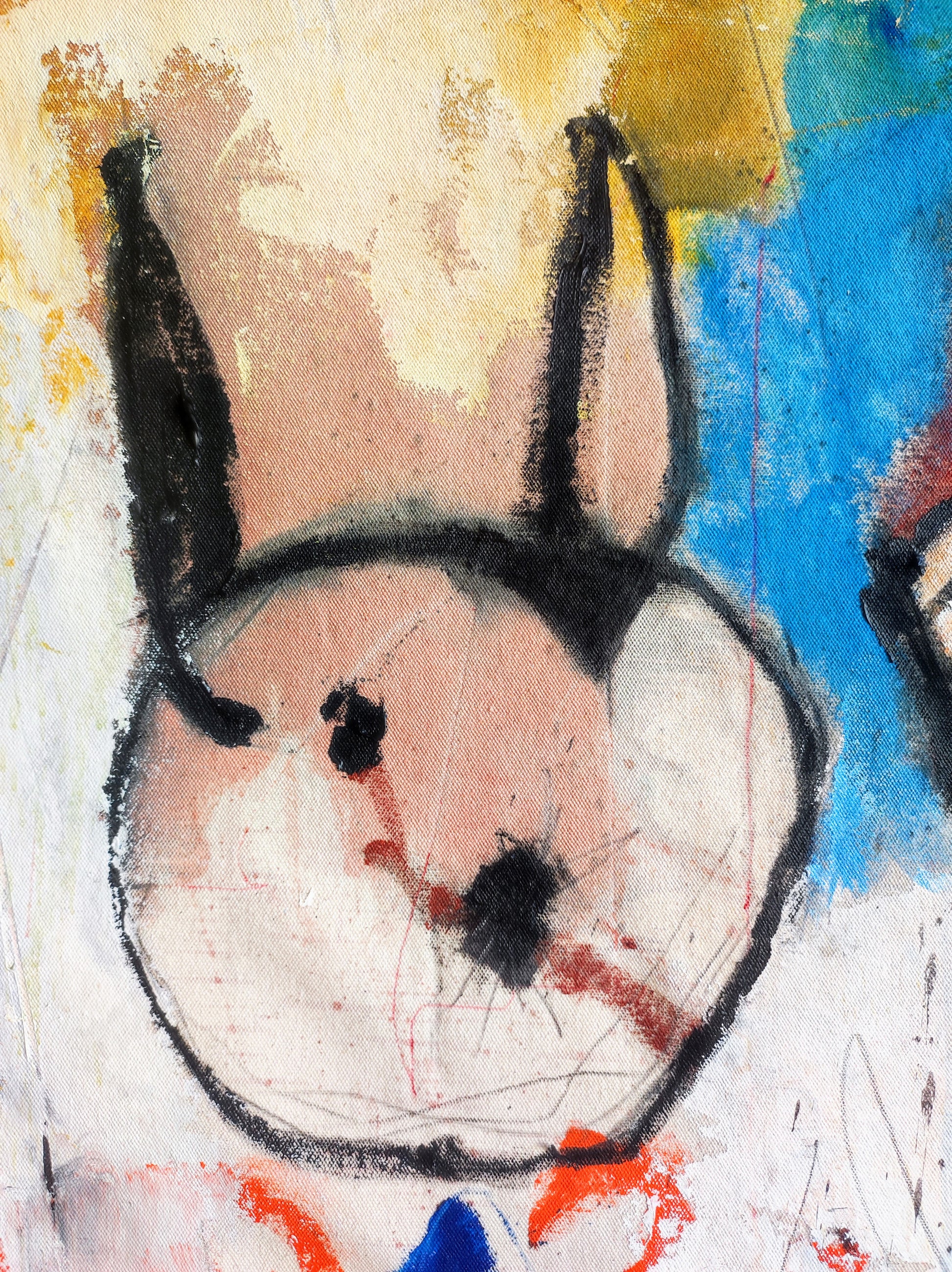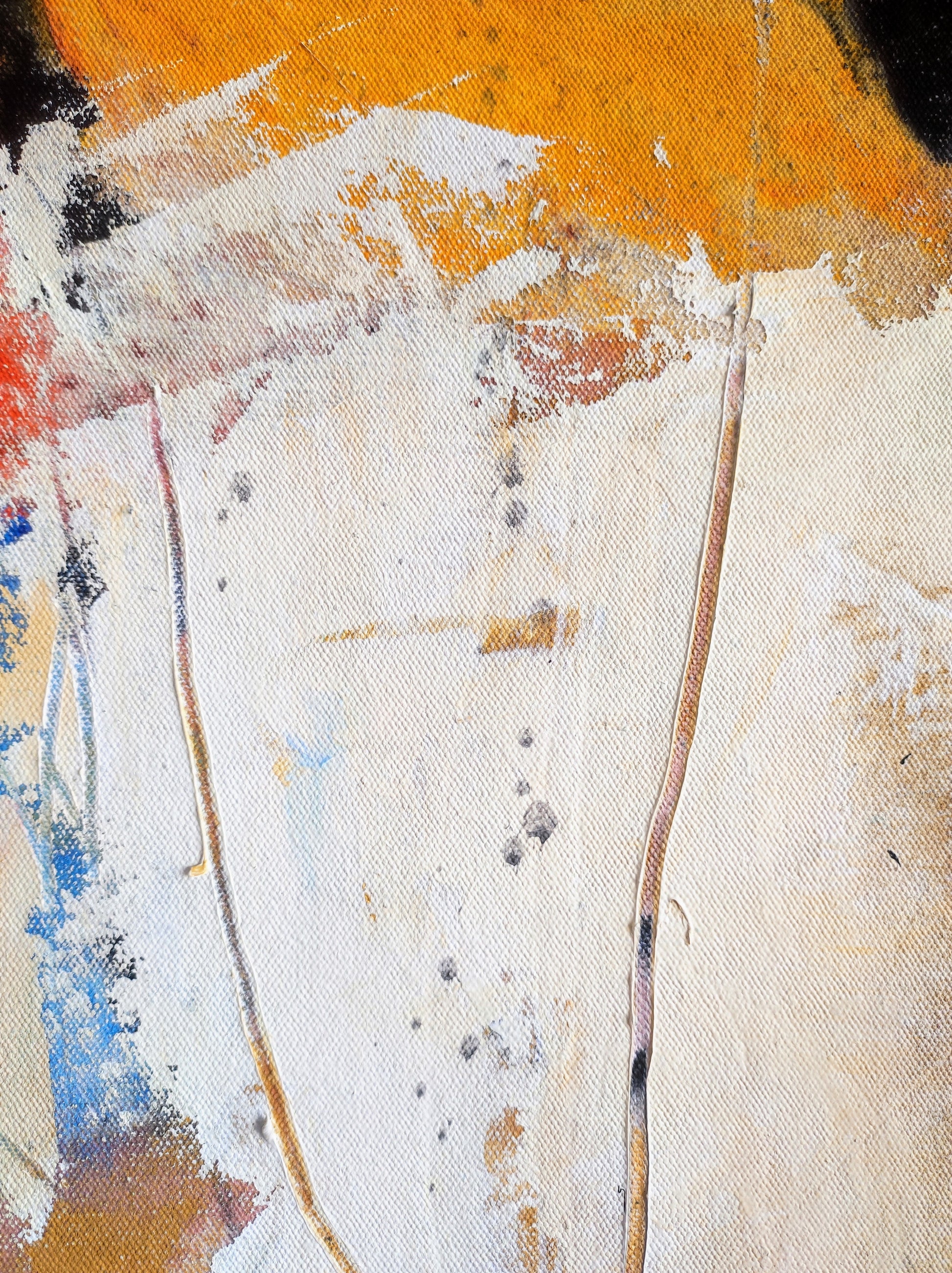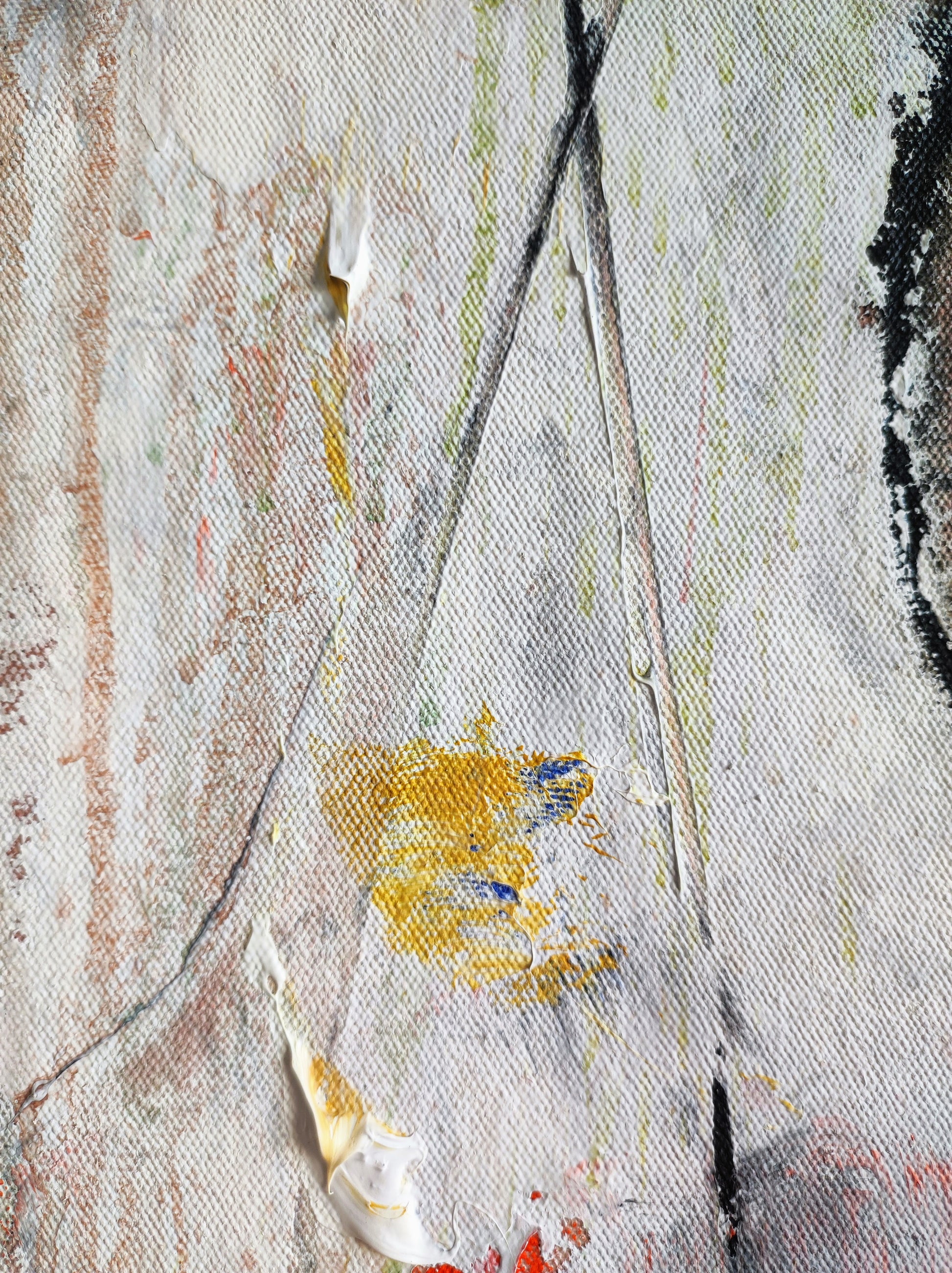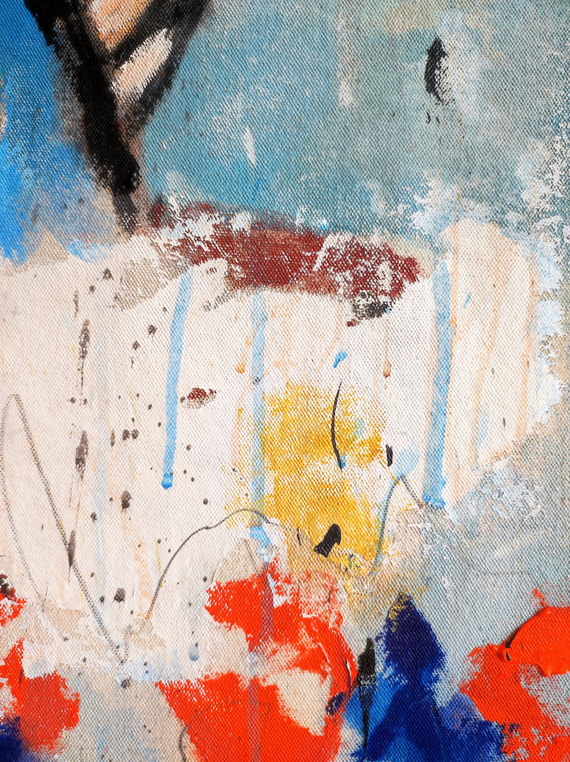 Pintura gestual e intuitiva que va generando marcas y manchas de color que se simplifican y se vuelven a complicar. Lo nuevo tapa a lo viejo, pero siempre queda algo.