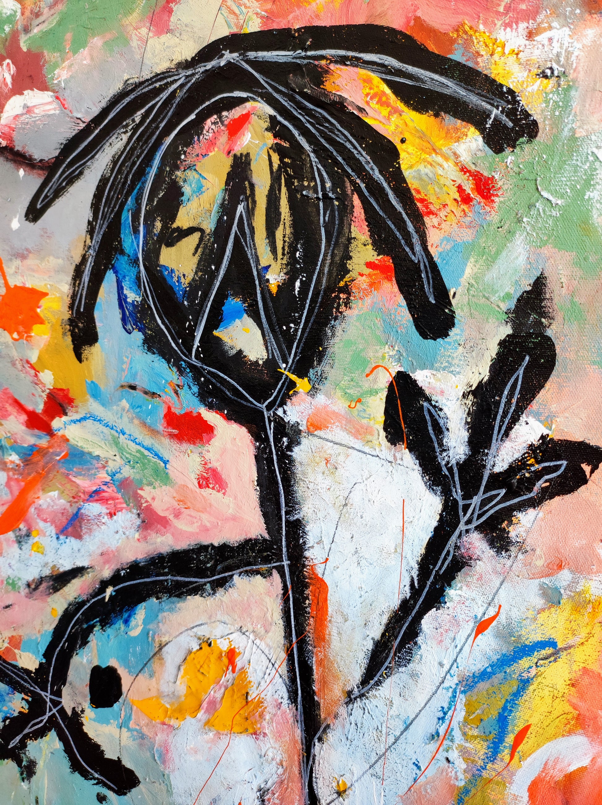 Técnica: mixed media: acrílico, pintura en spray, tinta china, ceras.