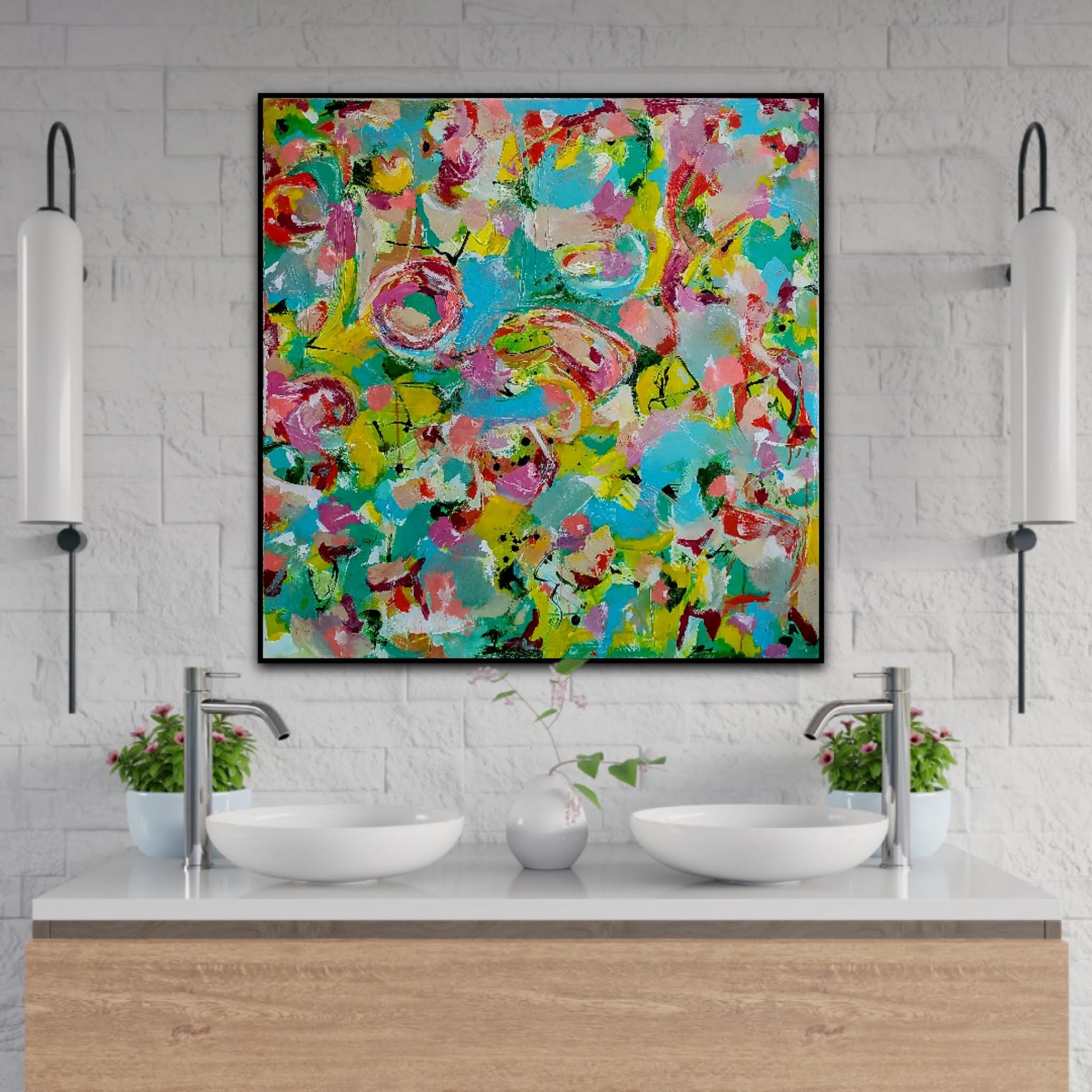 Cuadro trabajado desde la improvisación libre. Action painting con música de Iván Ferreiro.