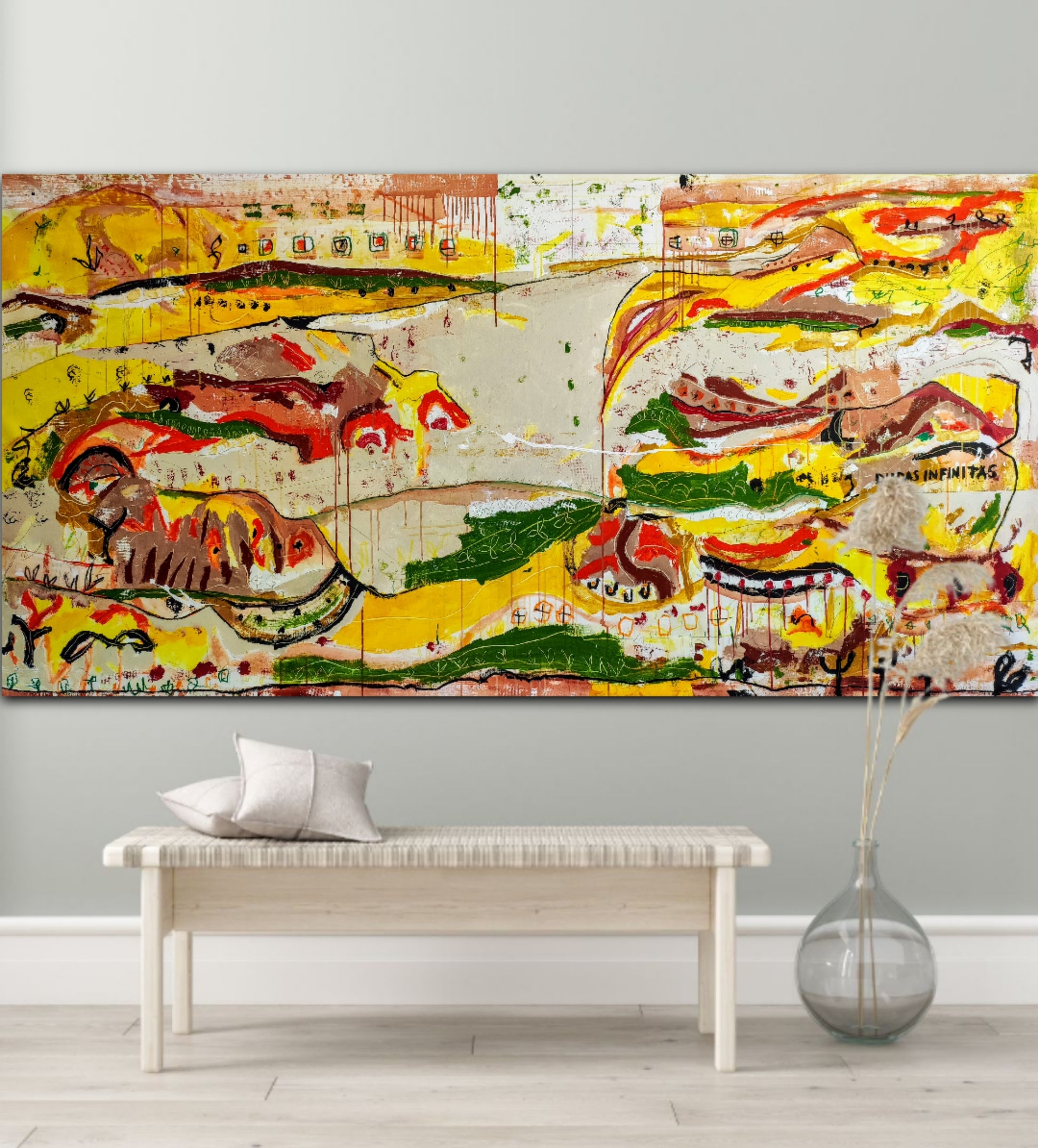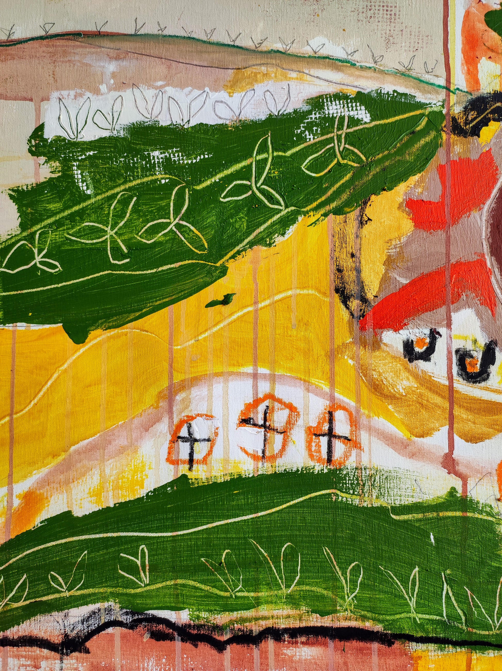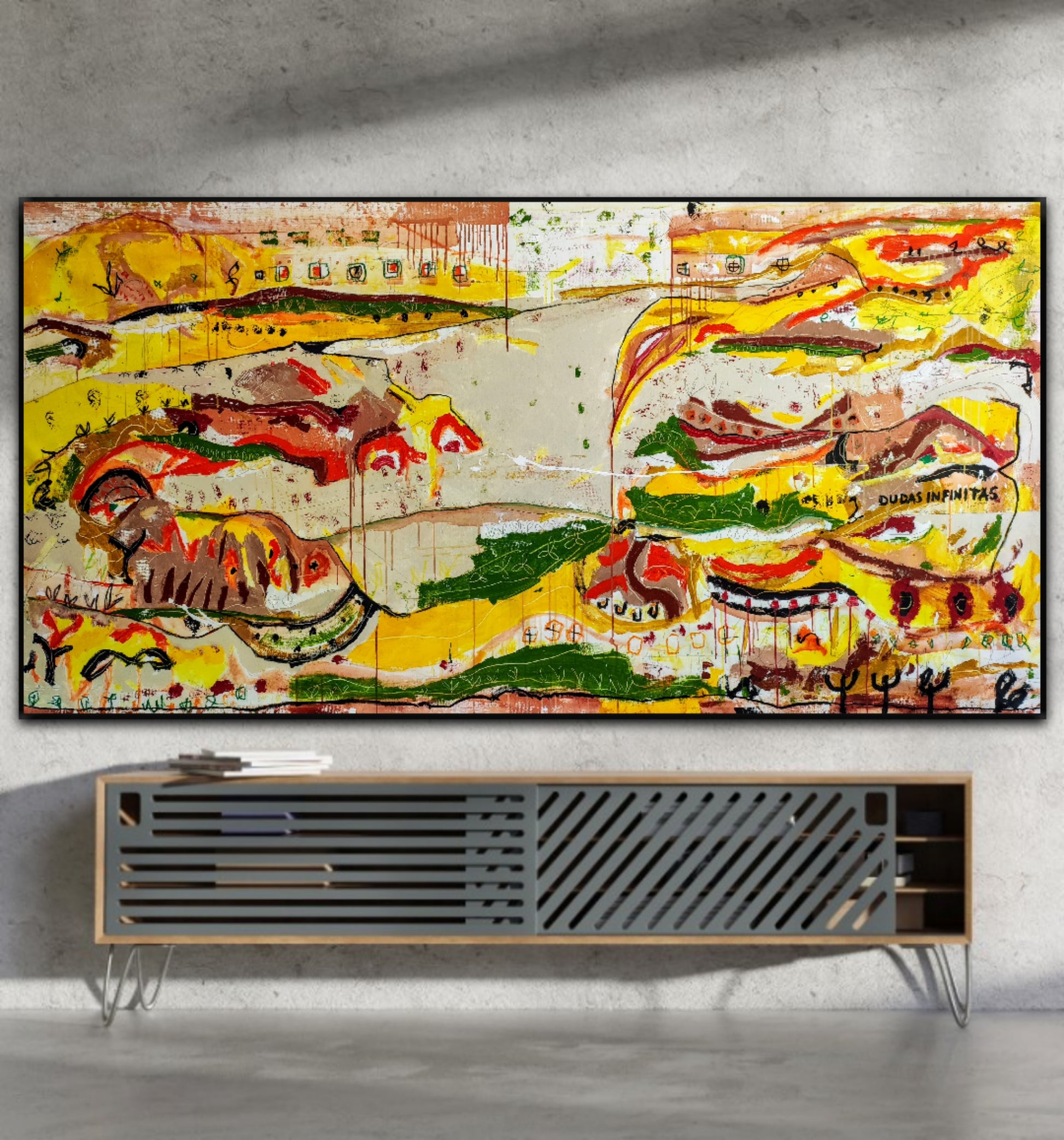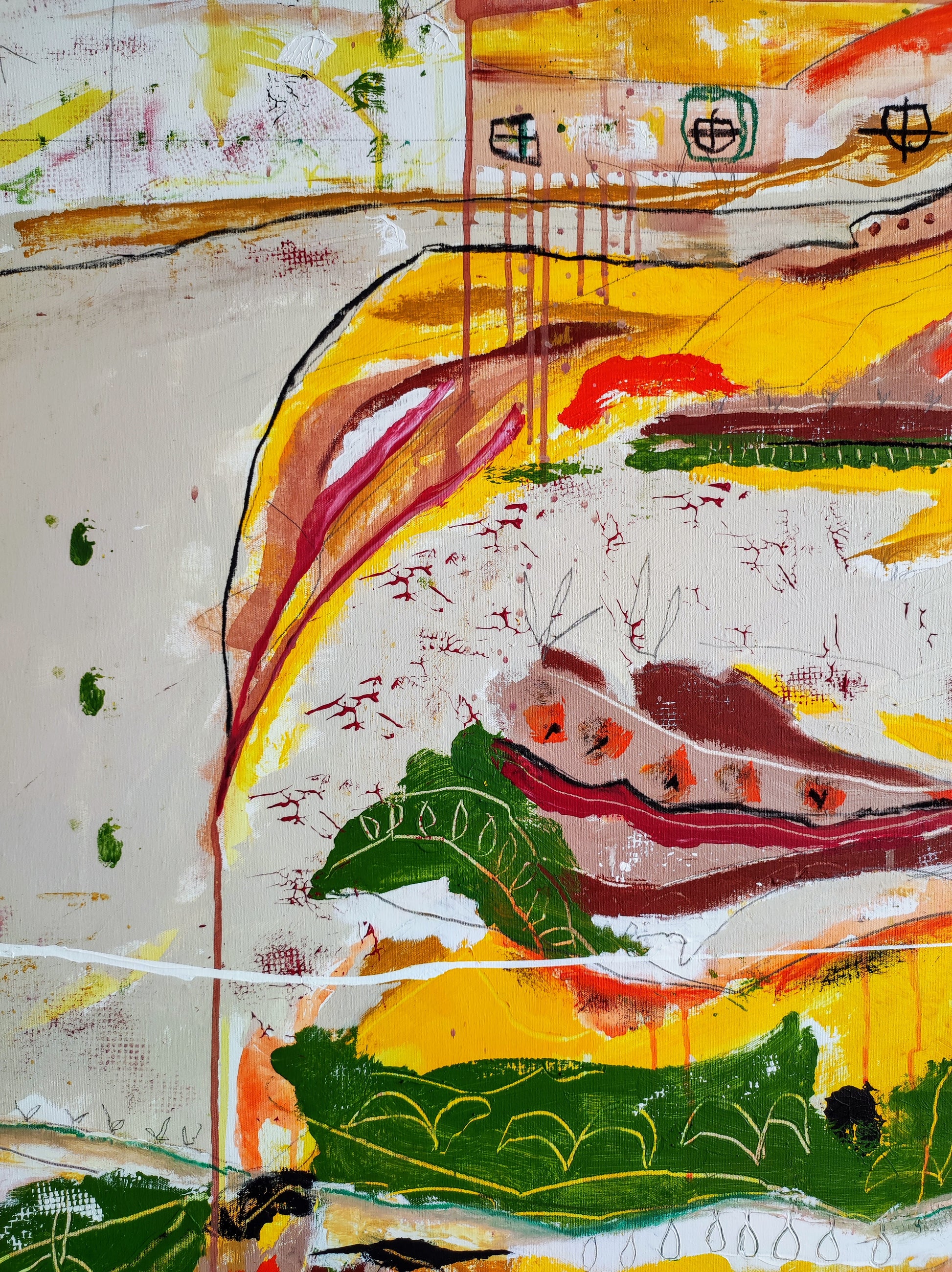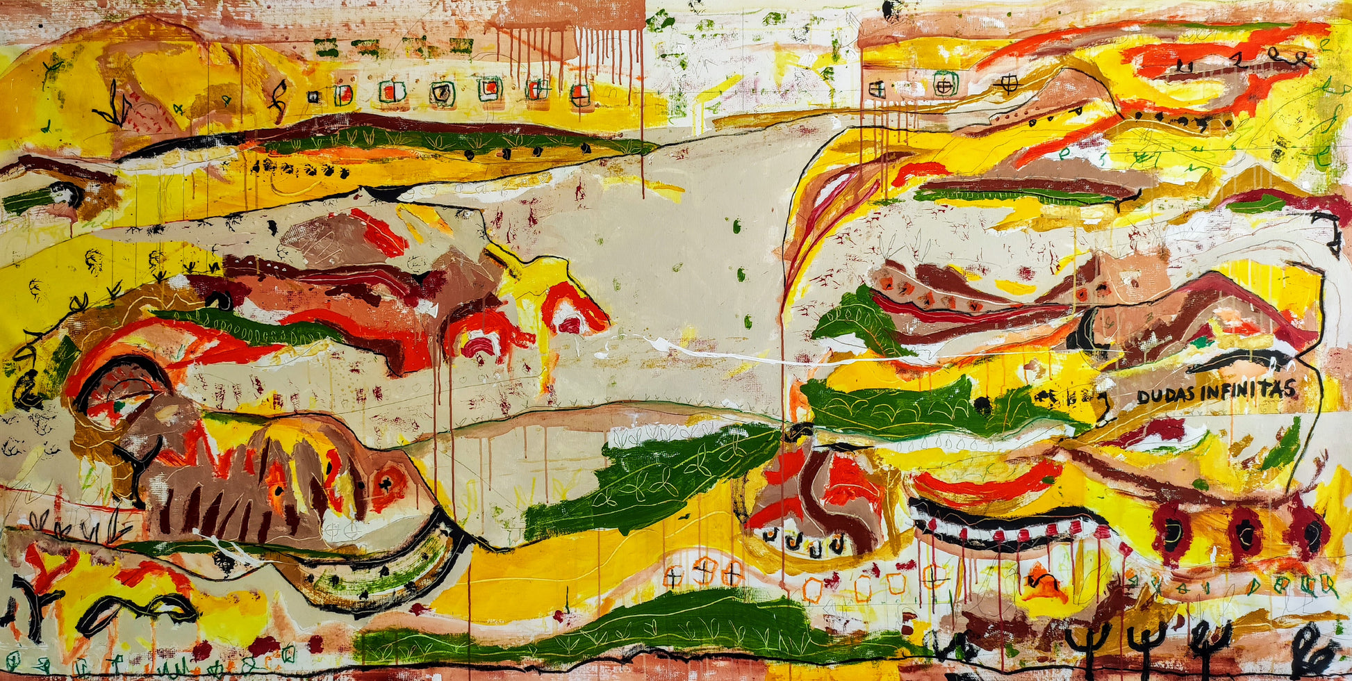 Técnica: mixed media: acrílico, gesso, pigmentos, lápiz y ceras.