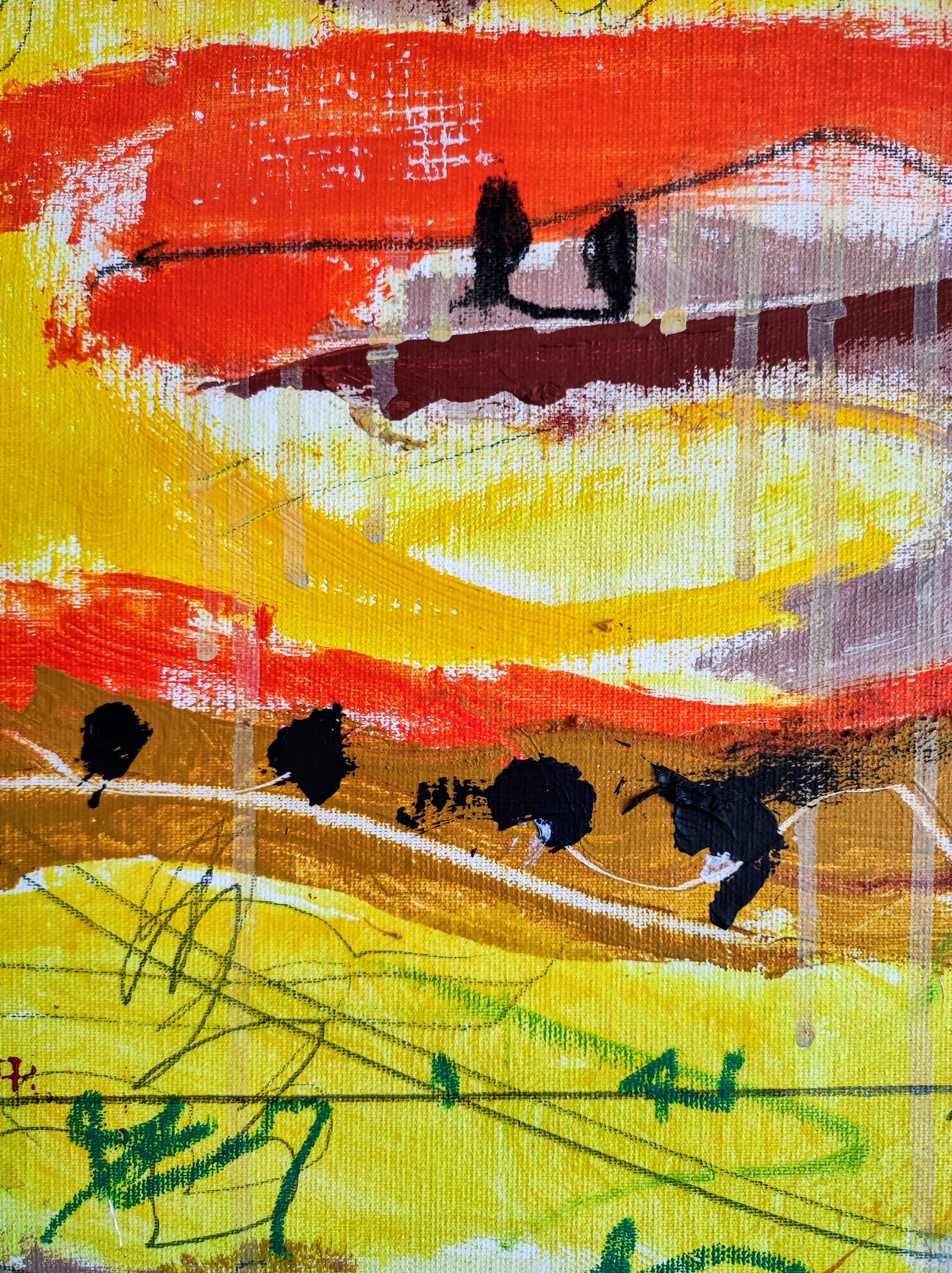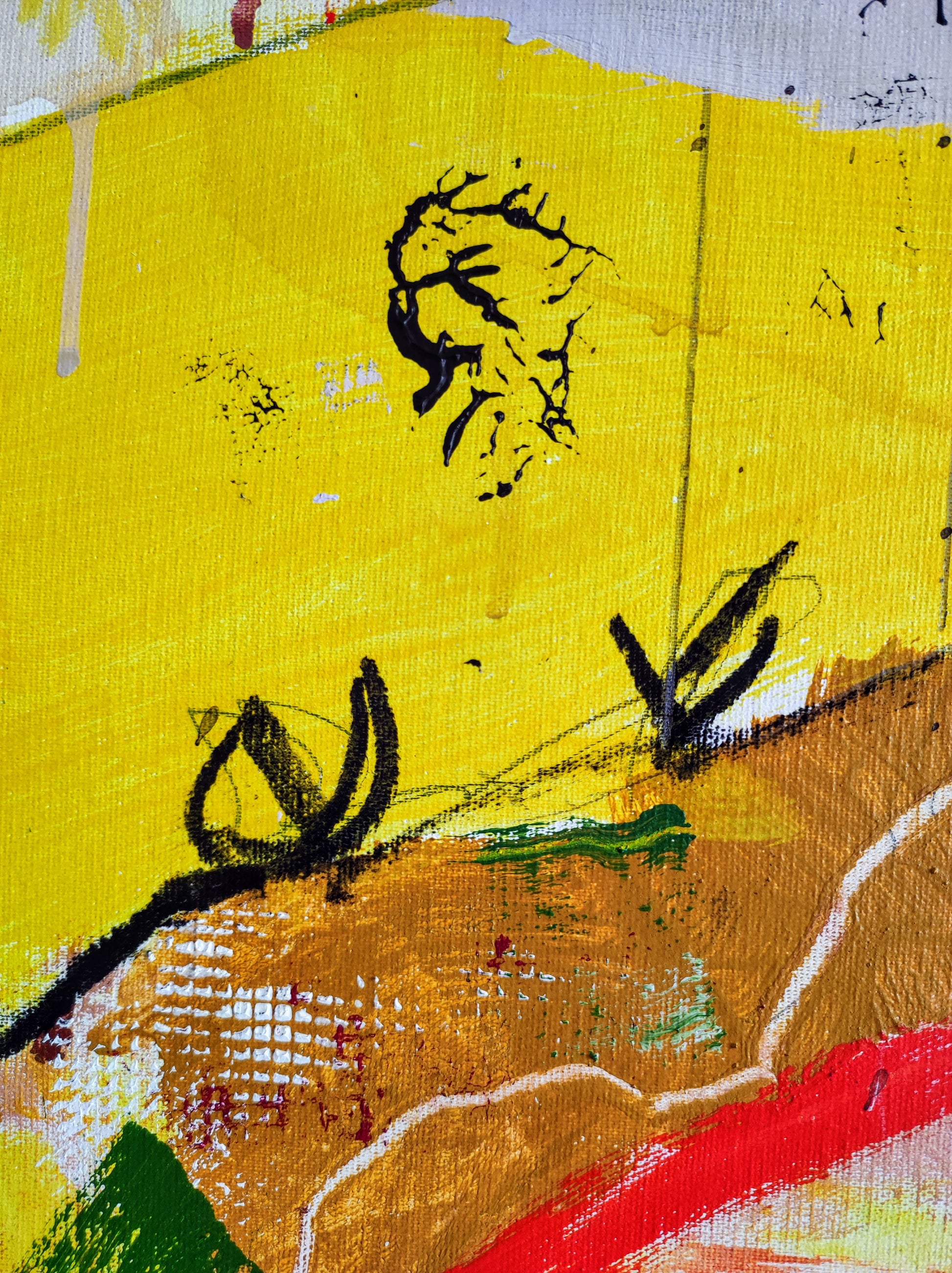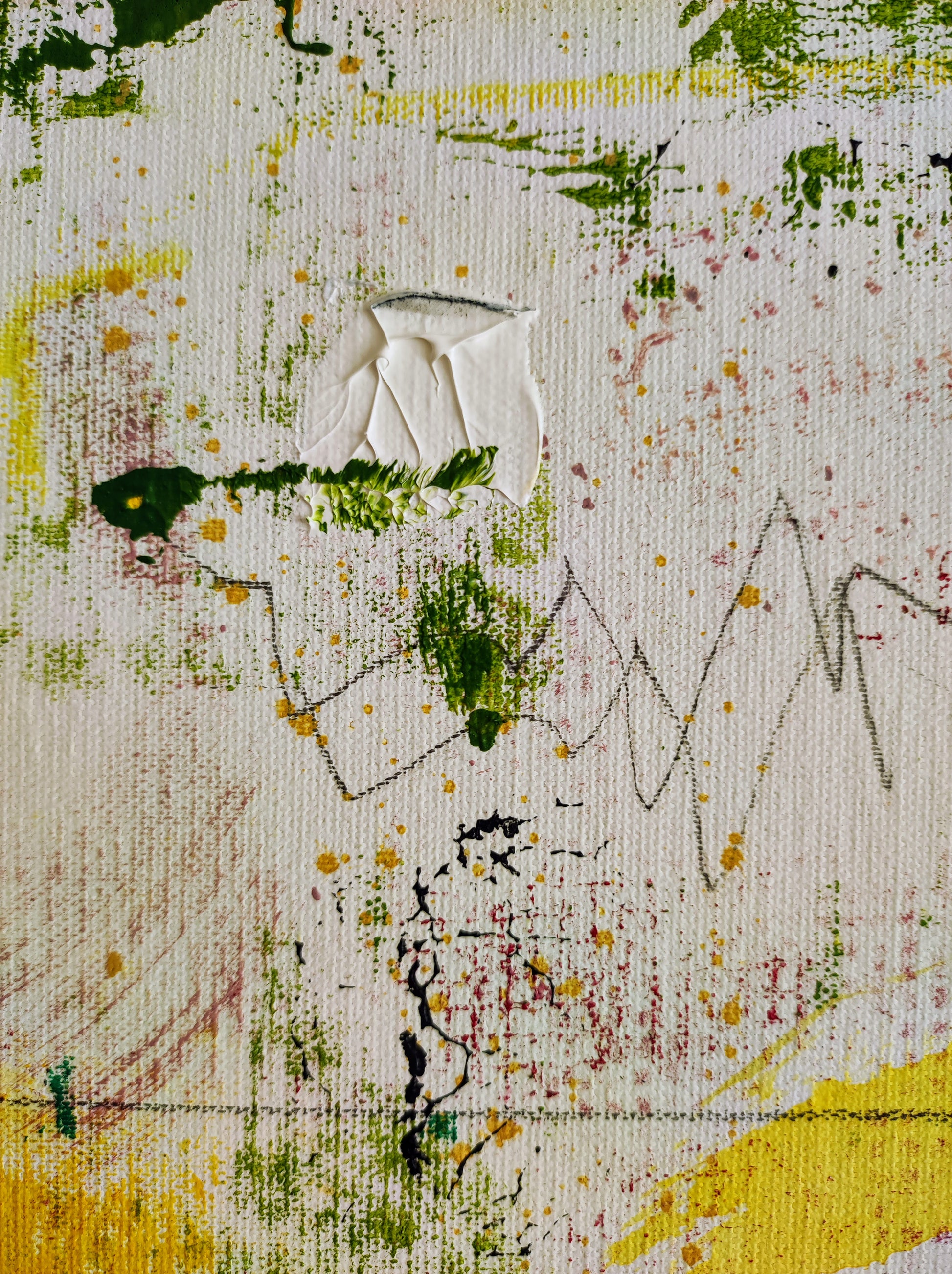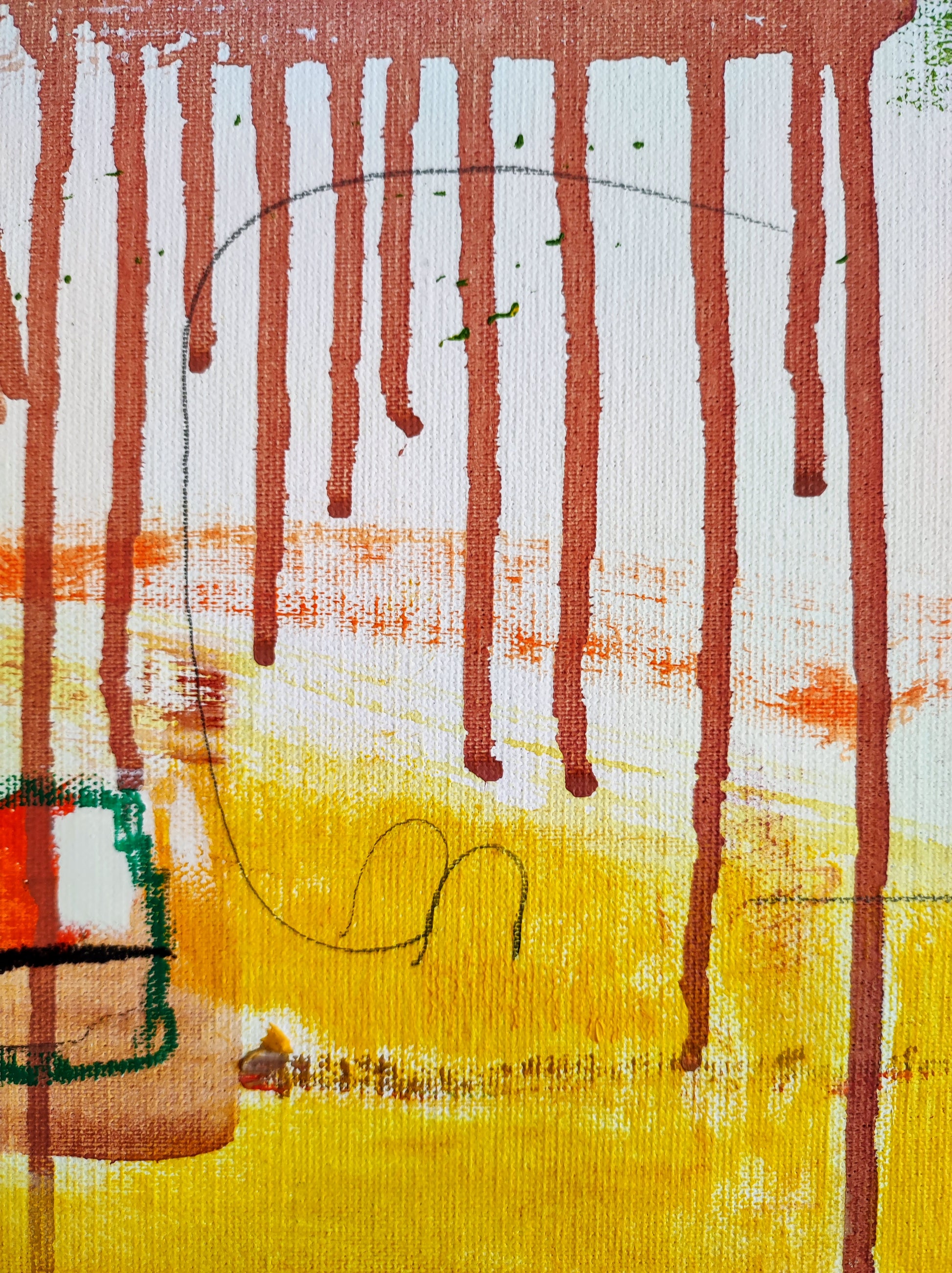 Cuadro trabajado desde la improvisación libre. Action painting con música de Supersubmarina.