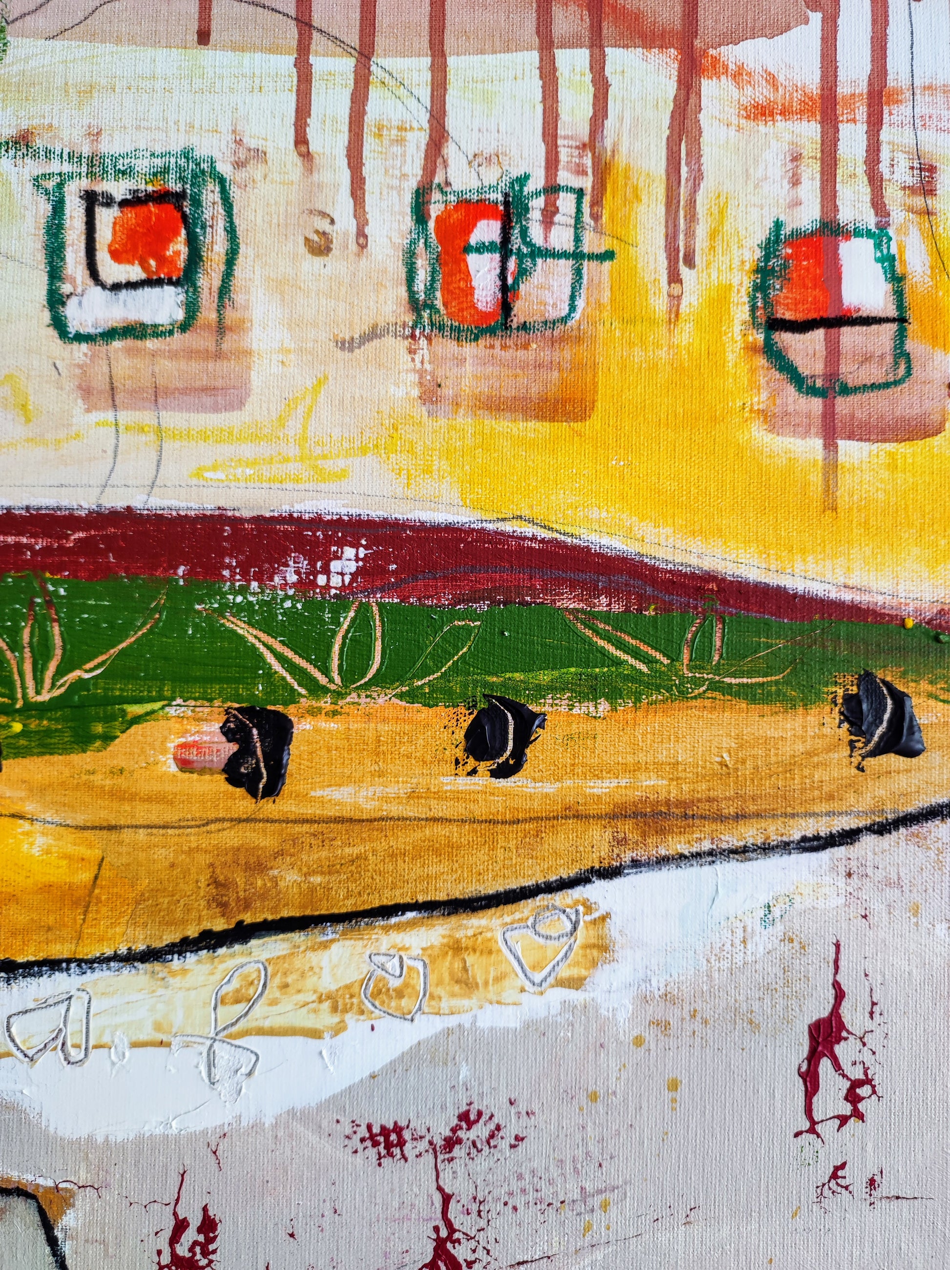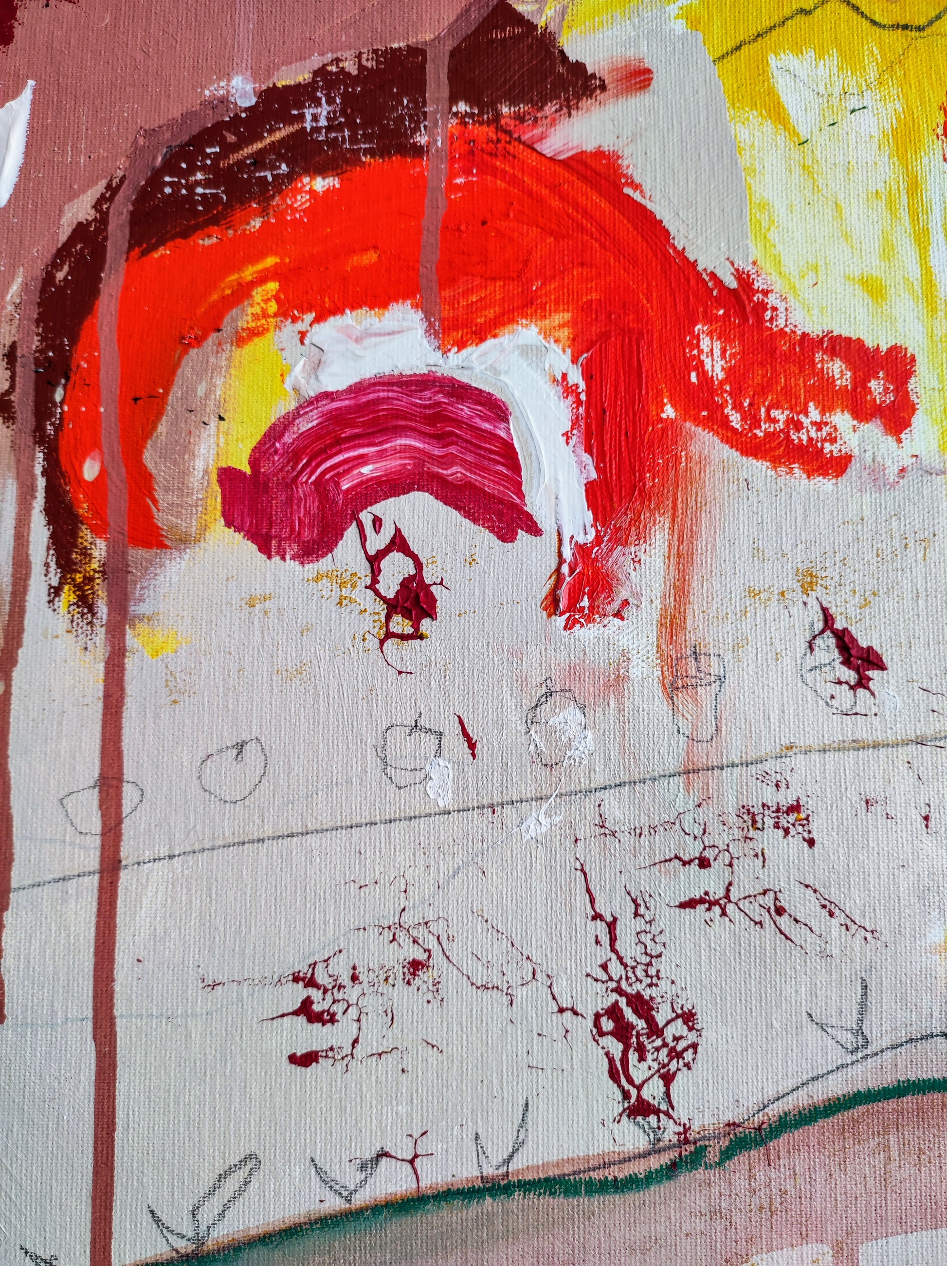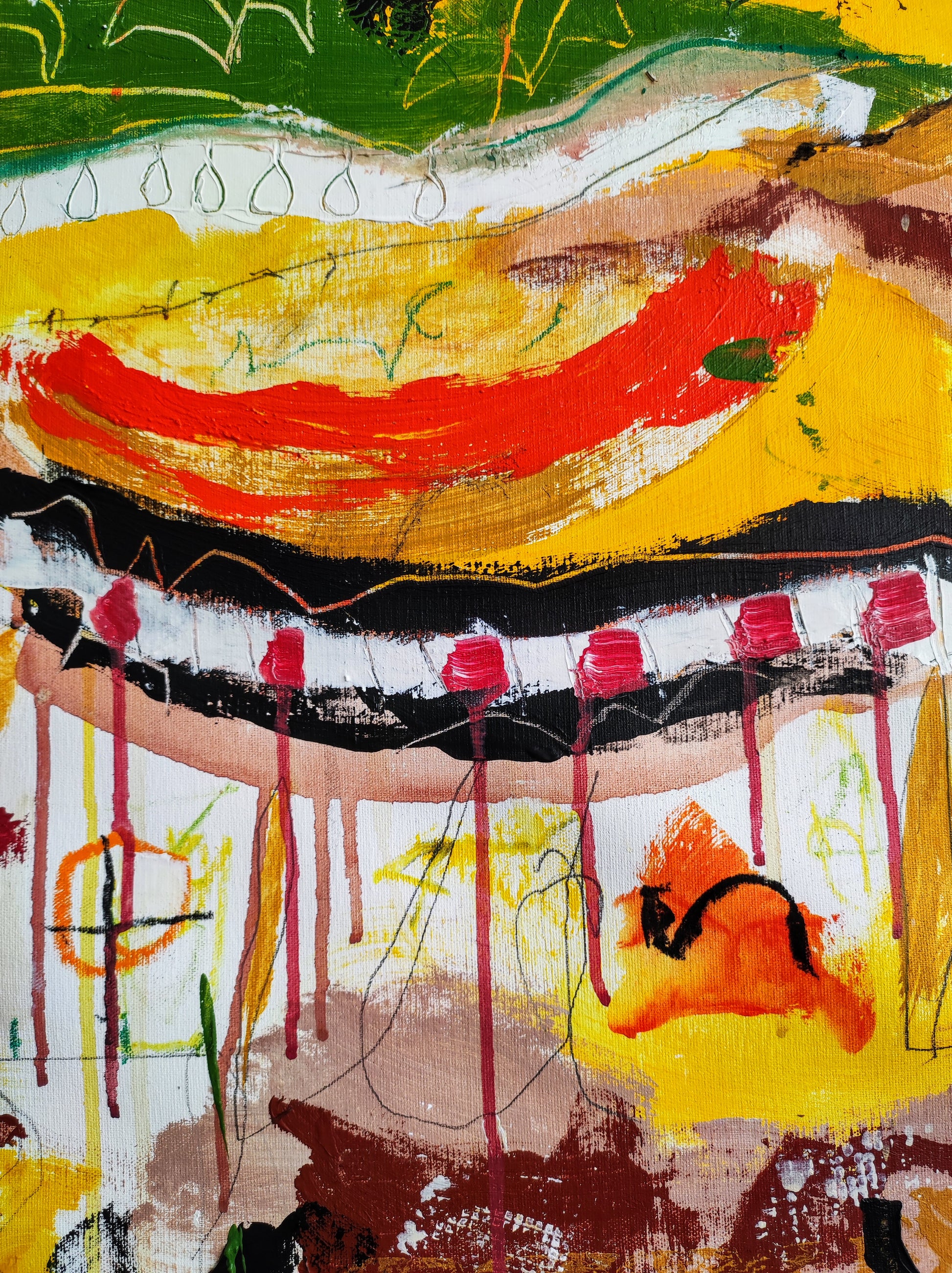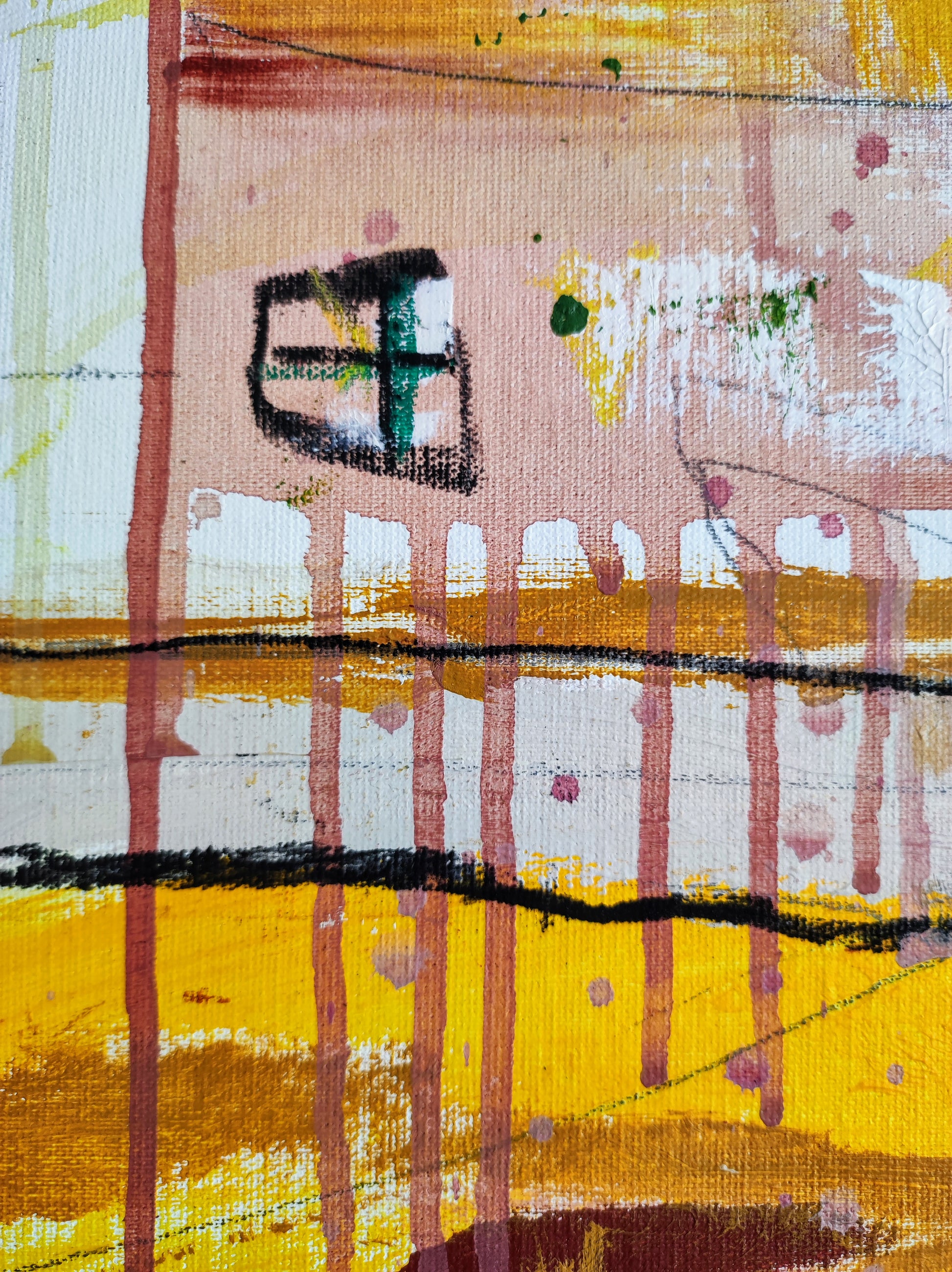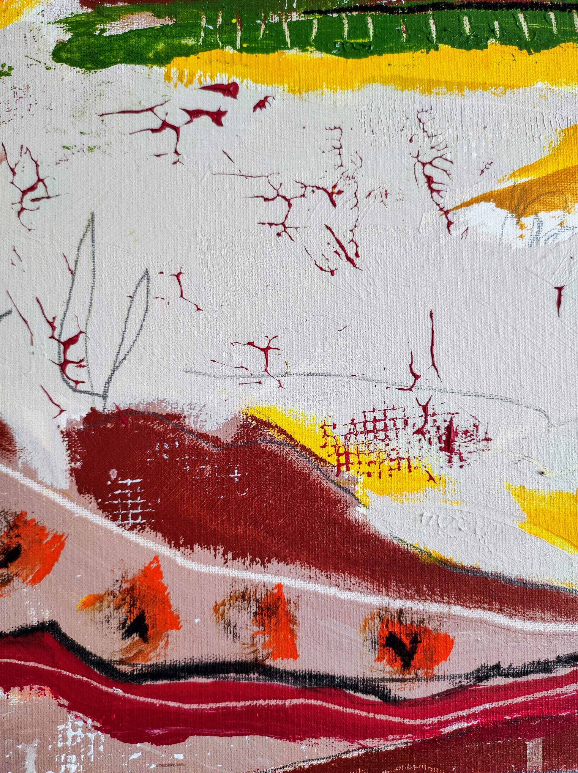 Cuadro trabajado desde la improvisación libre. Action painting con música de Supersubmarina.