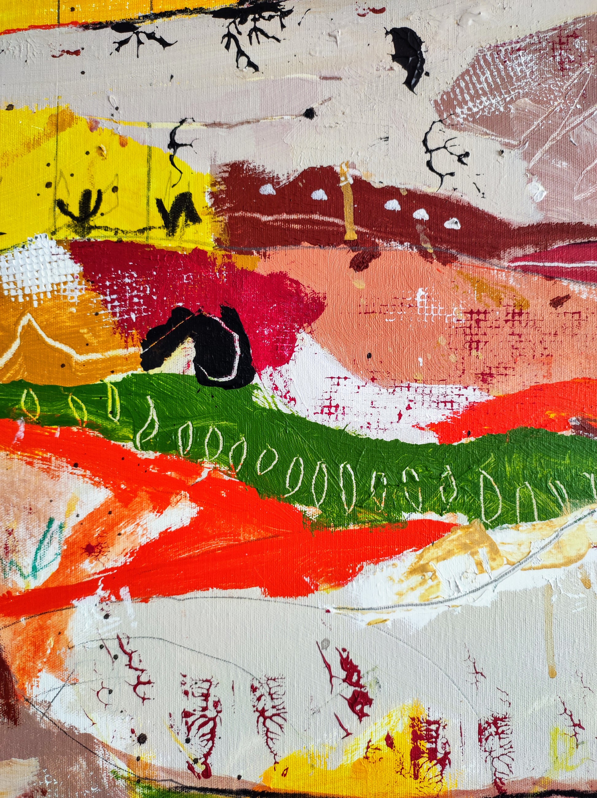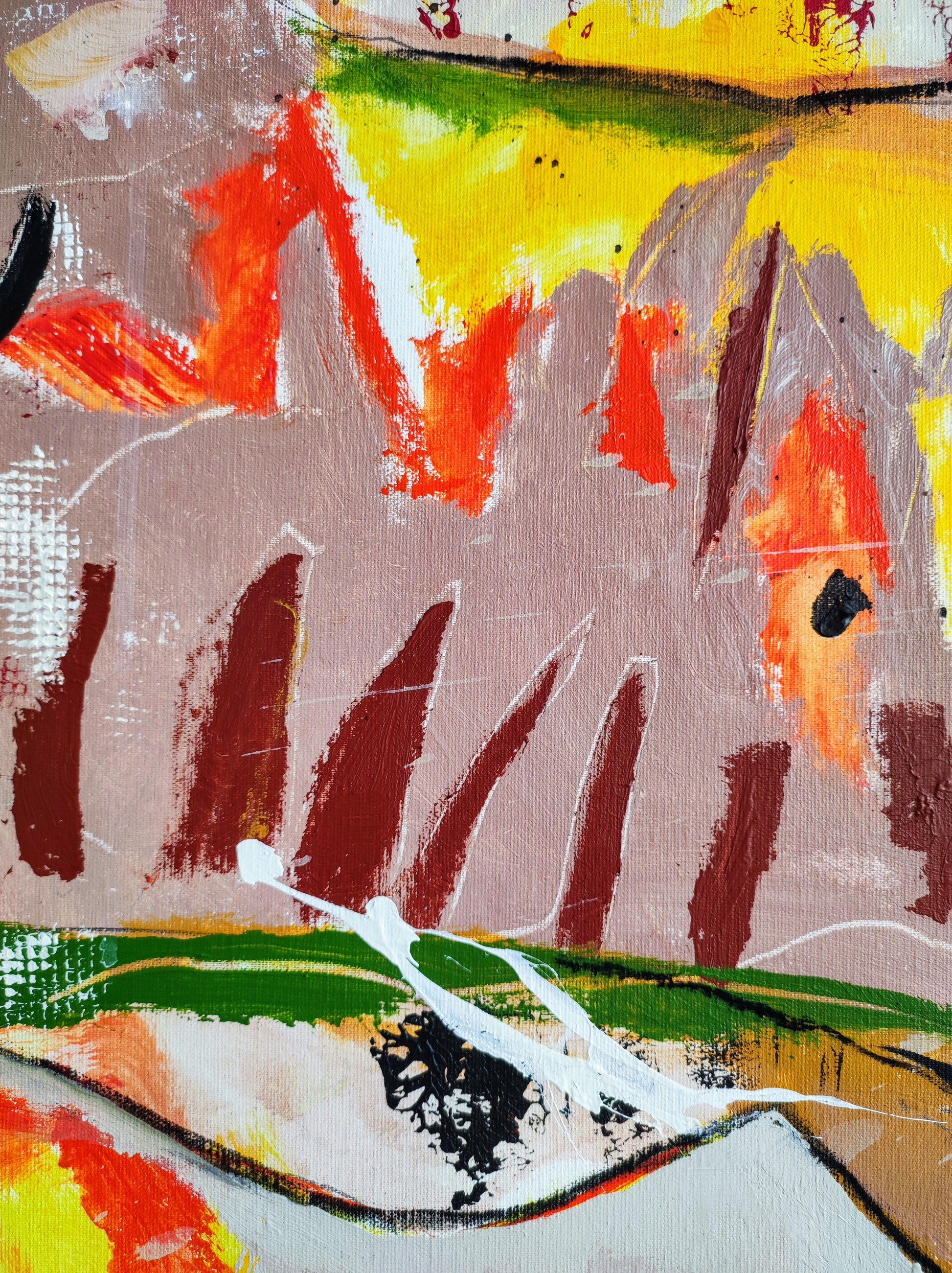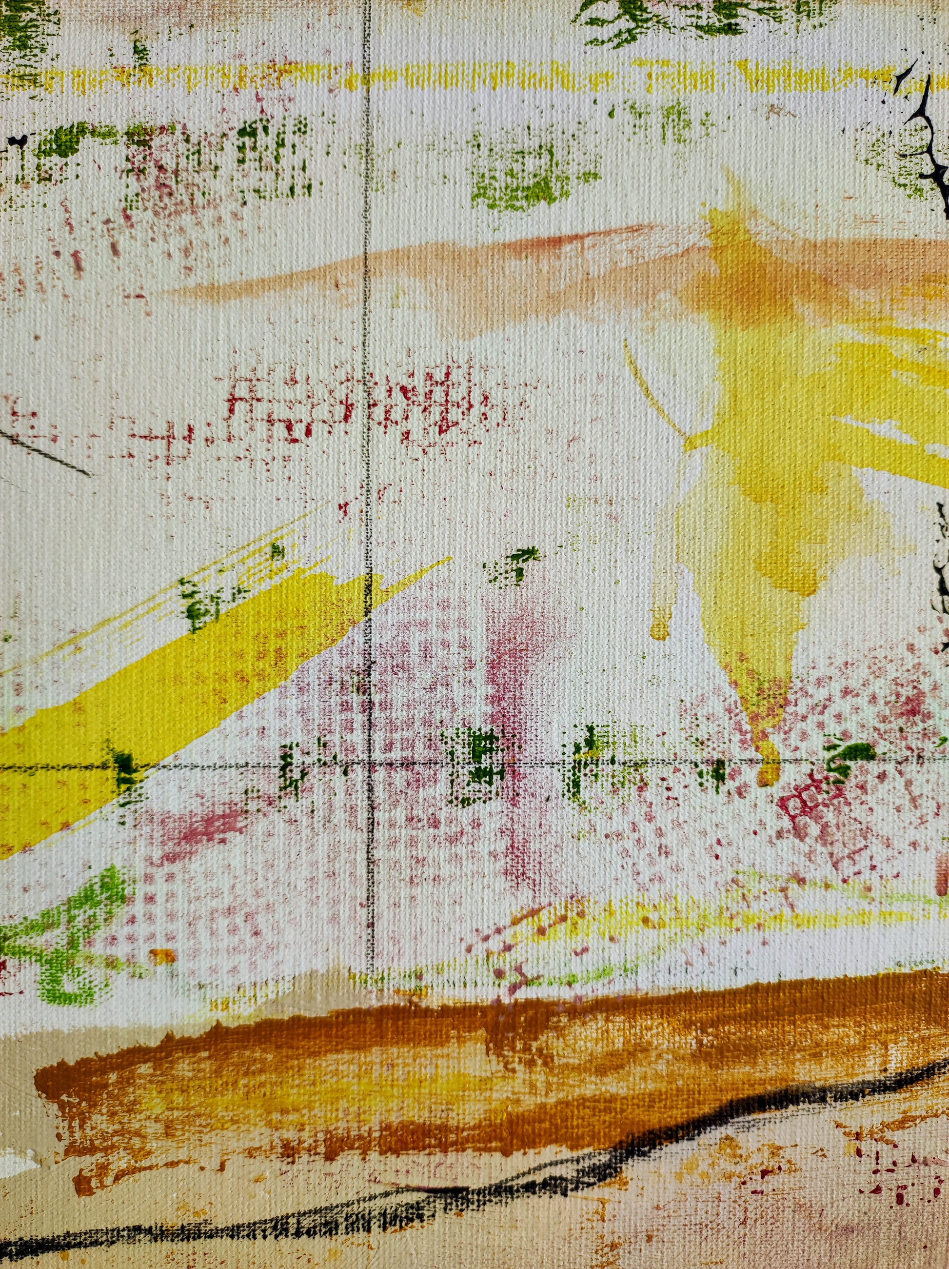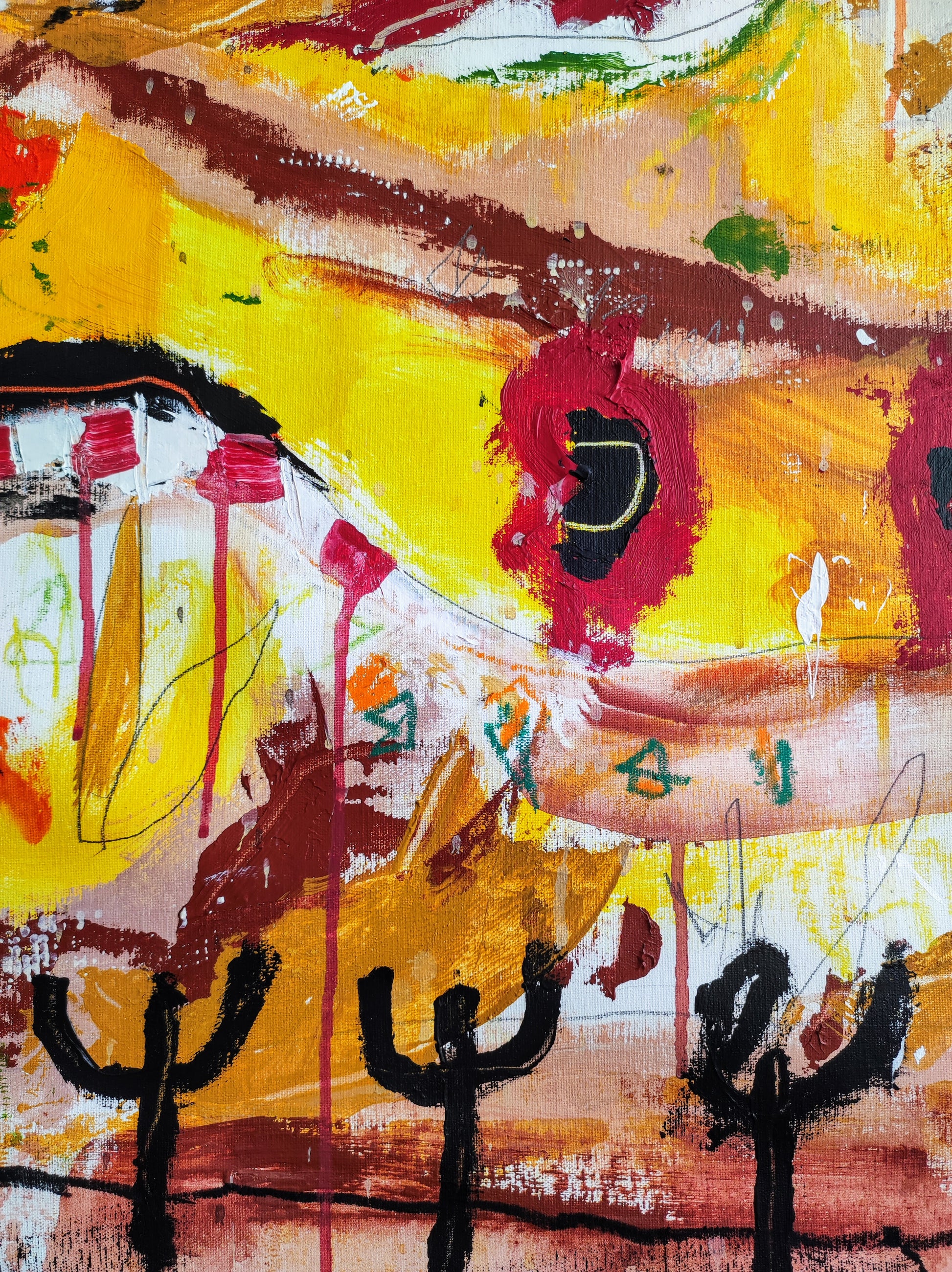 Cuadro trabajado desde la improvisación libre. Action painting con música de Supersubmarina.