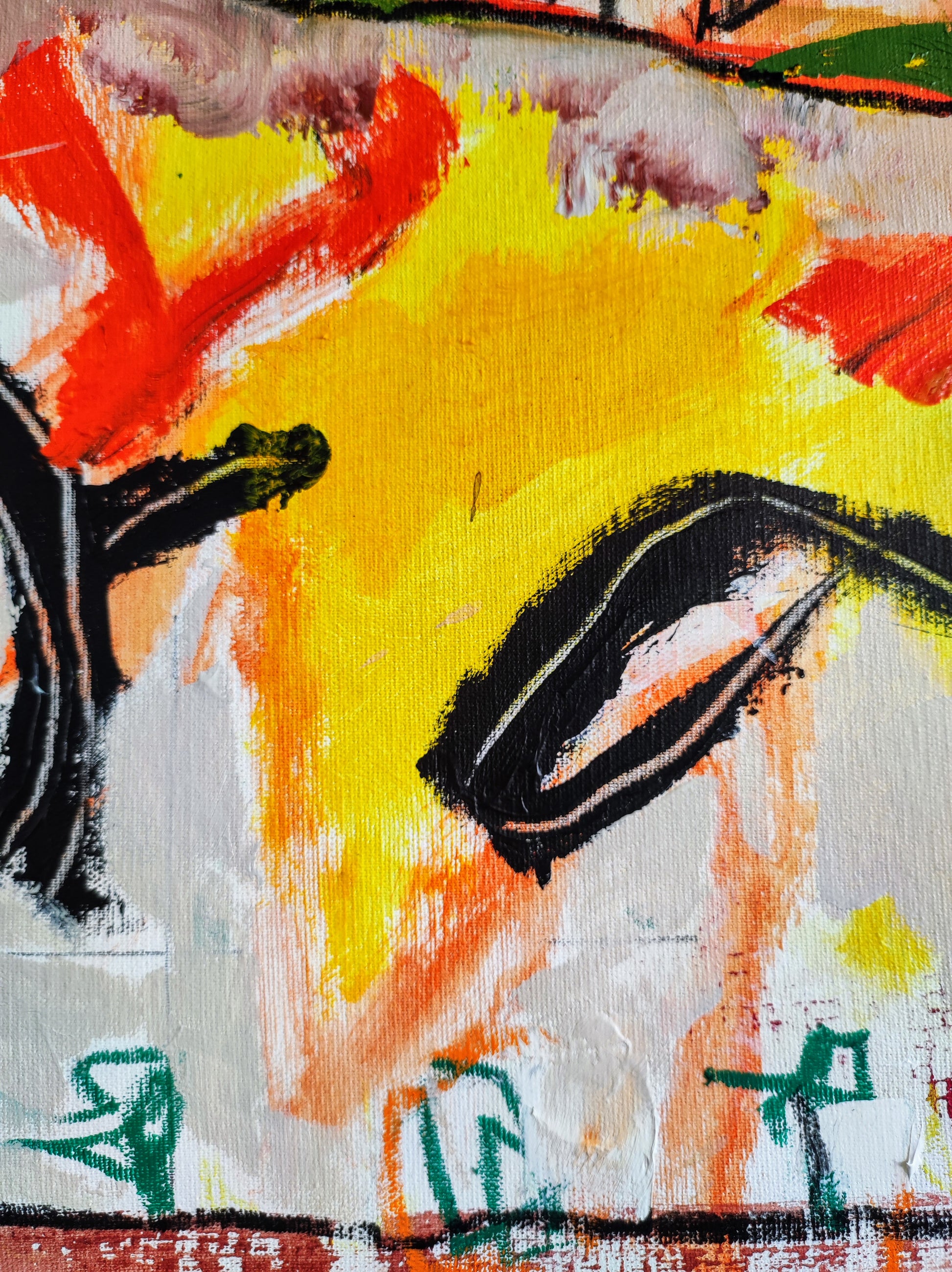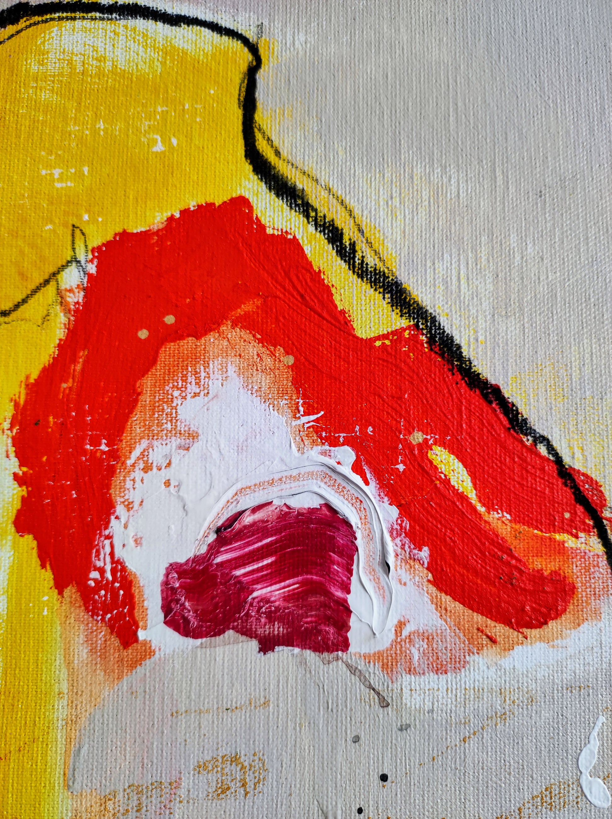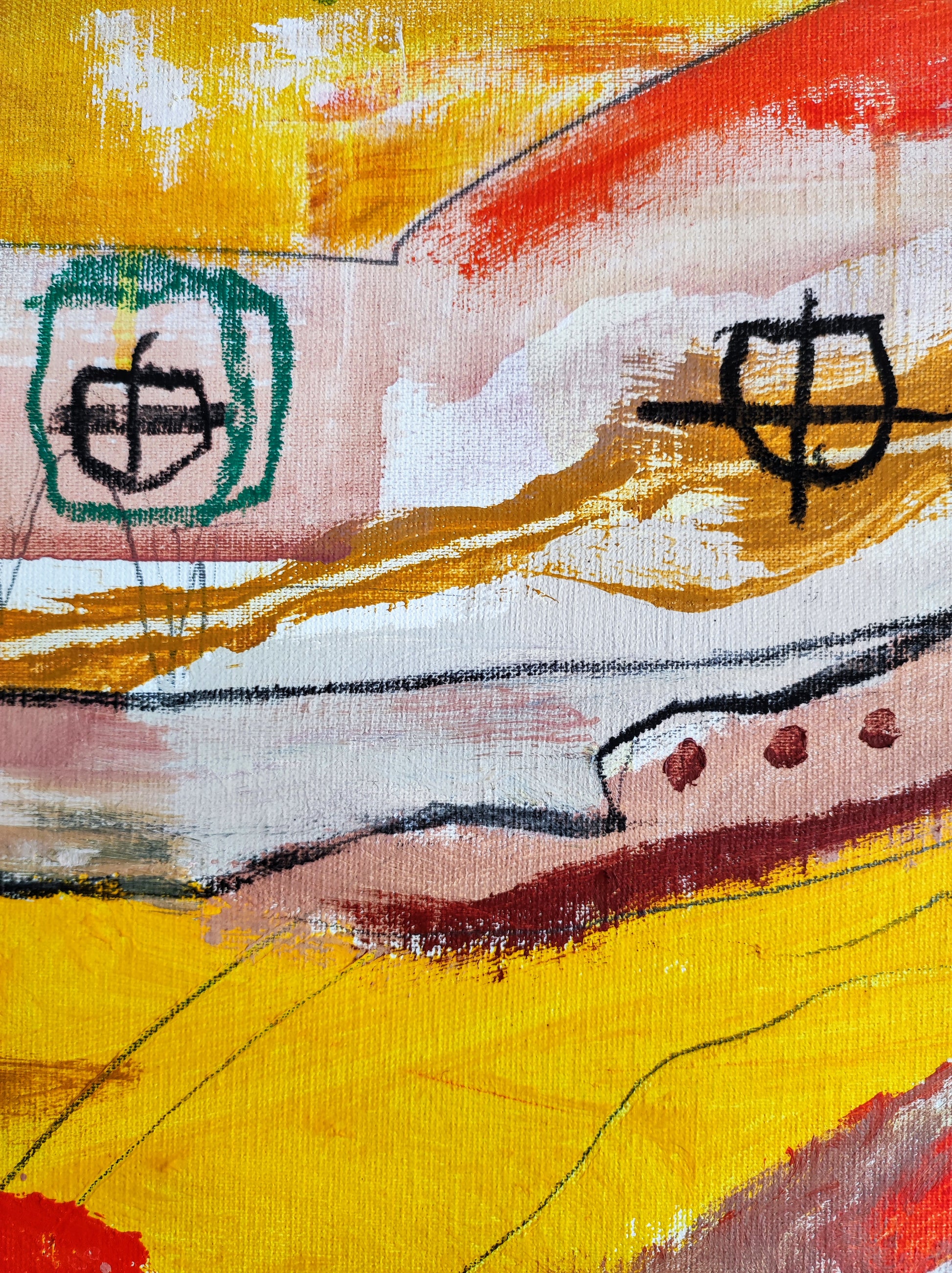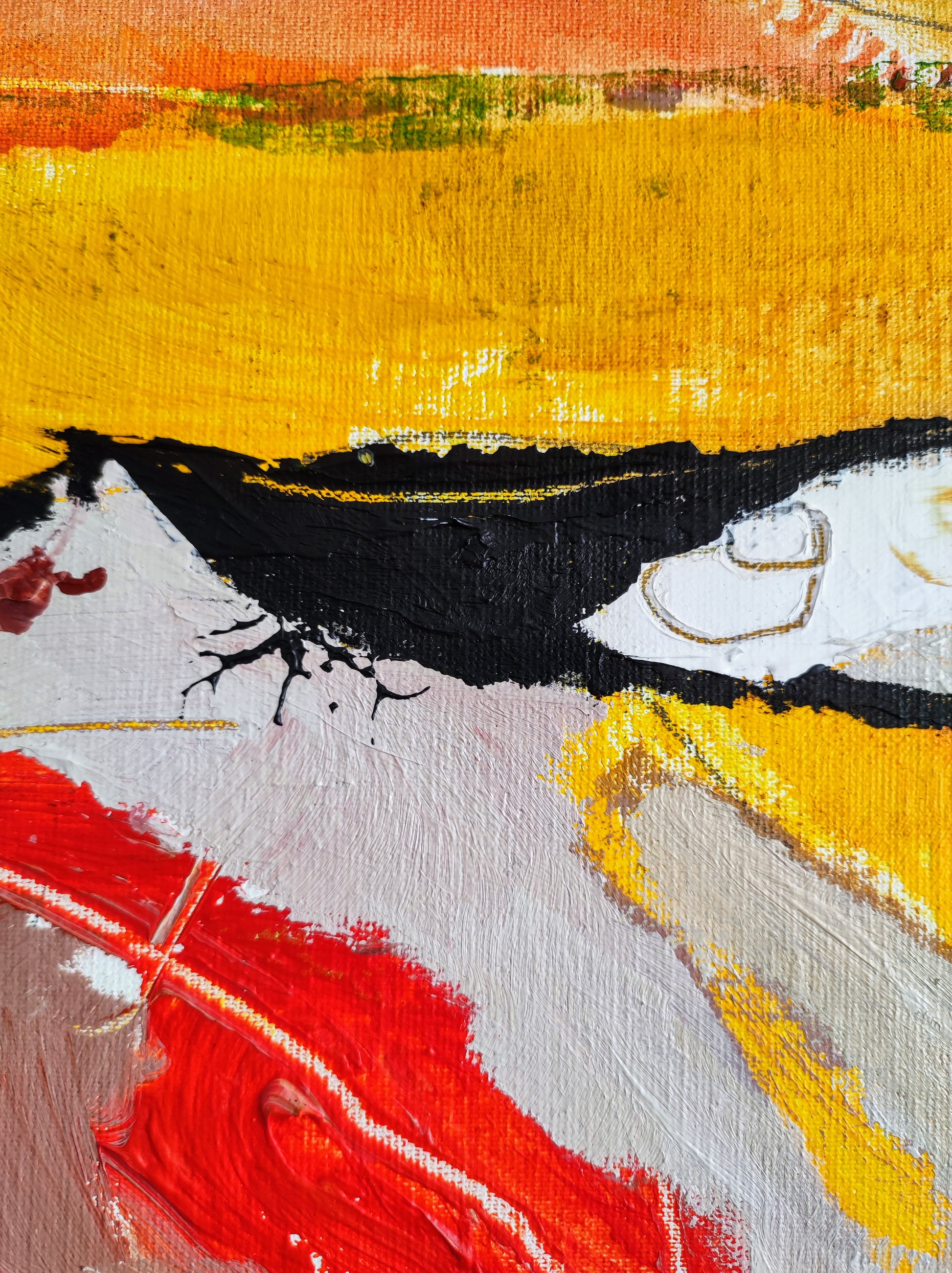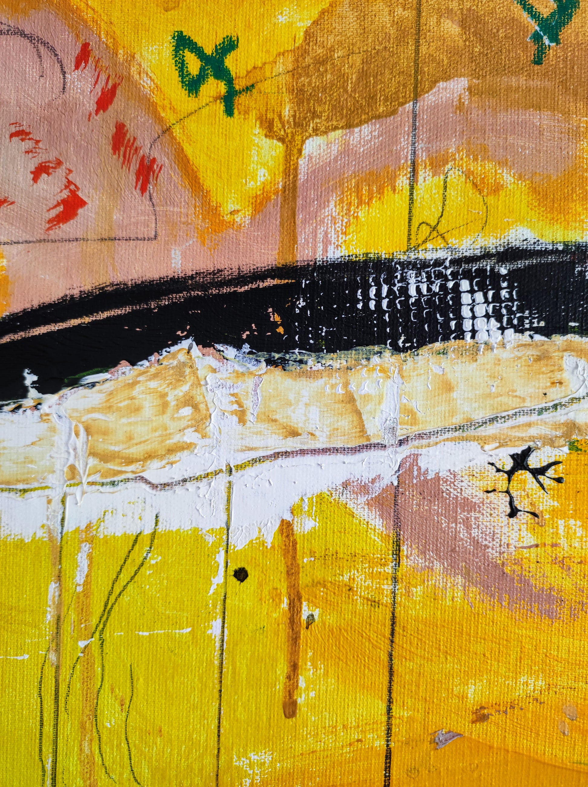 Cuadro trabajado desde la improvisación libre. Action painting con música de Supersubmarina.