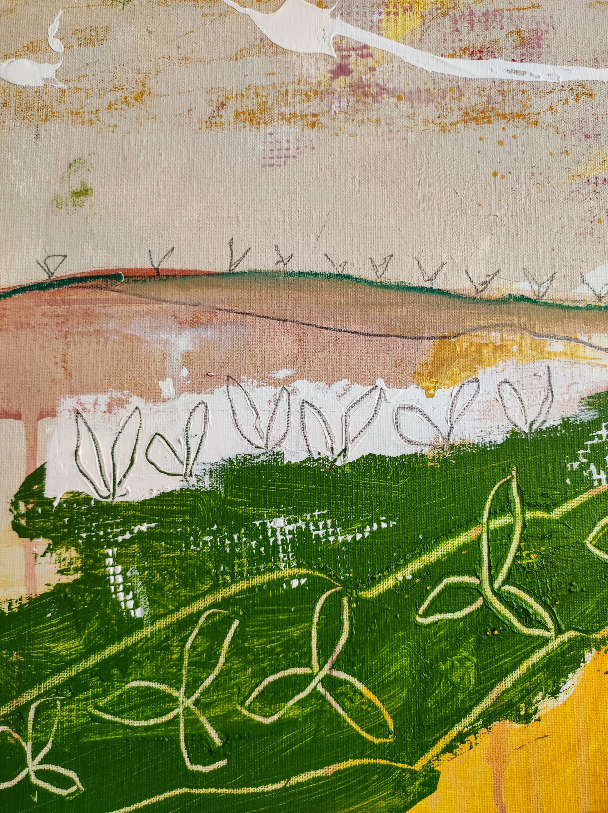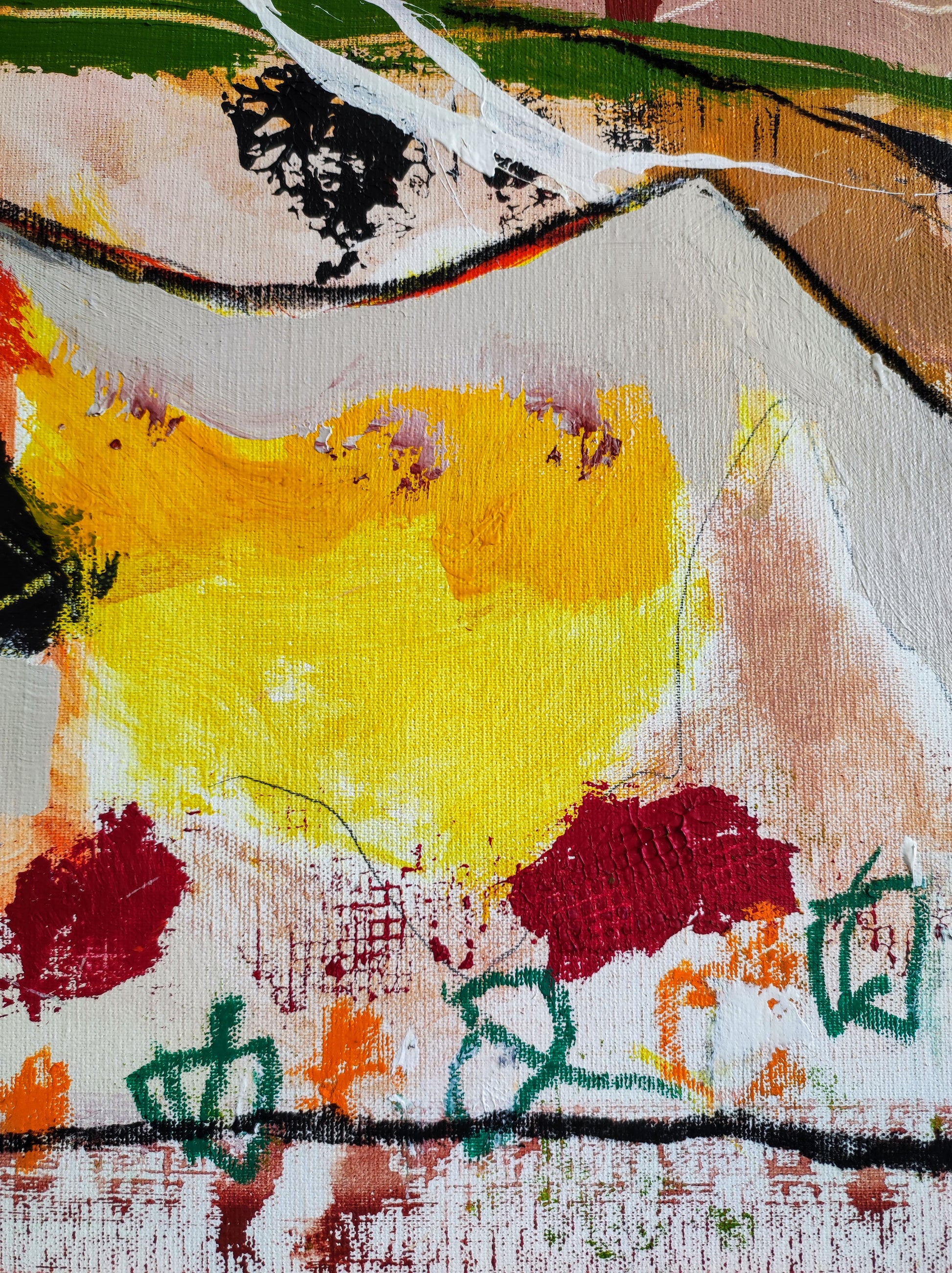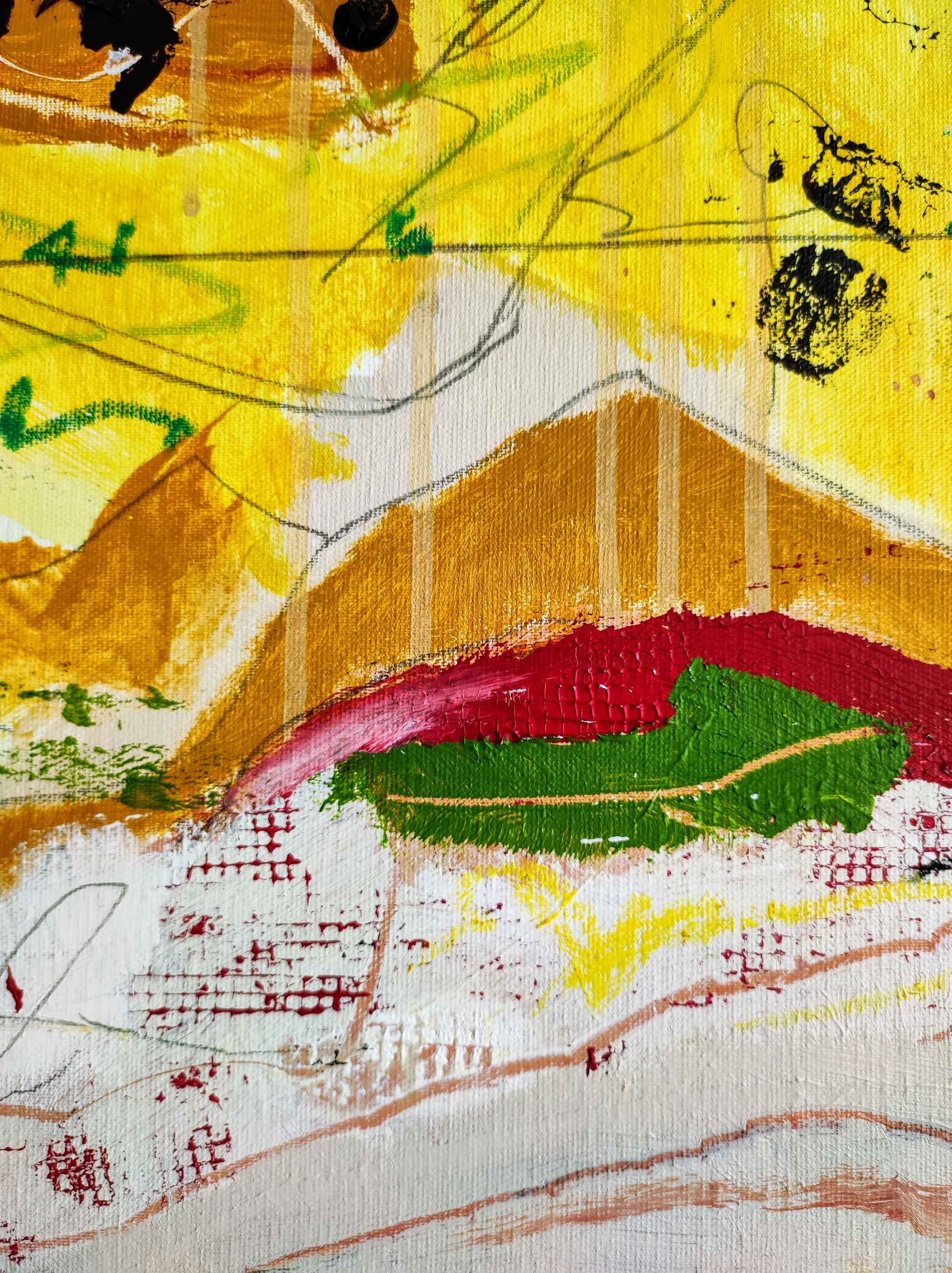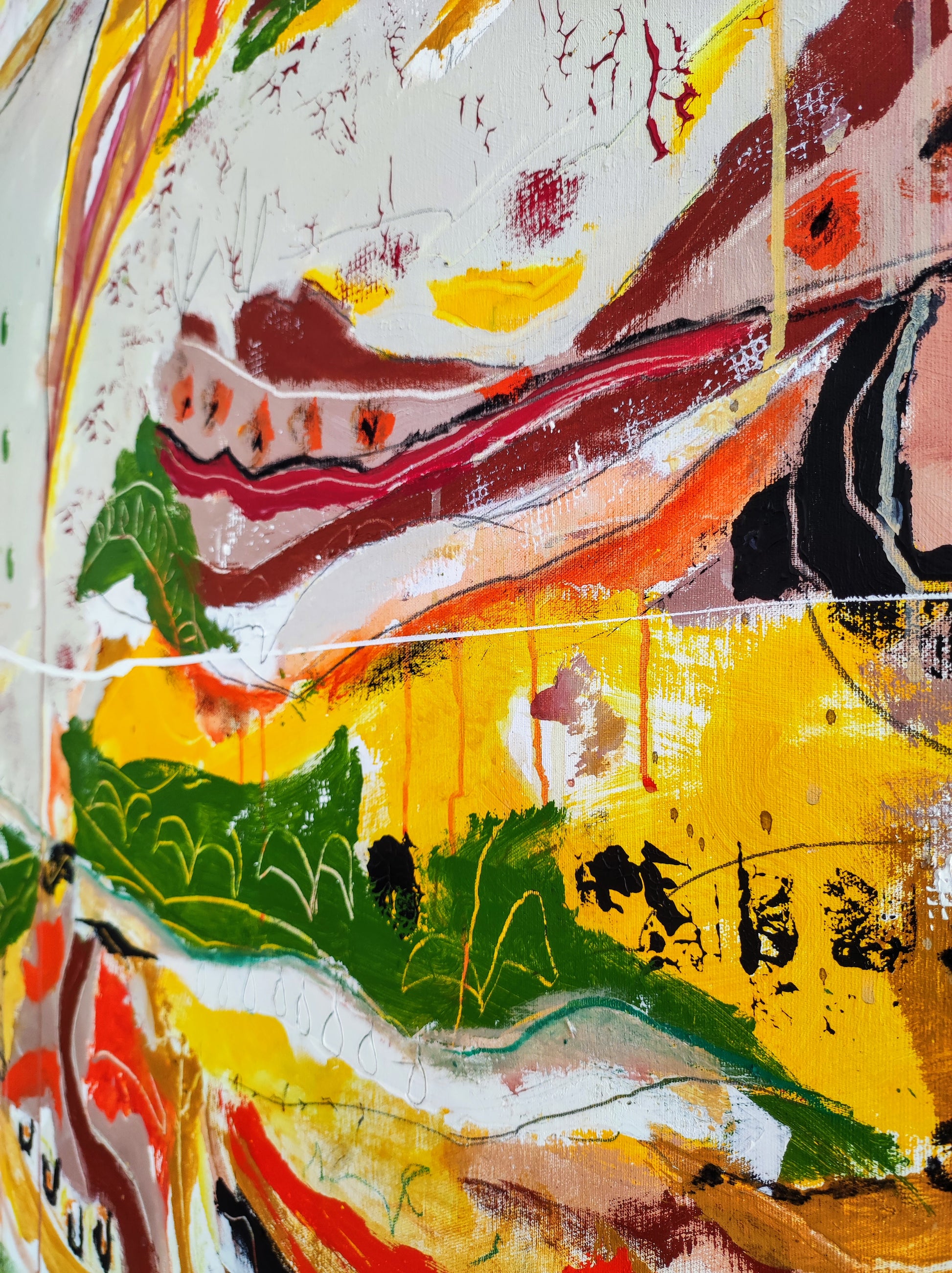 Cuadro trabajado desde la improvisación libre. Action painting con música de Supersubmarina.