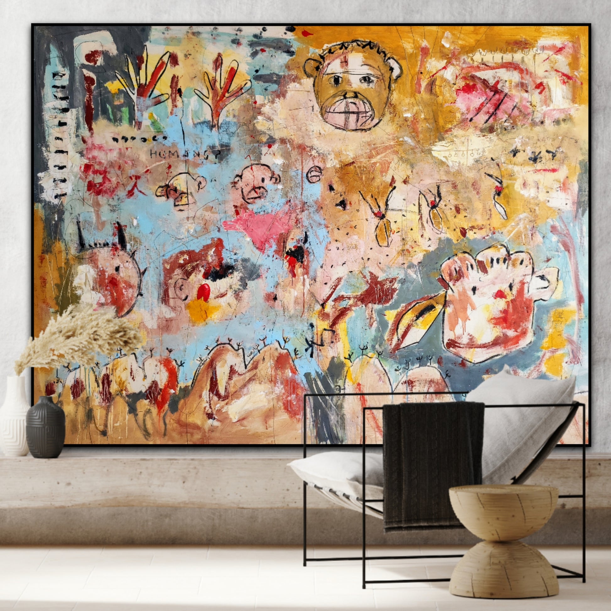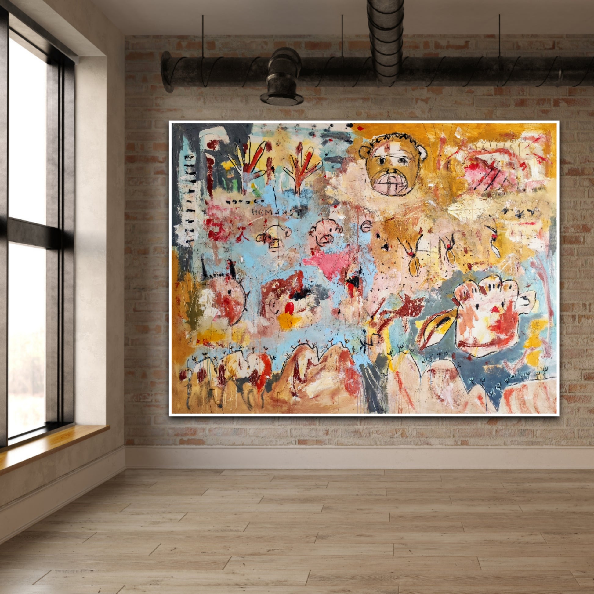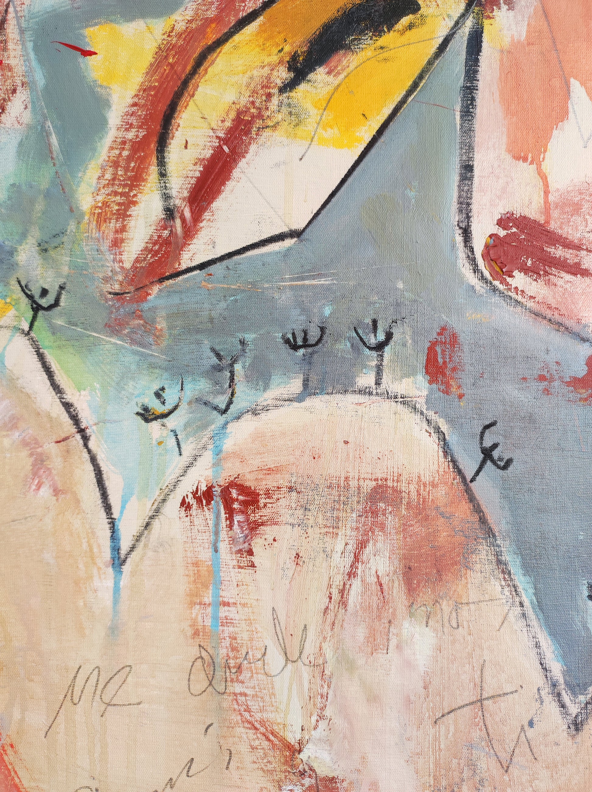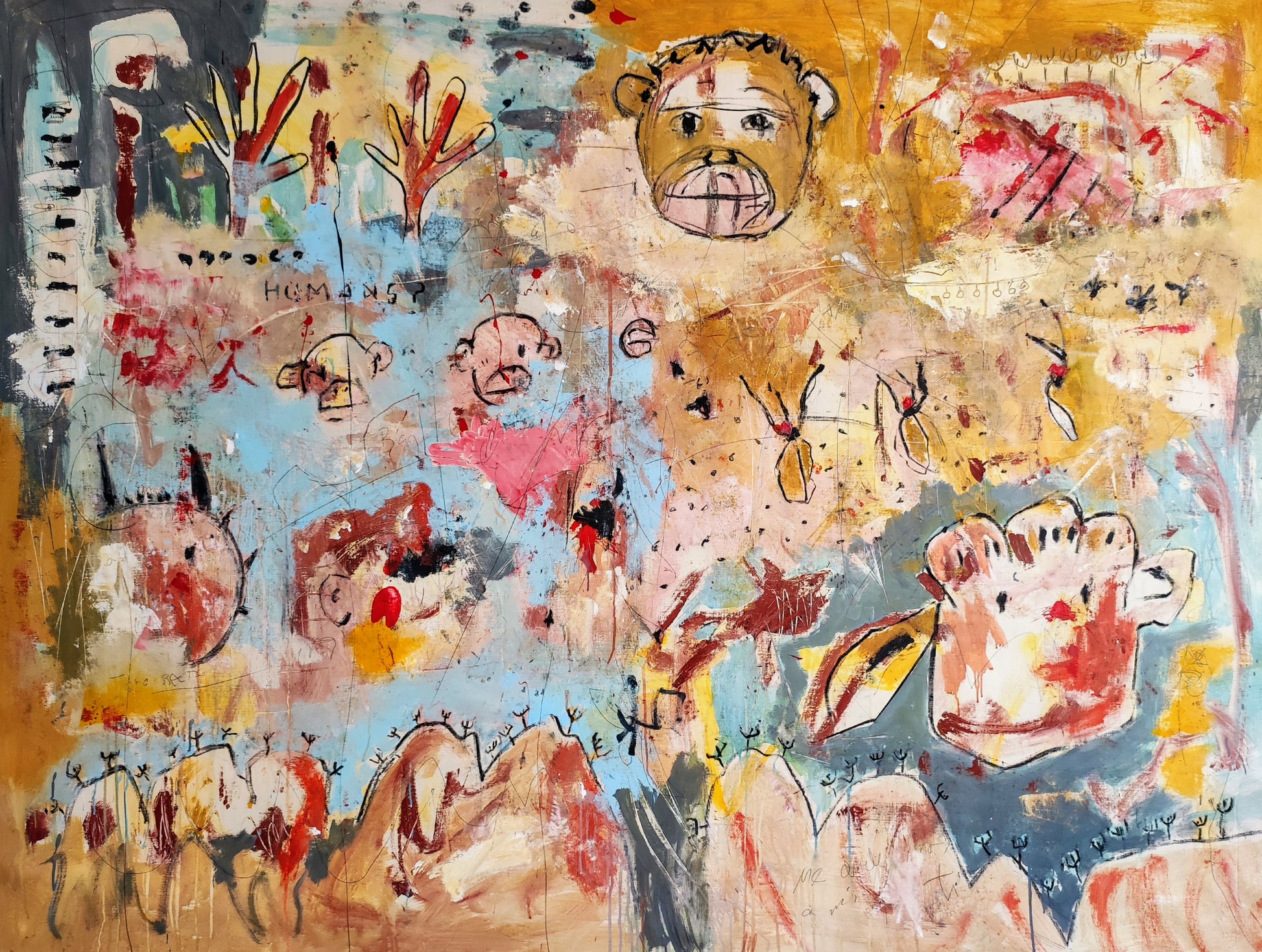 Técnica: acrílico, pigmentos, tinta china, ceras, carboncillo y lápiz.