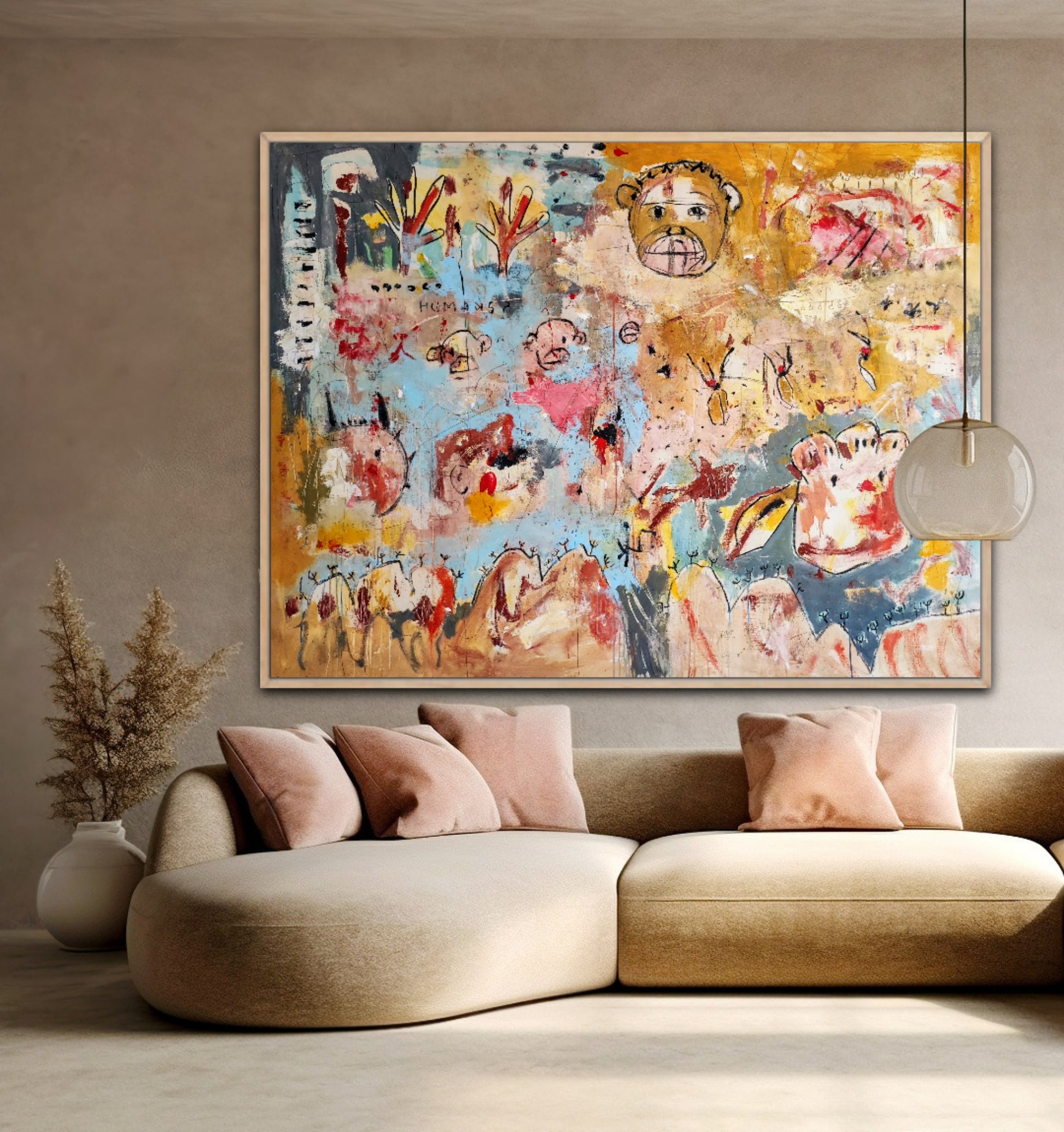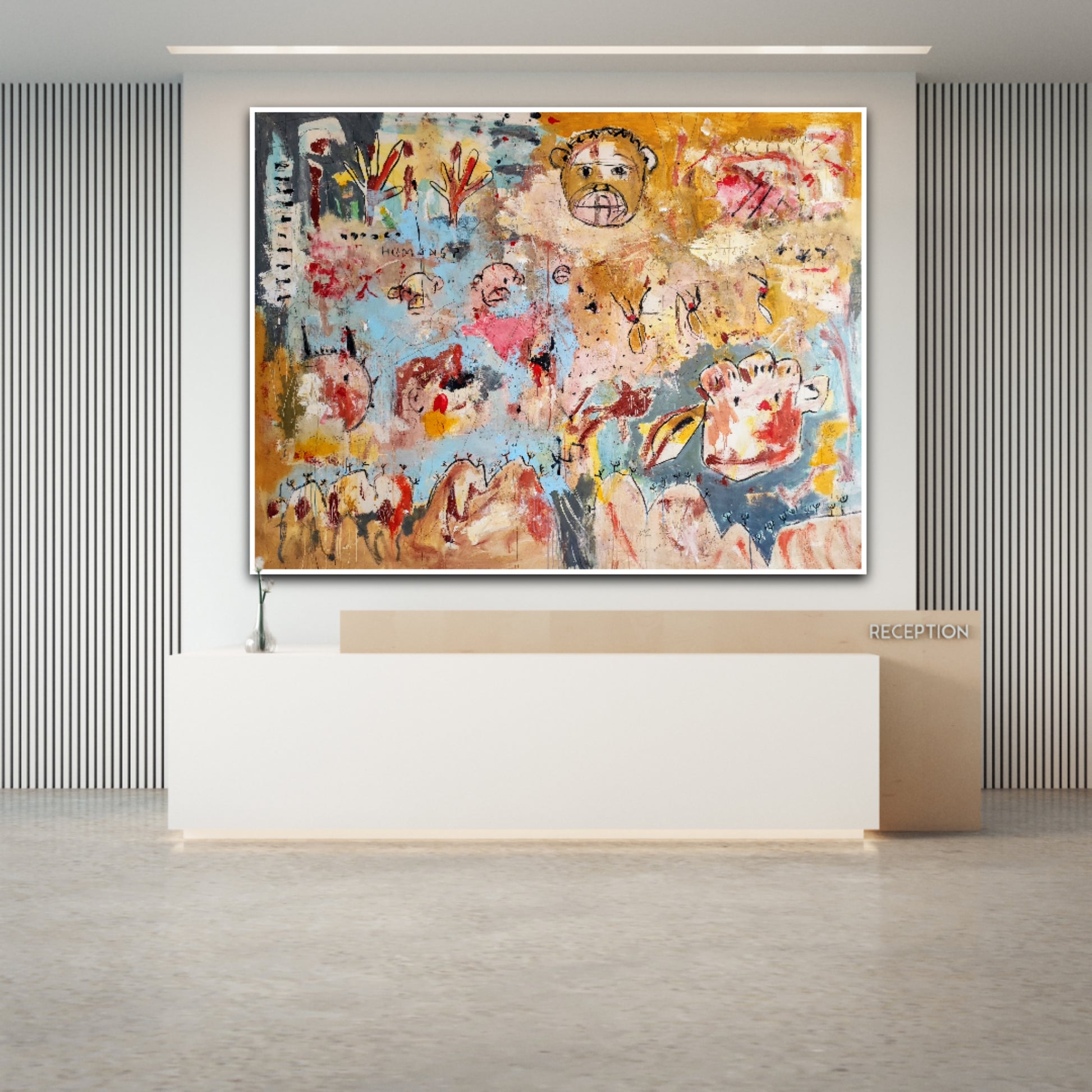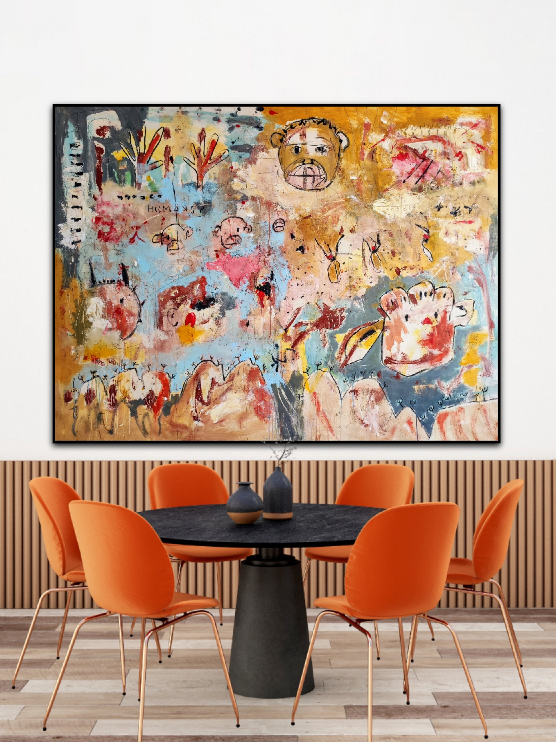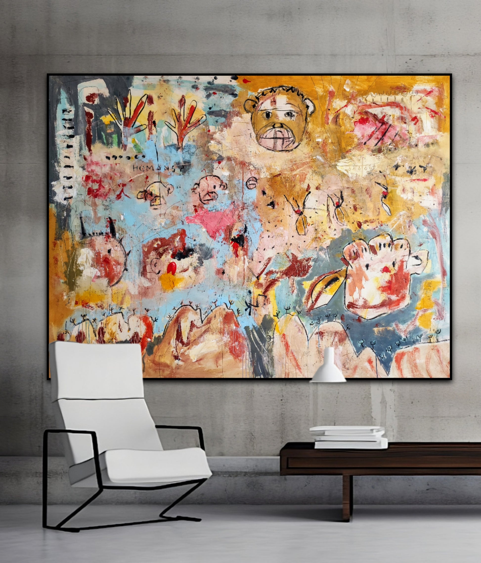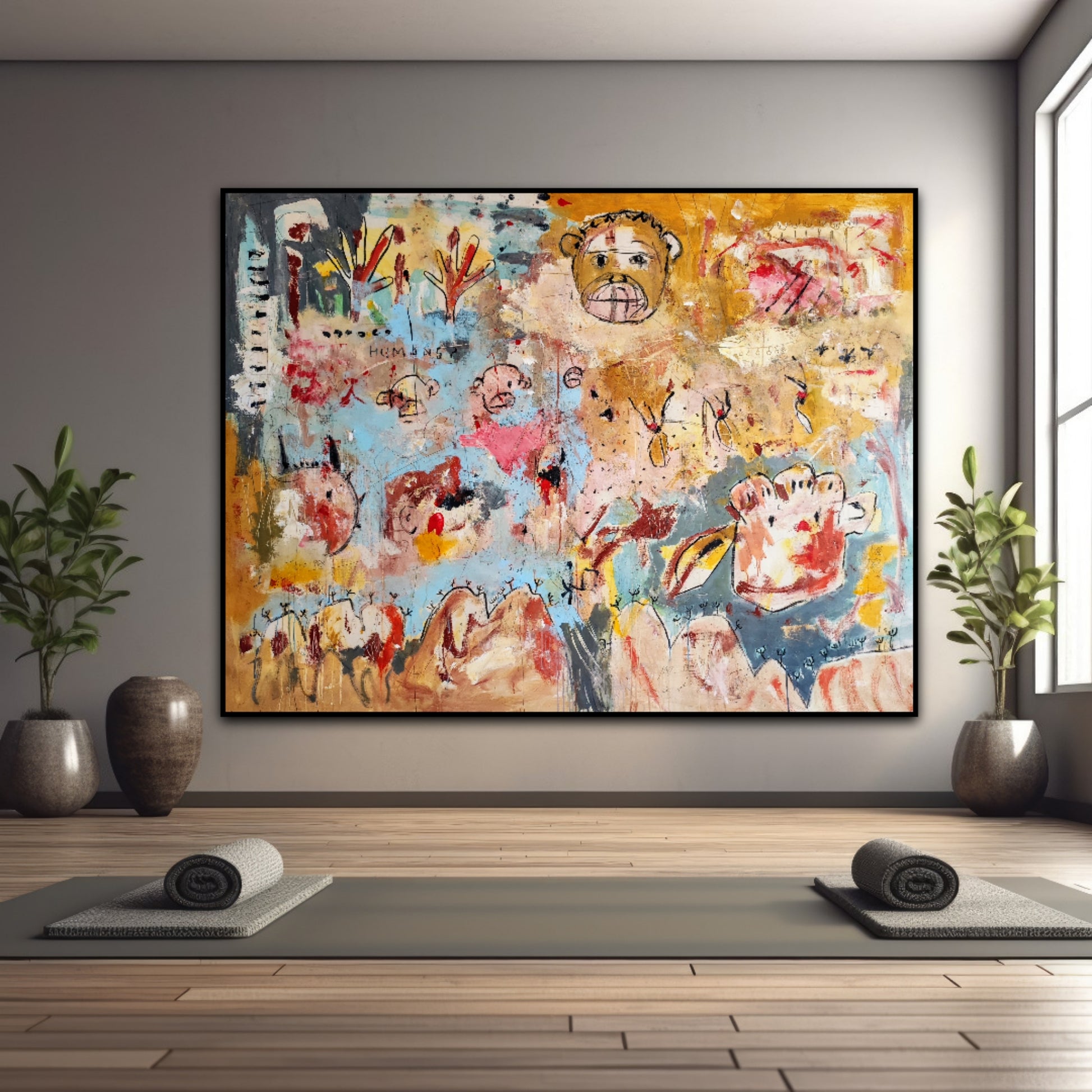 Técnica: acrílico, pigmentos, tinta china, ceras, carboncillo y lápiz.