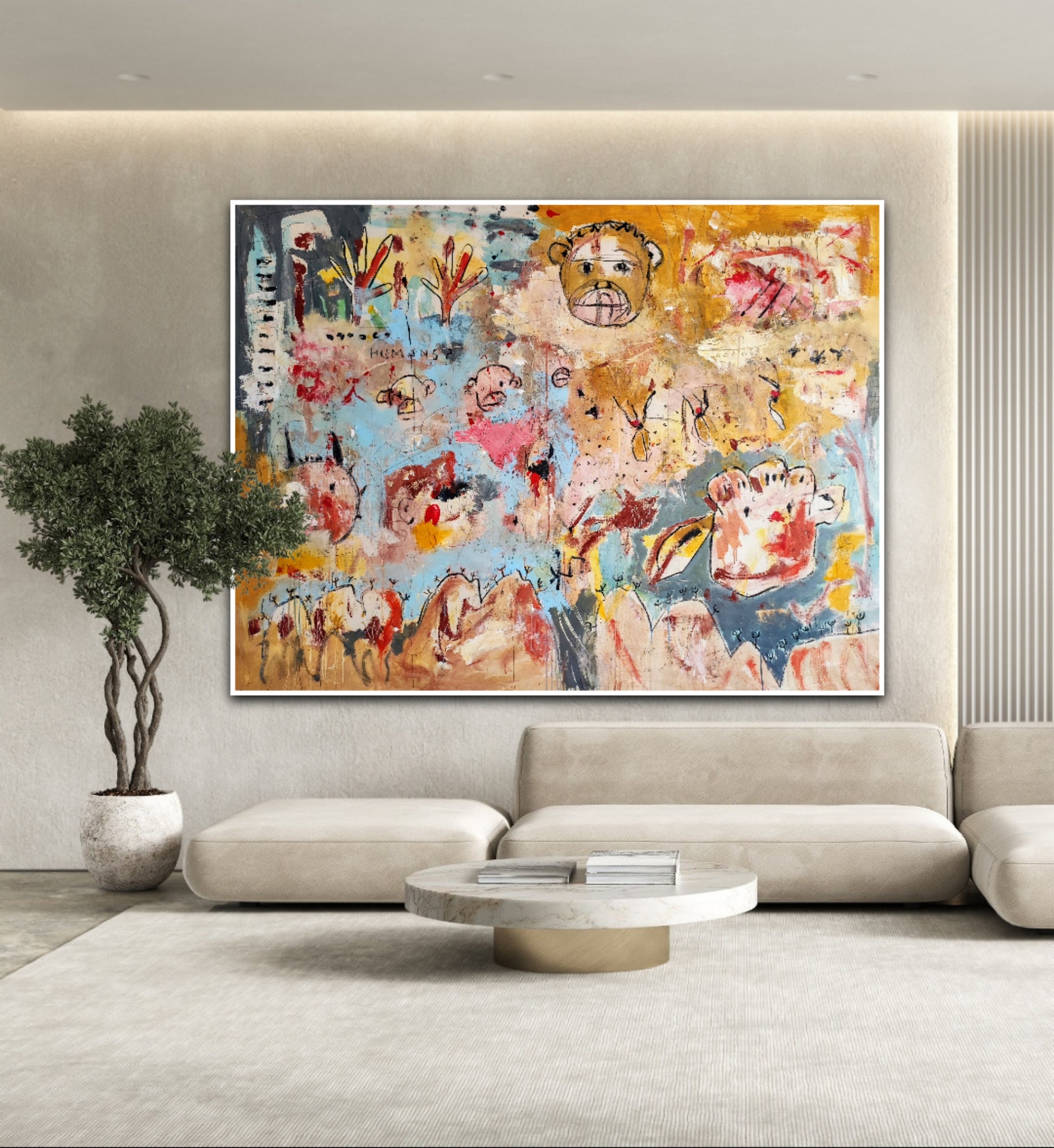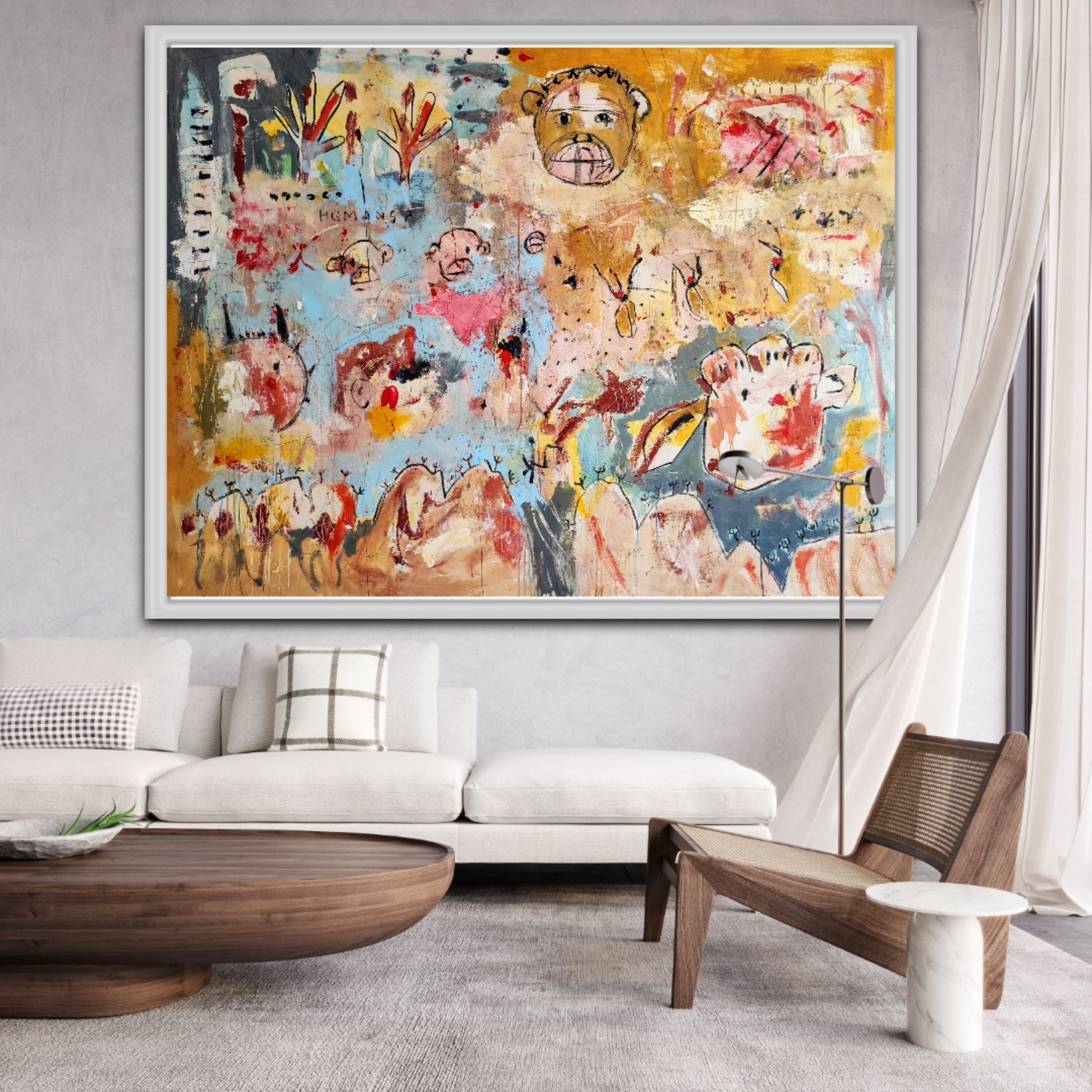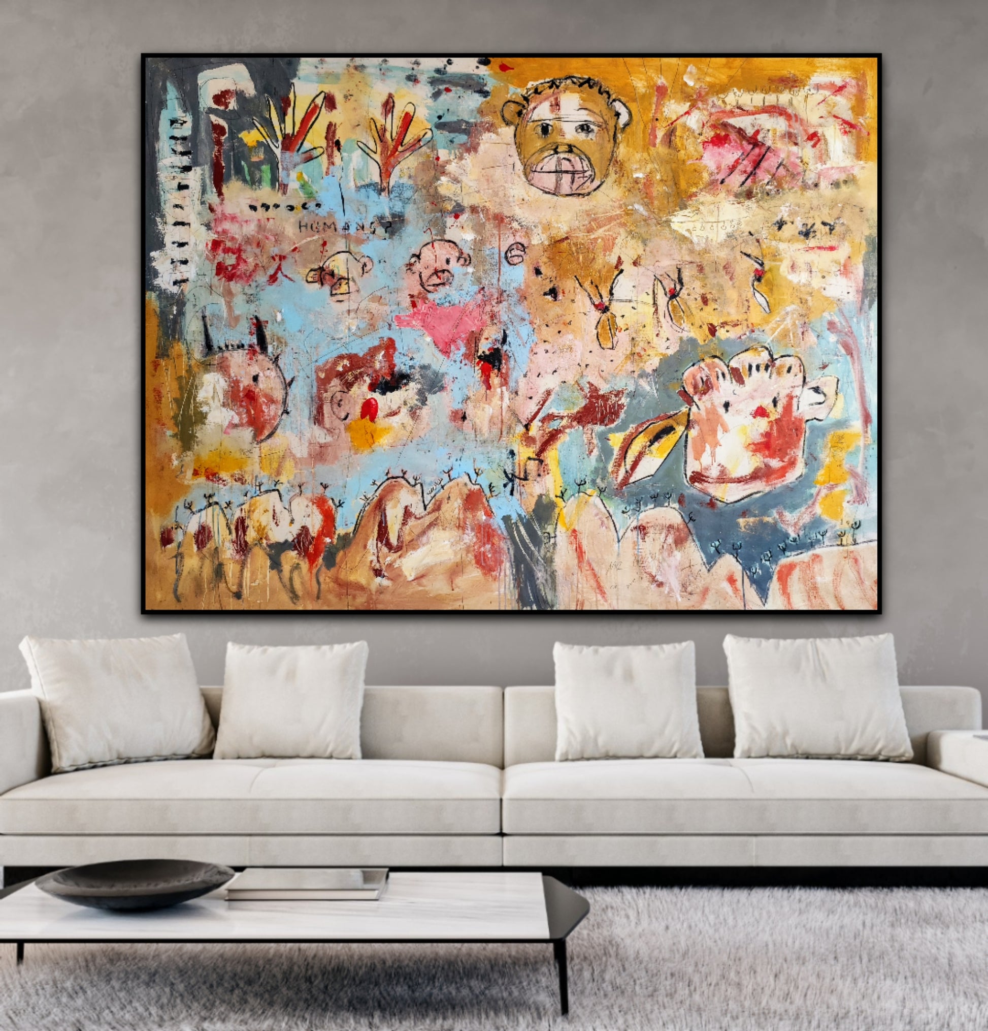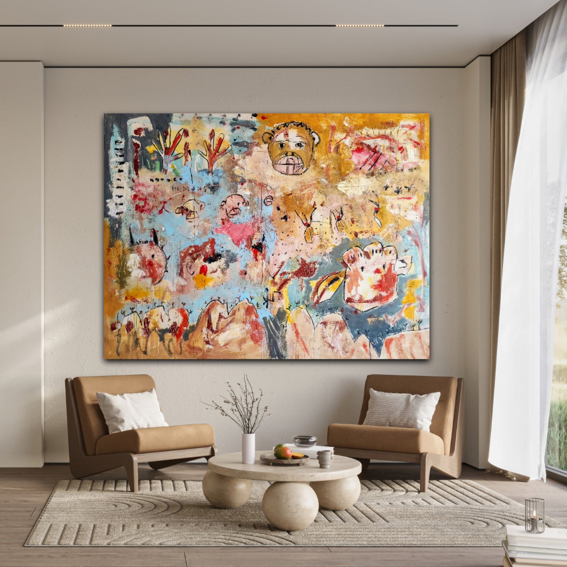 Técnica: acrílico, pigmentos, tinta china, ceras, carboncillo y lápiz.