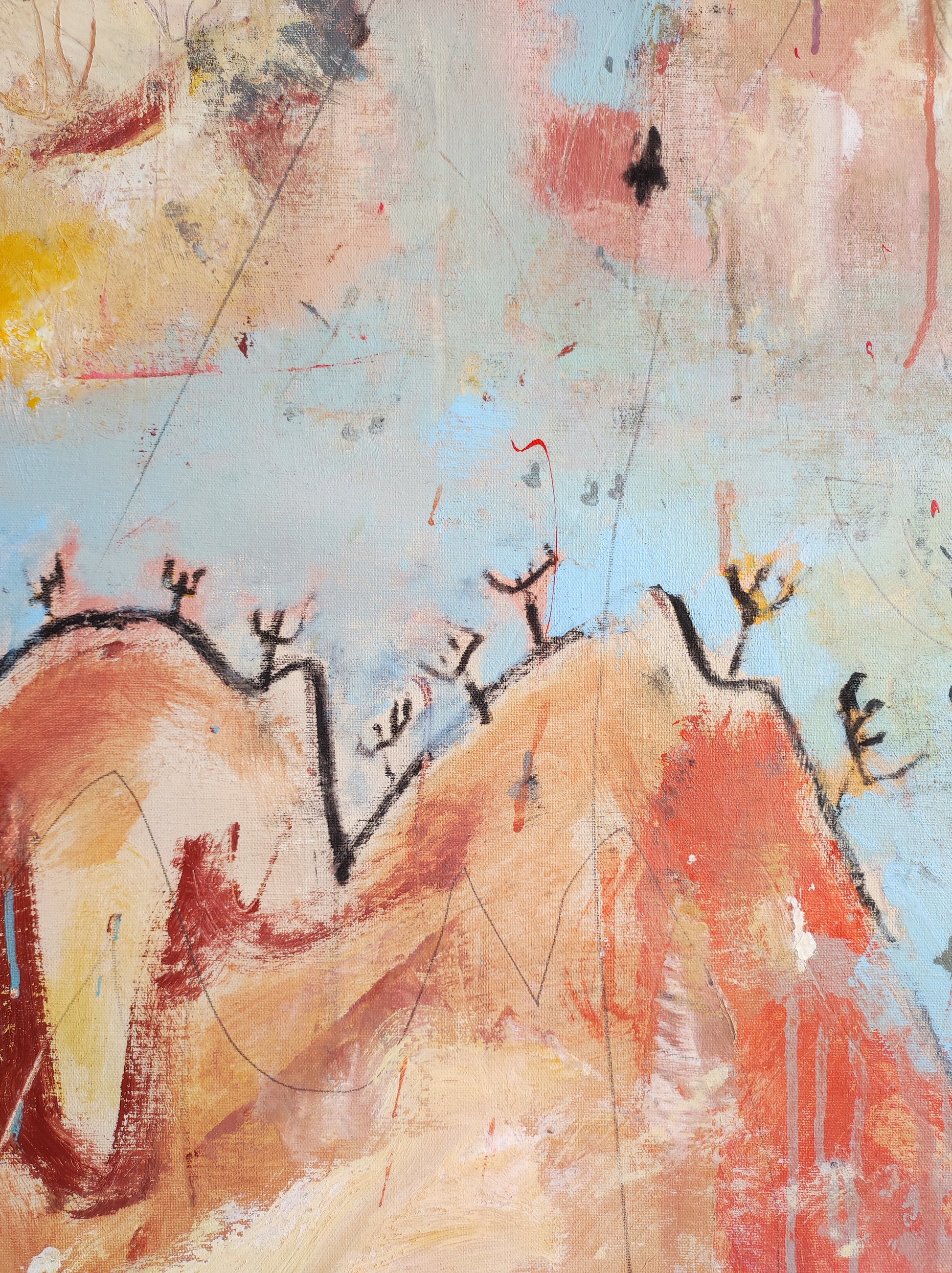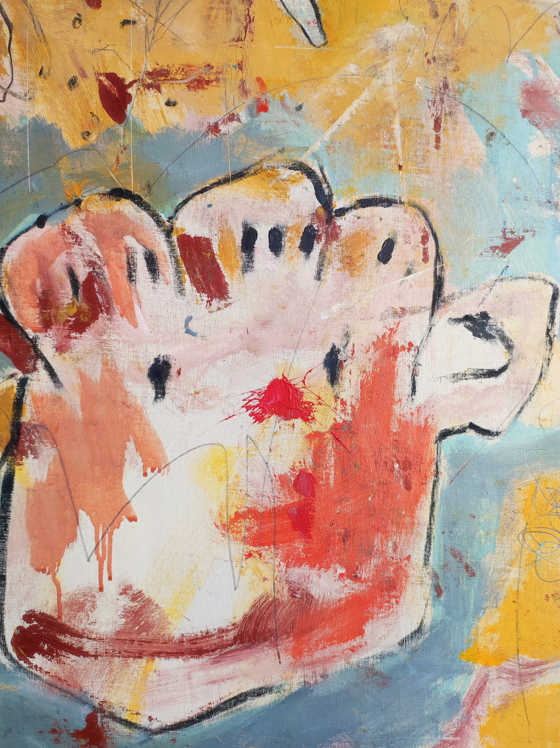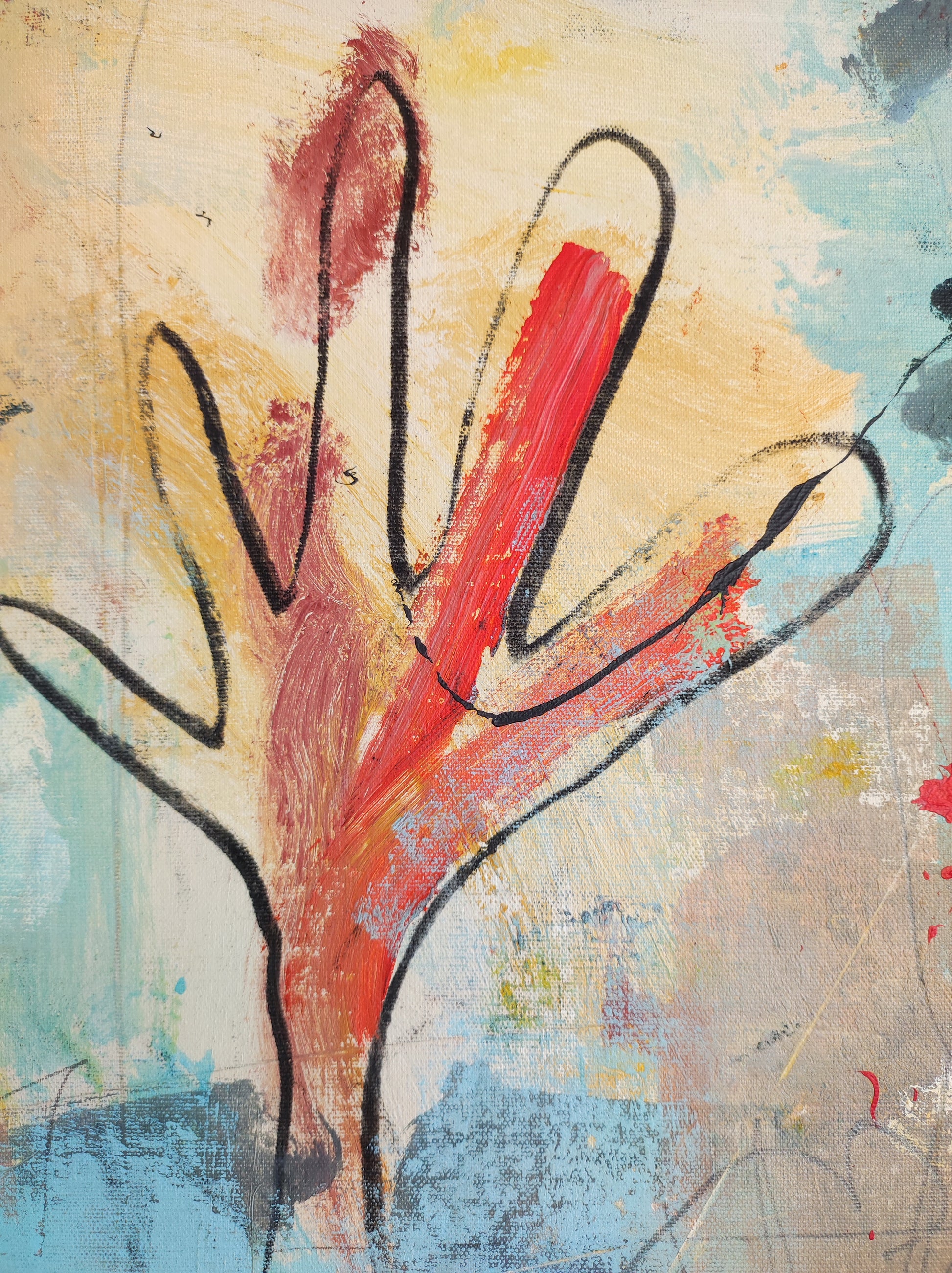 Cuadro trabajado desde la improvisación libre. Action painting con música de Airelle Besson.