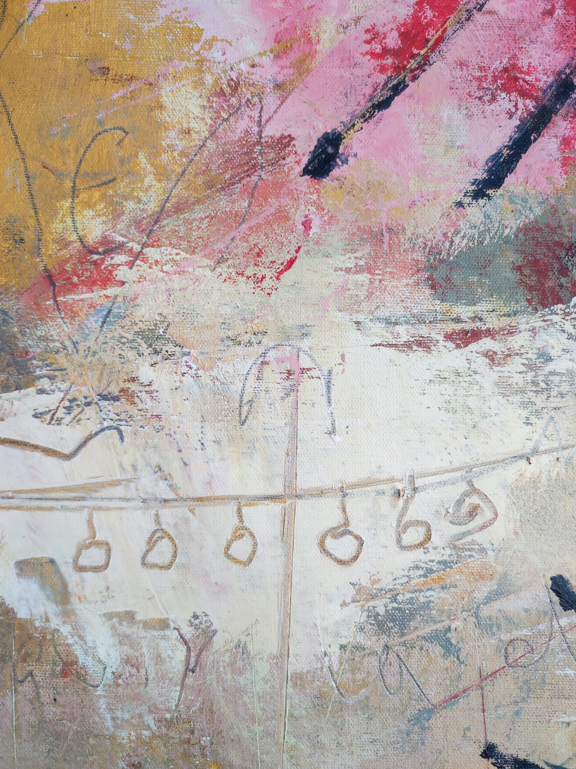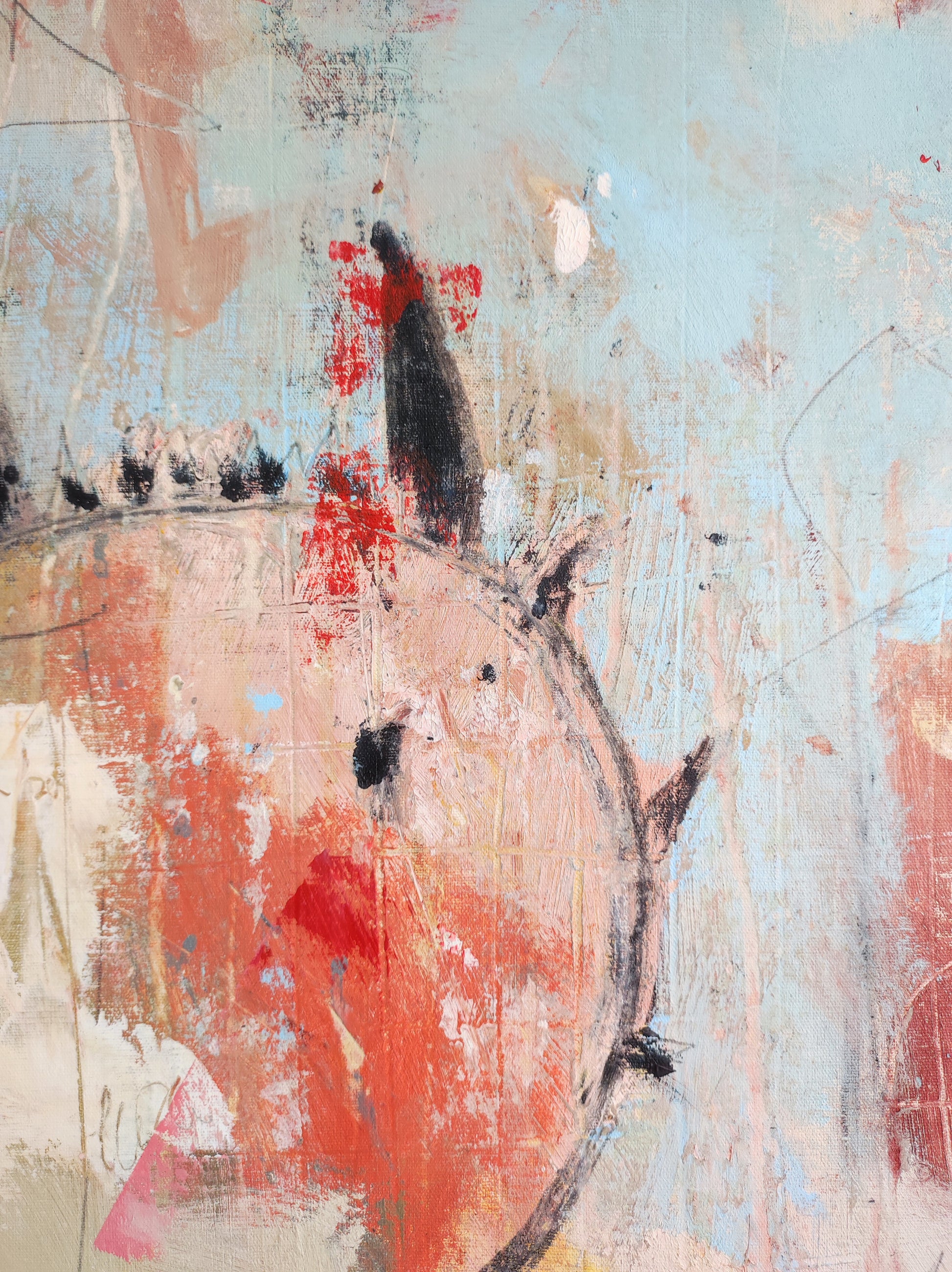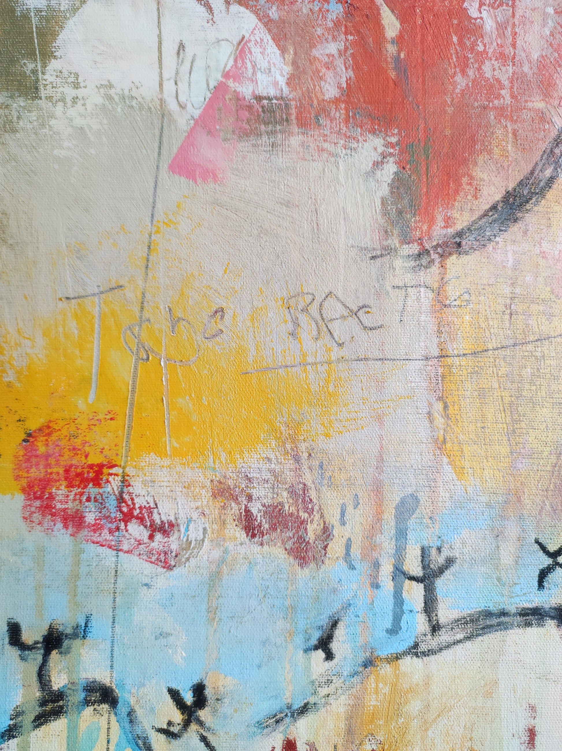Cuadro trabajado desde la improvisación libre. Action painting con música de Airelle Besson.