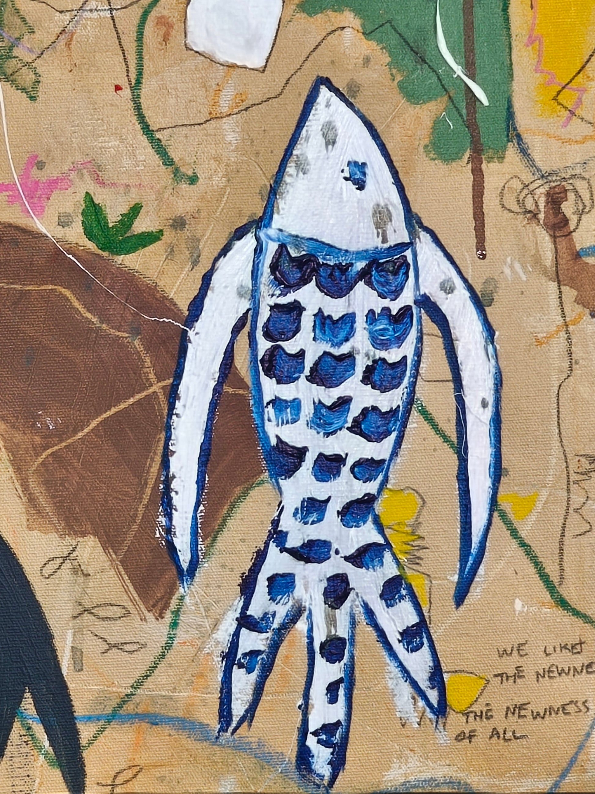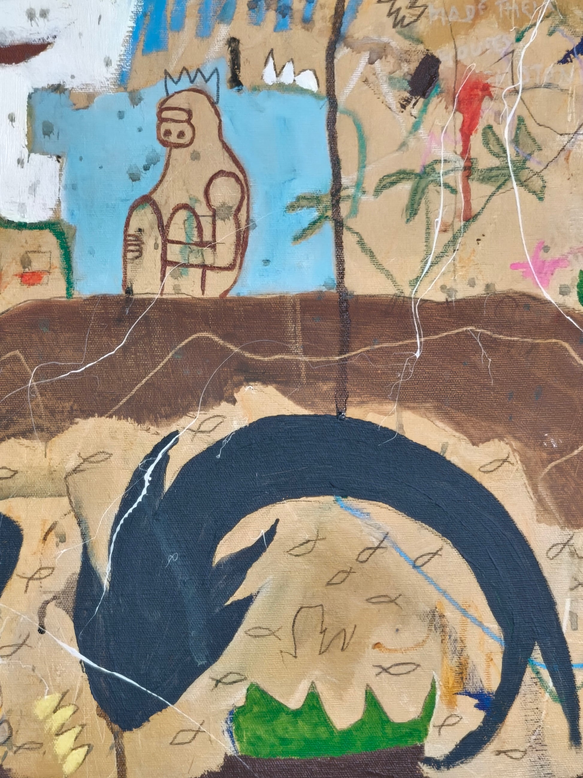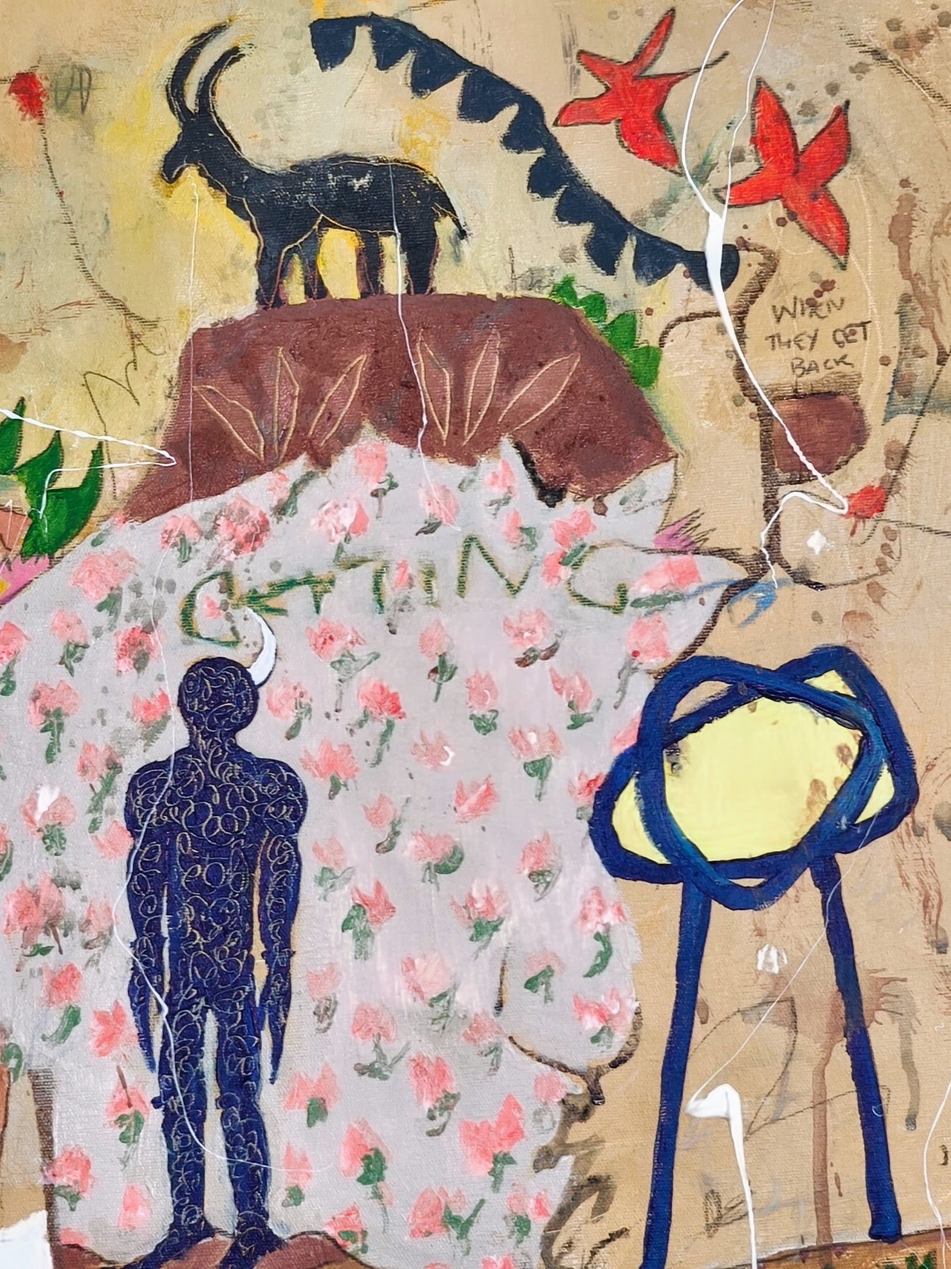 Cuadro trabajado desde la improvisación libre con música de Midlake, especialmente el tema "Roscoe" que suena en bucle durante la fase final de la ejecución de la obra, siendo algunas de sus estrofas incorporadas al cuadro.