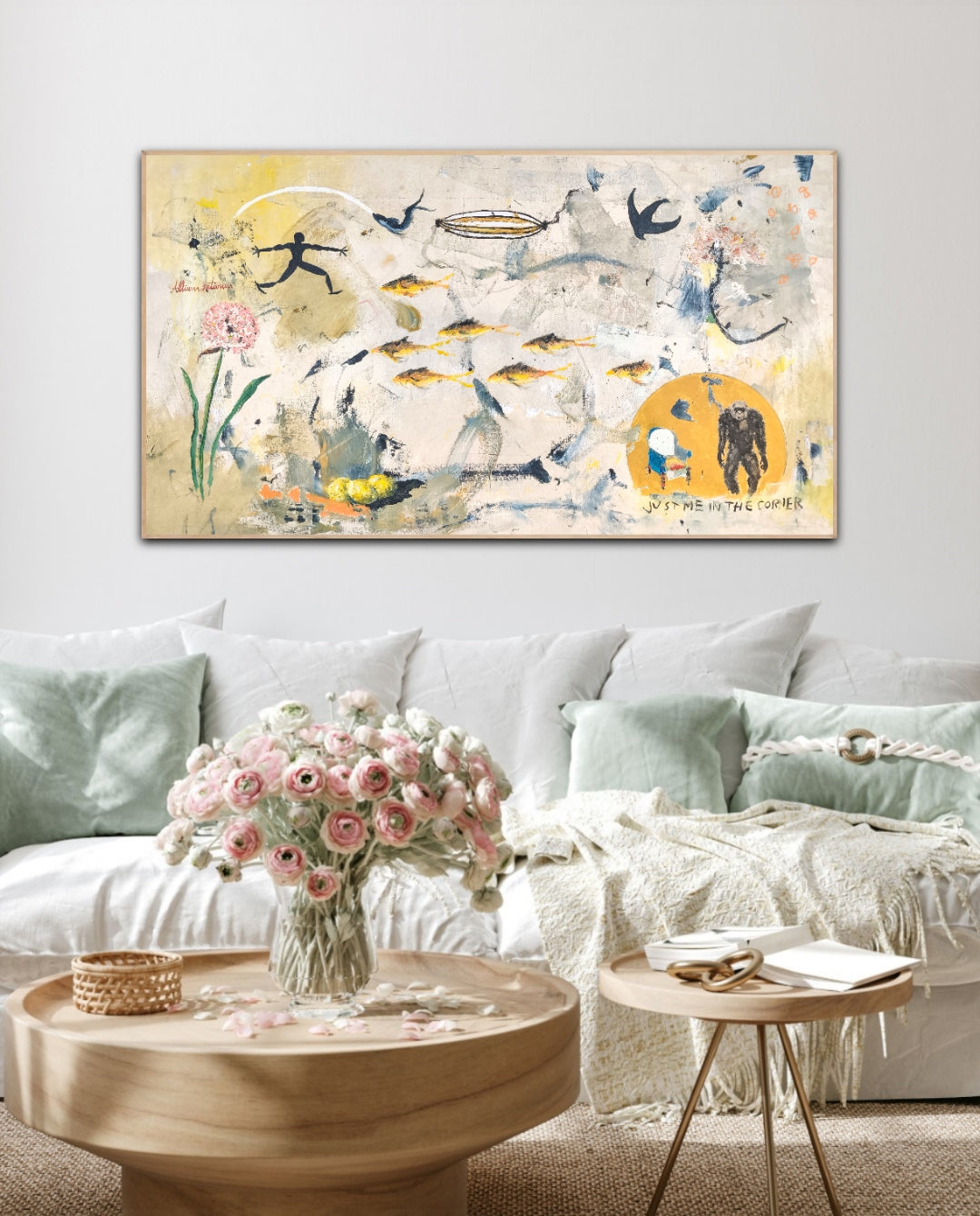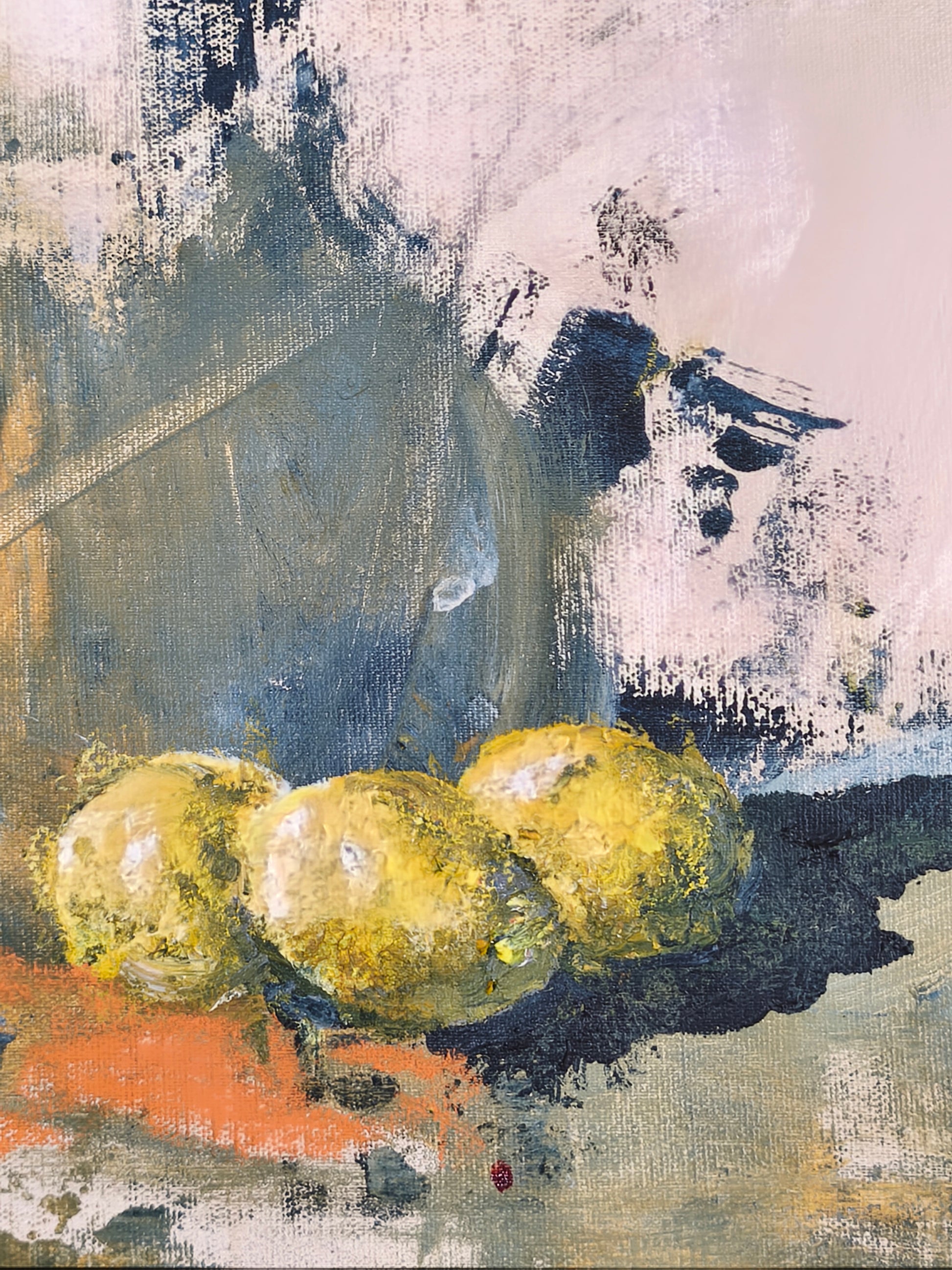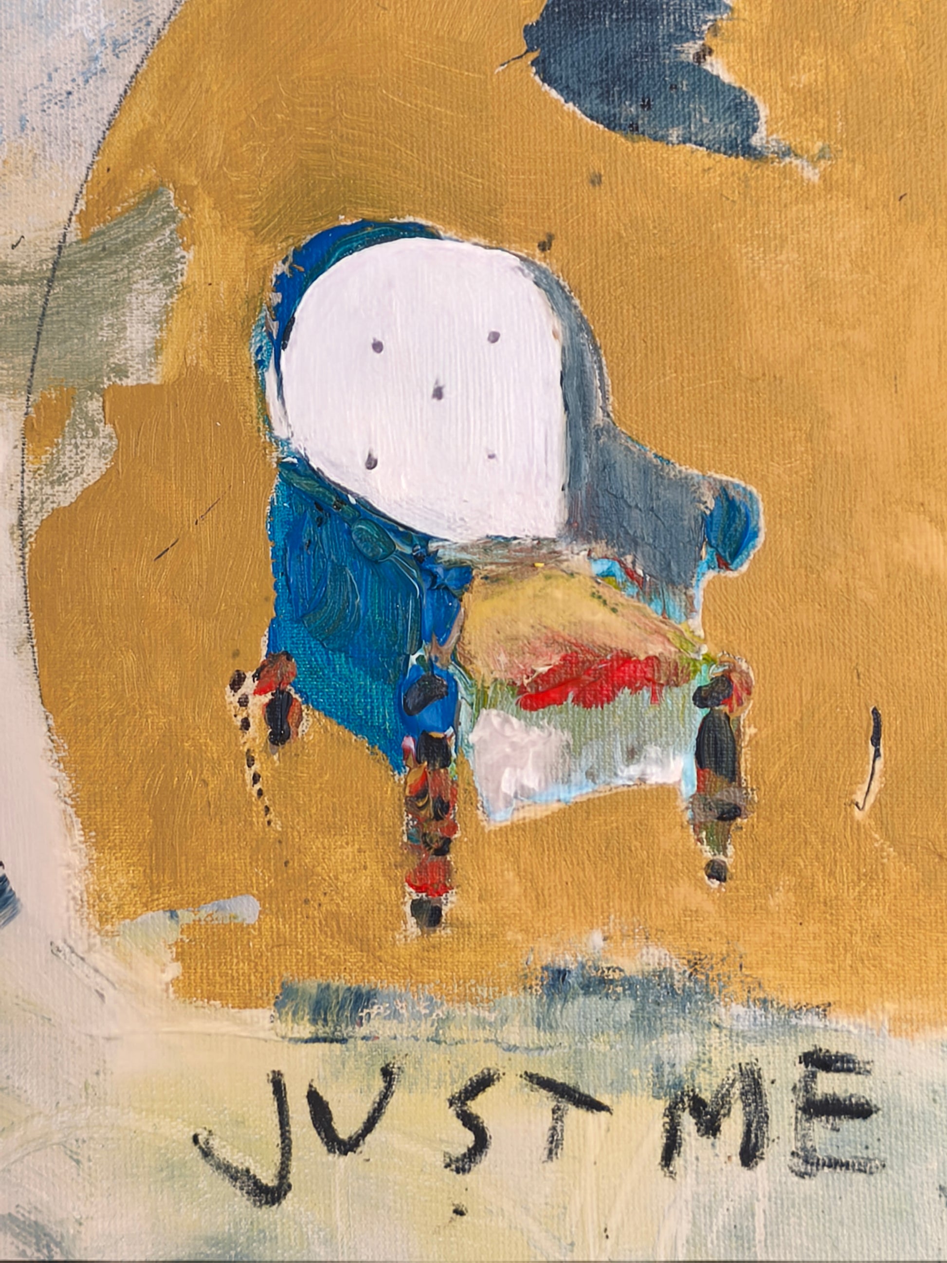 Pintura gestual, intuitiva, que deja que las cosas pasen y se apoya sobre lo que aparece. Aprovechando el accidente y aceptando las consecuencias.
