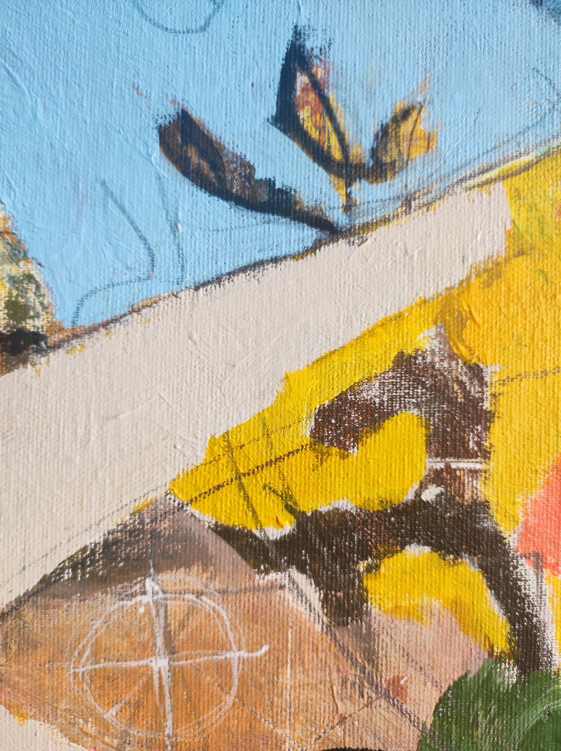 Retazos de un paisaje, recortes, formas fuera de sitio, dibujos de un niño, restos de vidas pasadas. Todo pasa, no da tiempo a nada. No hay tiempo que perder.