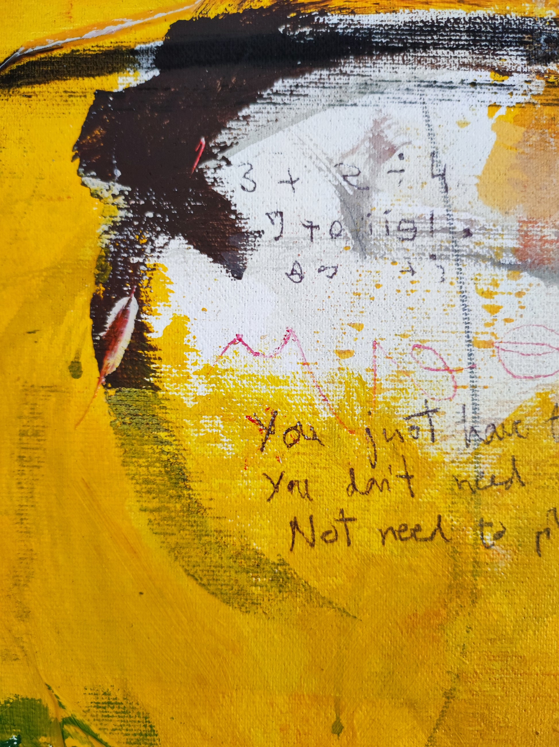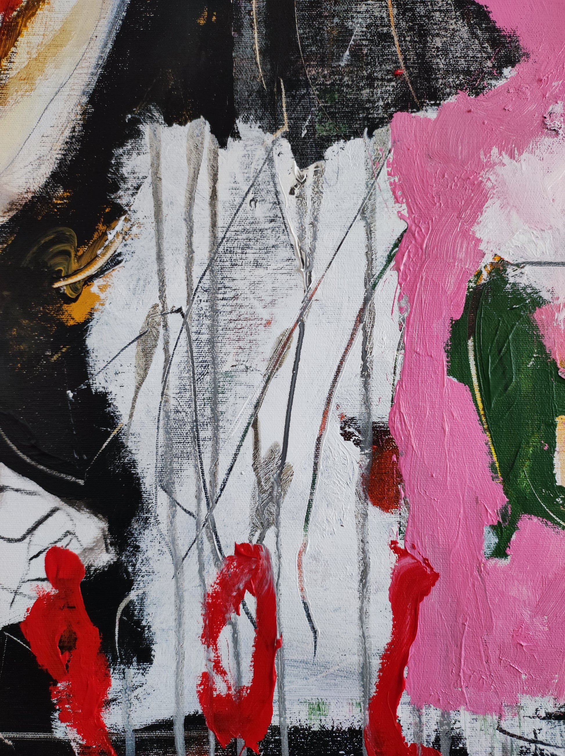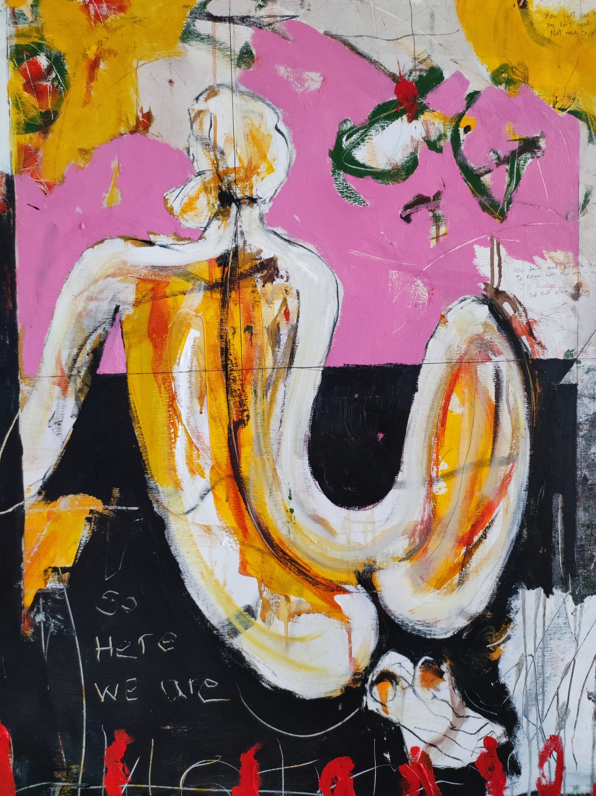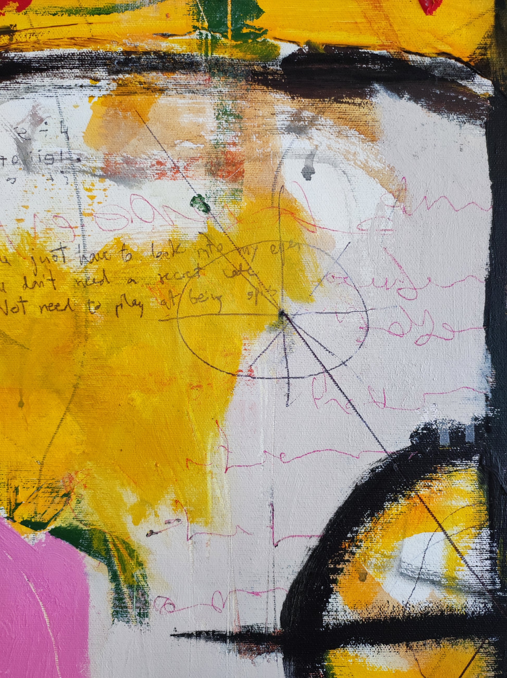 Técnica: acrílico, pigmentos, bolígrafo, carboncillo y lápiz.