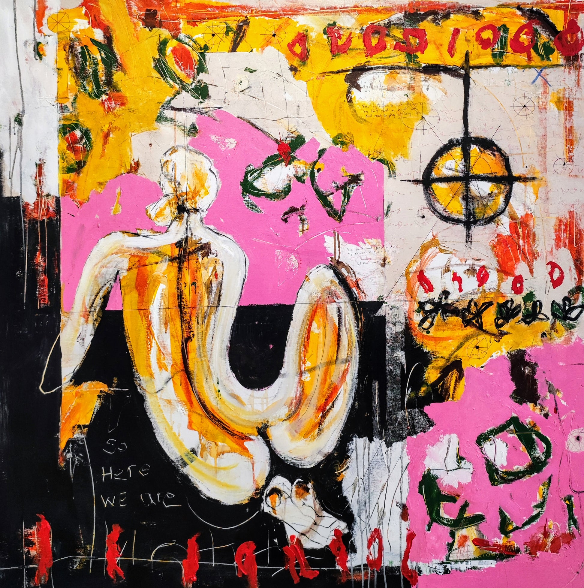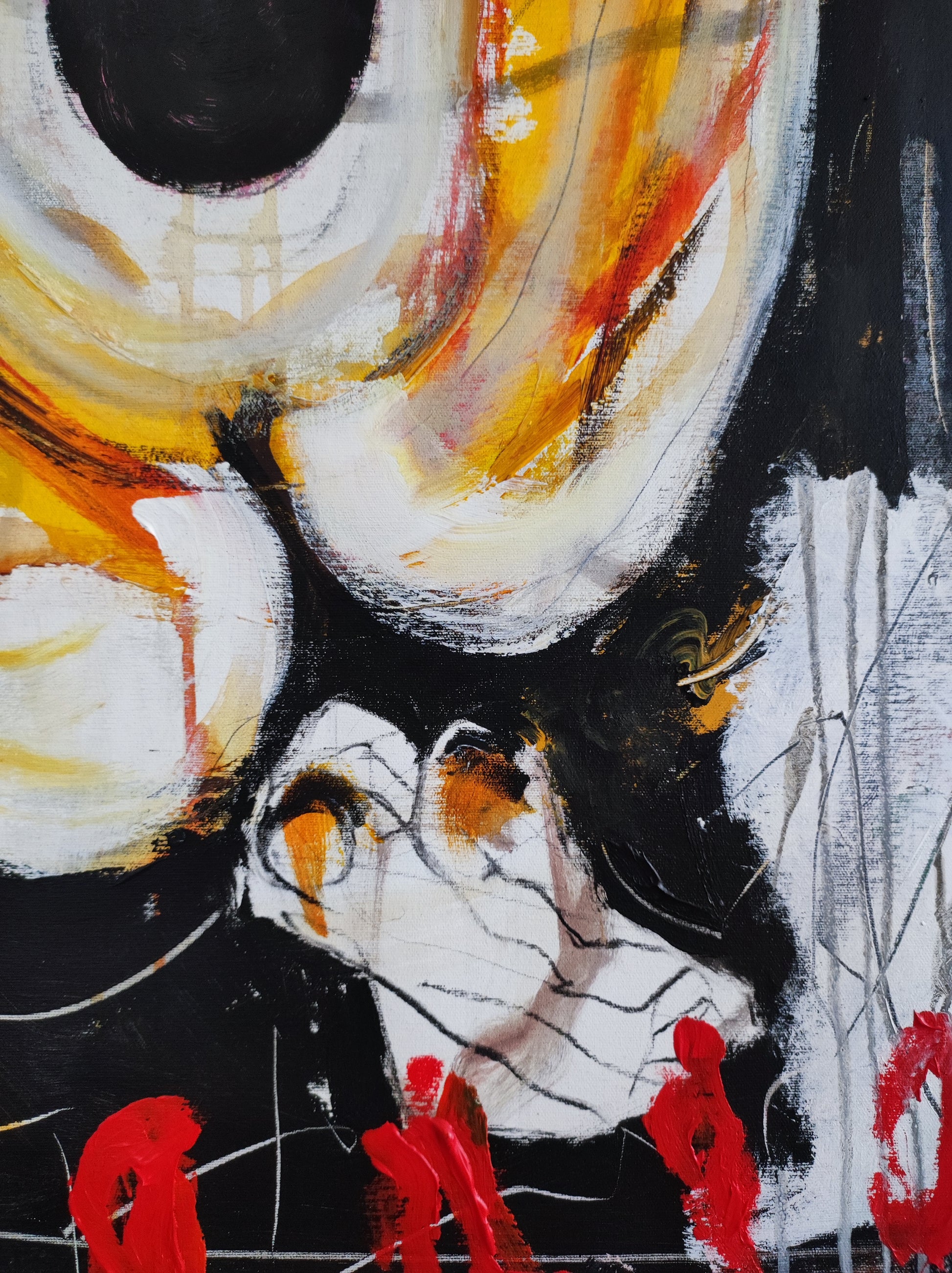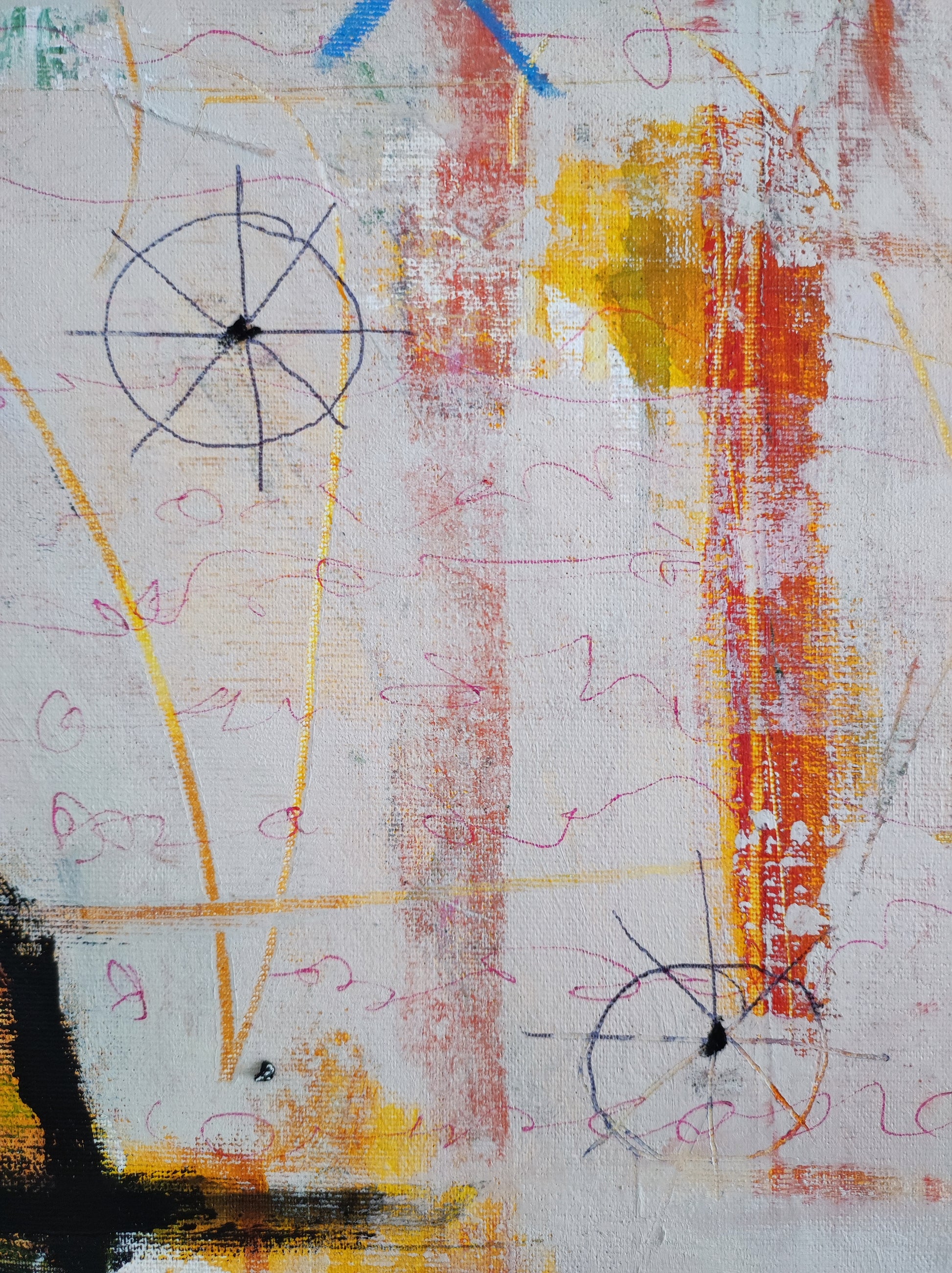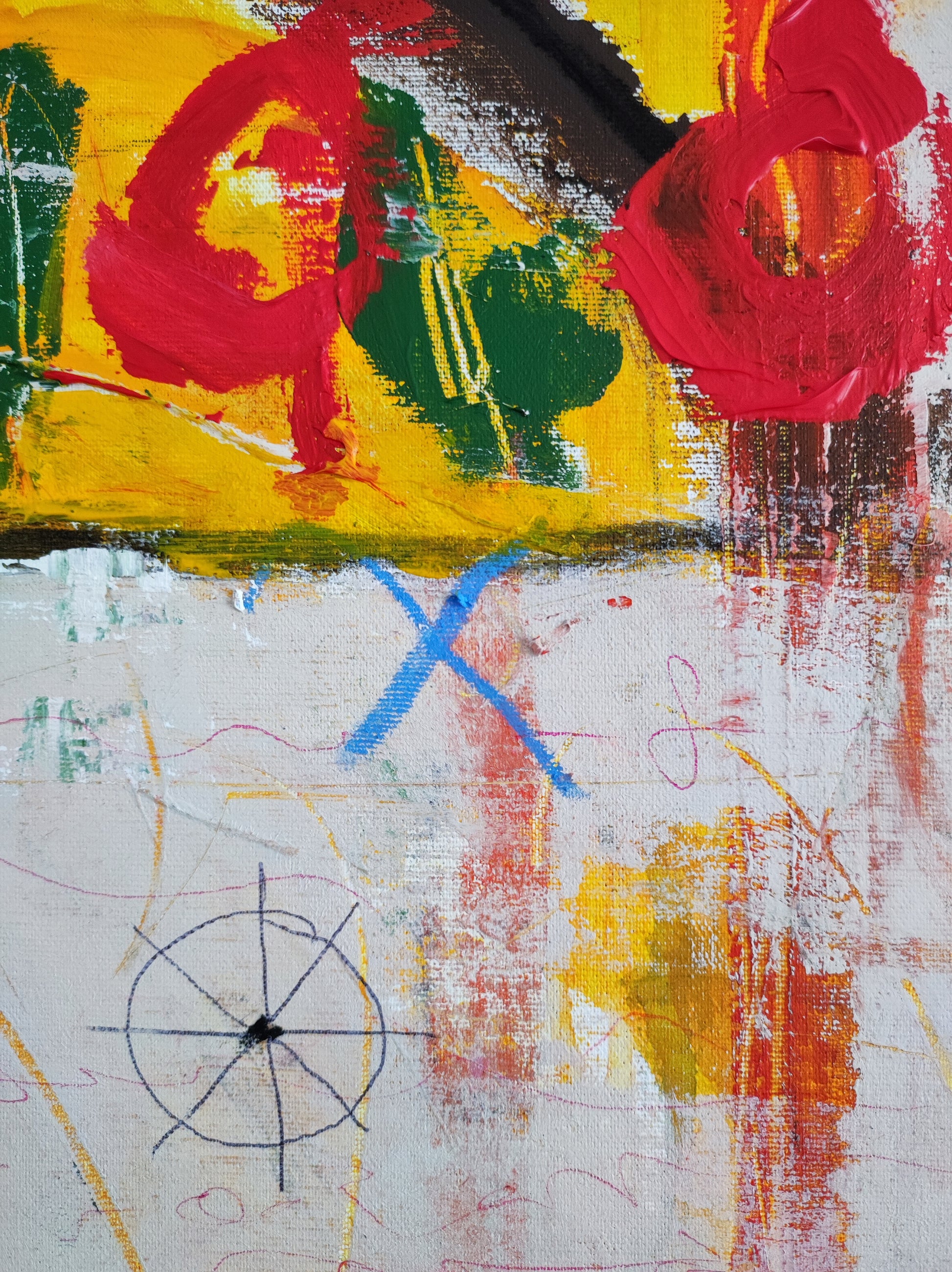 Técnica: acrílico, pigmentos, bolígrafo, carboncillo y lápiz.