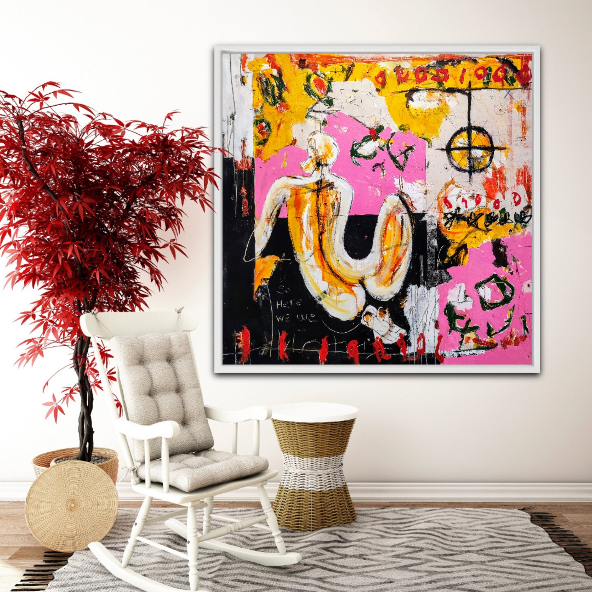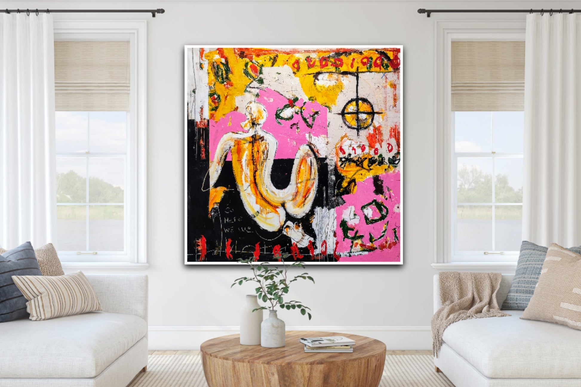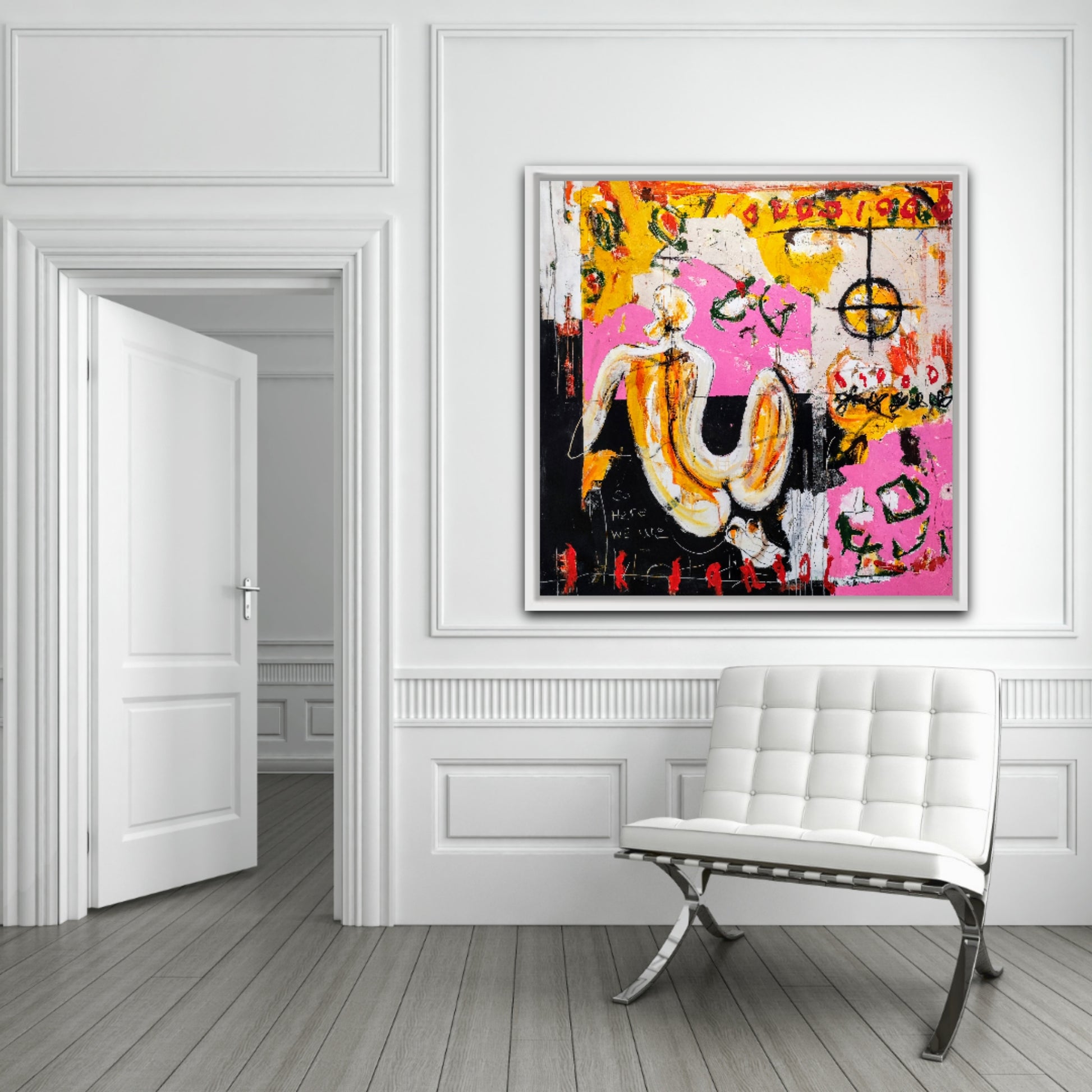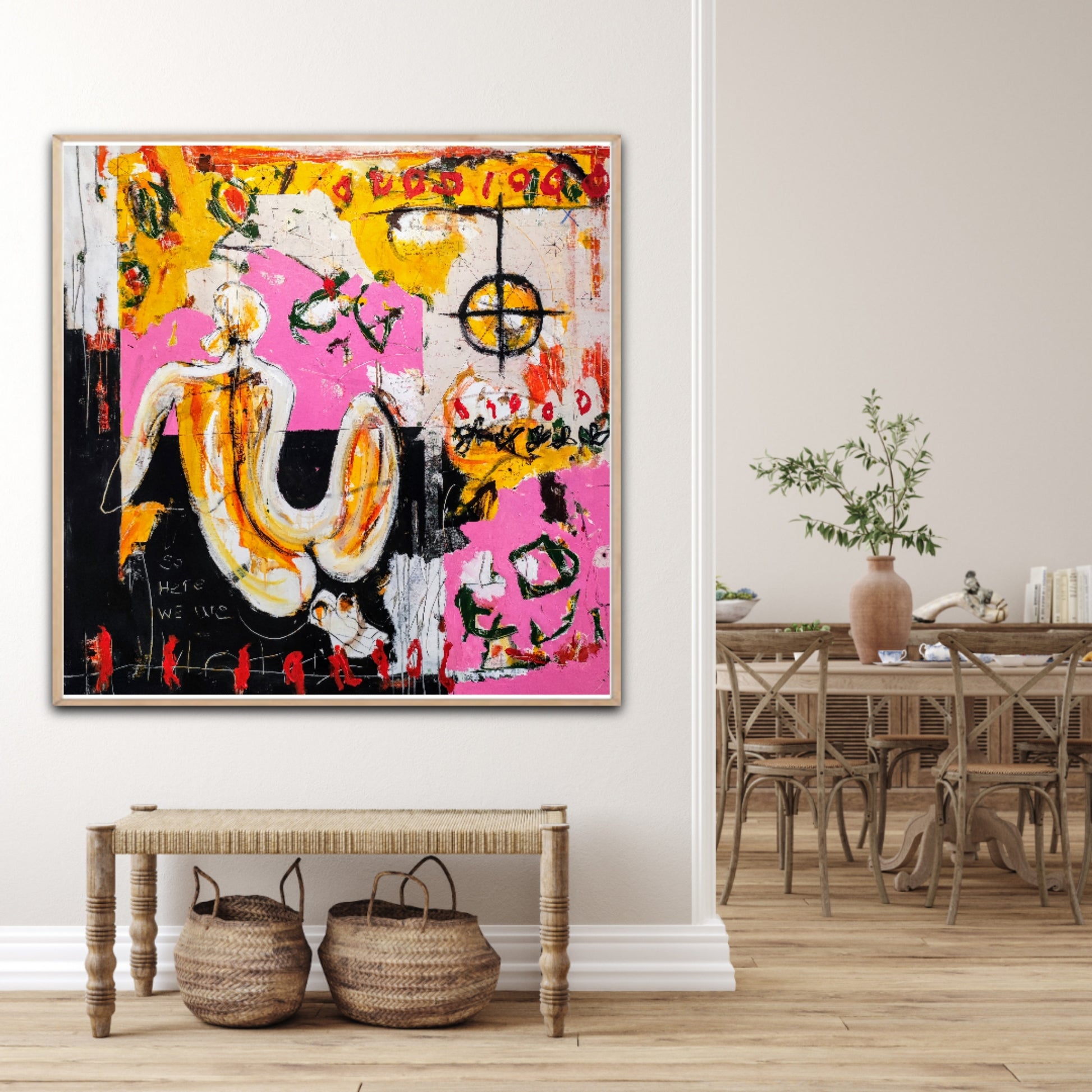 Técnica: acrílico, pigmentos, bolígrafo, carboncillo y lápiz.