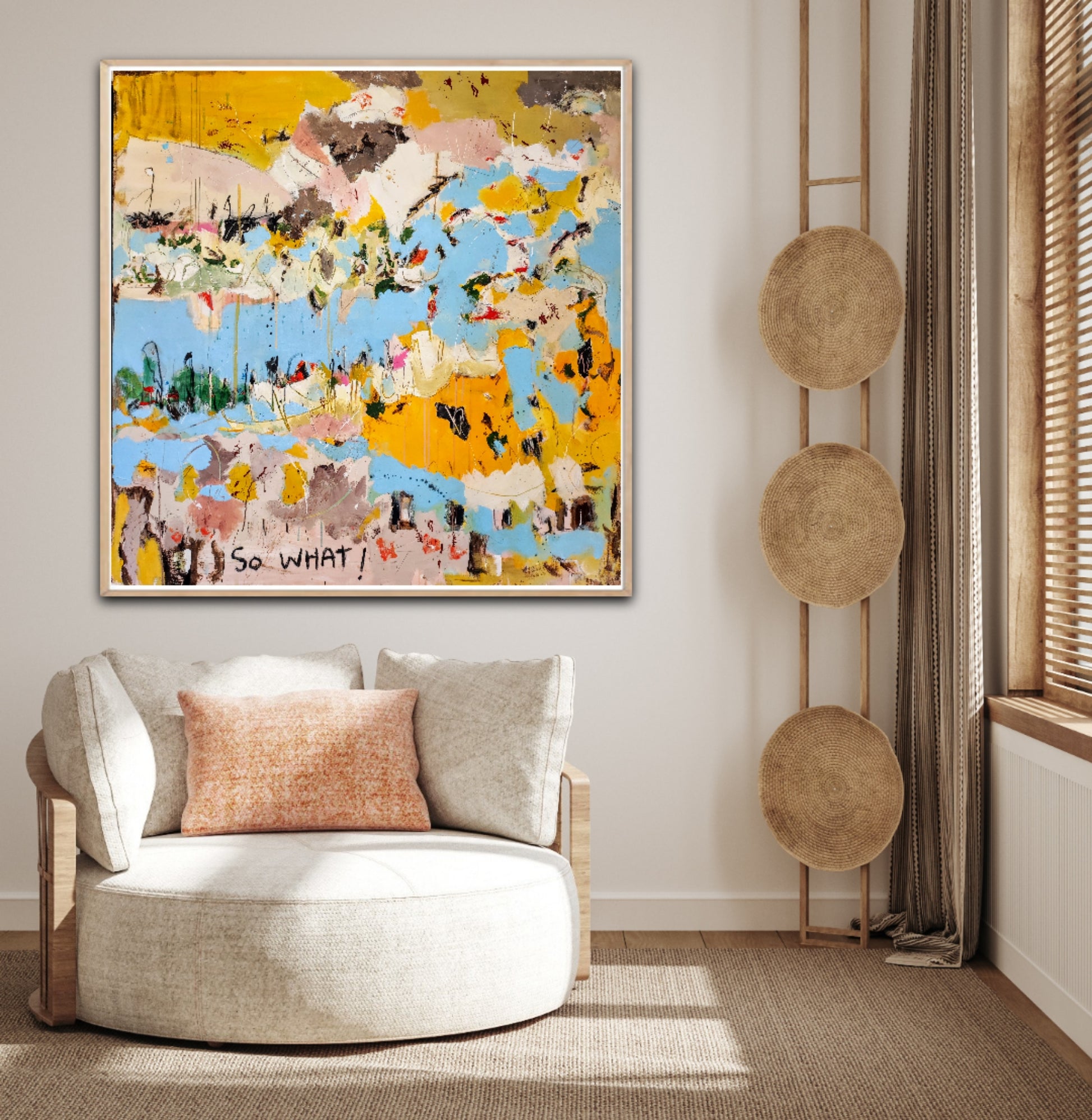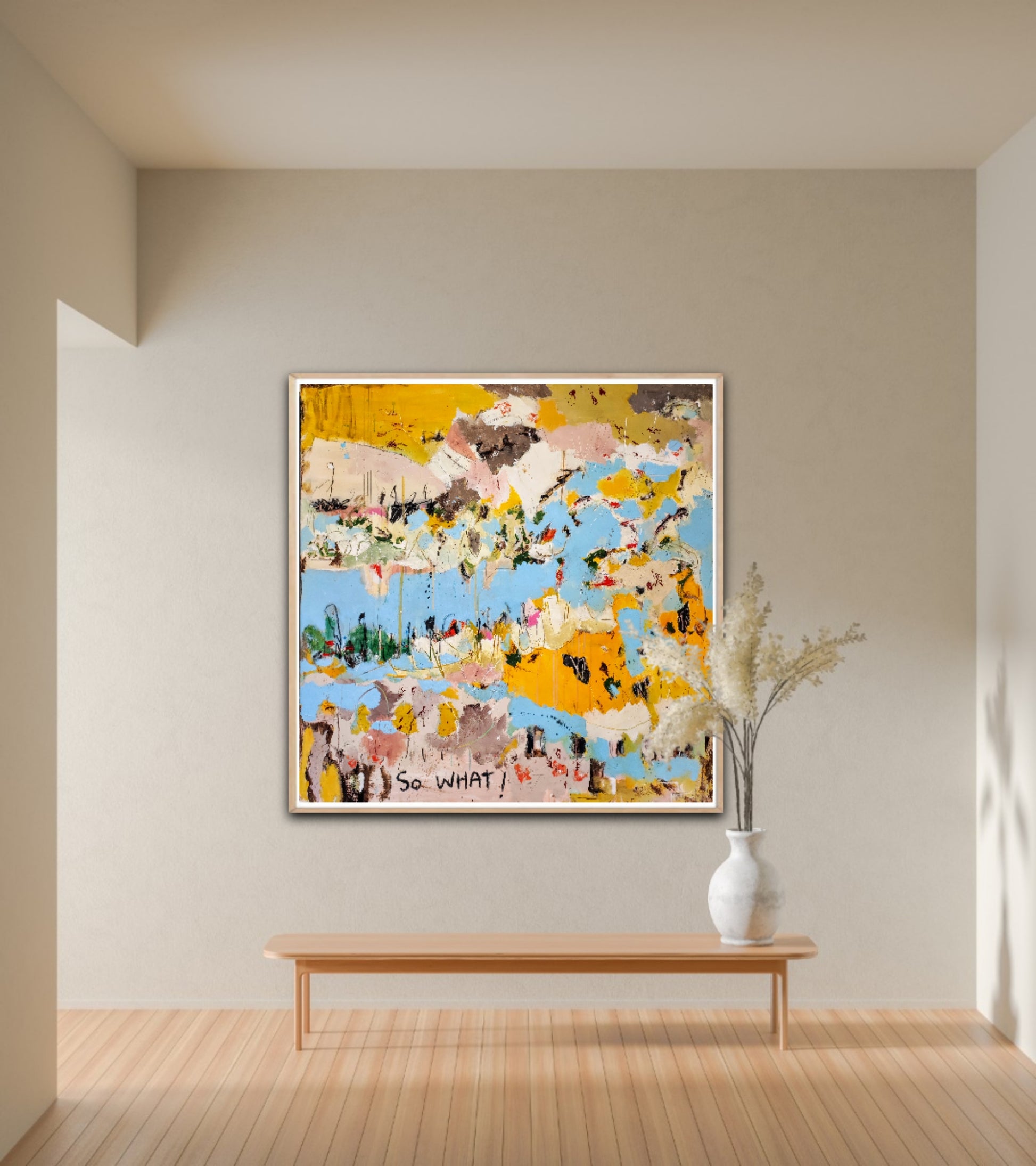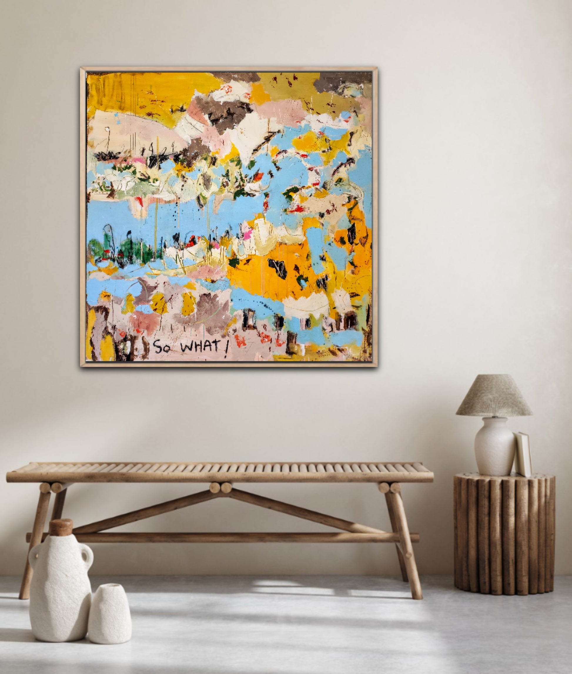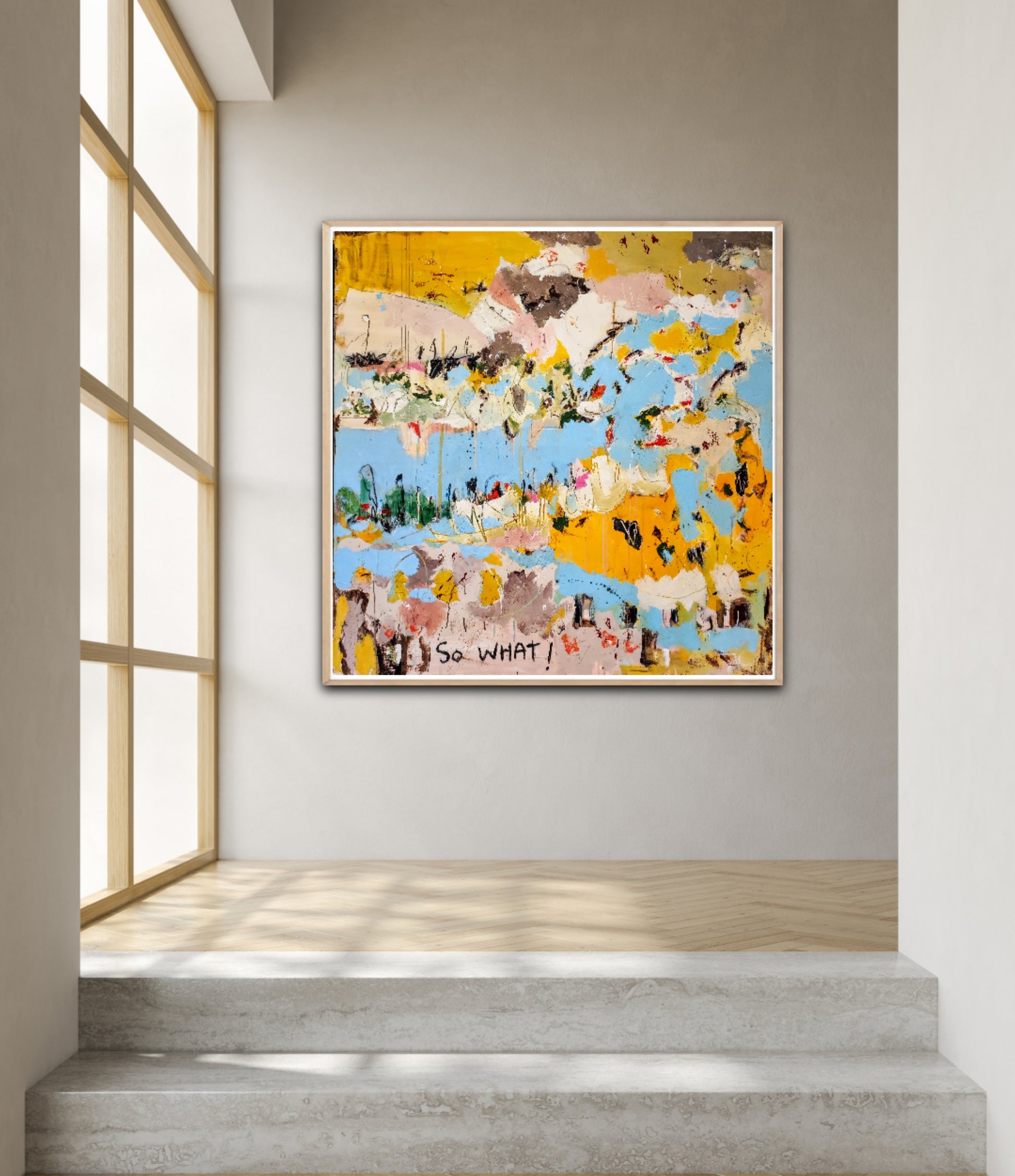 Cuadro trabajado desde la improvisación libre. Action painting con la música del álbum Kind of blue sonando en bucle.