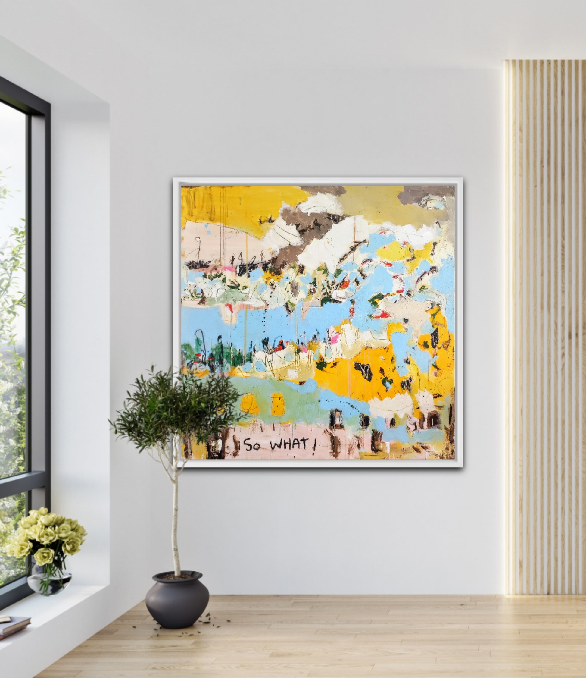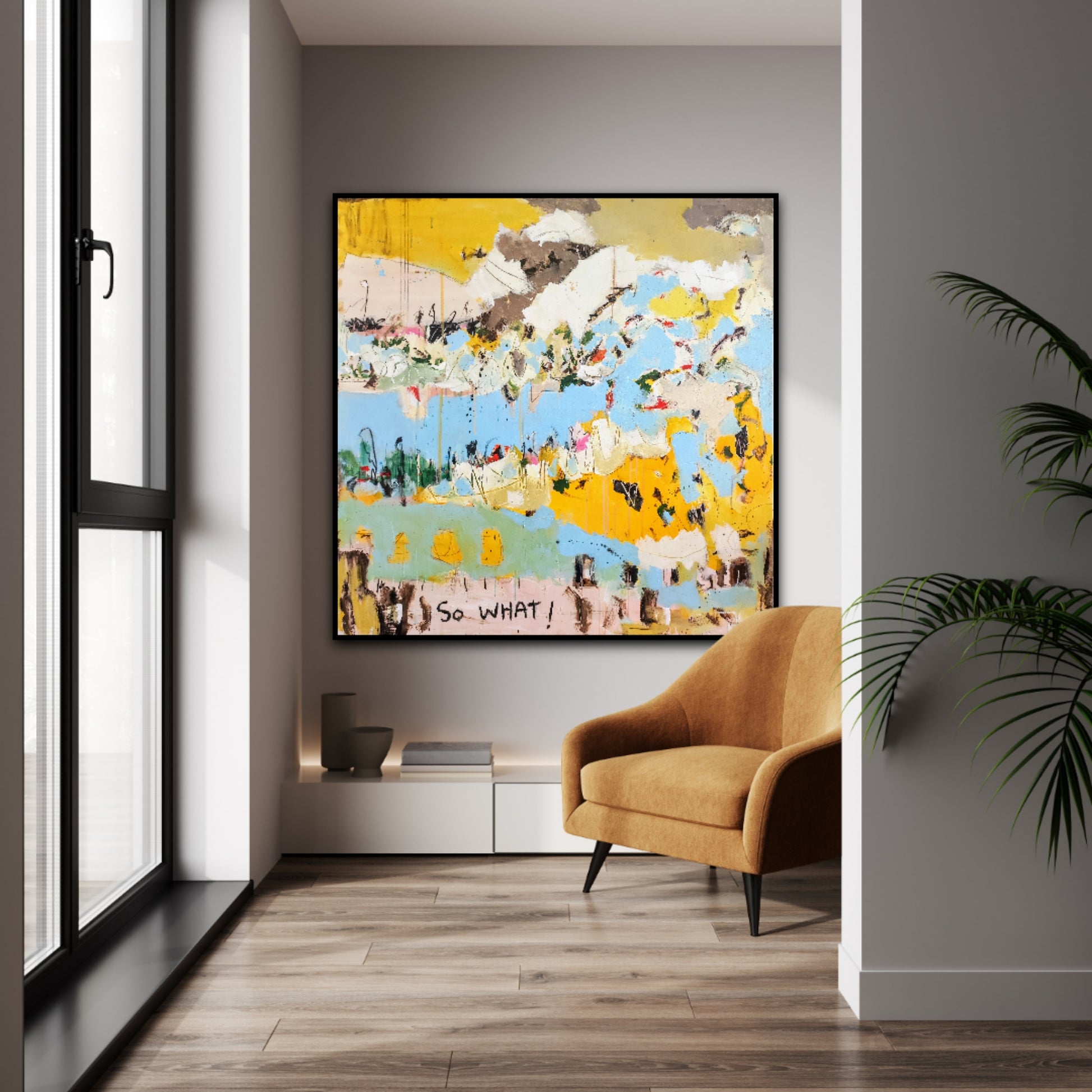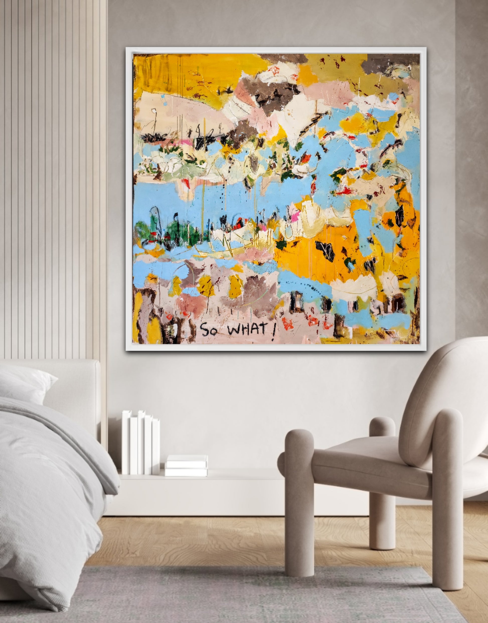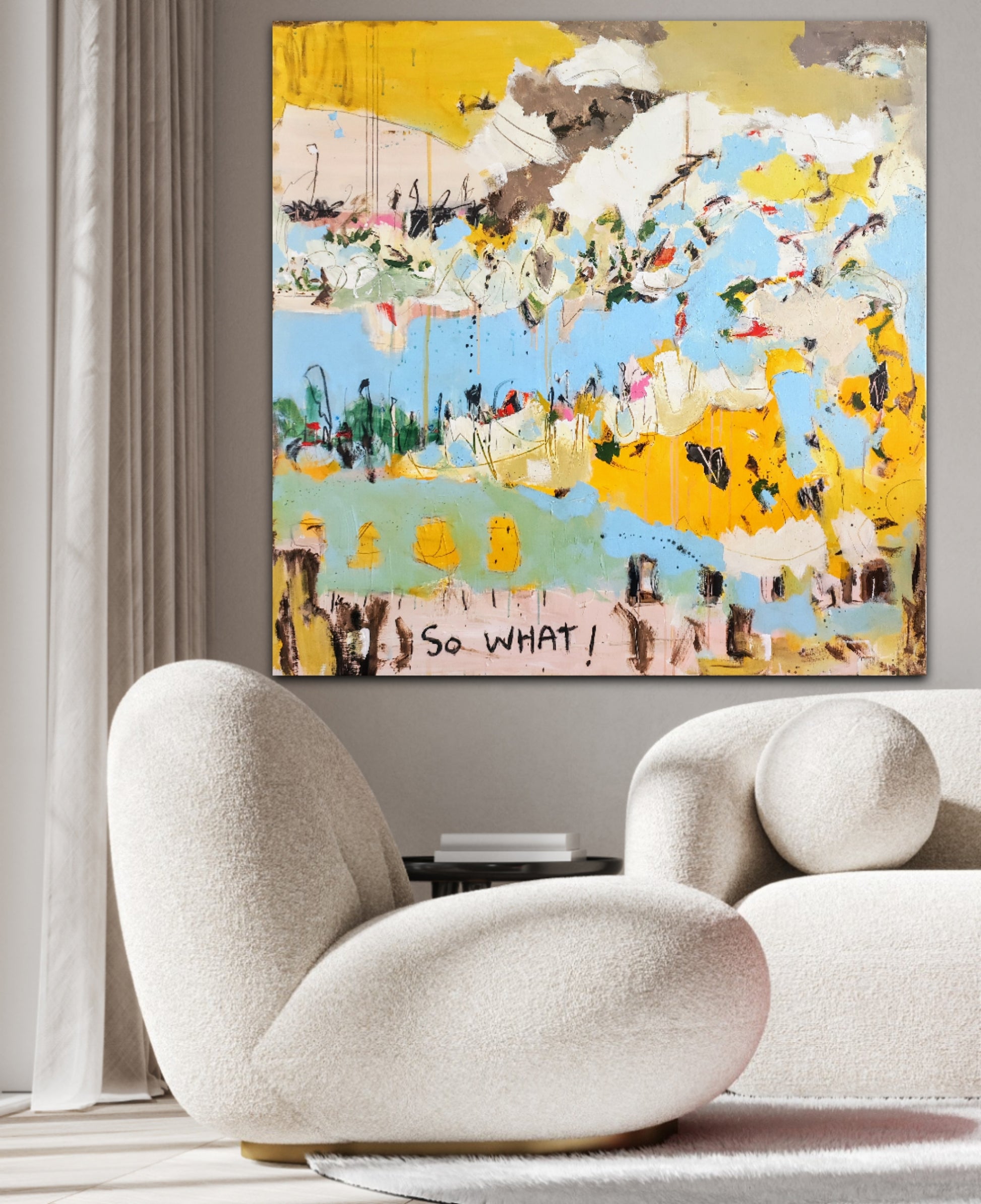 Cuadro trabajado desde la improvisación libre. Action painting con la música del álbum Kind of blue sonando en bucle.