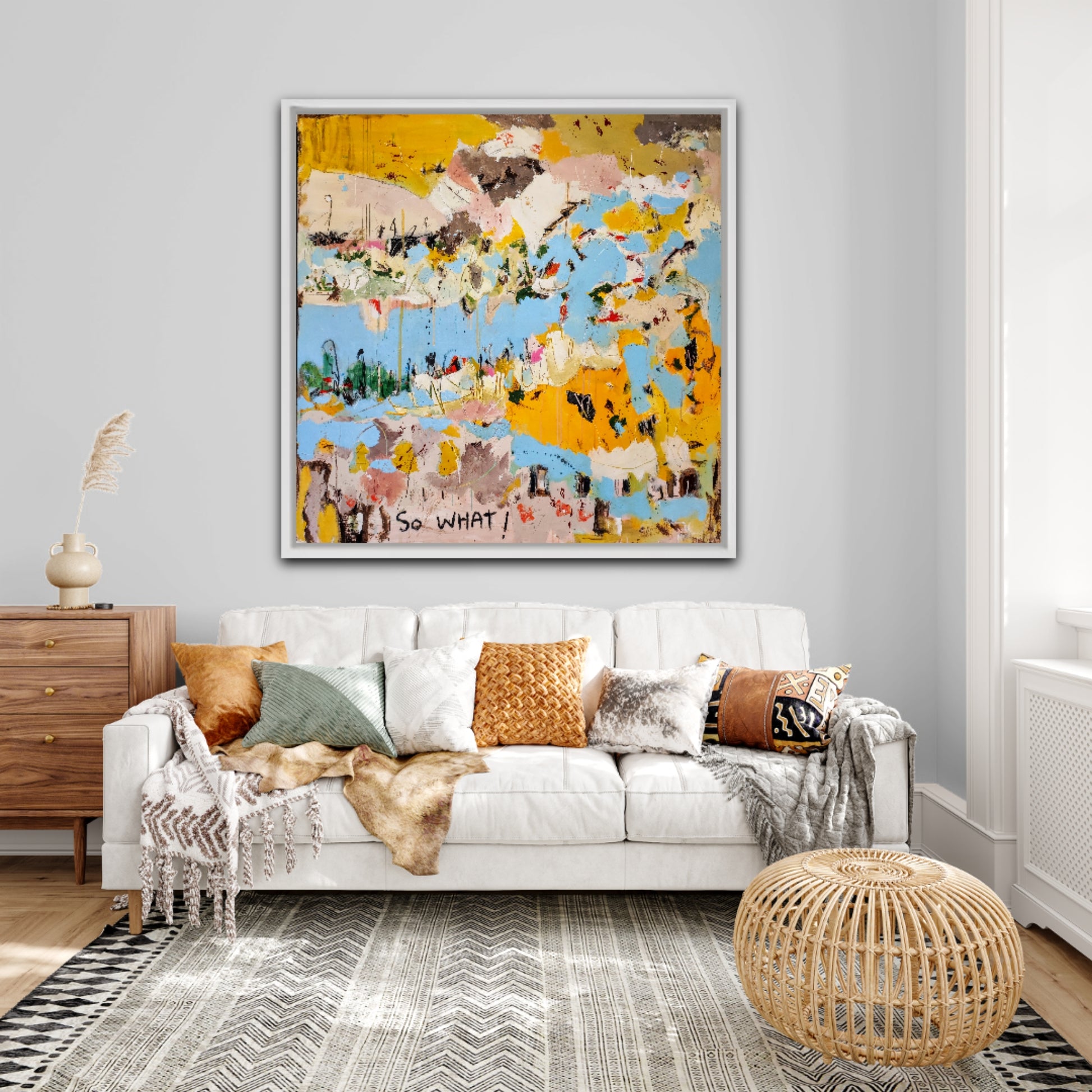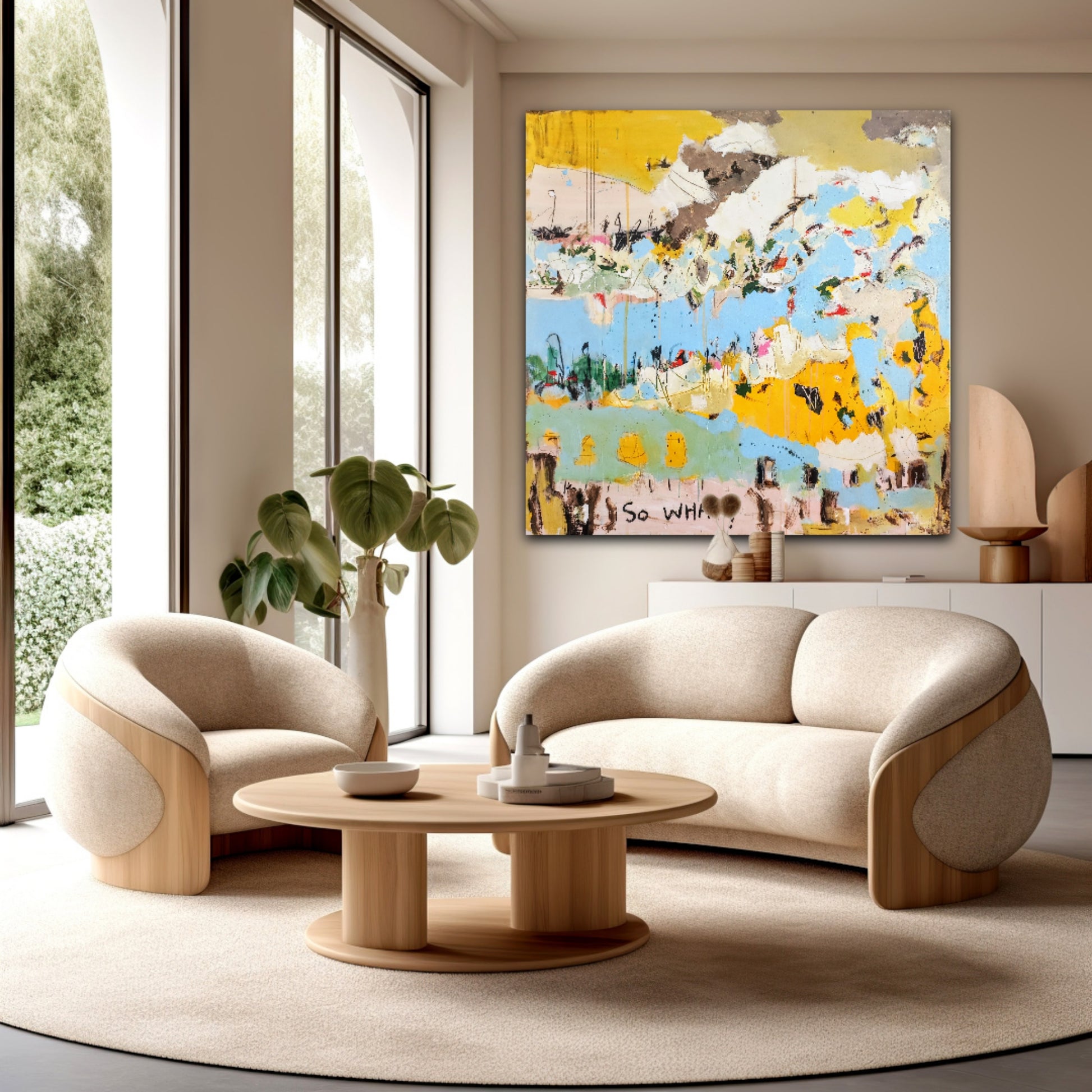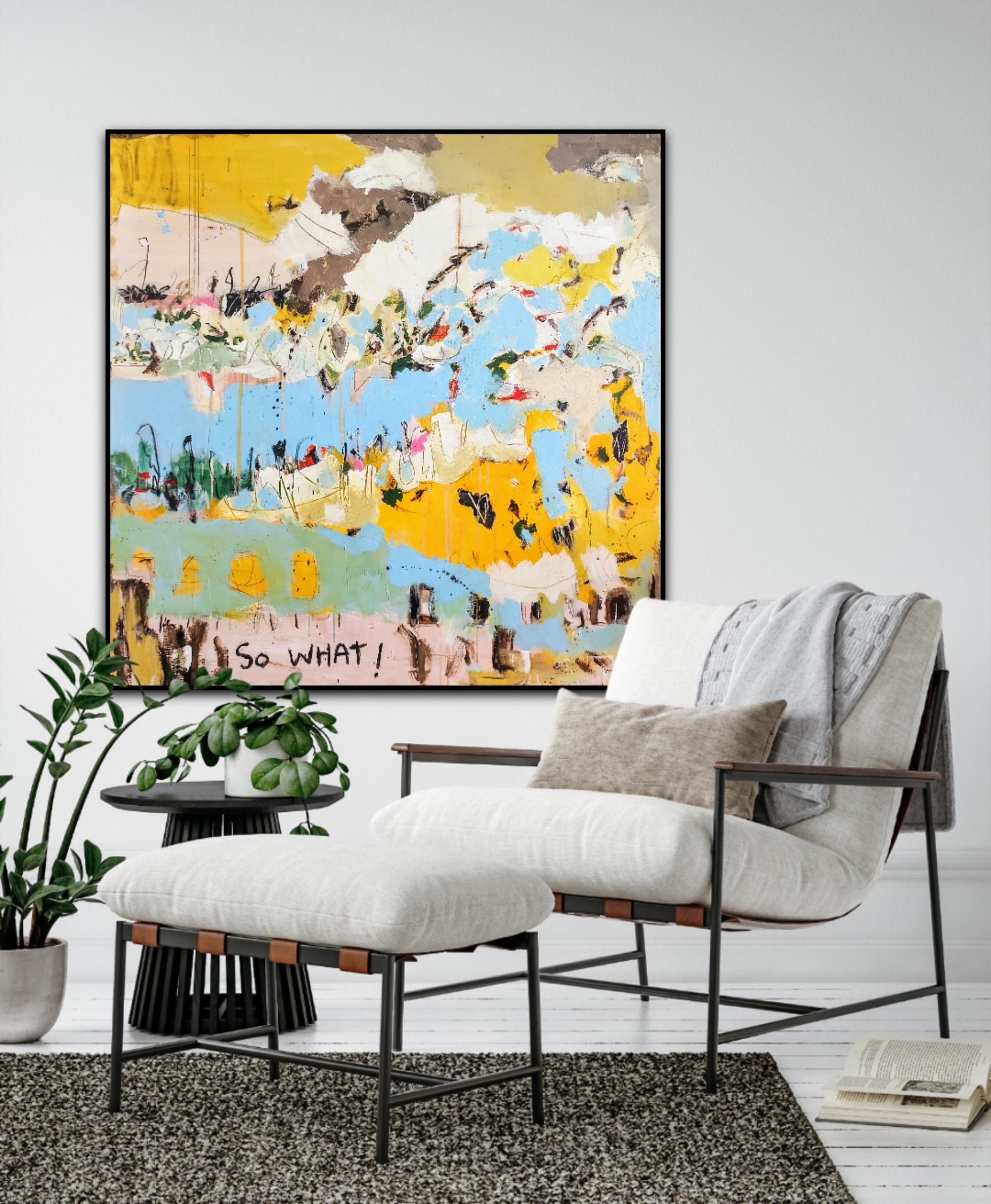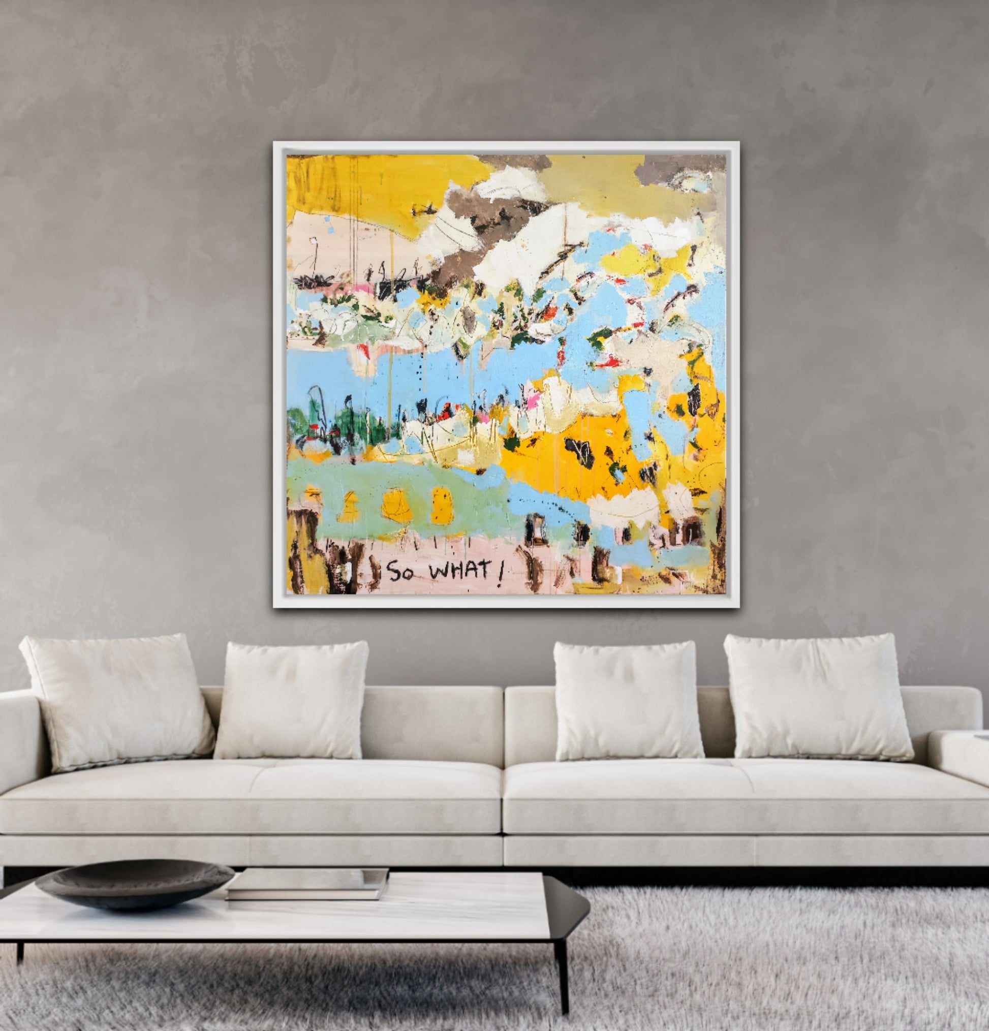 Cuadro trabajado desde la improvisación libre. Action painting con la música del álbum Kind of blue sonando en bucle.