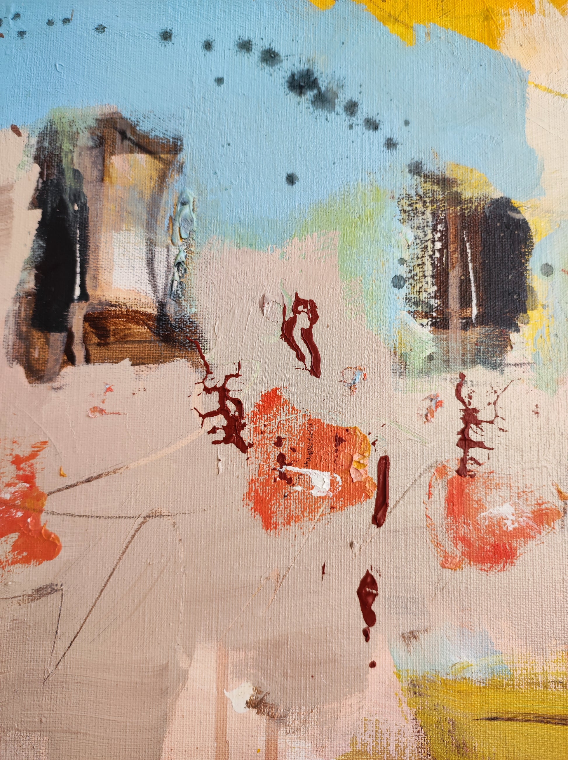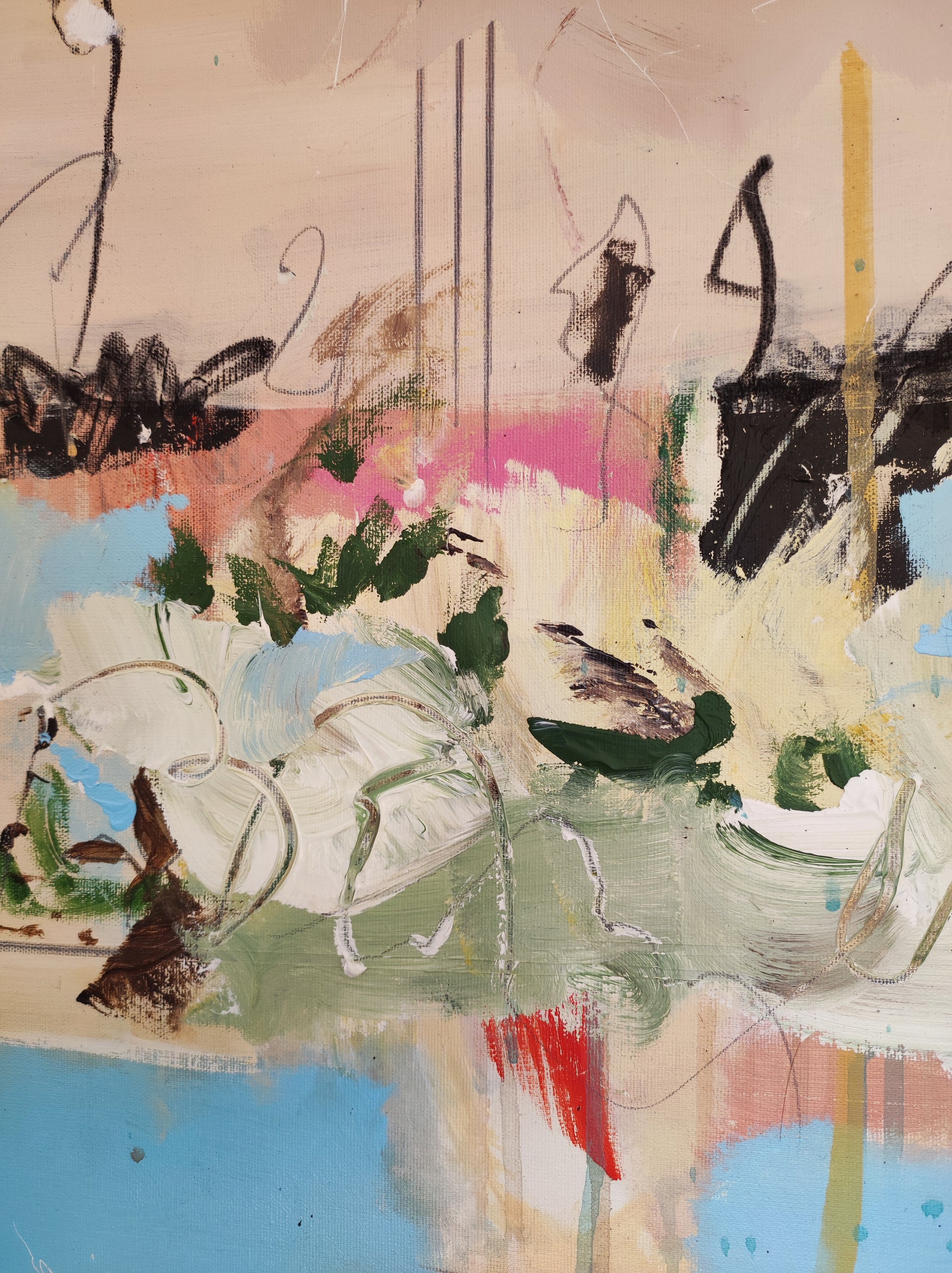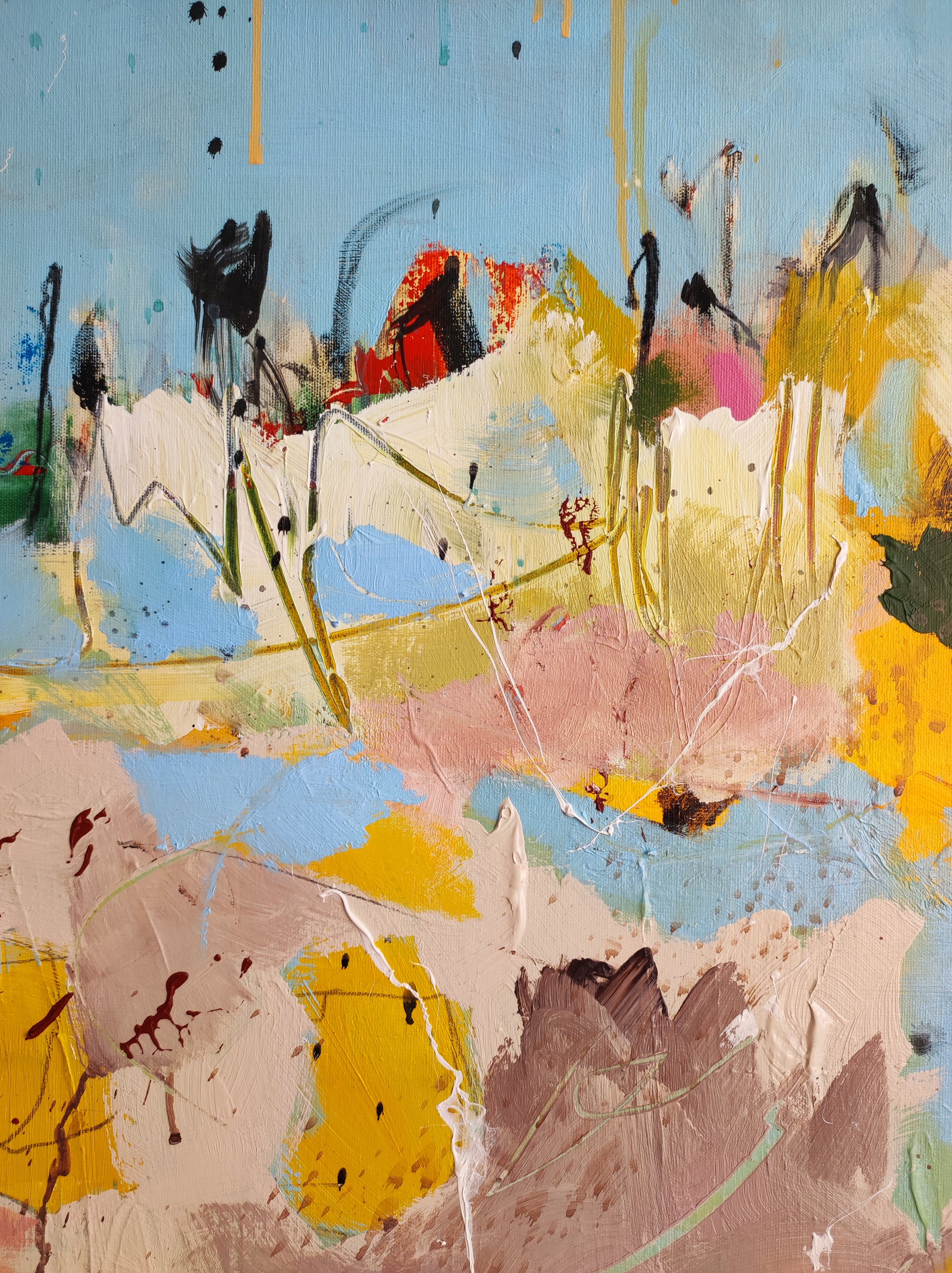 Composición abstracta basada en el color y la textura a ritmo de jazz. Capa sobre capa, lo nuevo tapa a lo antiguo pero siempre deja un rastro. Marcas, trazos, manchas, Naturaleza y pensamientos.