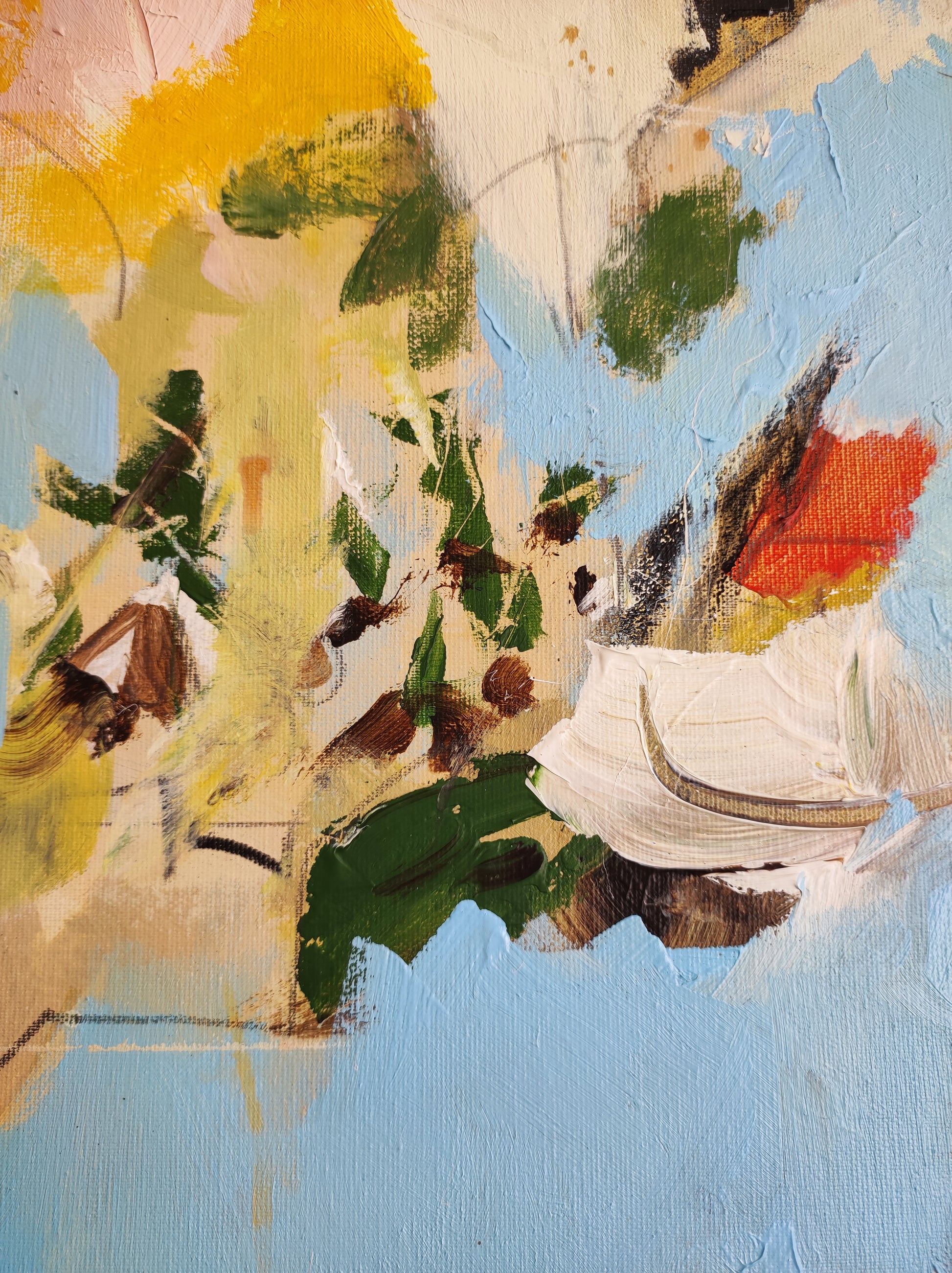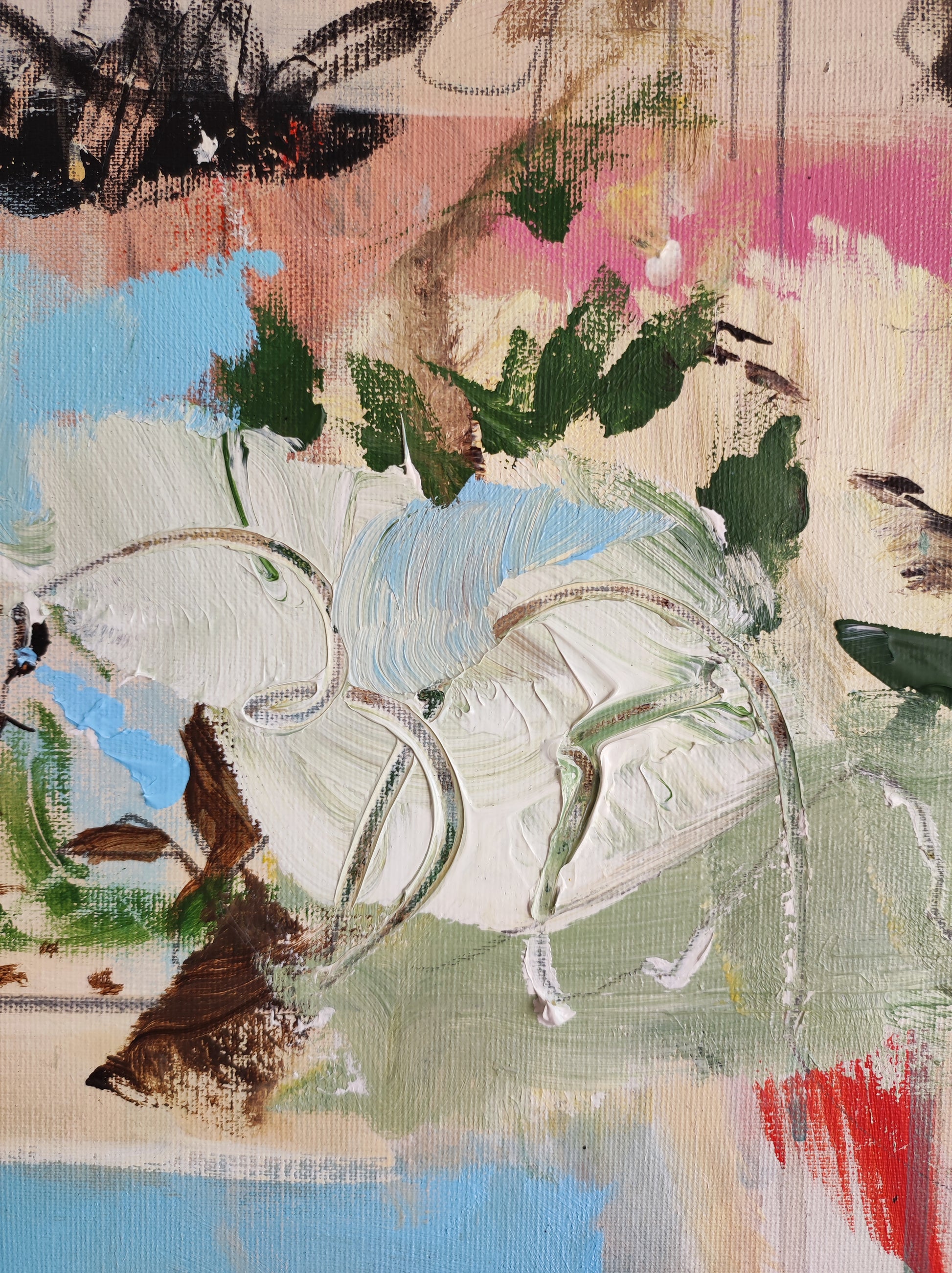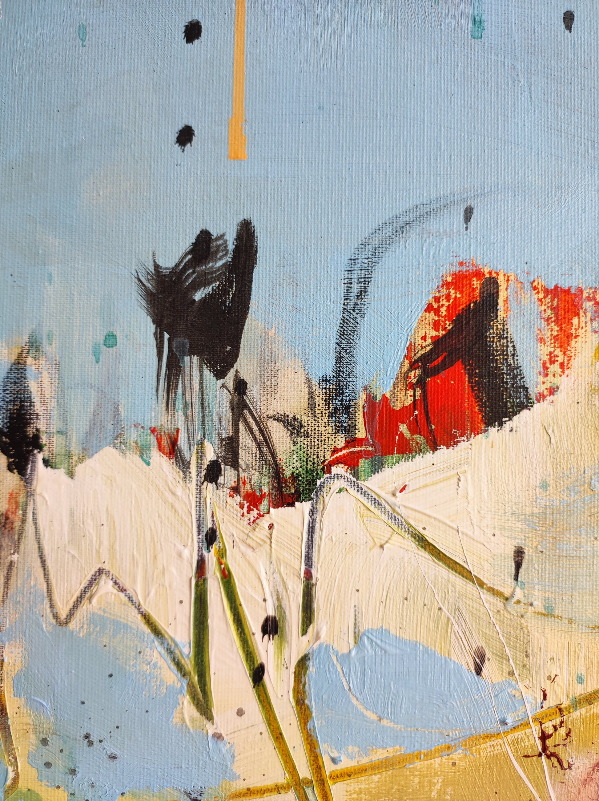 Composición abstracta basada en el color y la textura a ritmo de jazz. Capa sobre capa, lo nuevo tapa a lo antiguo pero siempre deja un rastro. Marcas, trazos, manchas, Naturaleza y pensamientos.