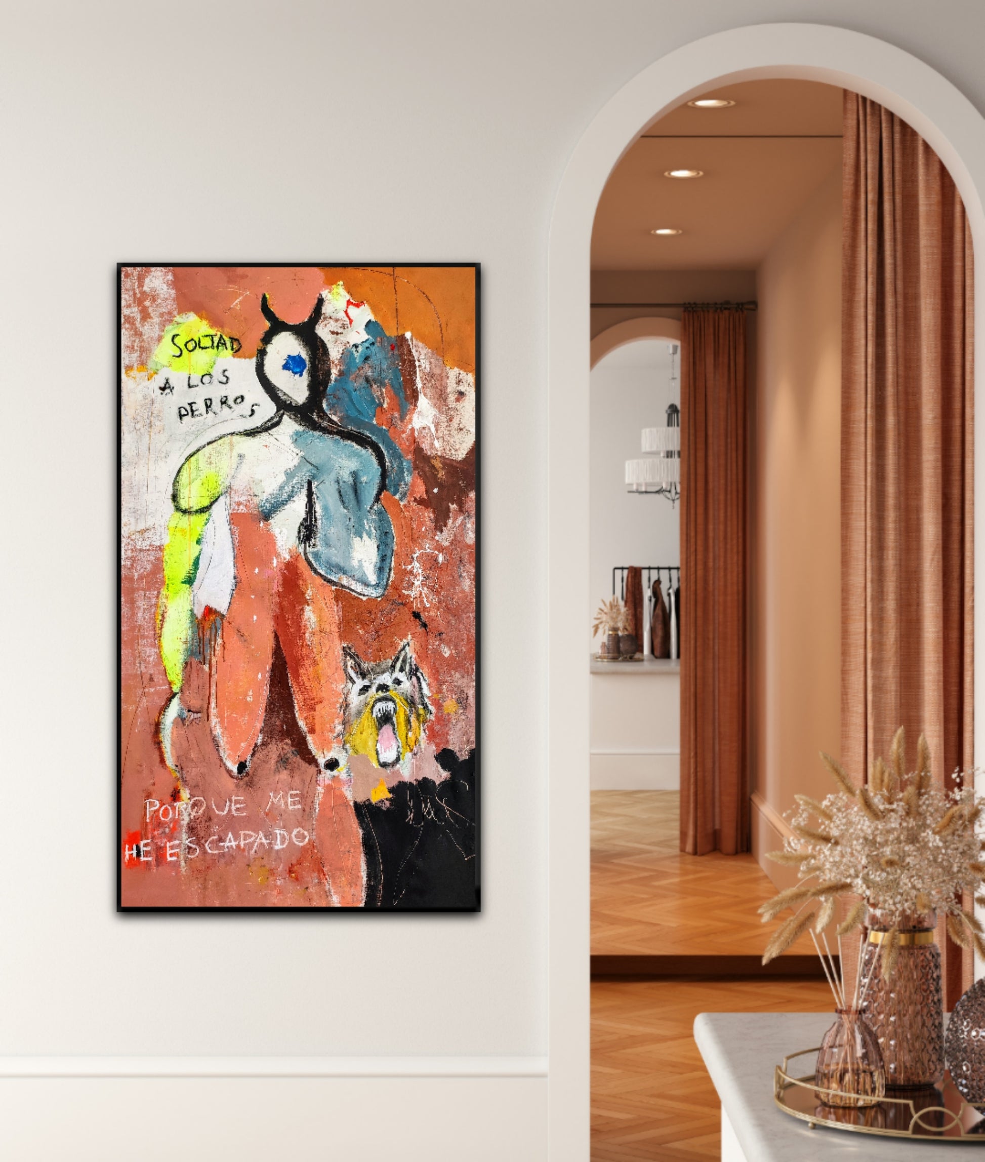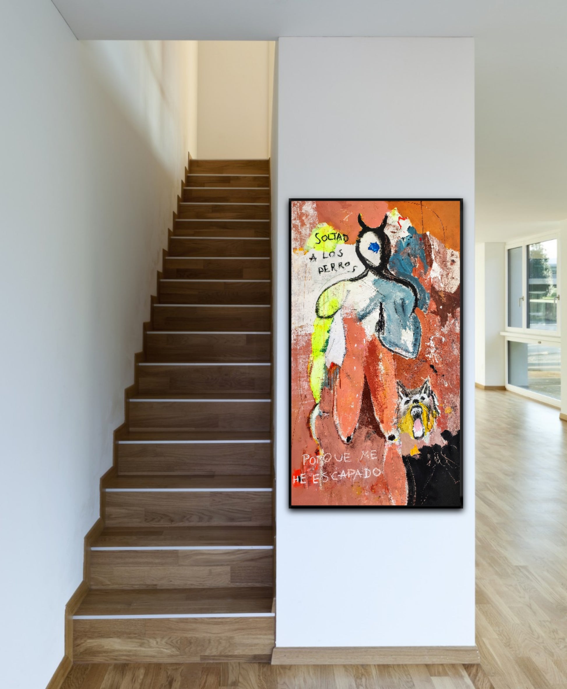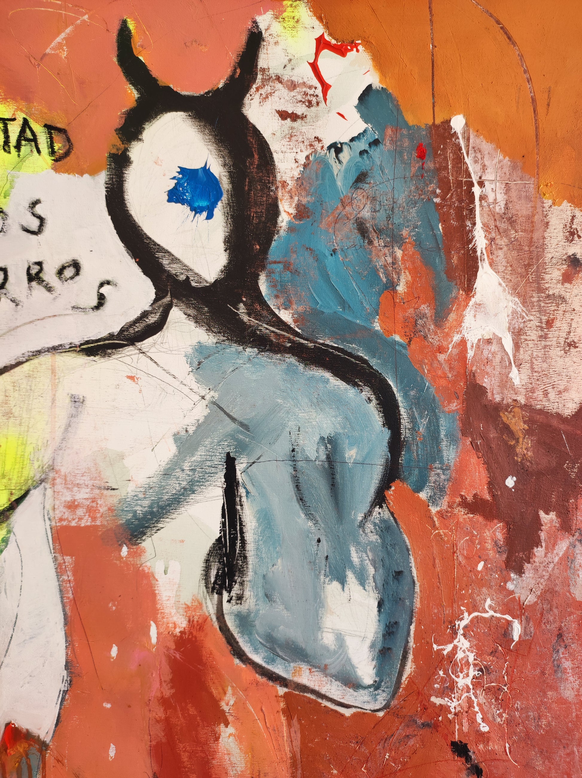 Técnica: acrílico, pigmentos, témpera, pastel, pintura en spray y lápiz.