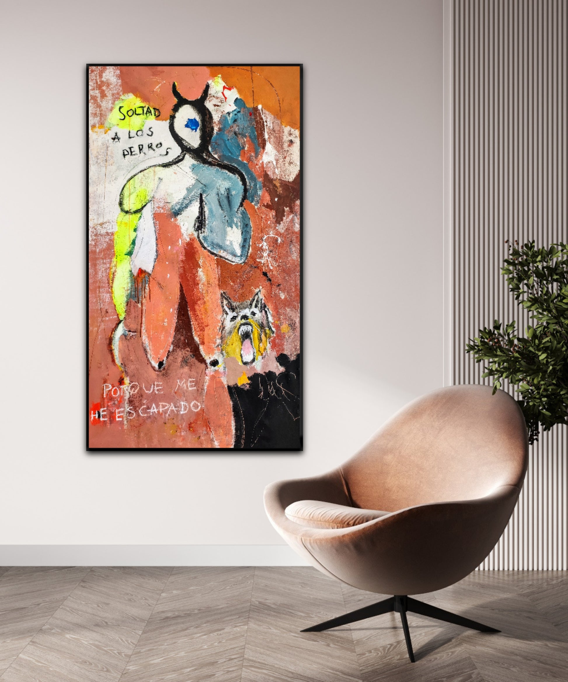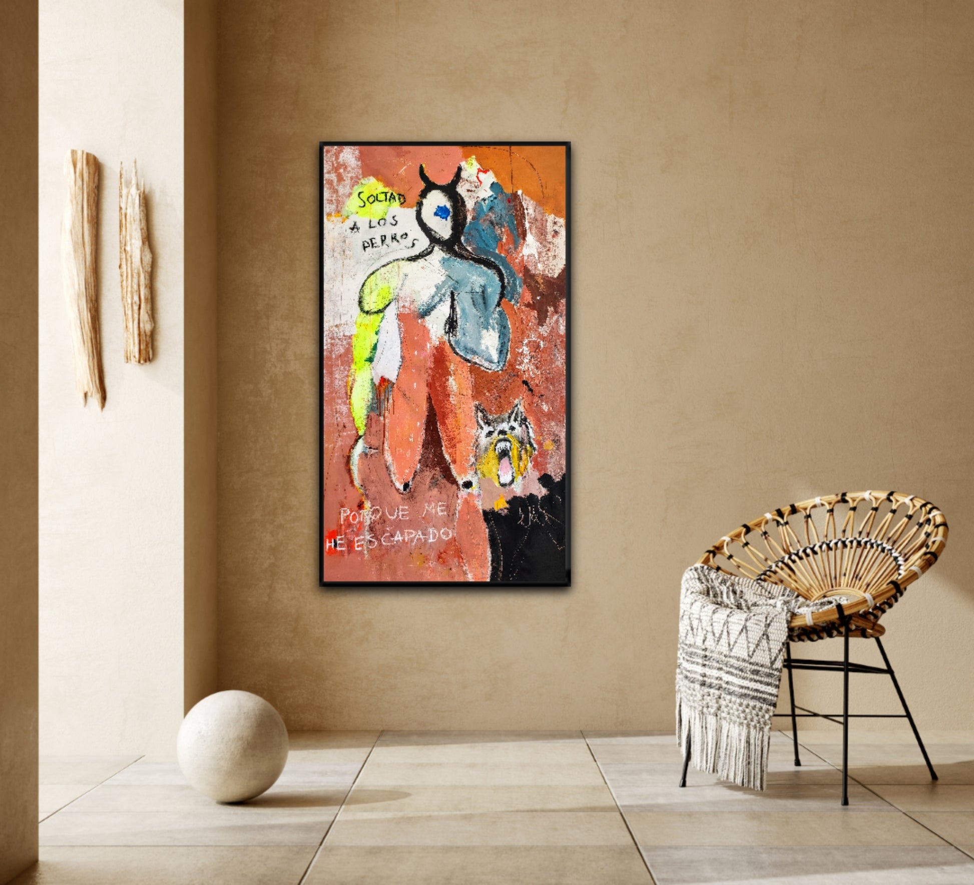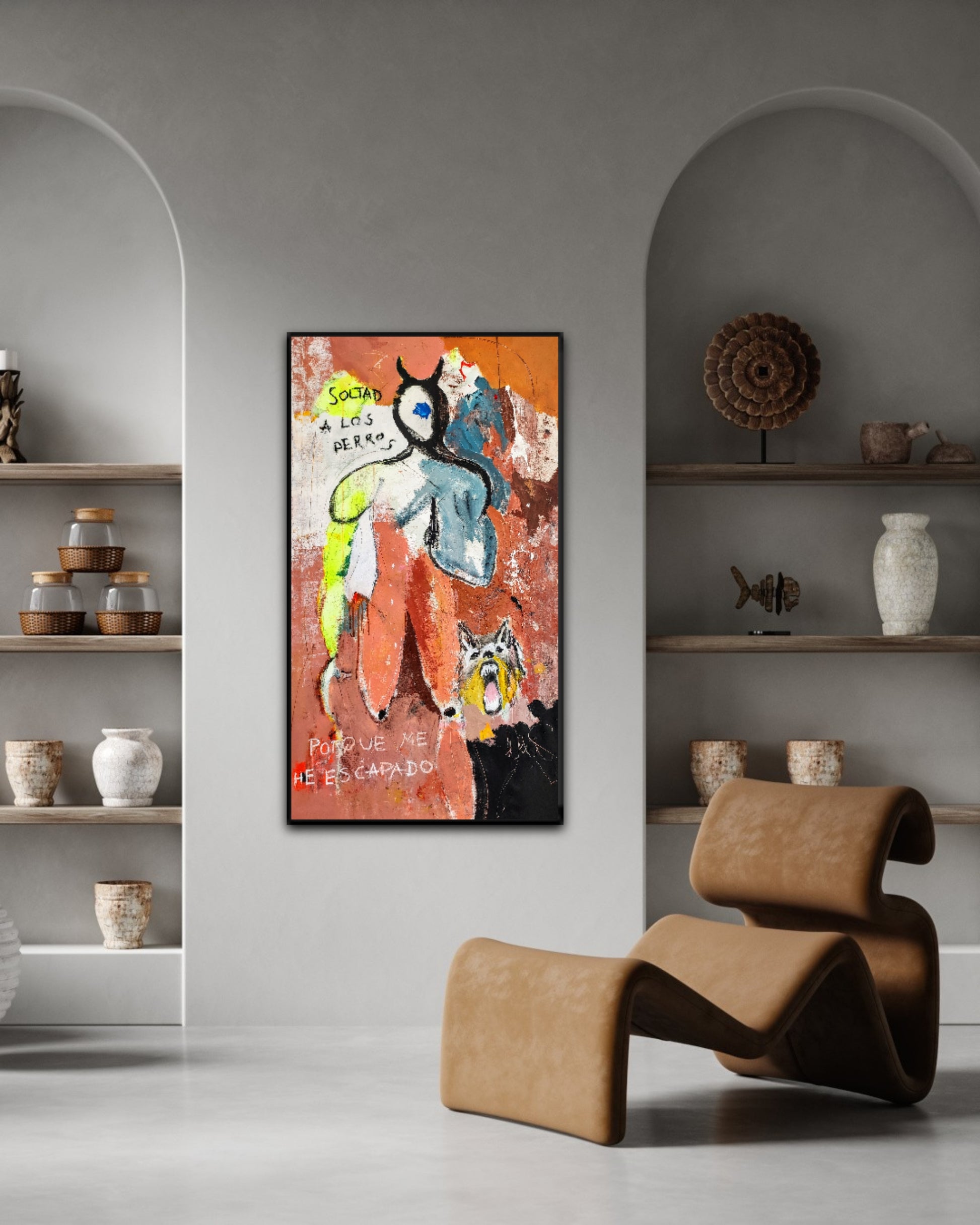 Técnica: acrílico, pigmentos, témpera, pastel, pintura en spray y lápiz.