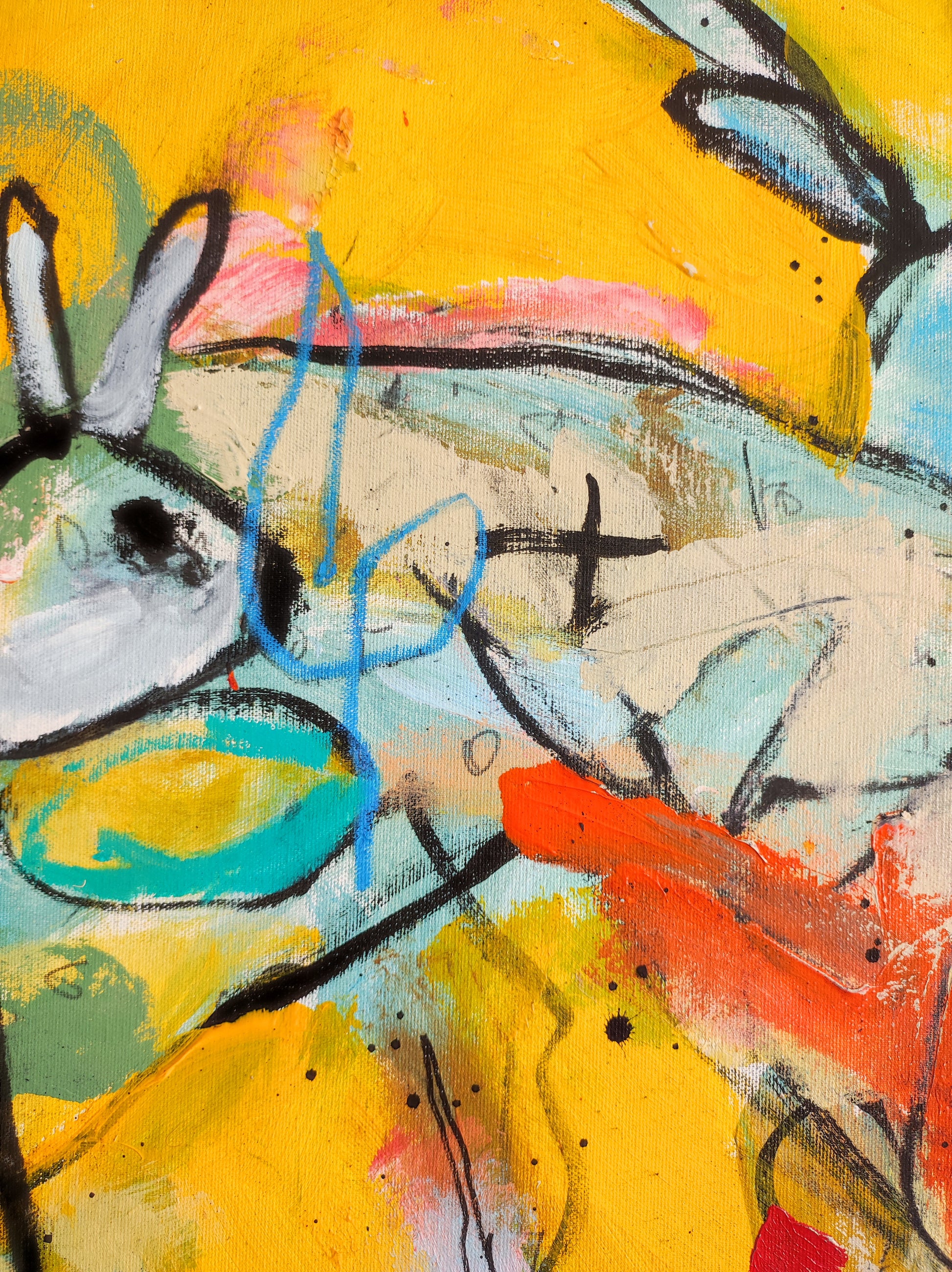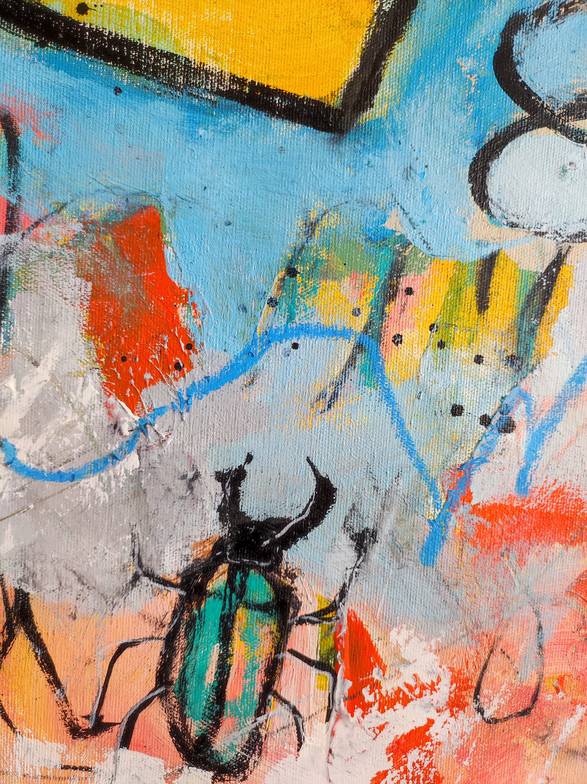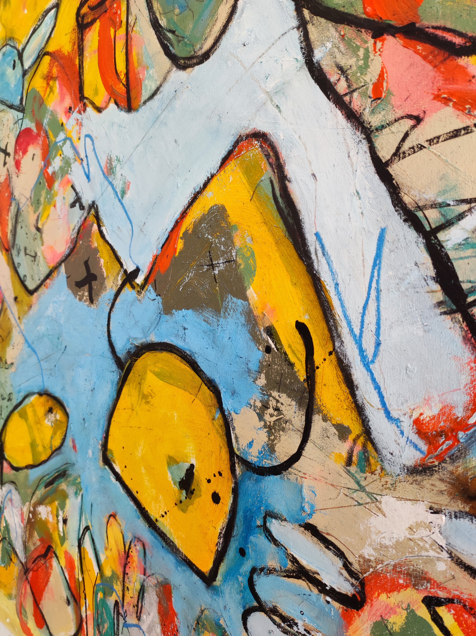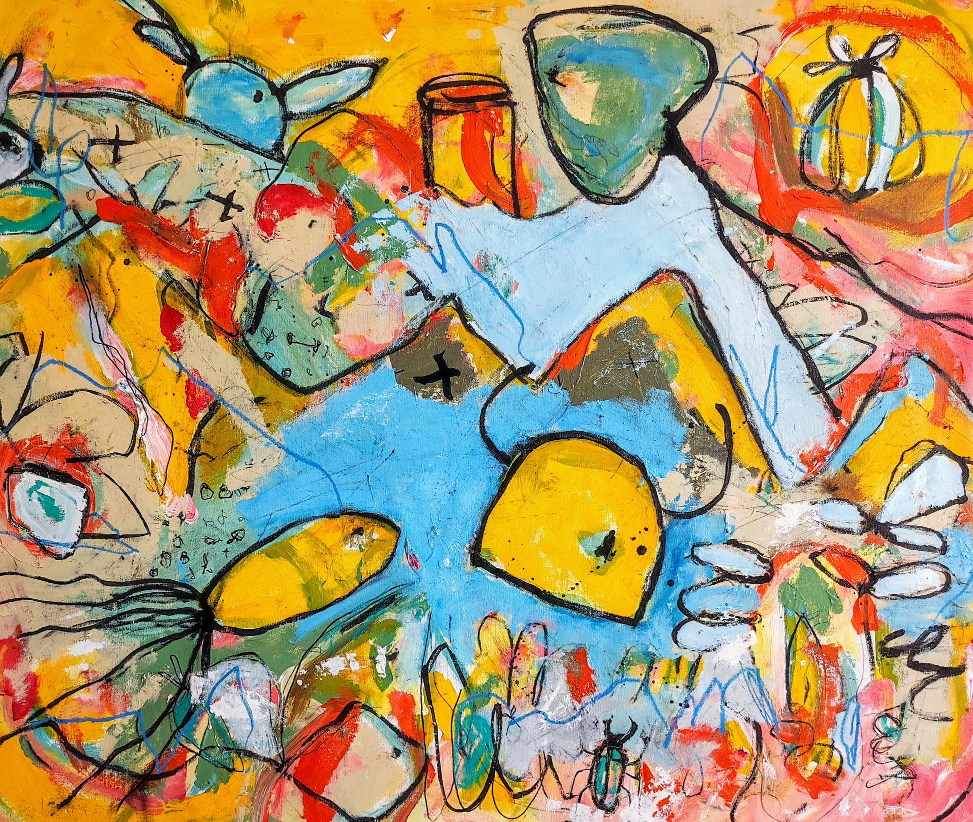 Técnica: mixed media: acrílico, tinta china, gesso, ceras y carboncillo.